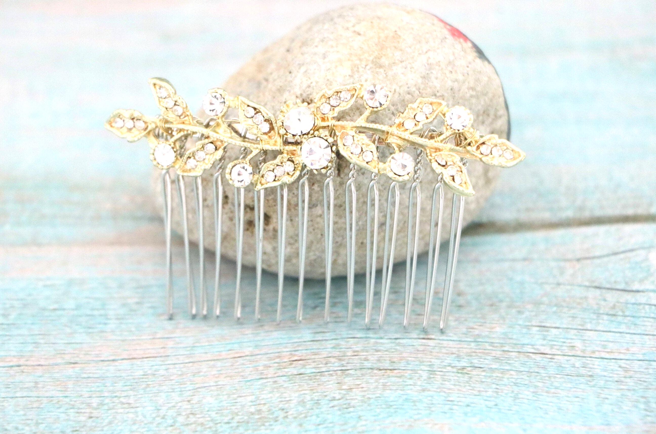 Gold crystal hair comb, bridal hair comb, wedding hair accessories, bridal hair piece, gold bridal hair accessories, gold comb