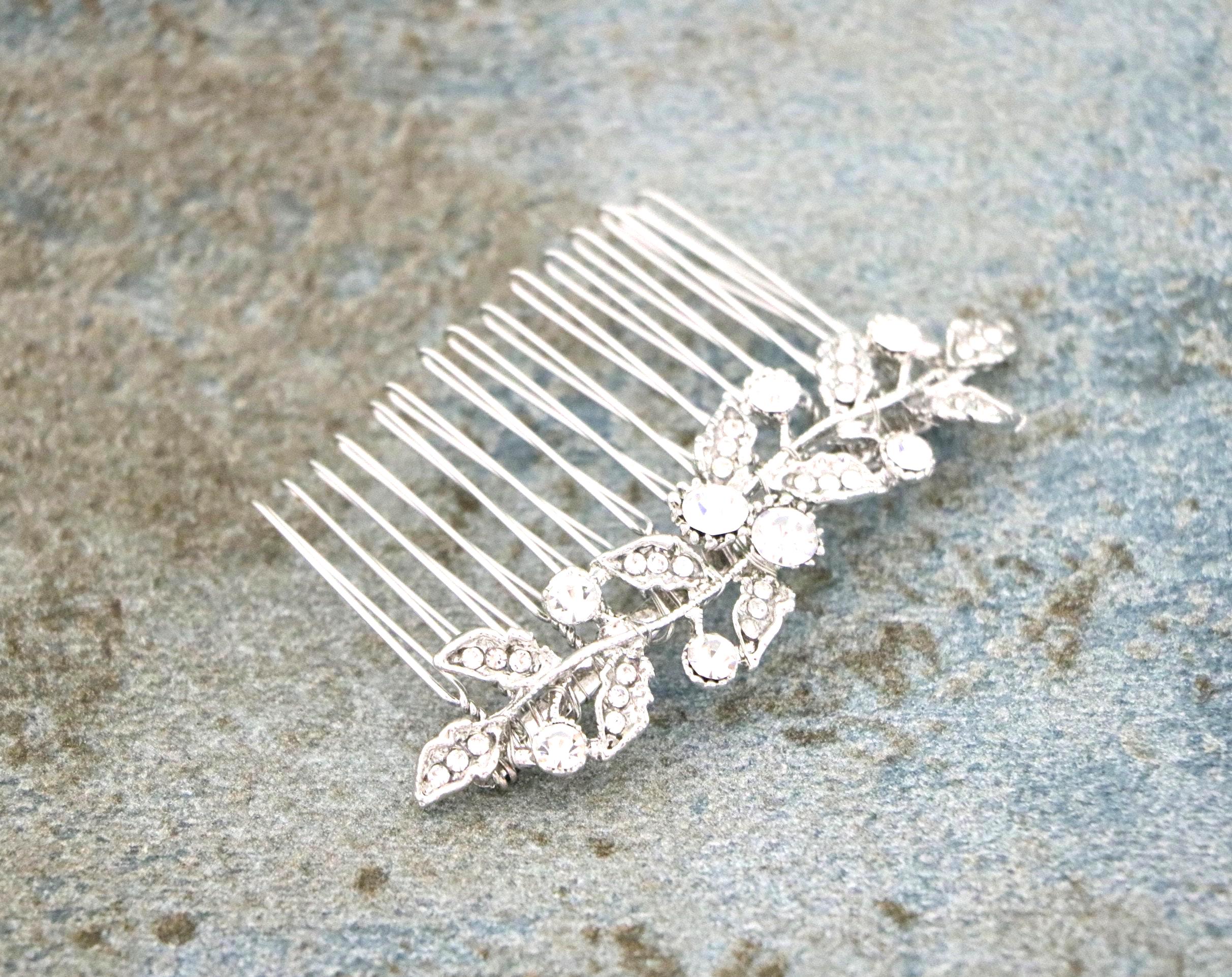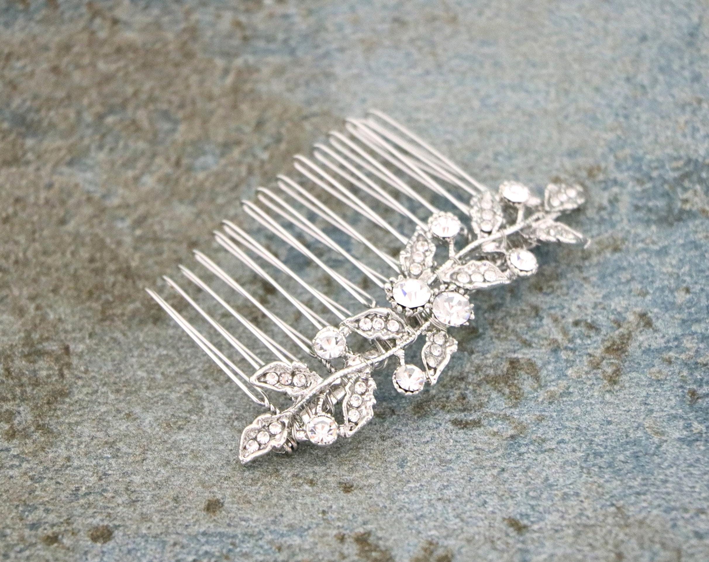 This sparkle rhinestone hair comb features a very beautiful vintage style rhinestone piece. Rhinestone piece can set on a metal barrette or on a metal hair comb. The rhinestone part measures approximately 3.25 X 0.75 inches.
