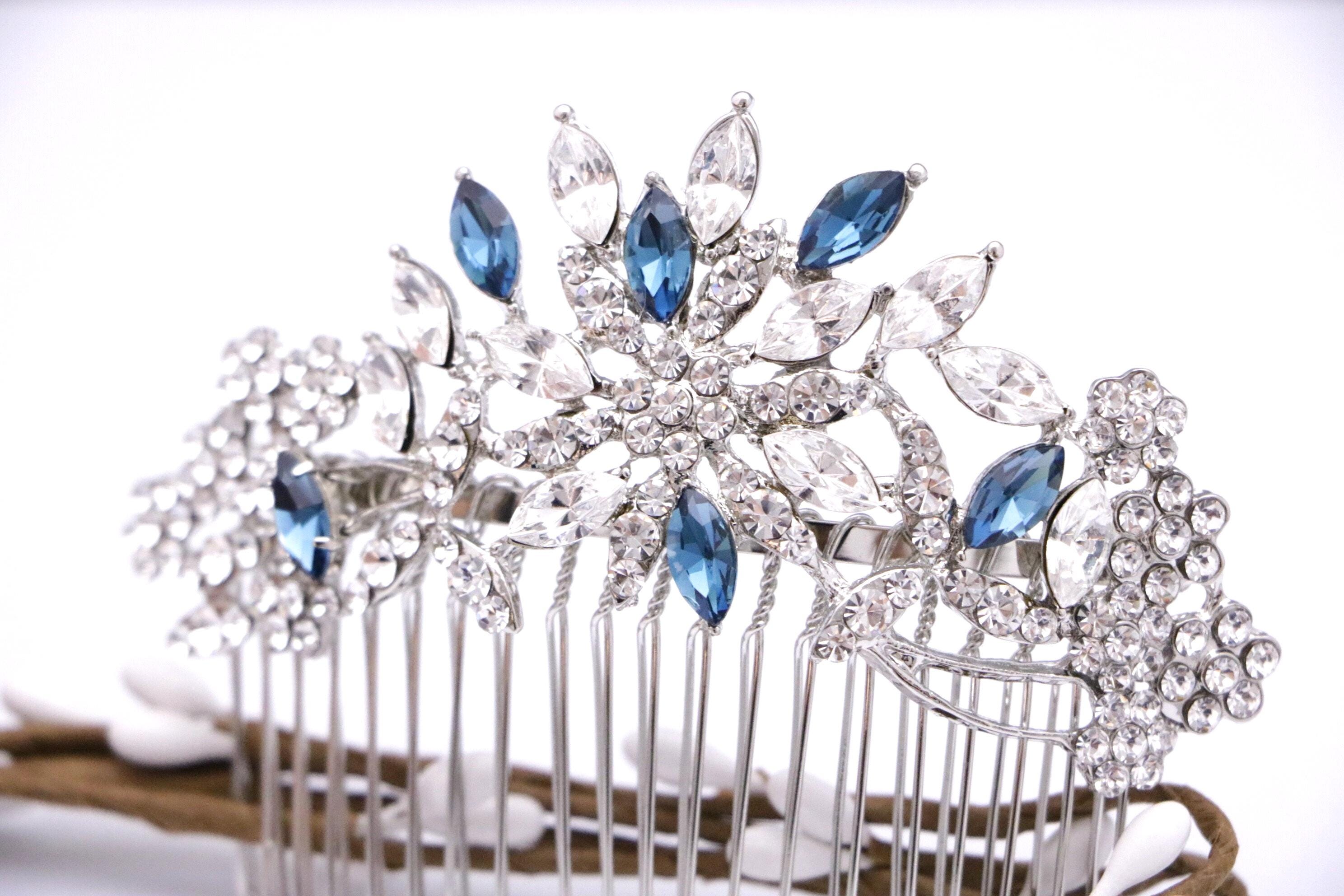 swarovski crystal hair comb wedding hair comb bridal hair comb something blue vintage style rhinestone hair comb blue hair comb