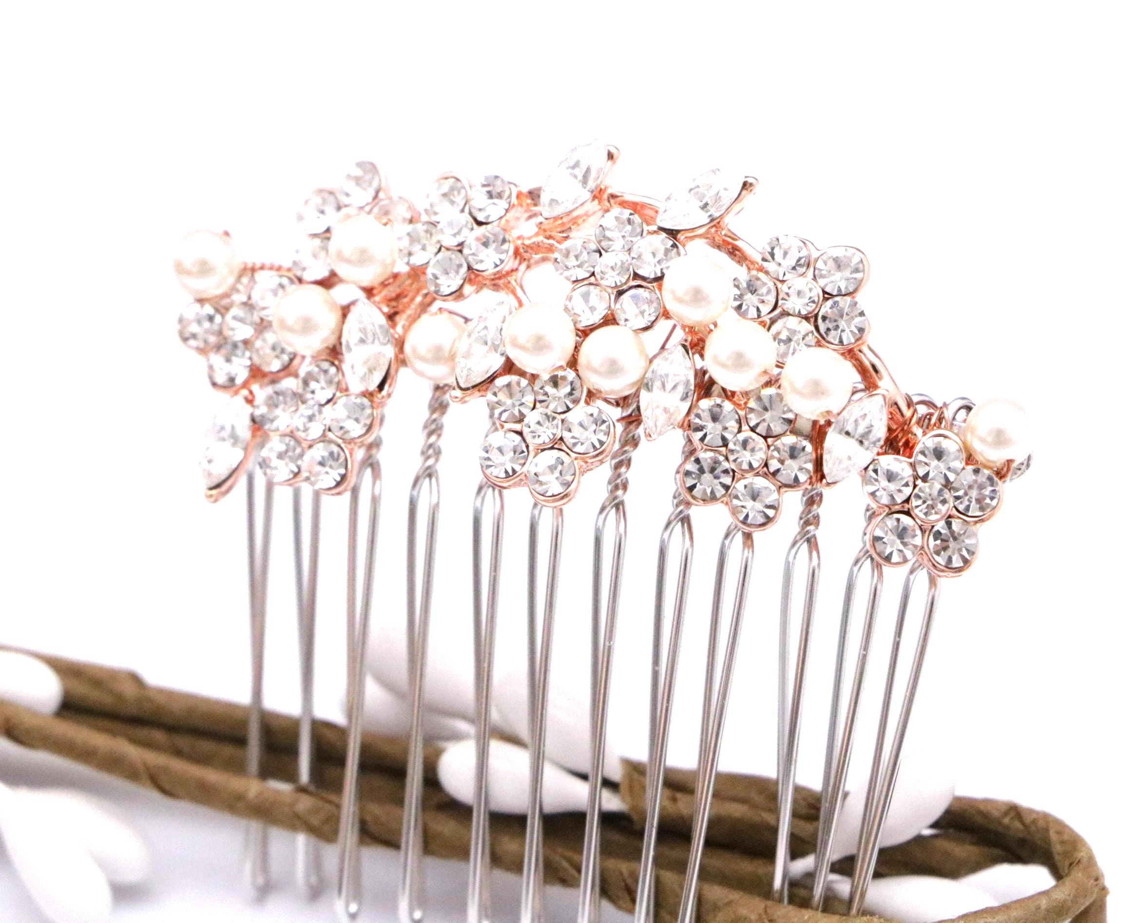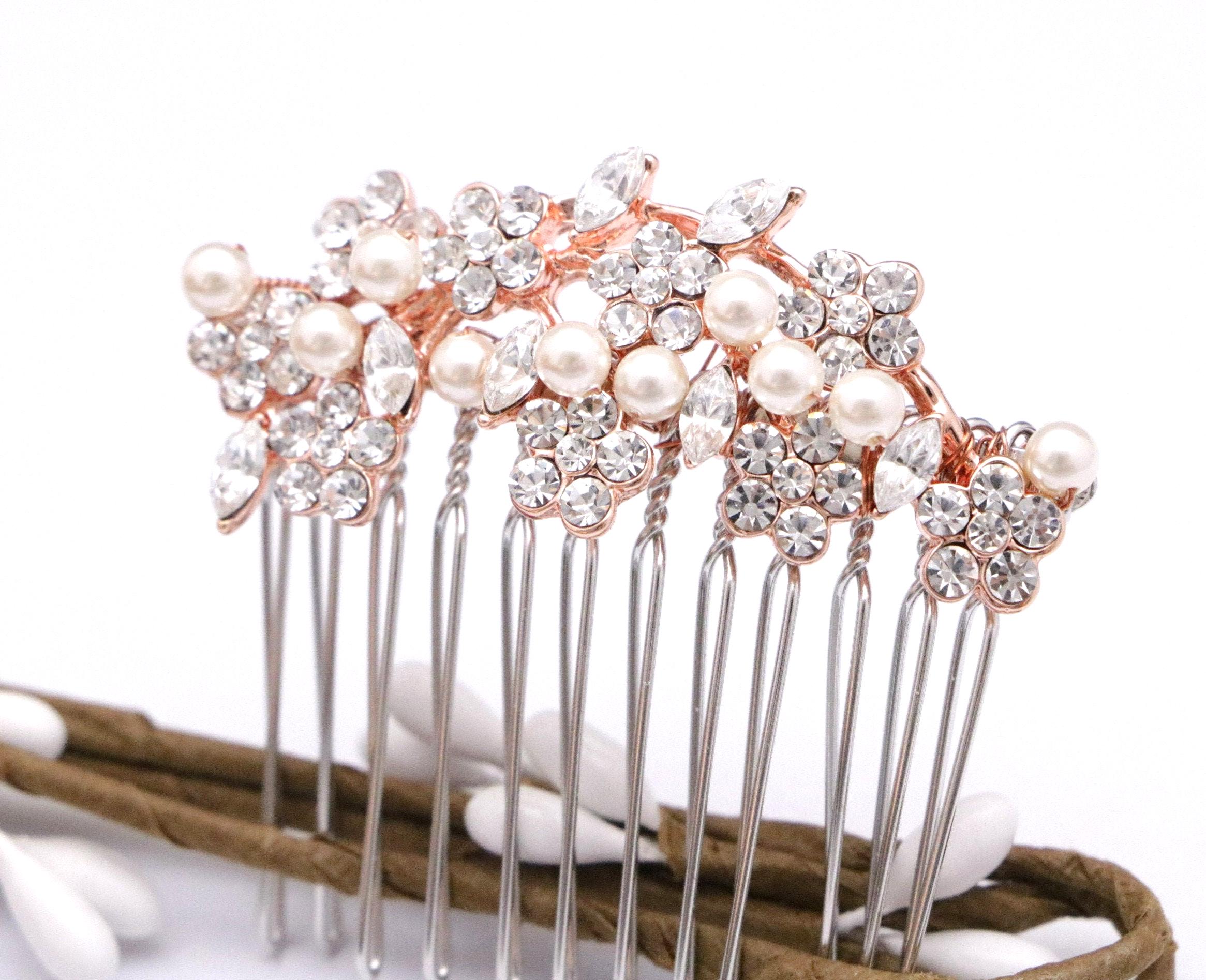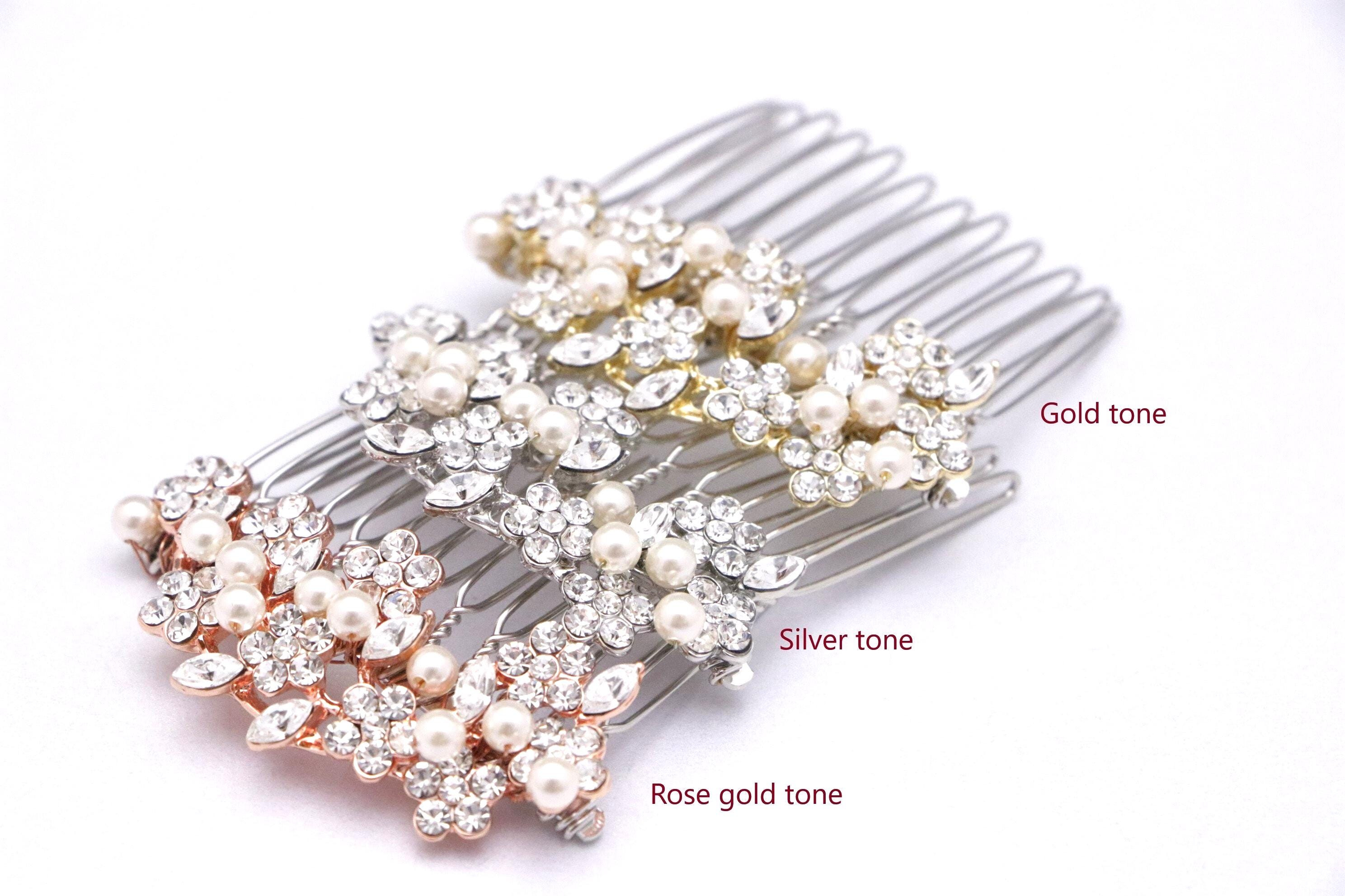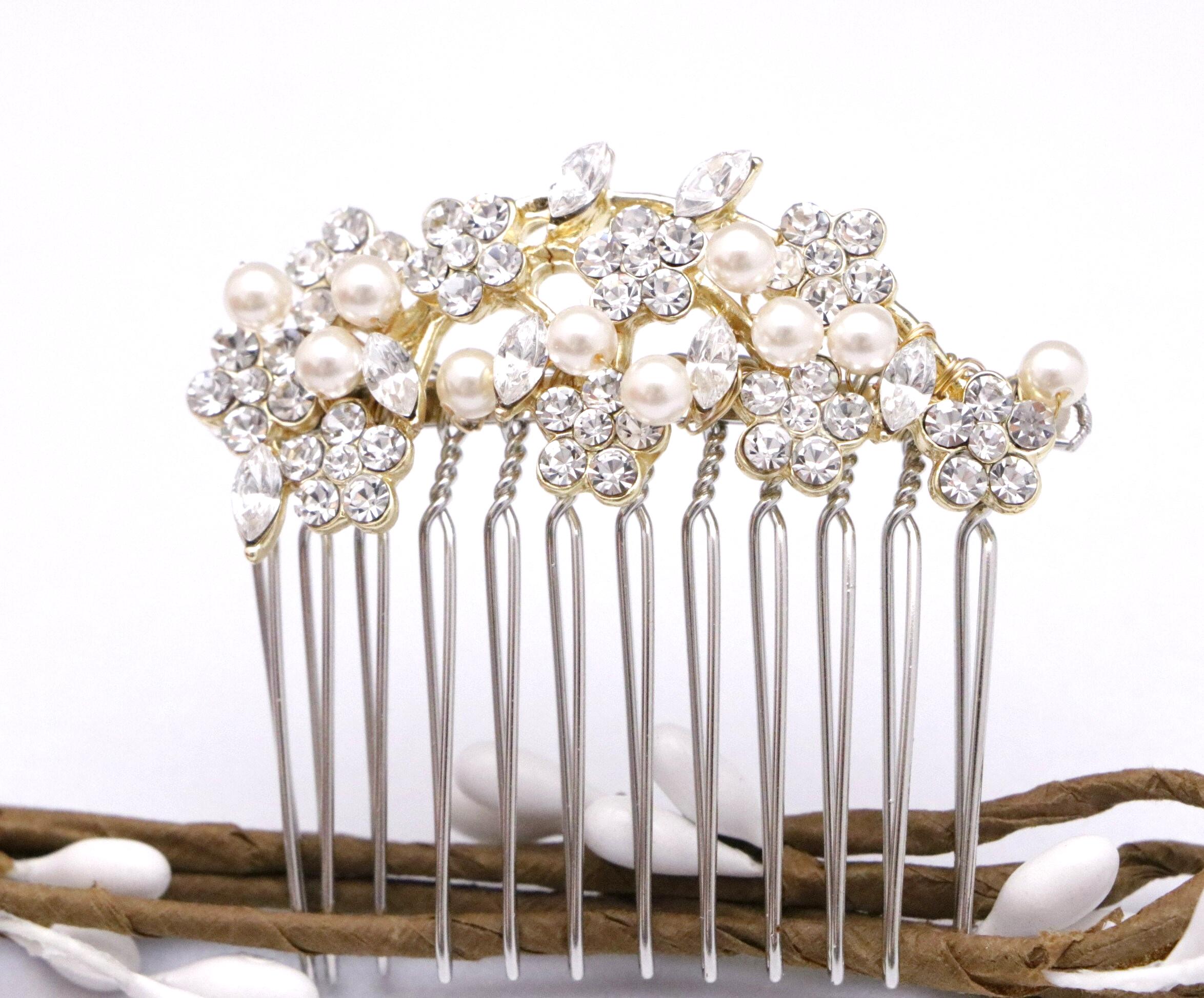 Gold Bridal Hair Comb, Crystal and Freshwater Pearl Wedding Comb, Silver Wedding Hair Comb