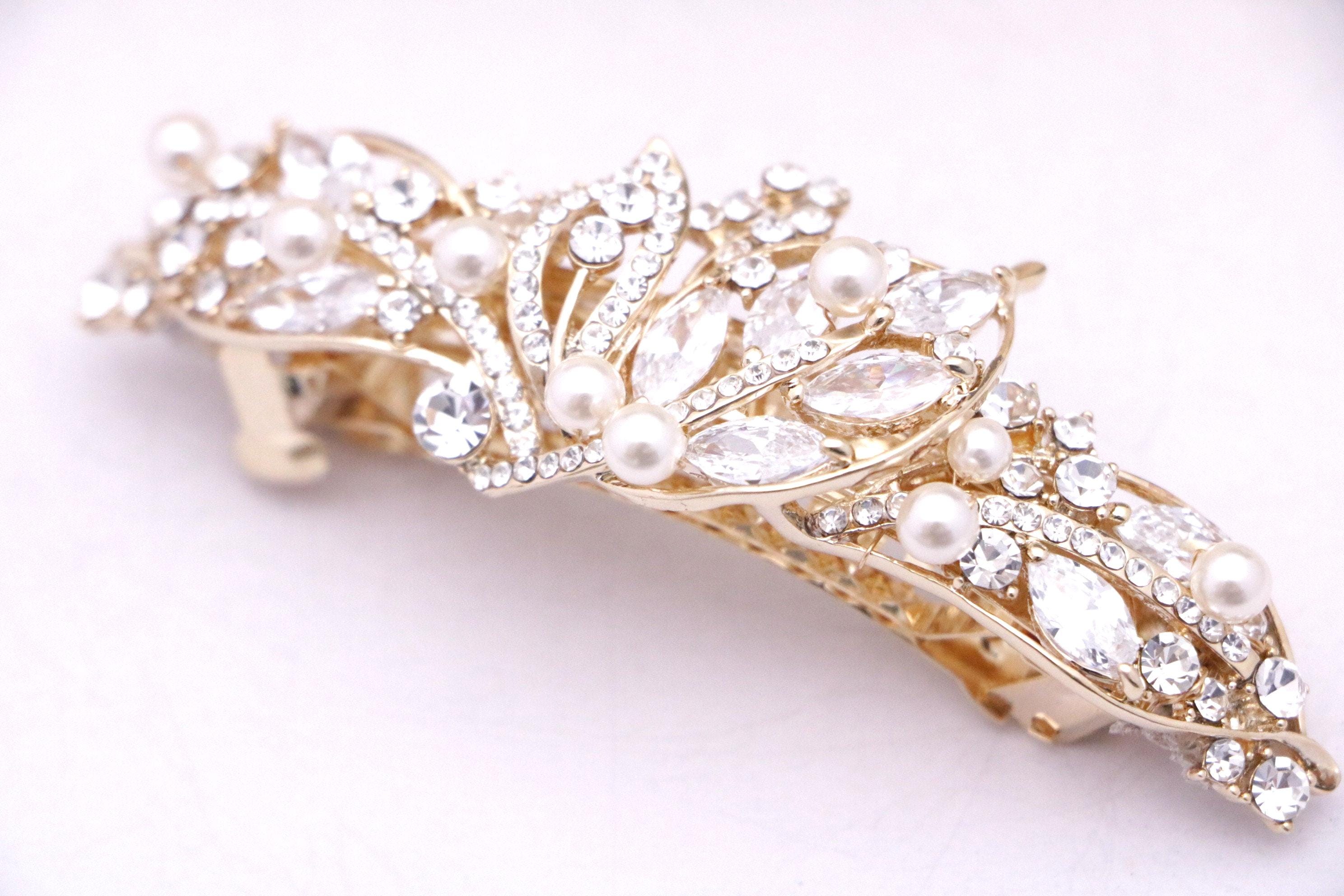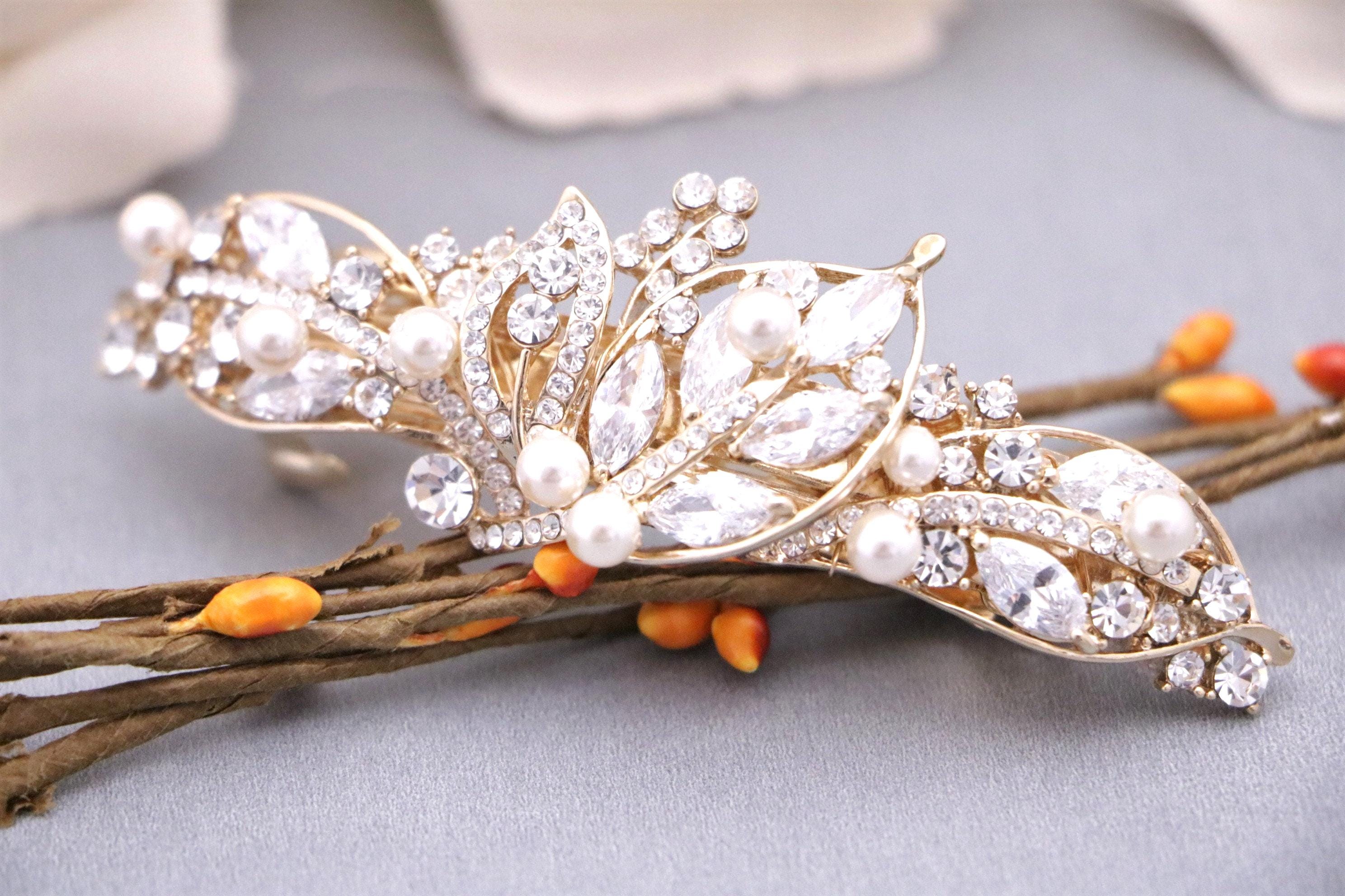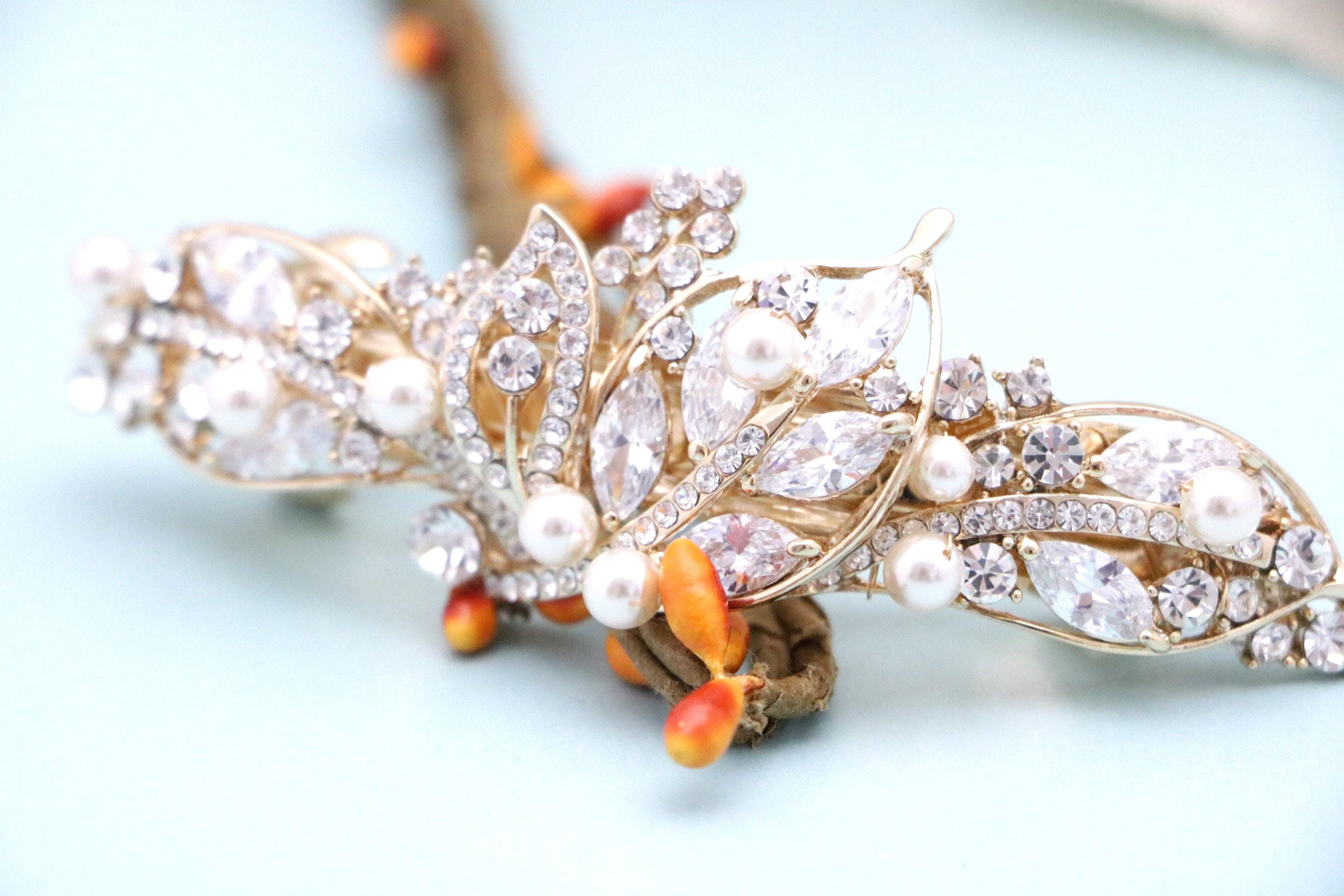 pearl rhinestone hair barrette flower branch event wedding hair accessory
