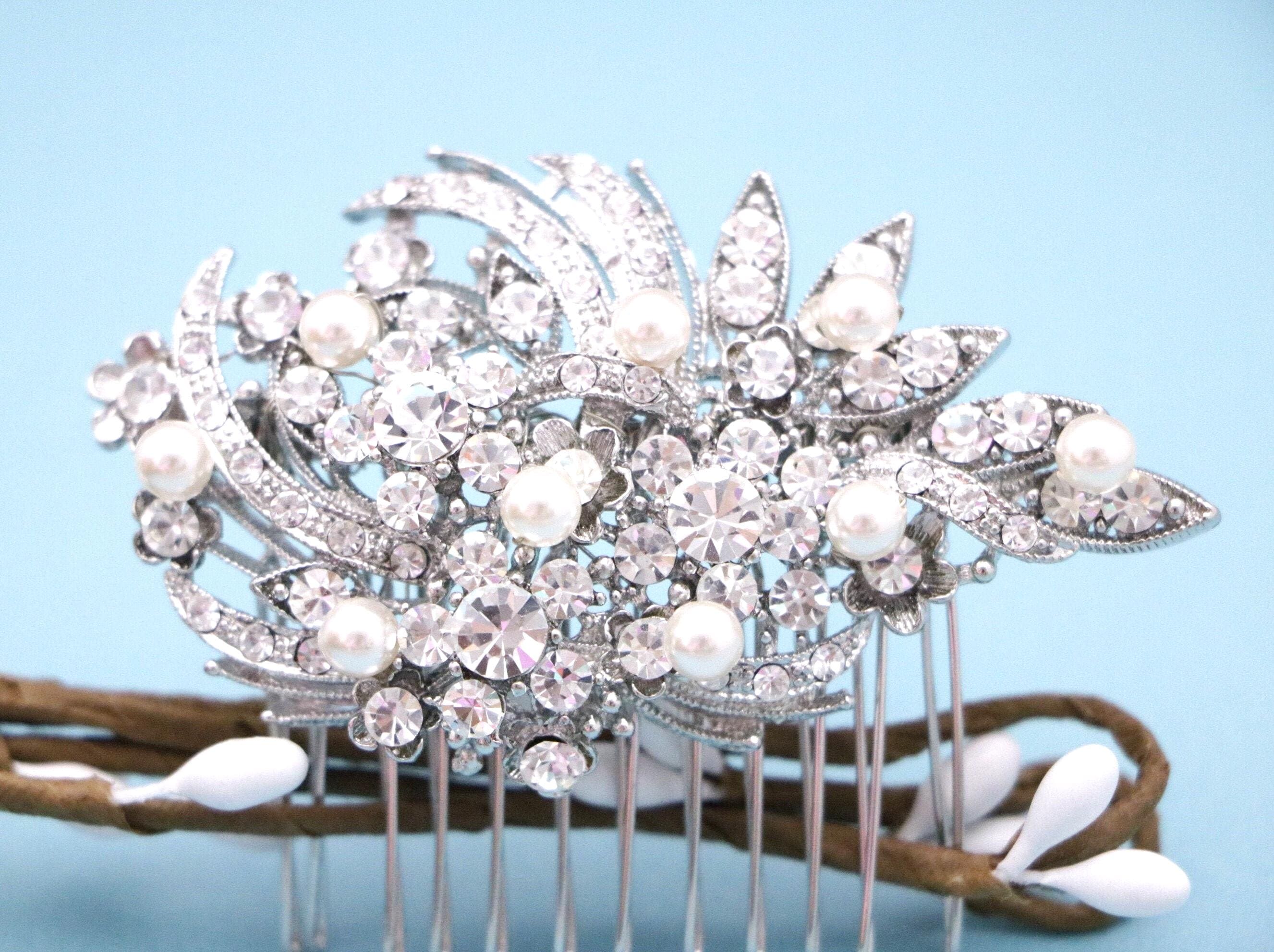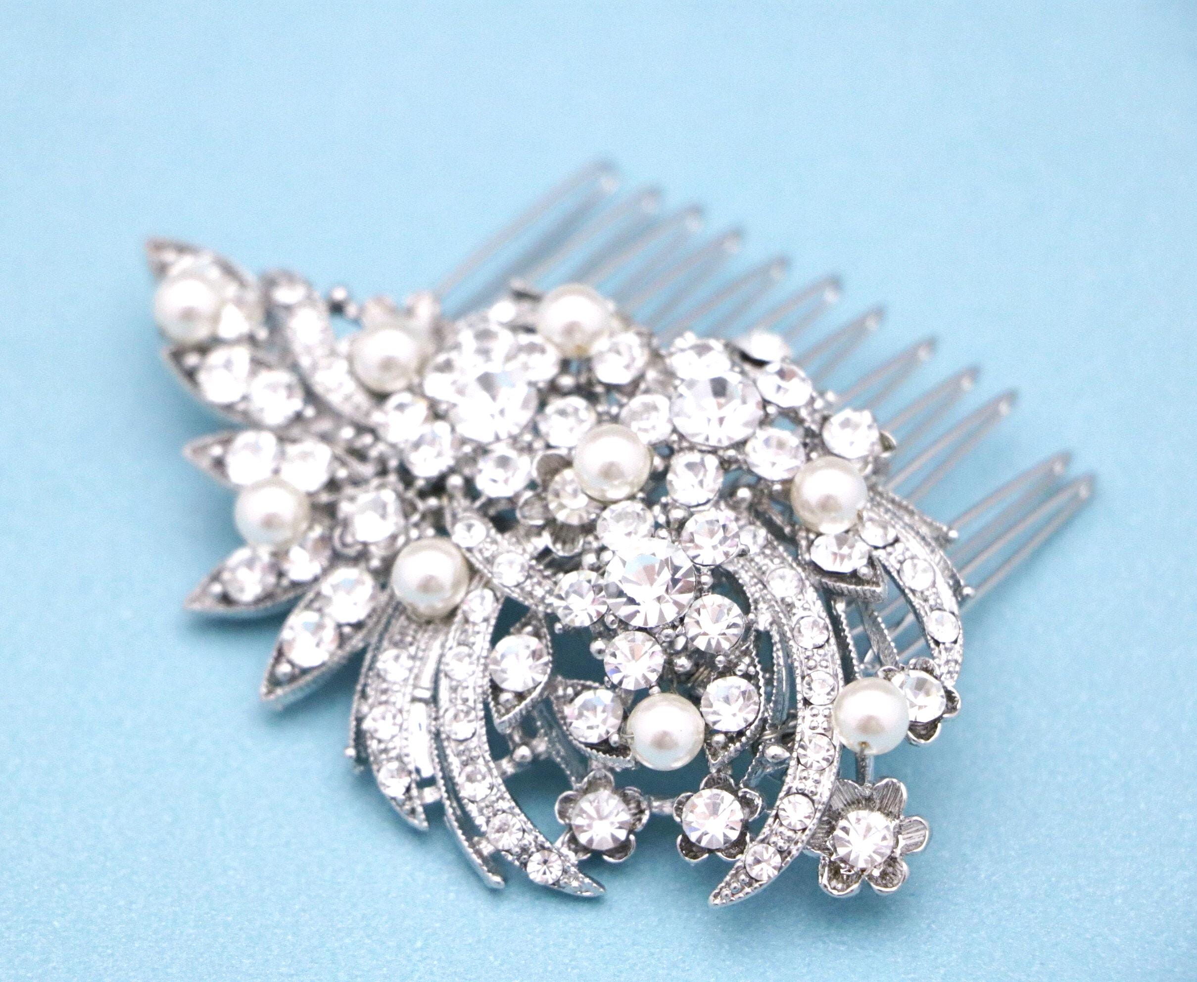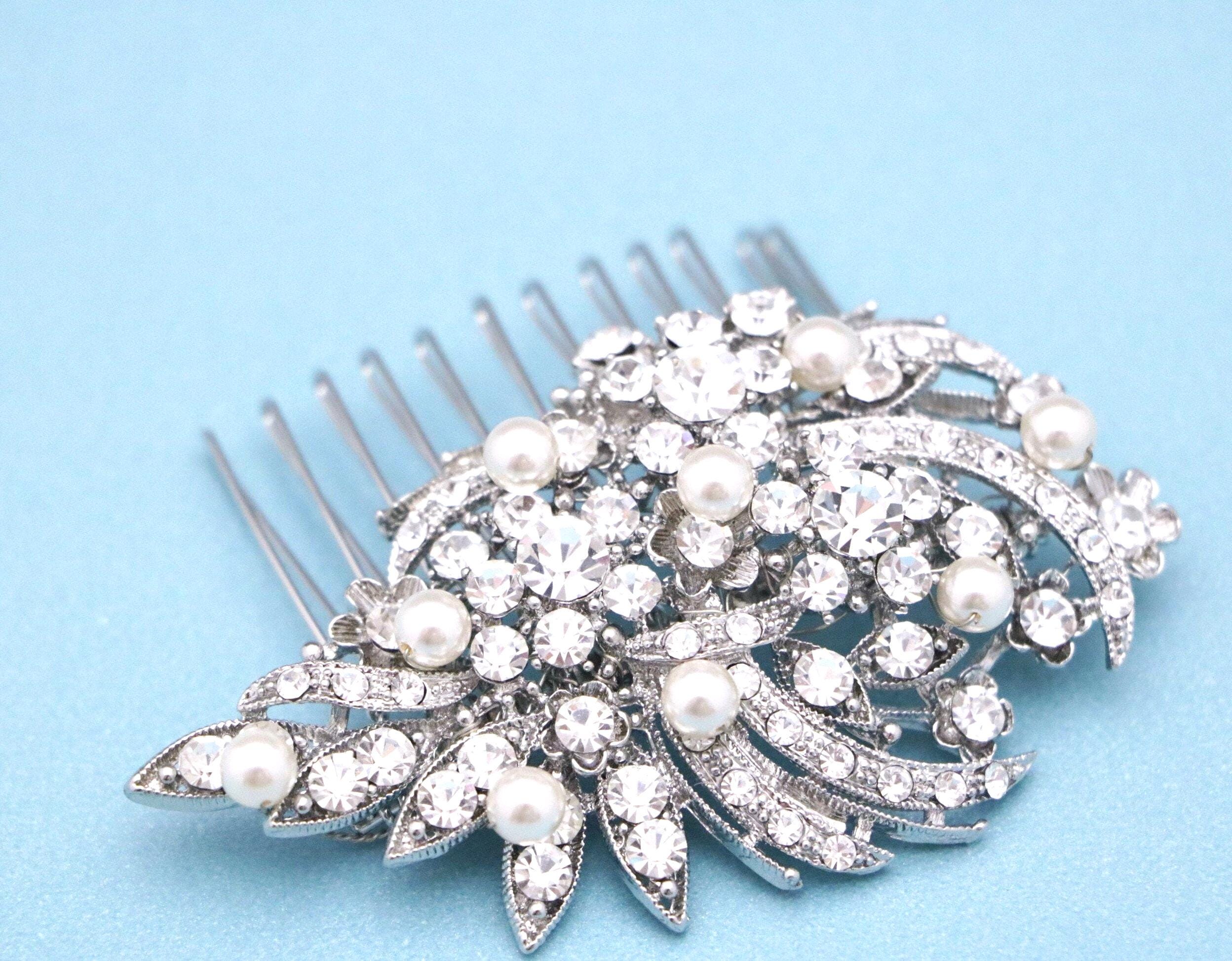Silver and Pearl Bridal Hair Comb, Small Floral Design Hair Comb for Wedding, Bridal Hair Comb, Silver Wedding Hair Piece, Pearl Hair Comb