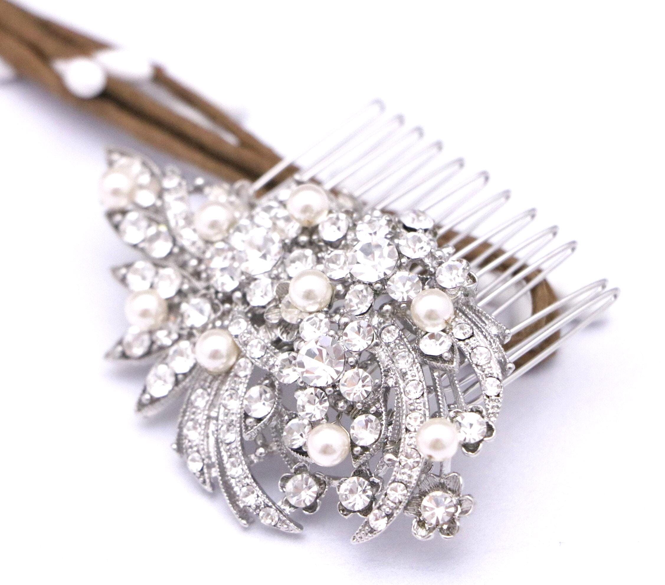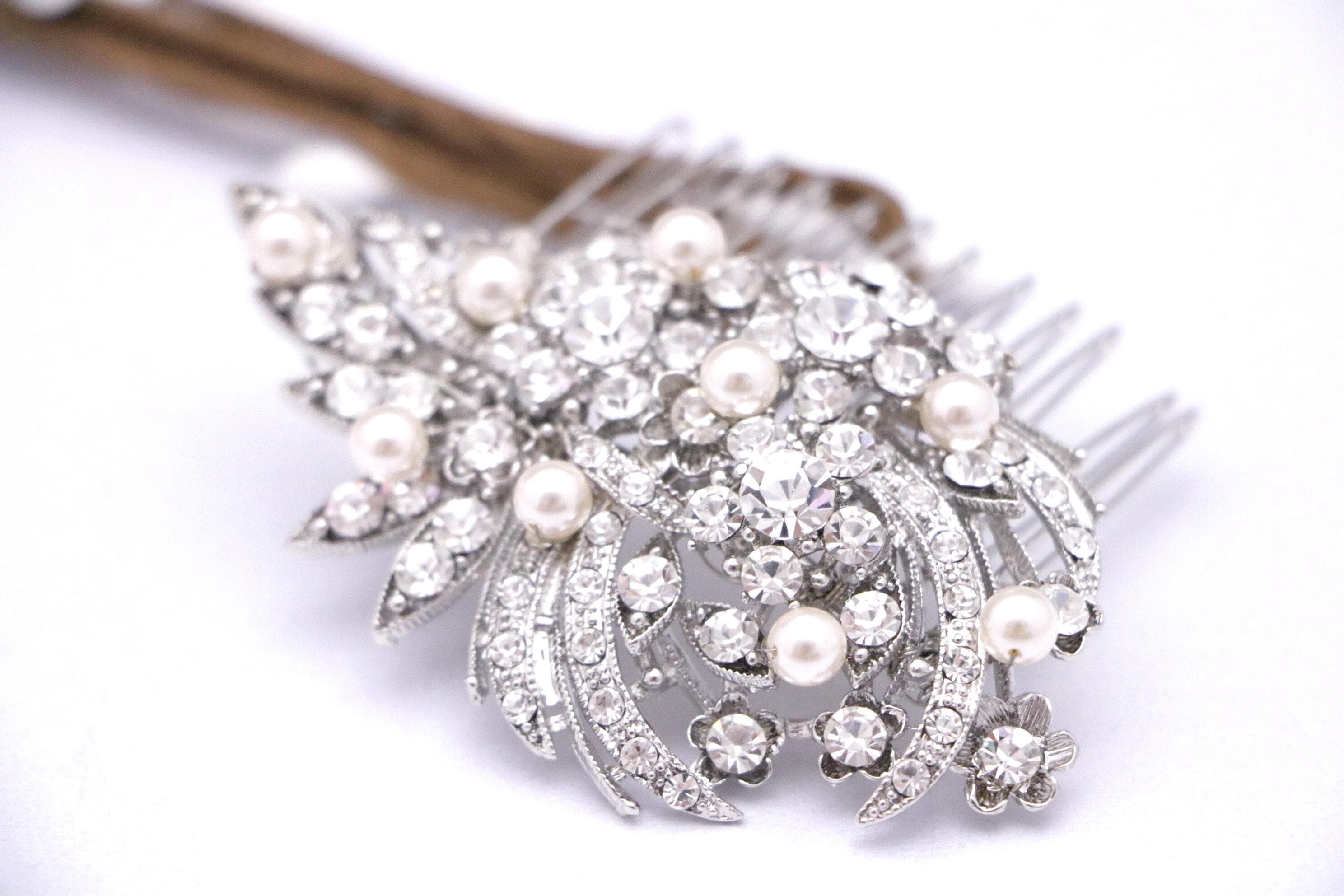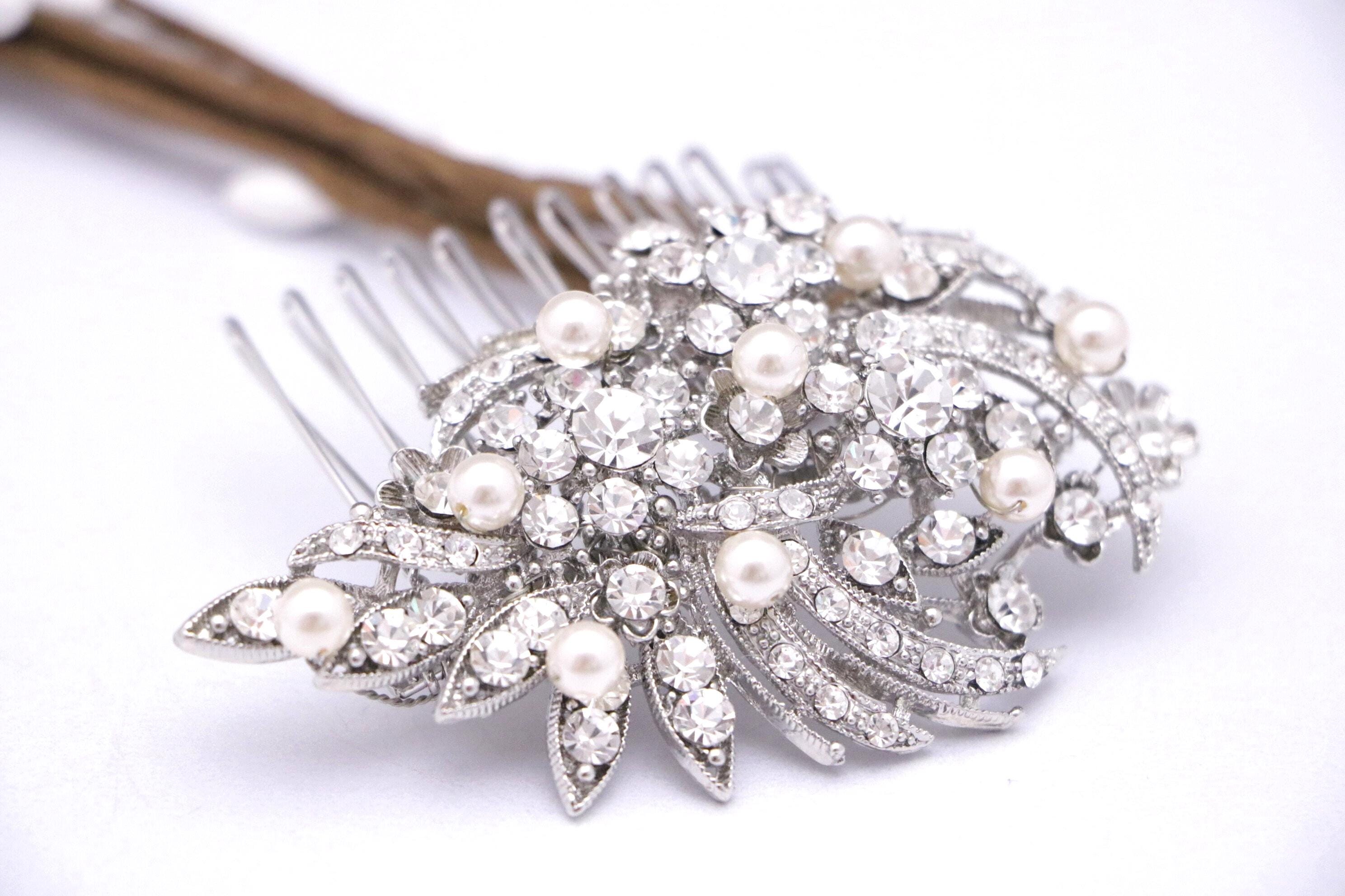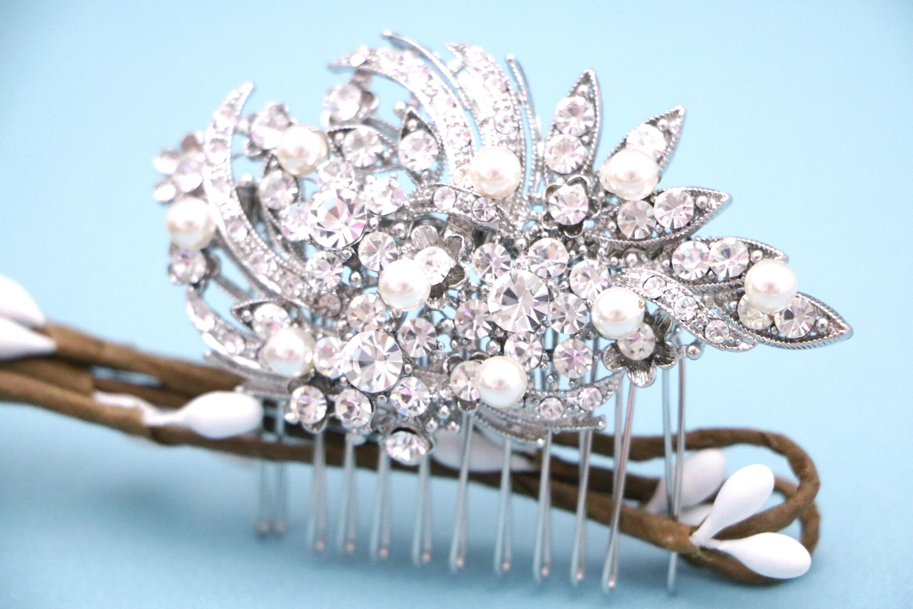 Silver and Pearl Bridal Hair Comb, Small Floral Design Hair Comb for Wedding, Bridal Hair Comb, Silver Wedding Hair Piece, Pearl Hair Comb