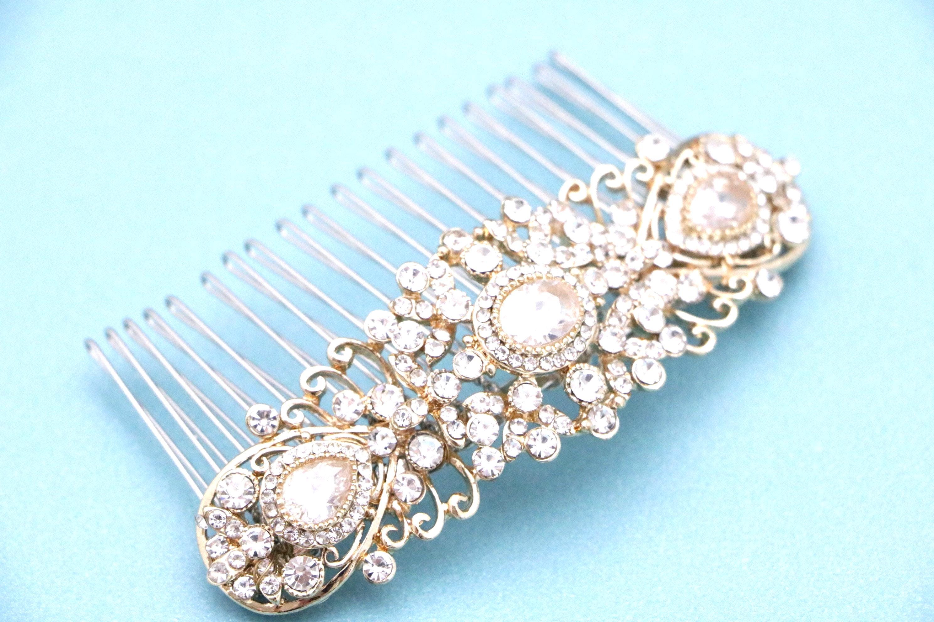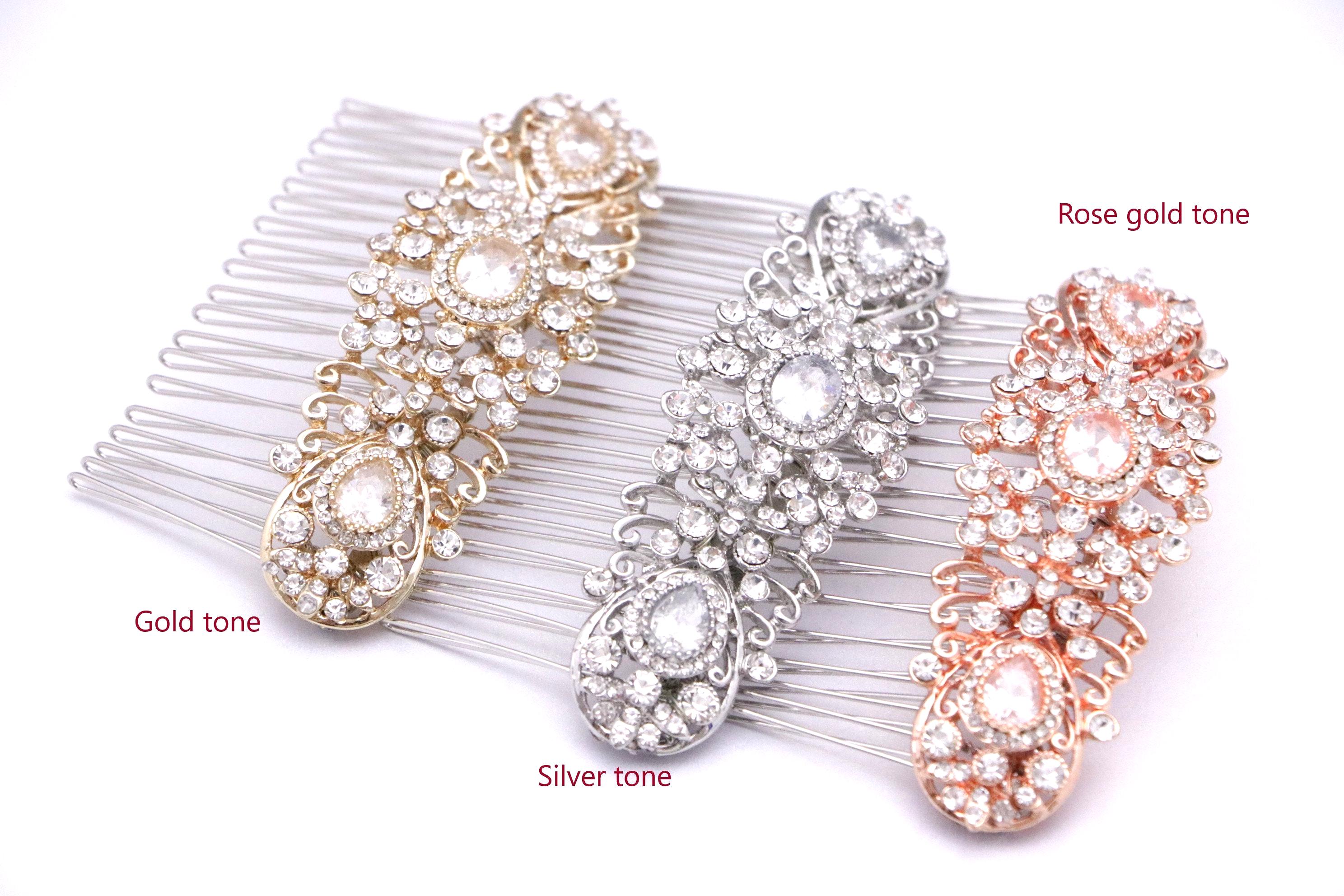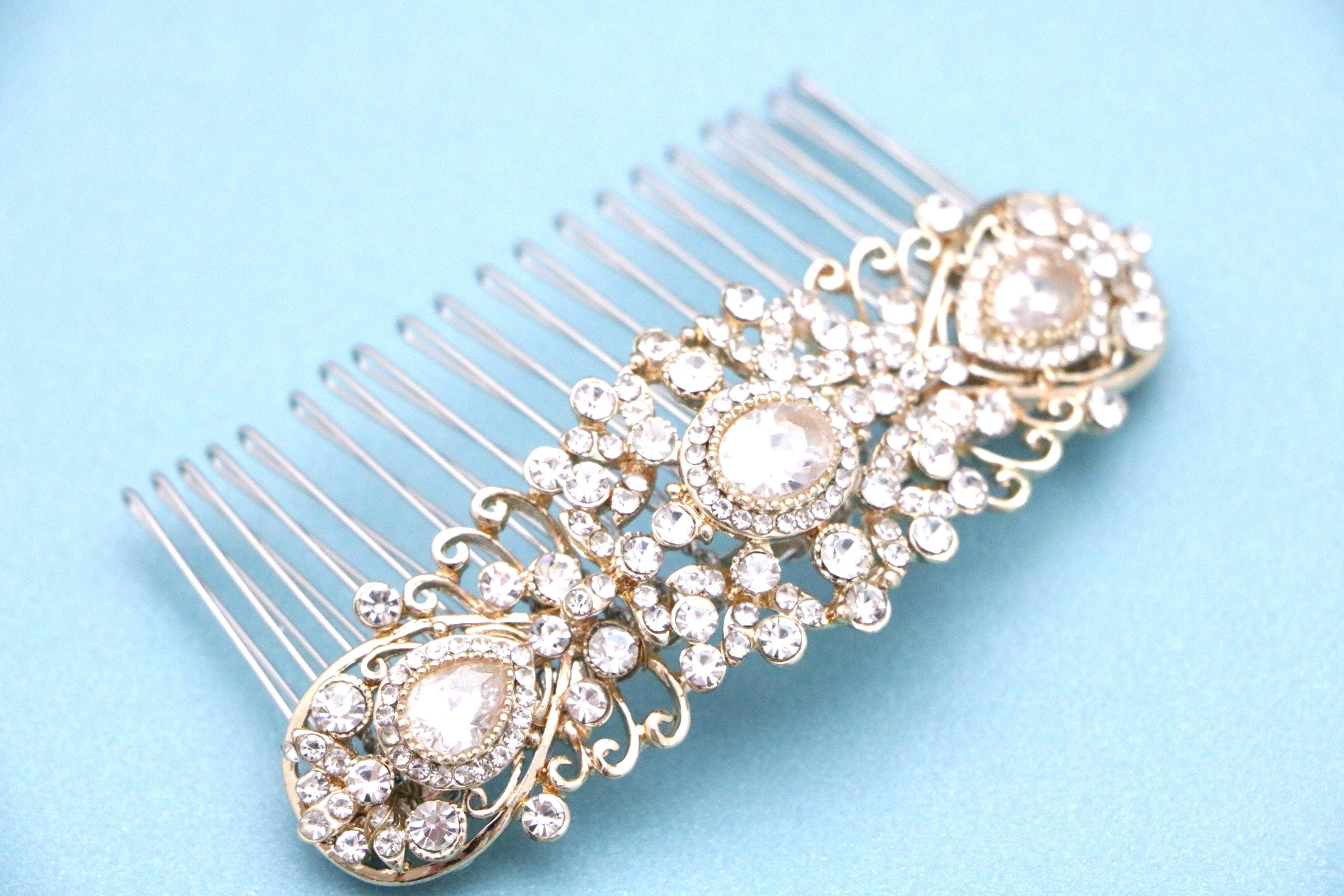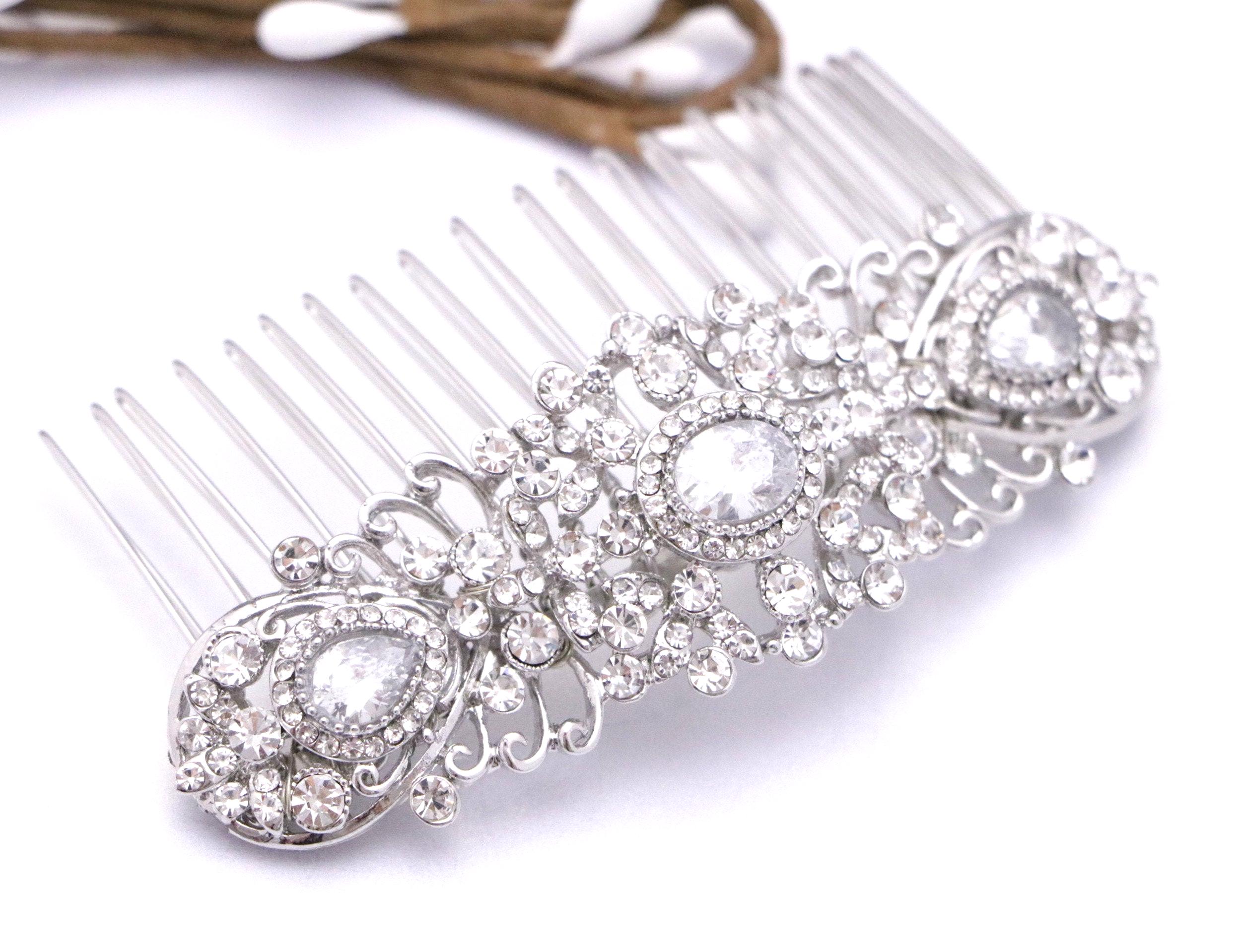 This beautiful Clear rhinestone hair comb is a perfect compliment for the wedding party and can easily fit into any hair style. The Rhinestone part measured approximately 3.75 X 1.25 inches.