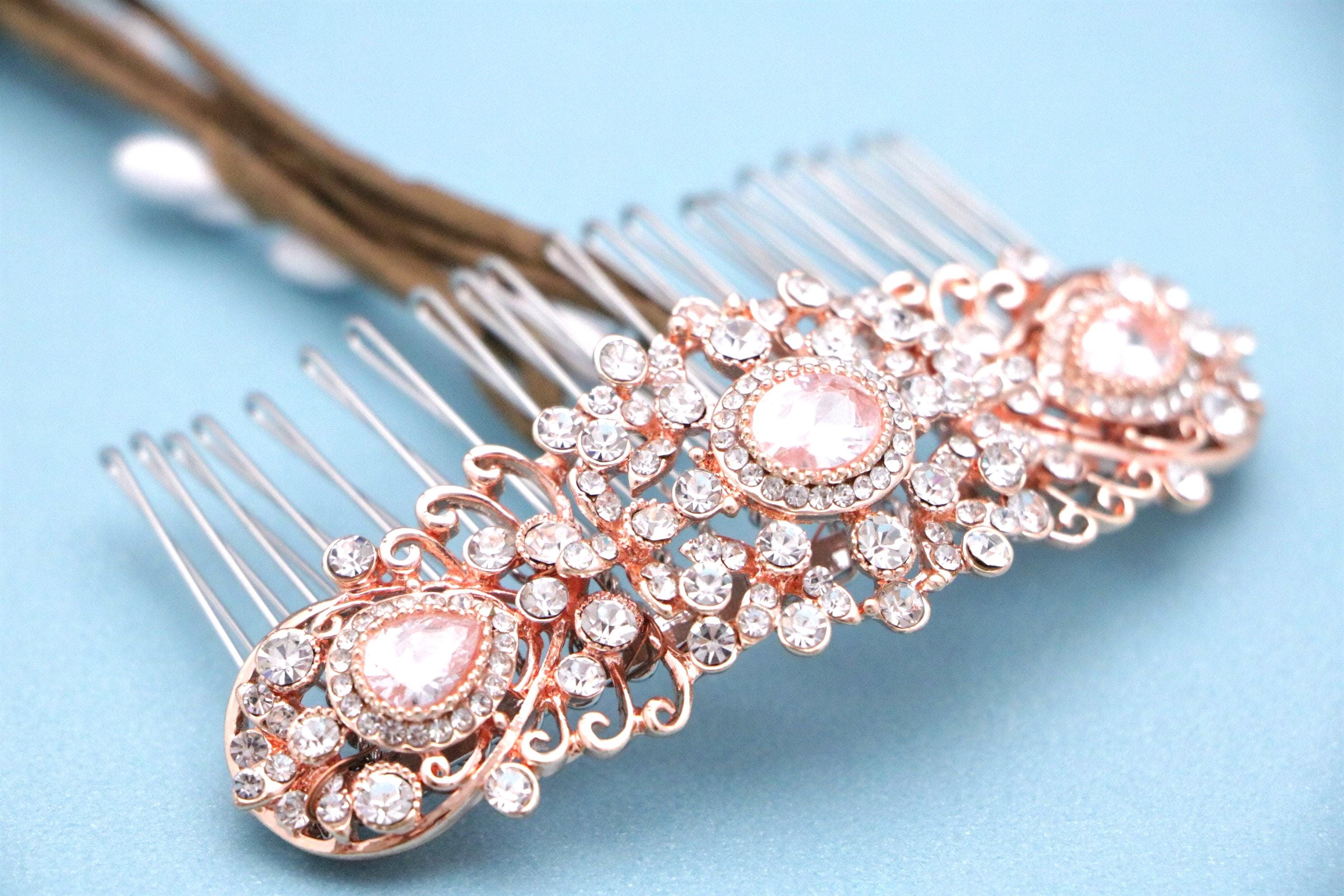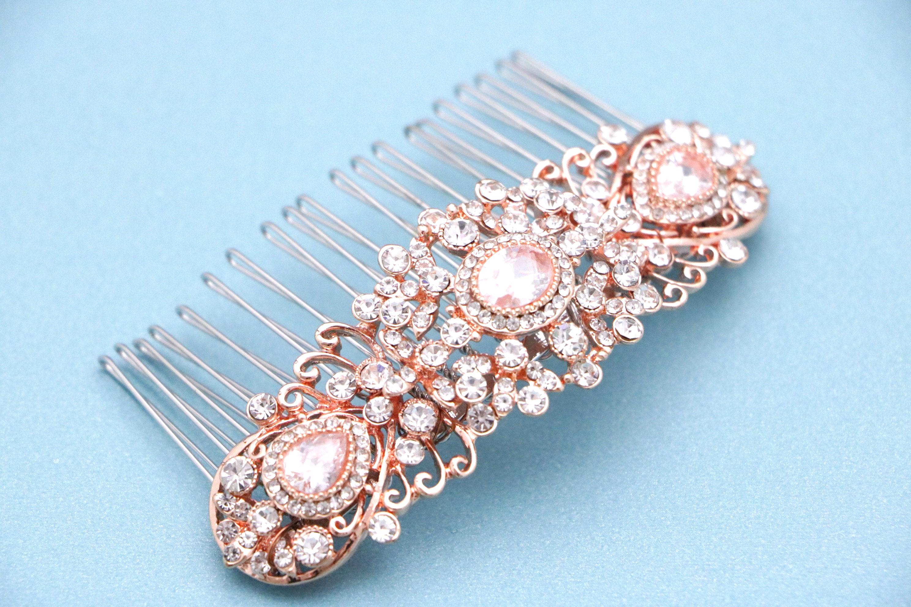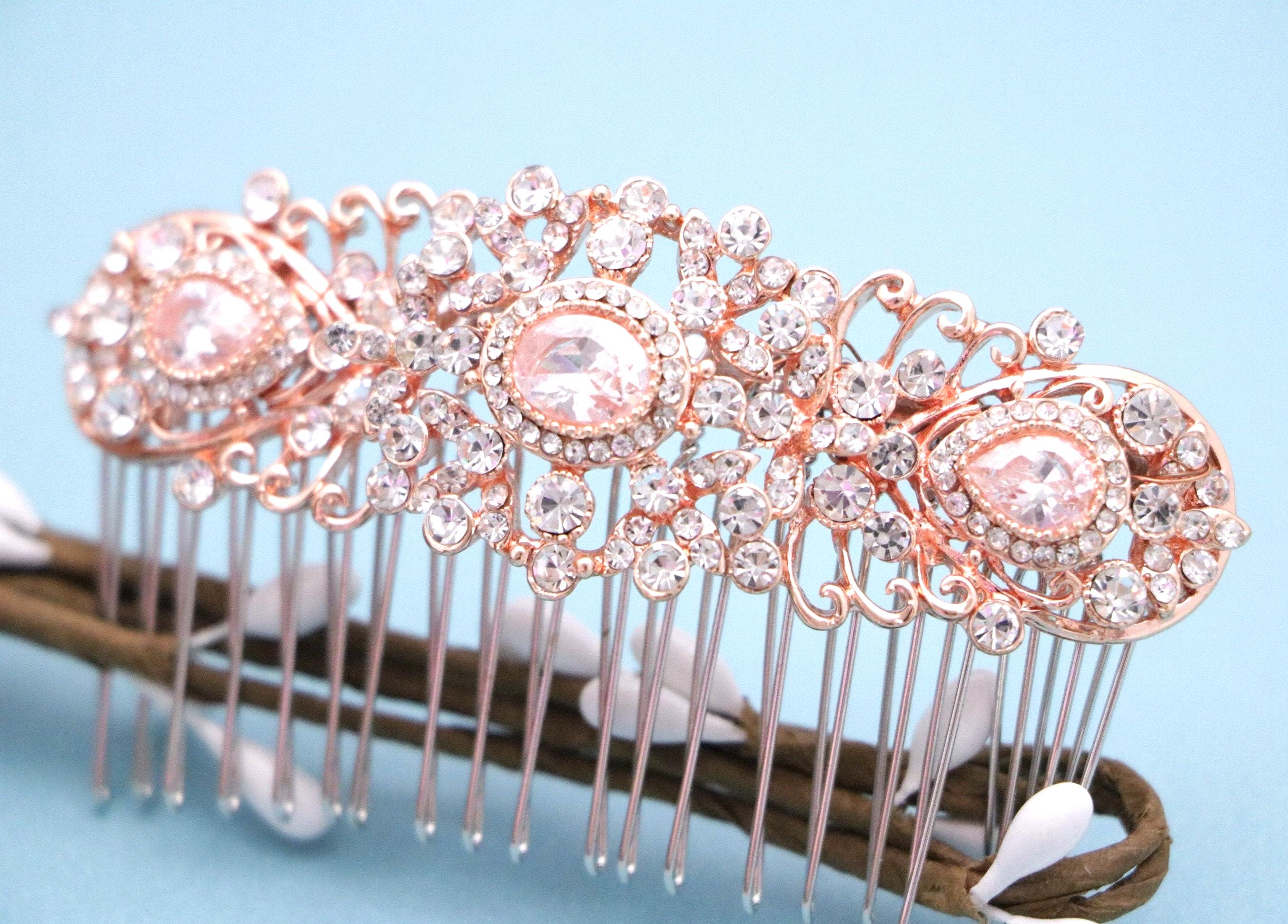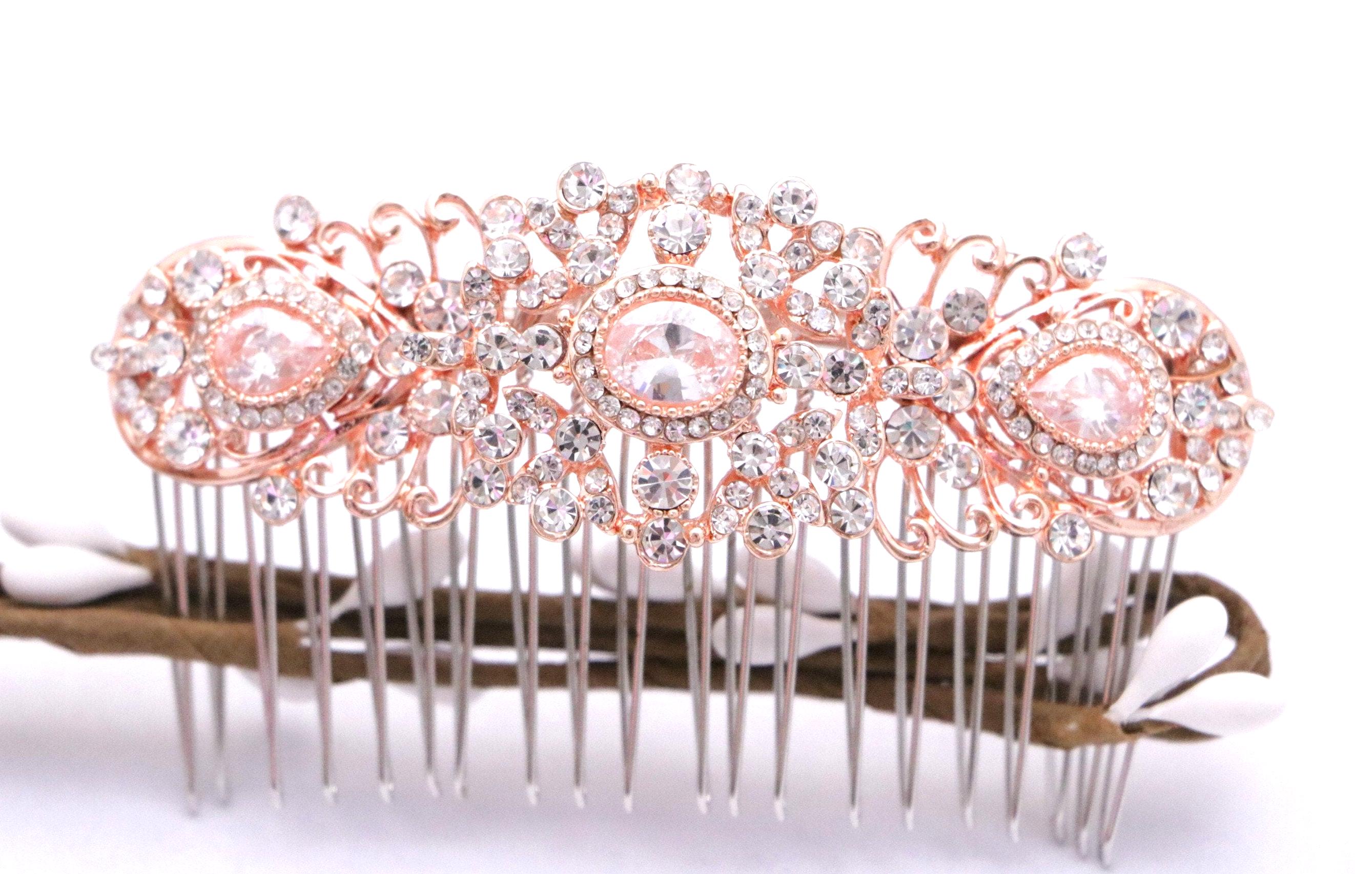 This beautiful Clear rhinestone hair comb is a perfect compliment for the wedding party and can easily fit into any hair style. The Rhinestone part measured approximately 3.75 X 1.25 inches.