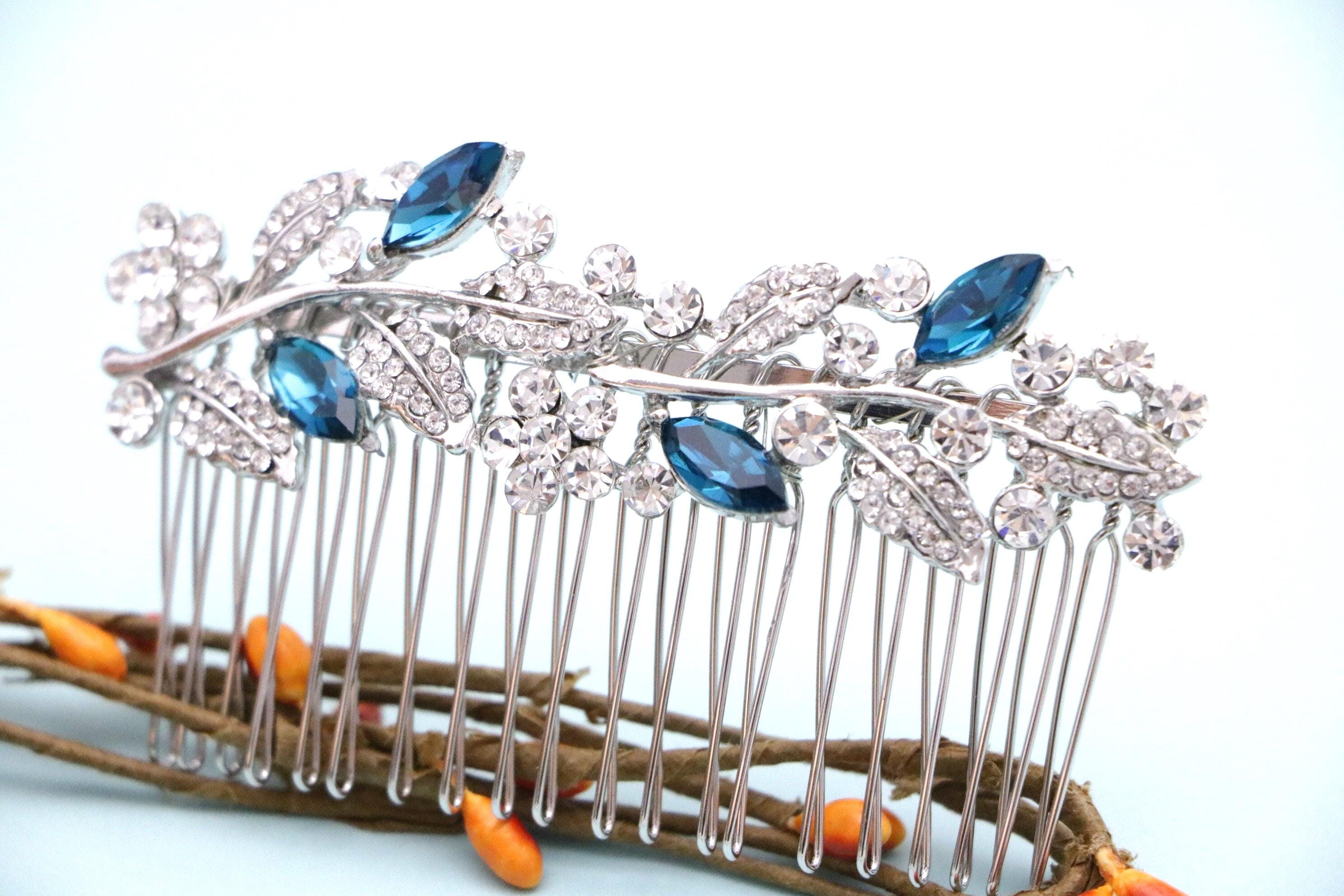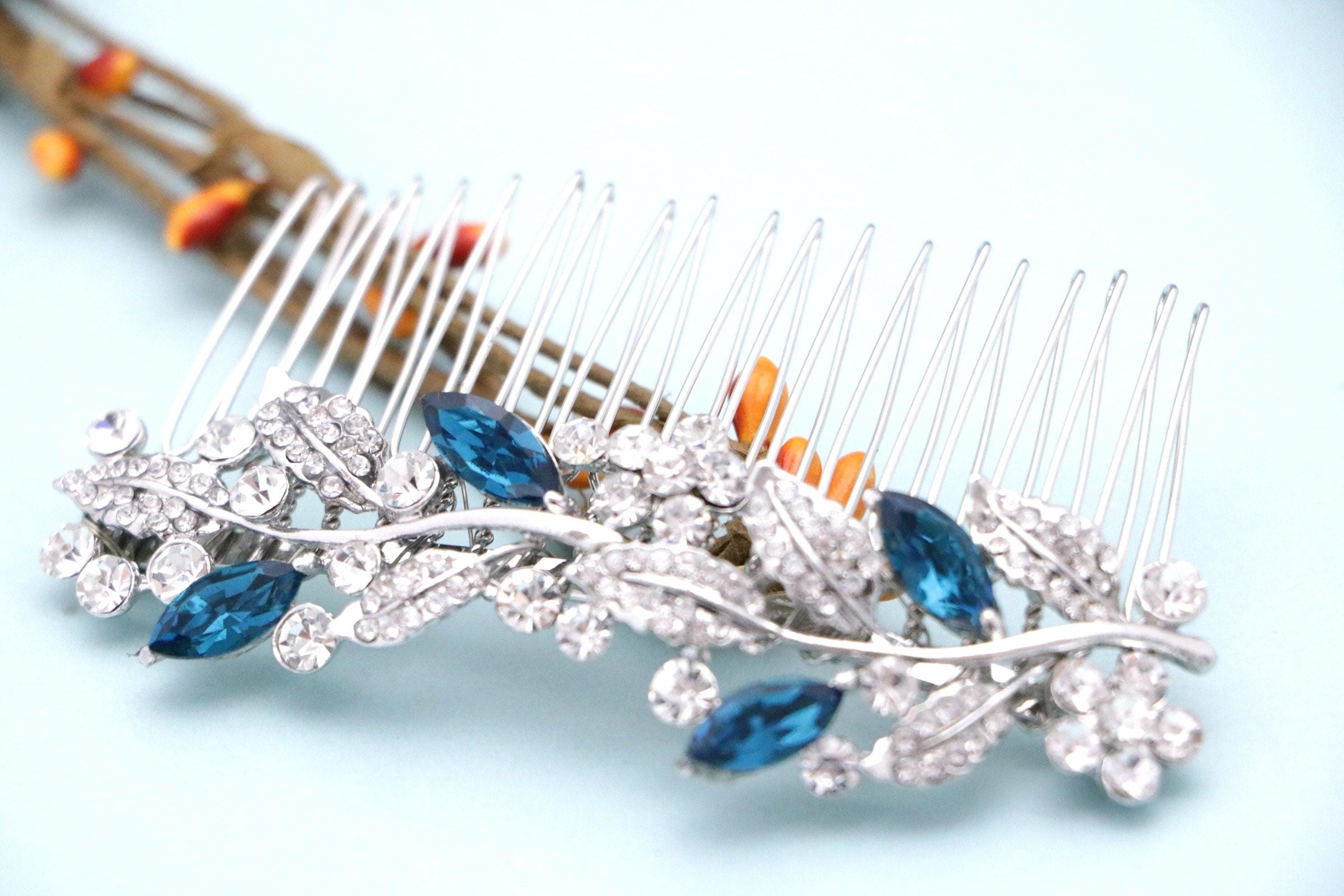 Blue bridal hair comb Something blue hair comb Sapphire blue Crystal hair comb Royal blue wedding Rhinestone hair comb Navy blue hairpiece