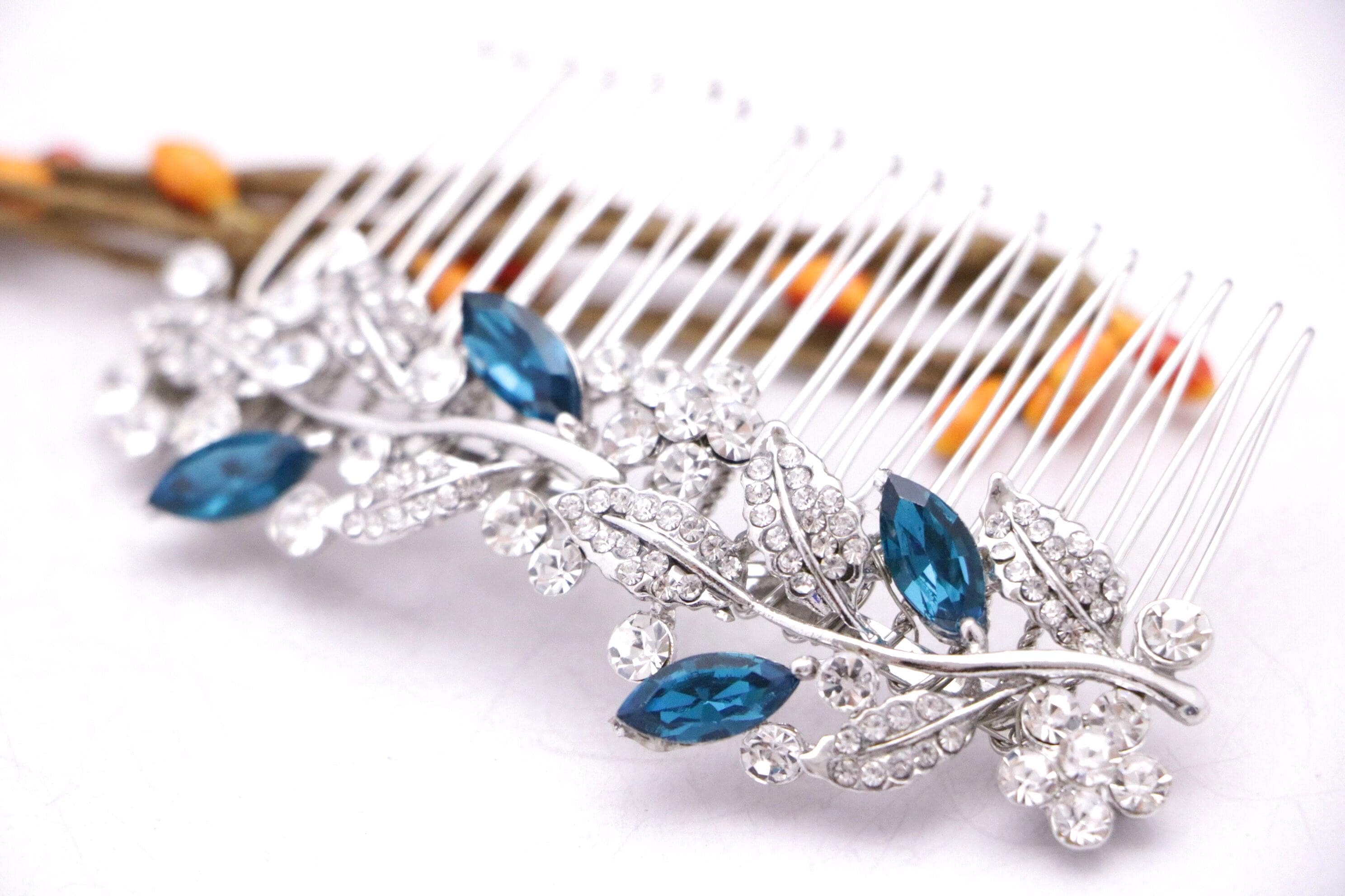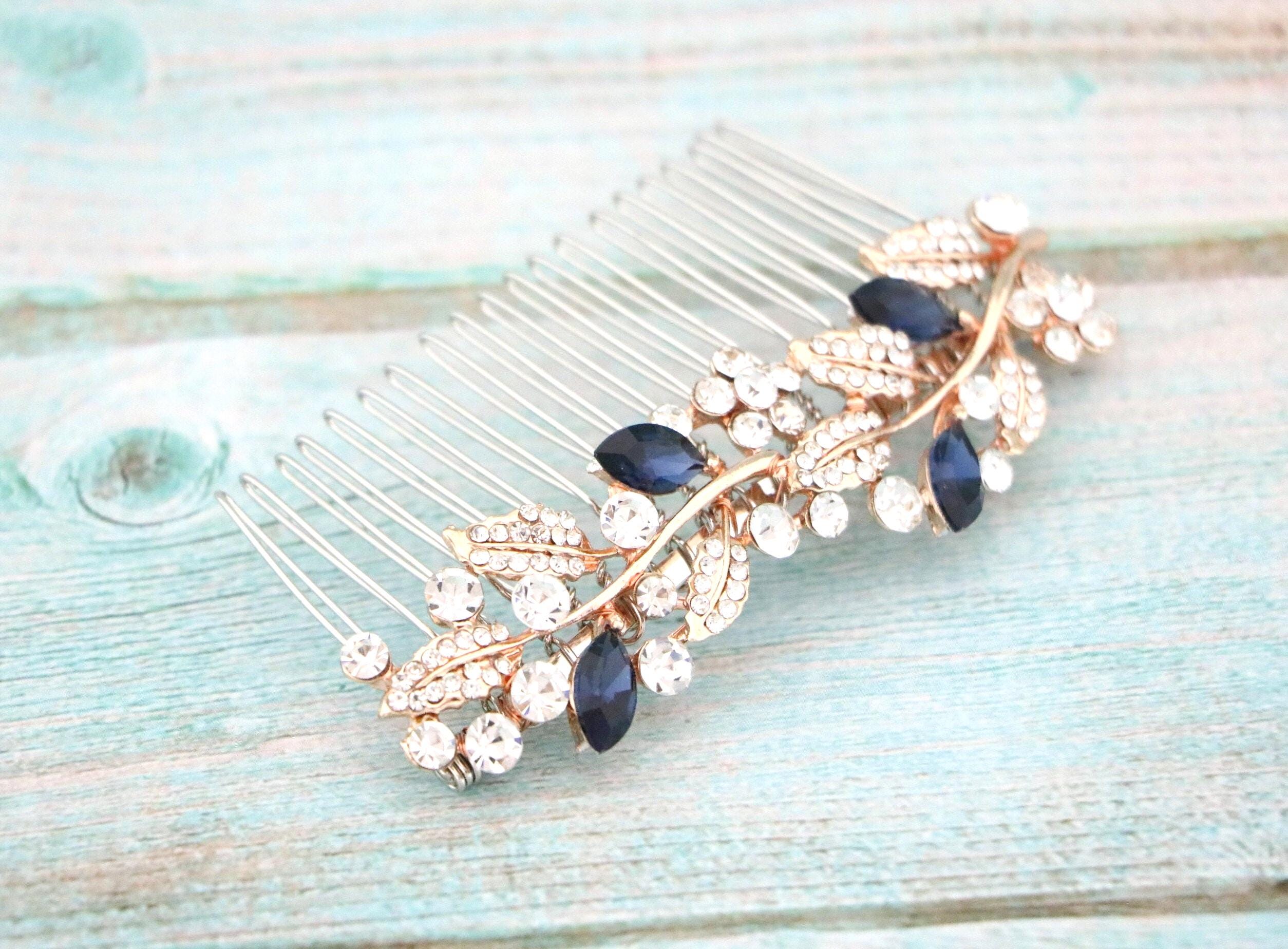 Blue bridal hair comb Something blue hair comb Sapphire blue Crystal hair comb Royal blue wedding Rhinestone hair comb Navy blue hair piece