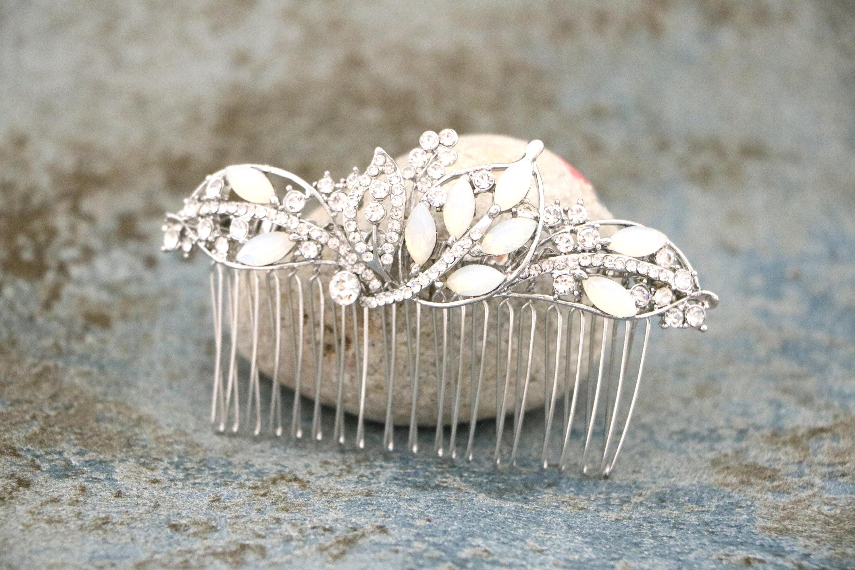 Opal Crystal Bridal Comb, White Opal Rhinestone Crystal Comb Crystal, Wedding Crystal Hair Comb, Bridal Headpiece, White Opal Comb