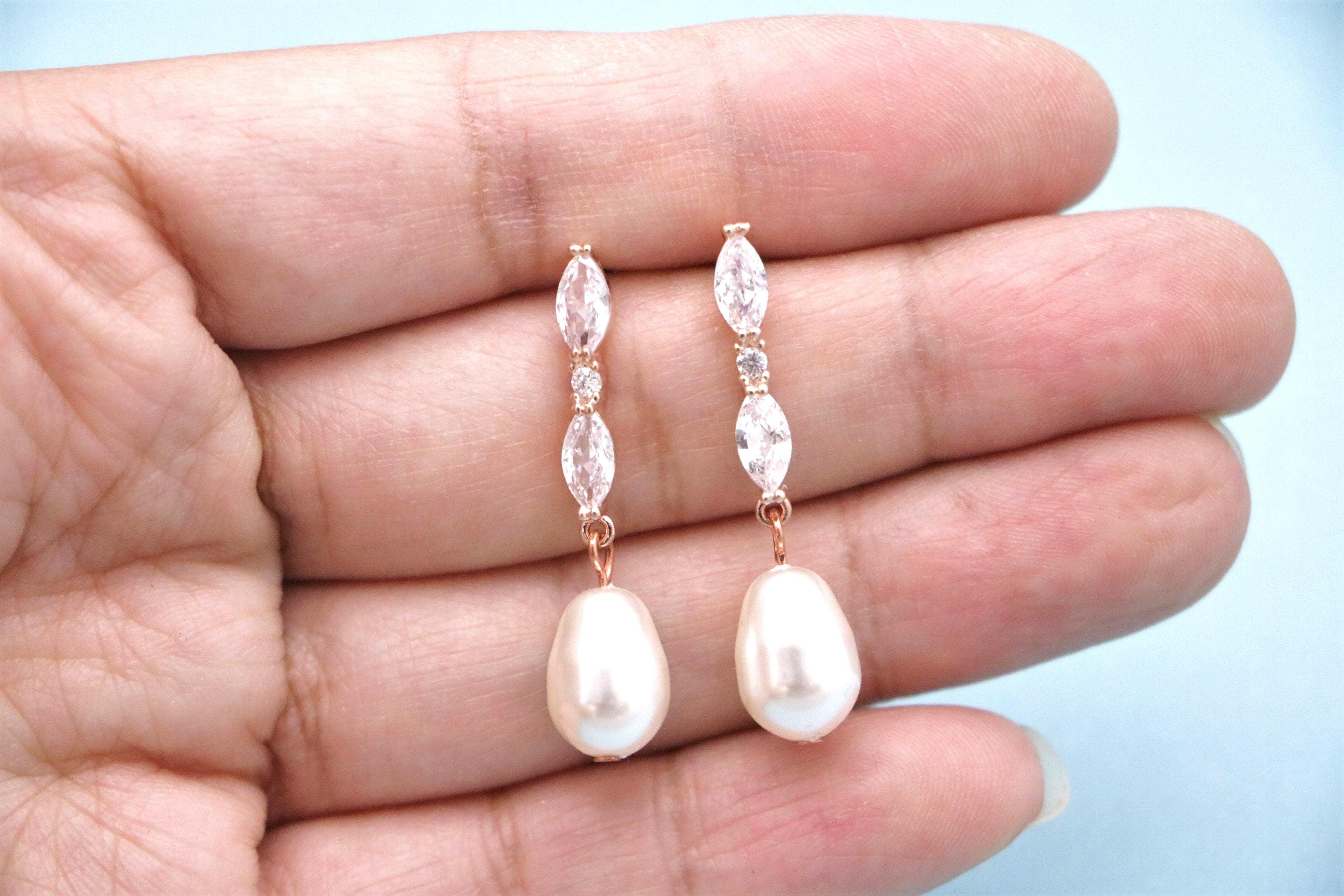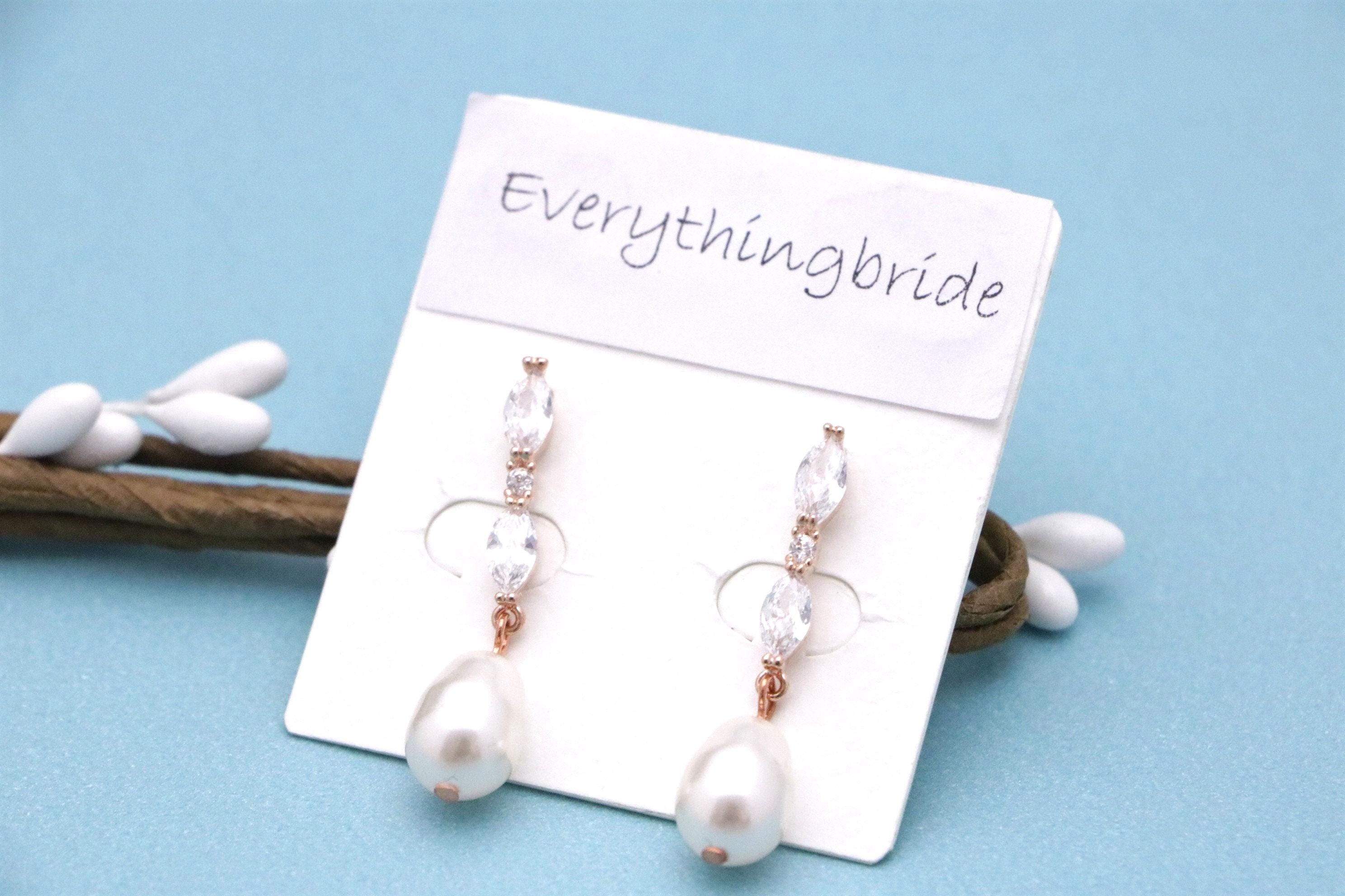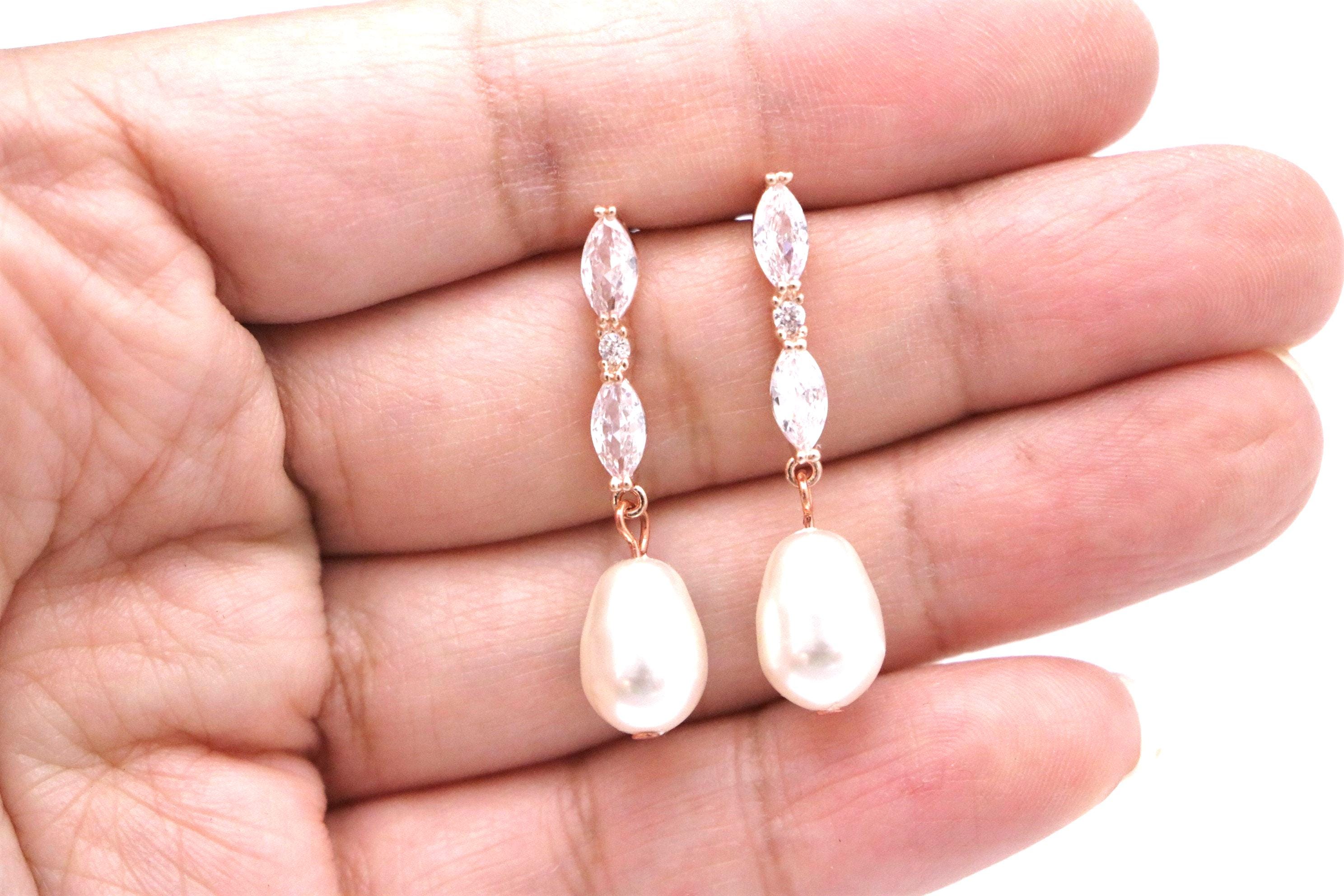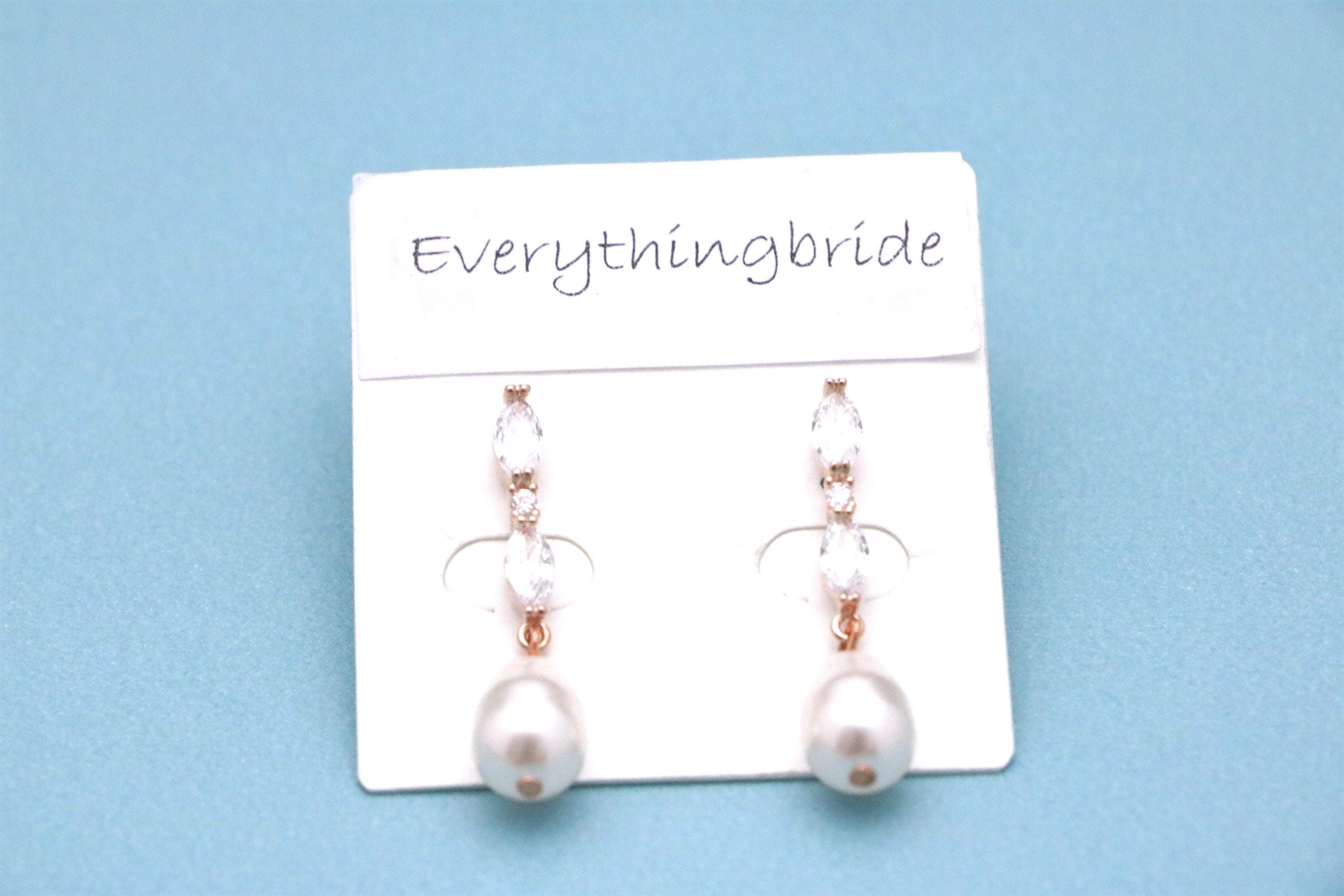 Pearl Bridal Drop Earrings Gold Crystal Wedding Earrings Petite Pearl Dangle Bridal Earrings Pearl and Gold Bridal Studs