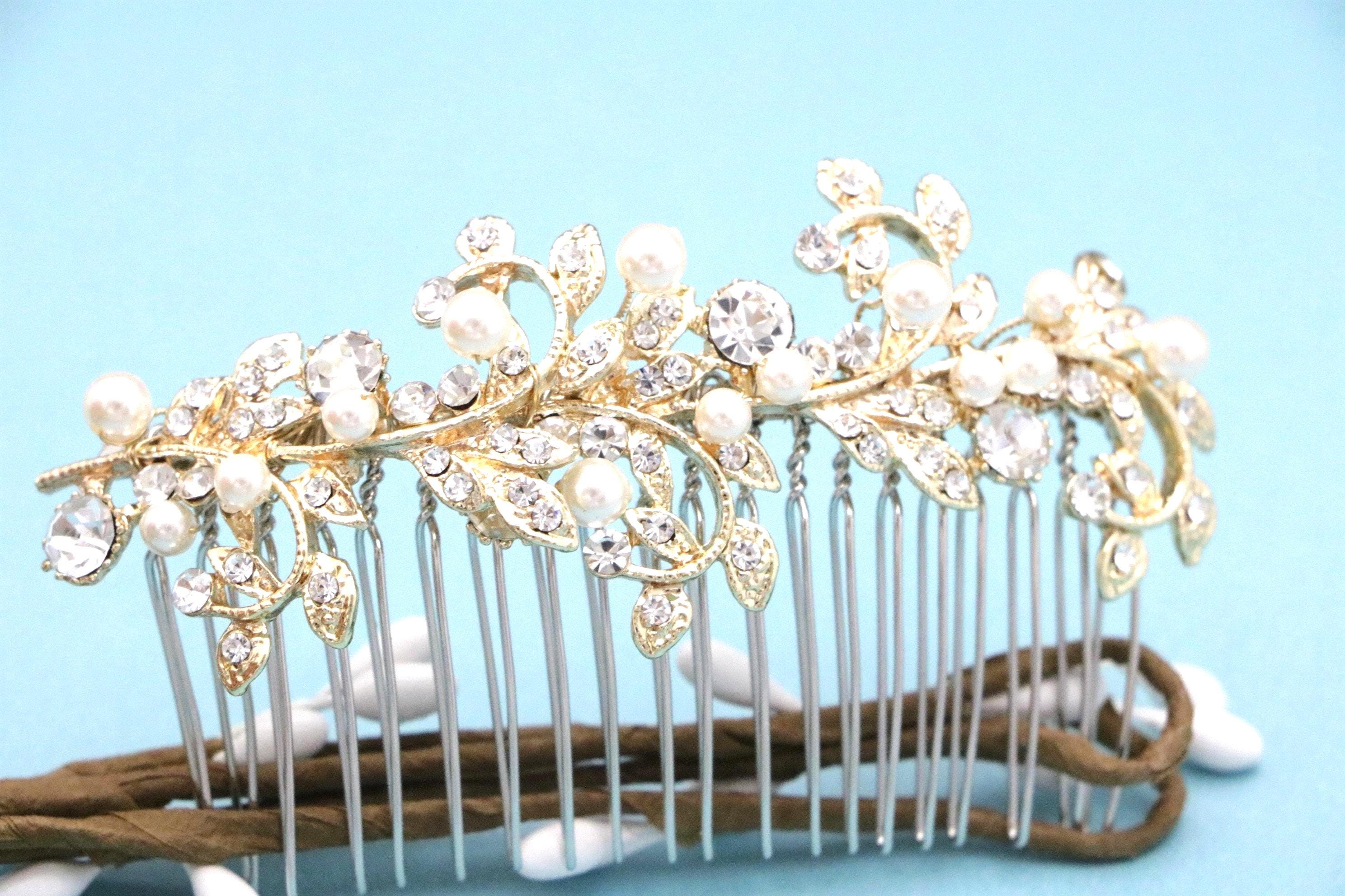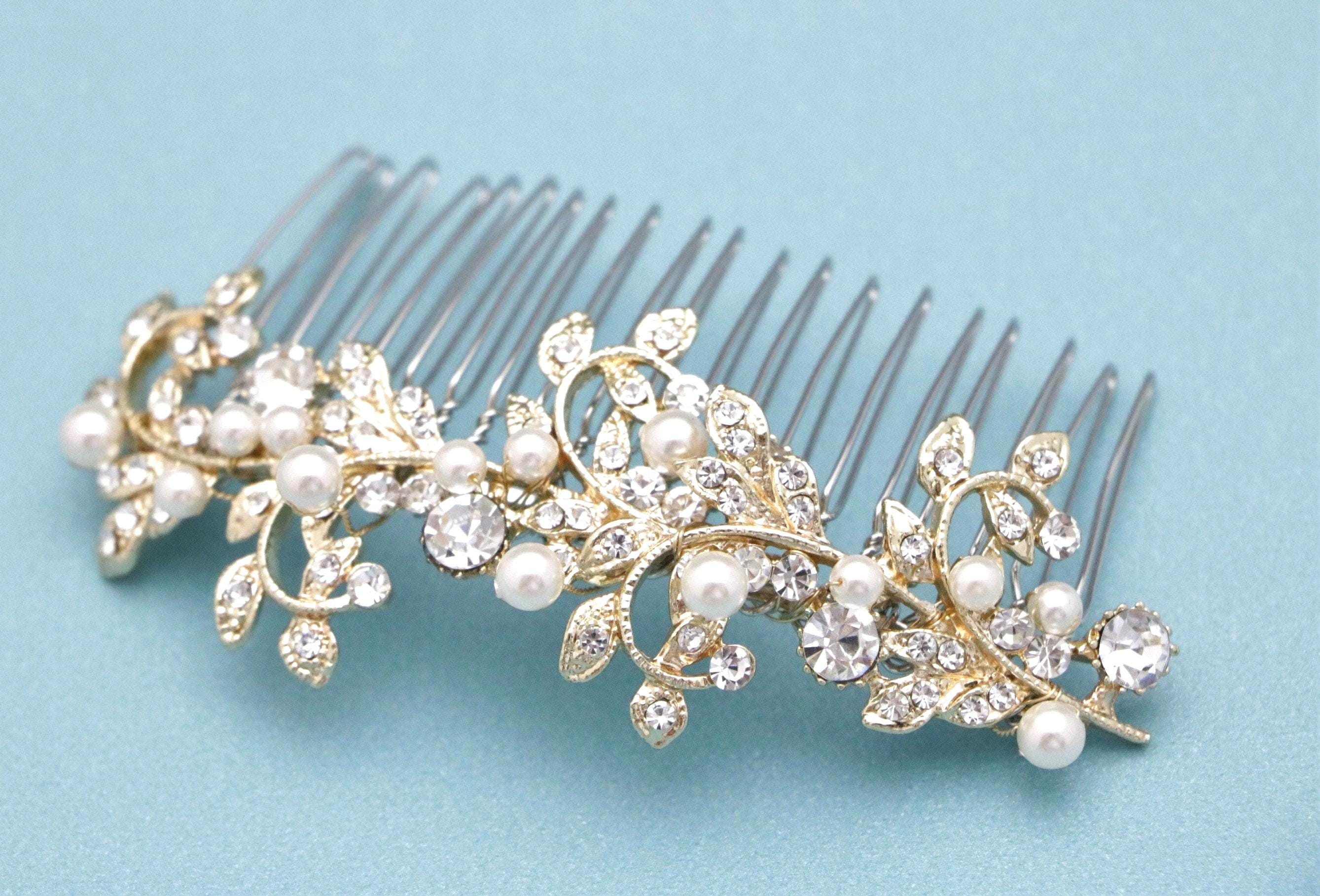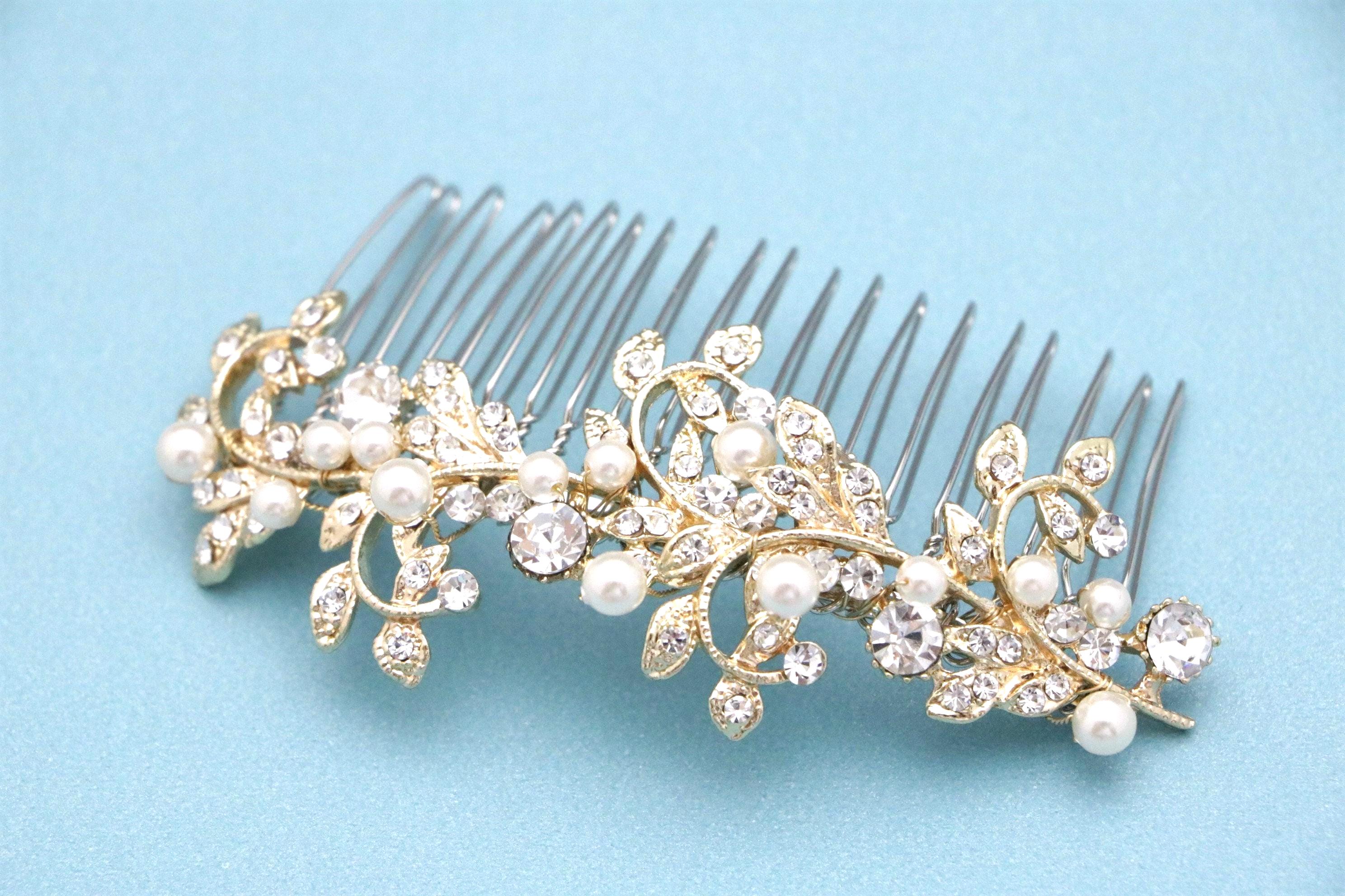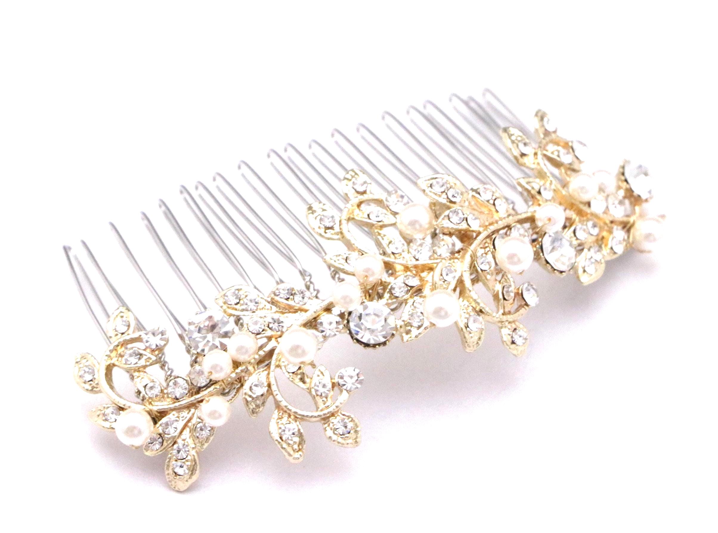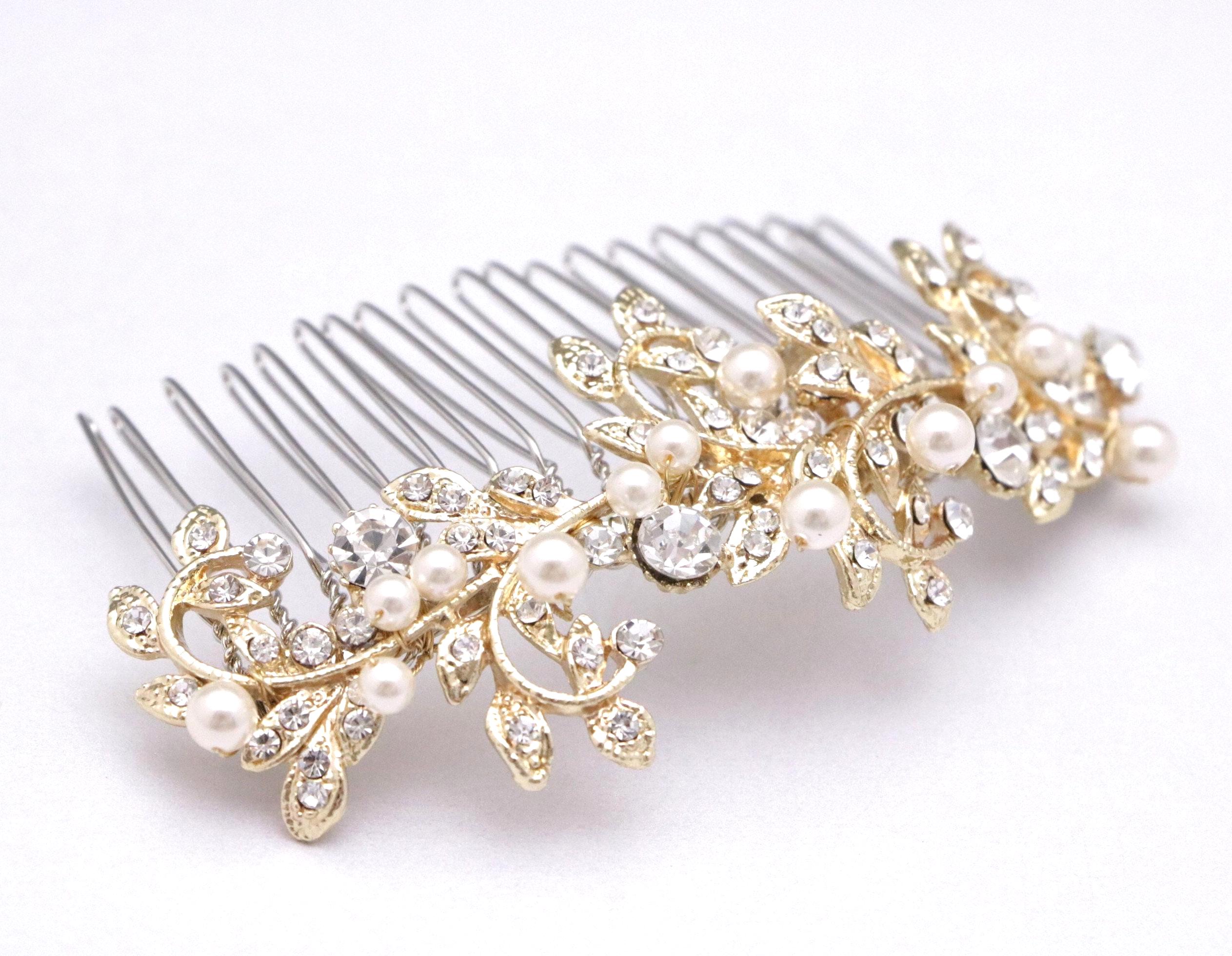 Gold Bridal Hair Comb, Crystal and Freshwater Pearl Wedding Comb, Silver Wedding Hair Comb