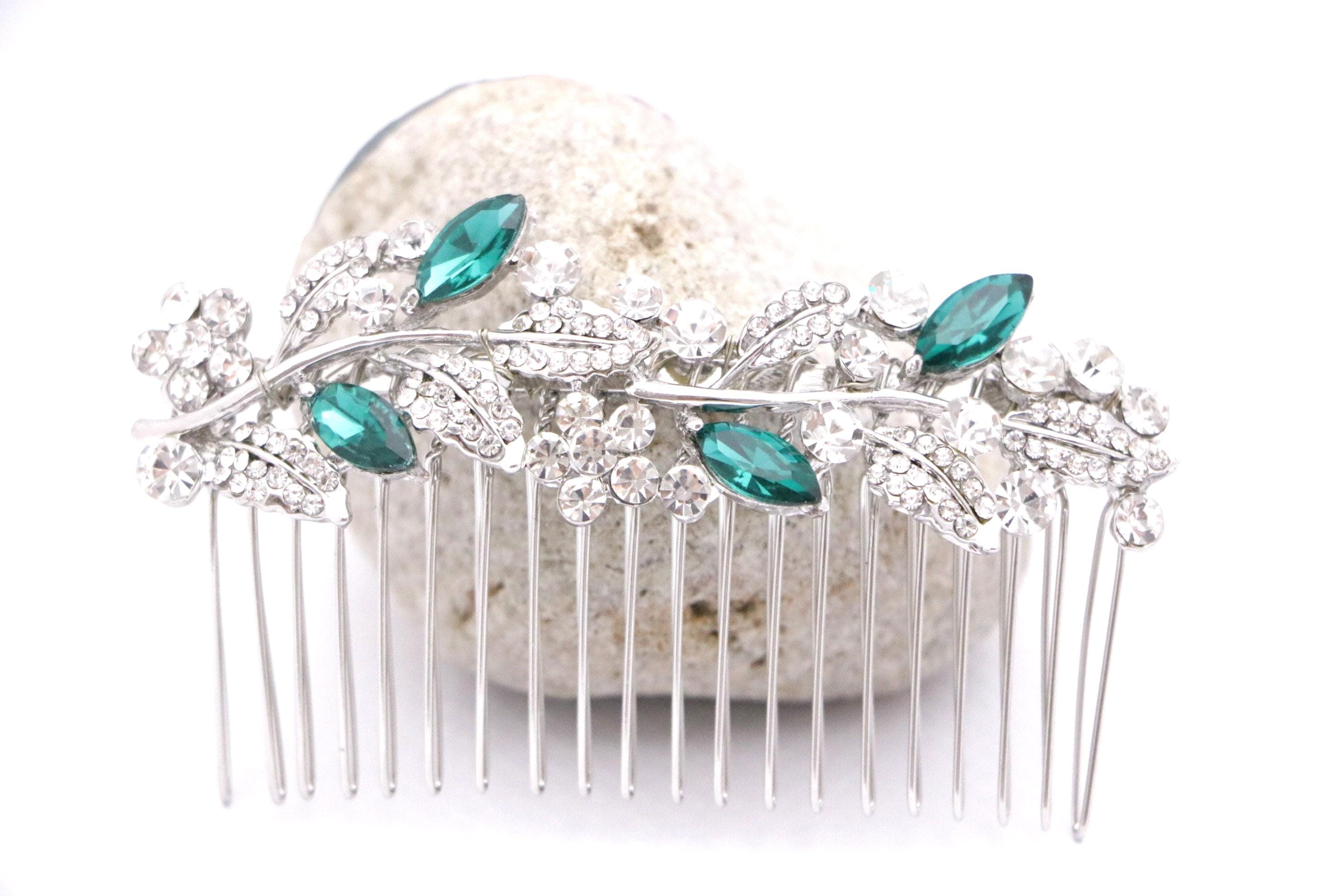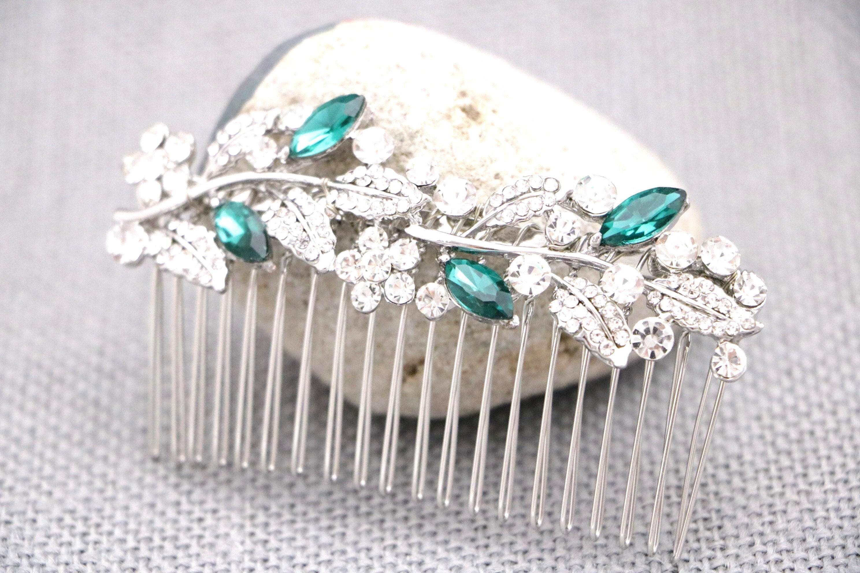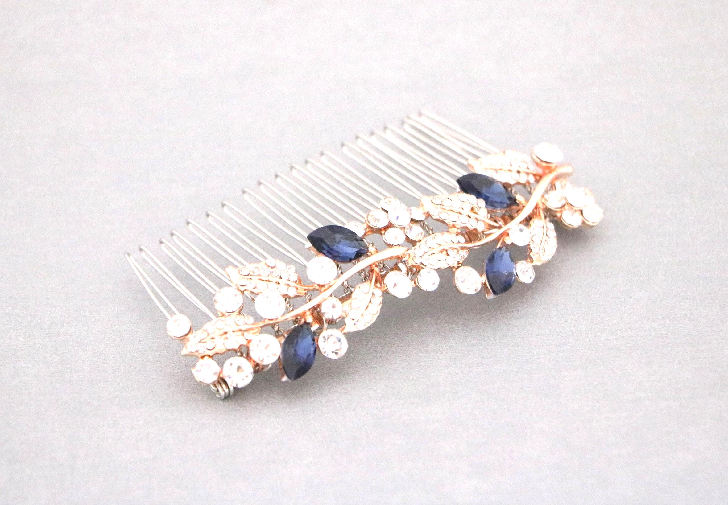 This beautiful Clear rhinestone and Sapphire crystal hair comb is a perfect compliment for the wedding party and can easily fit into any hairstyle. The Rhinestone part measured approximately 3.5 X 1 inch.