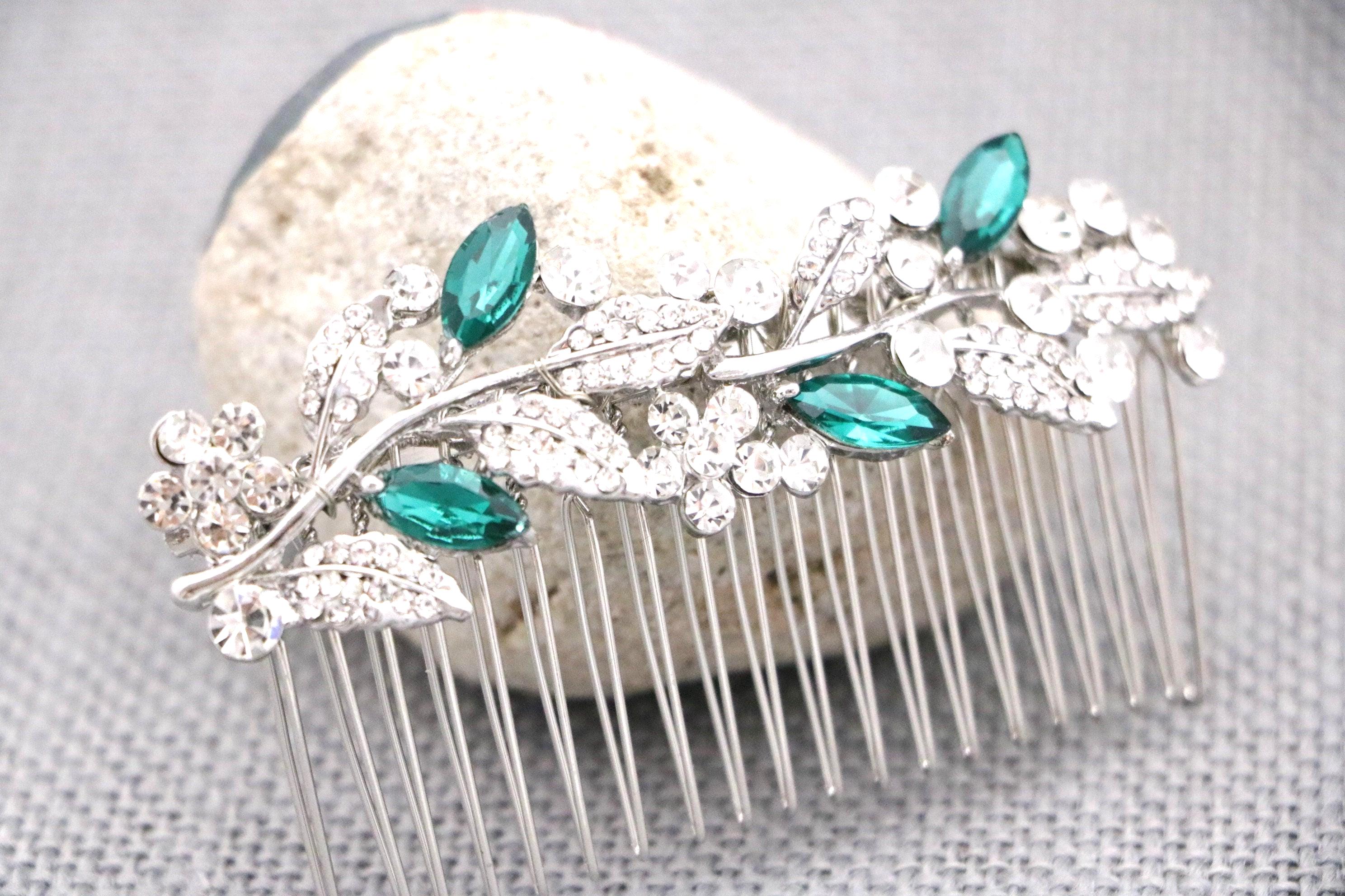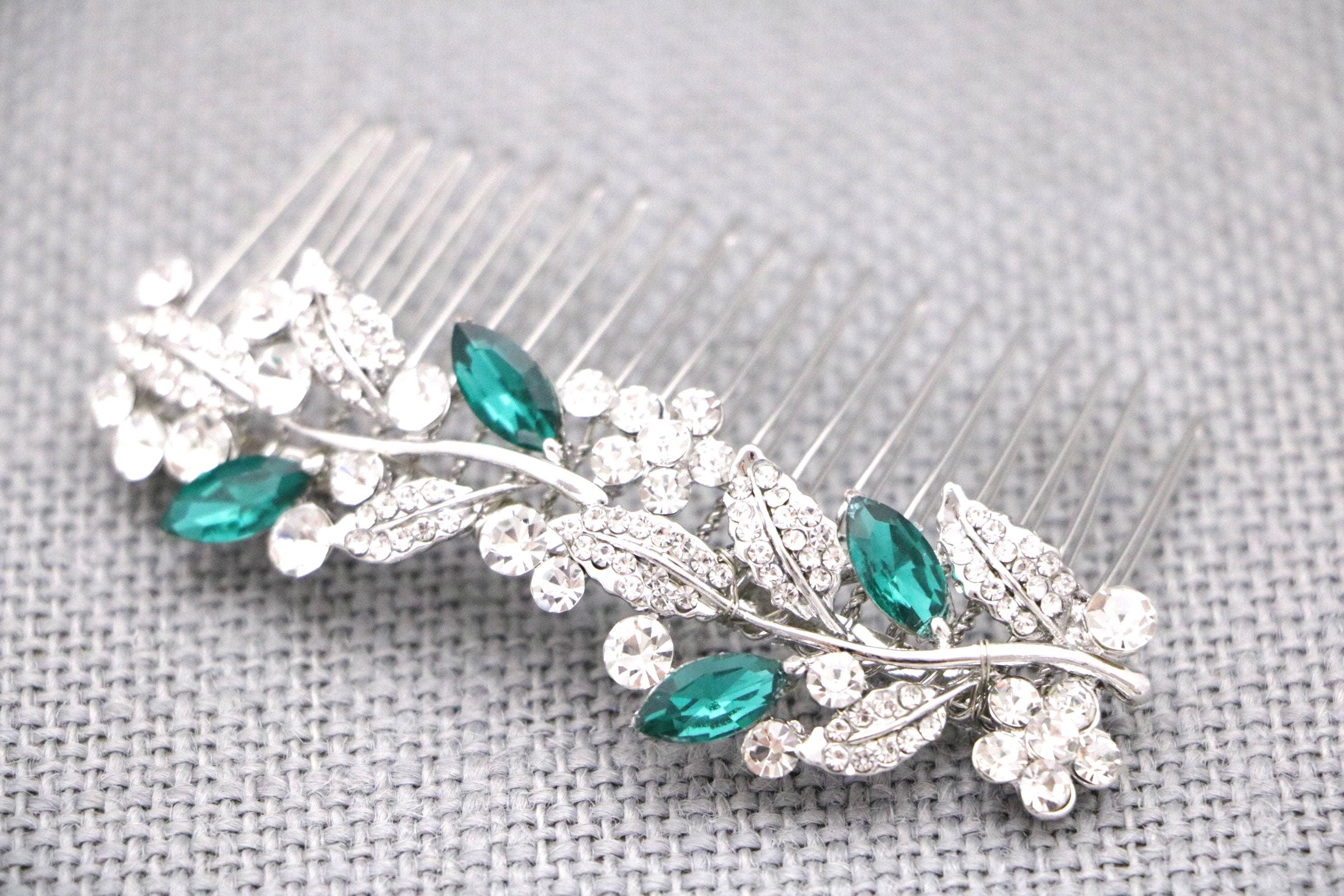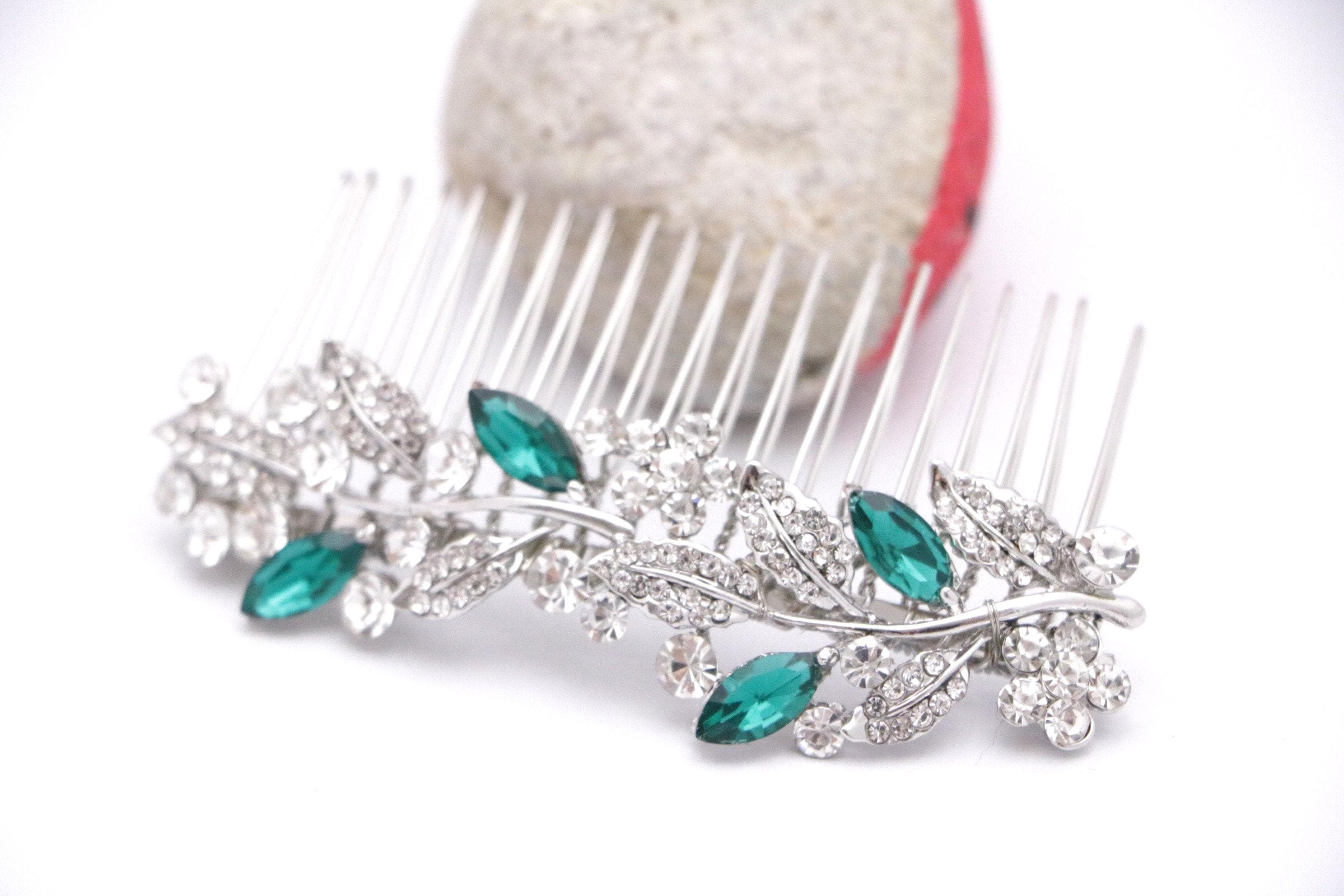 This beautiful Clear rhinestone and Sapphire crystal hair comb is a perfect compliment for the wedding party and can easily fit into any hairstyle. The Rhinestone part measured approximately 3.5 X 1 inch.