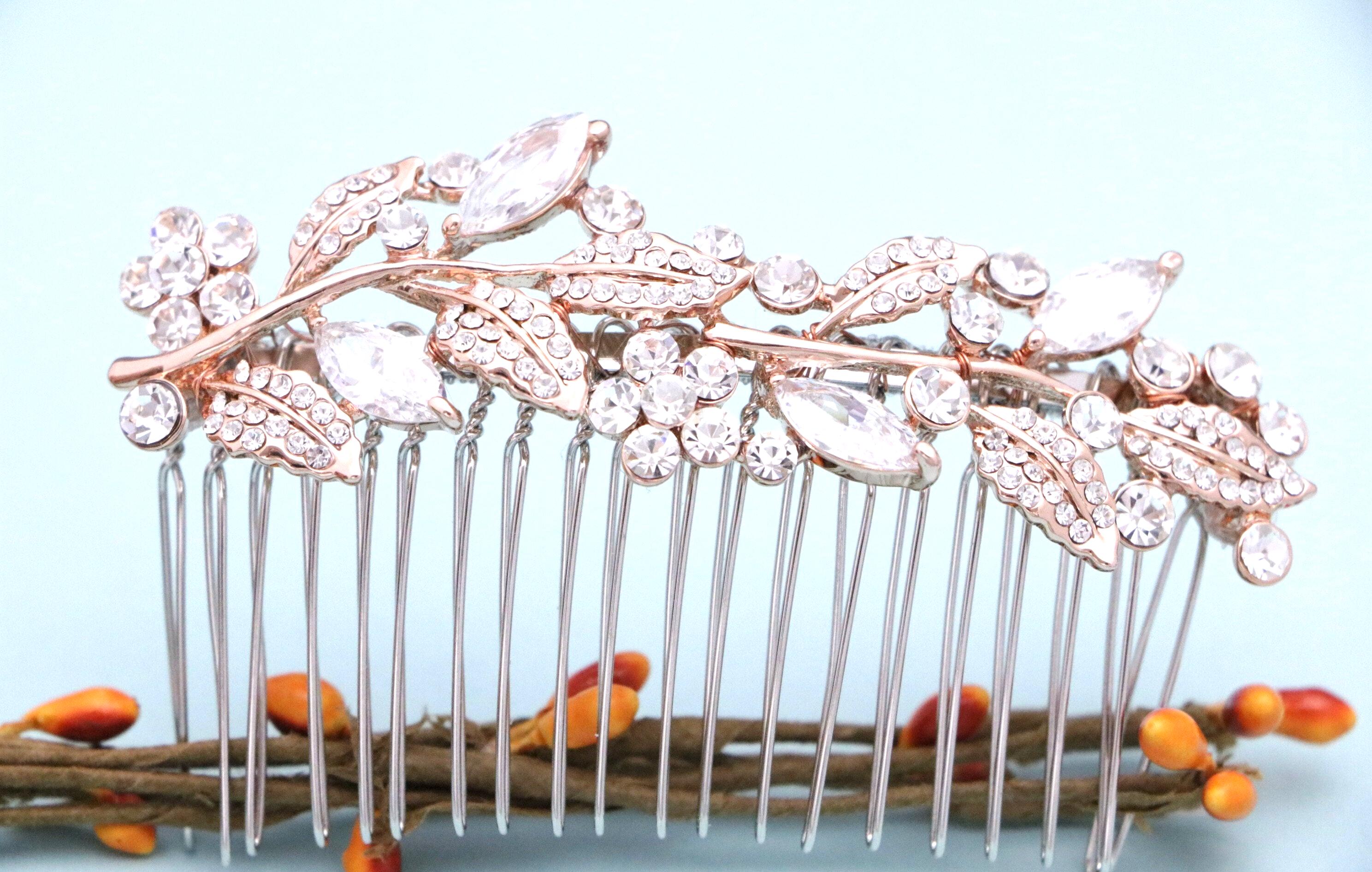 Bridal Comb Rose Gold, Rhinestone Comb, Bridal Comb Crystal, Wedding Crystal Hair Comb, Hair Comb, Wedding Headpiece Rose Gold
