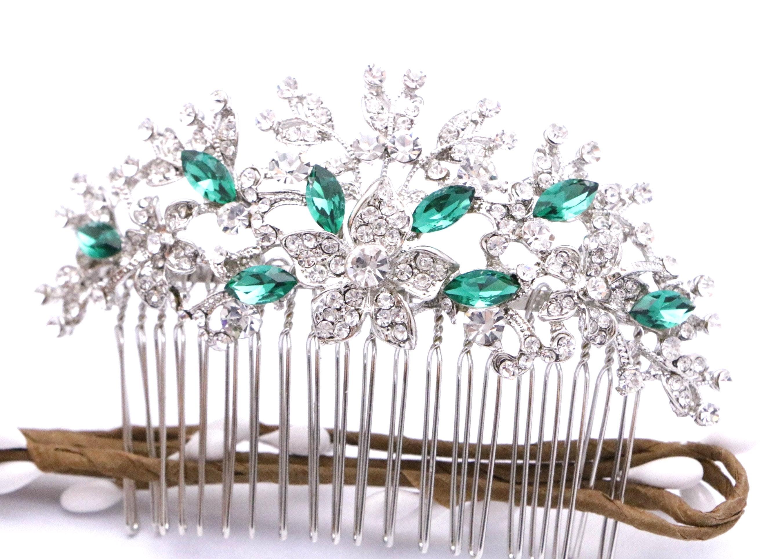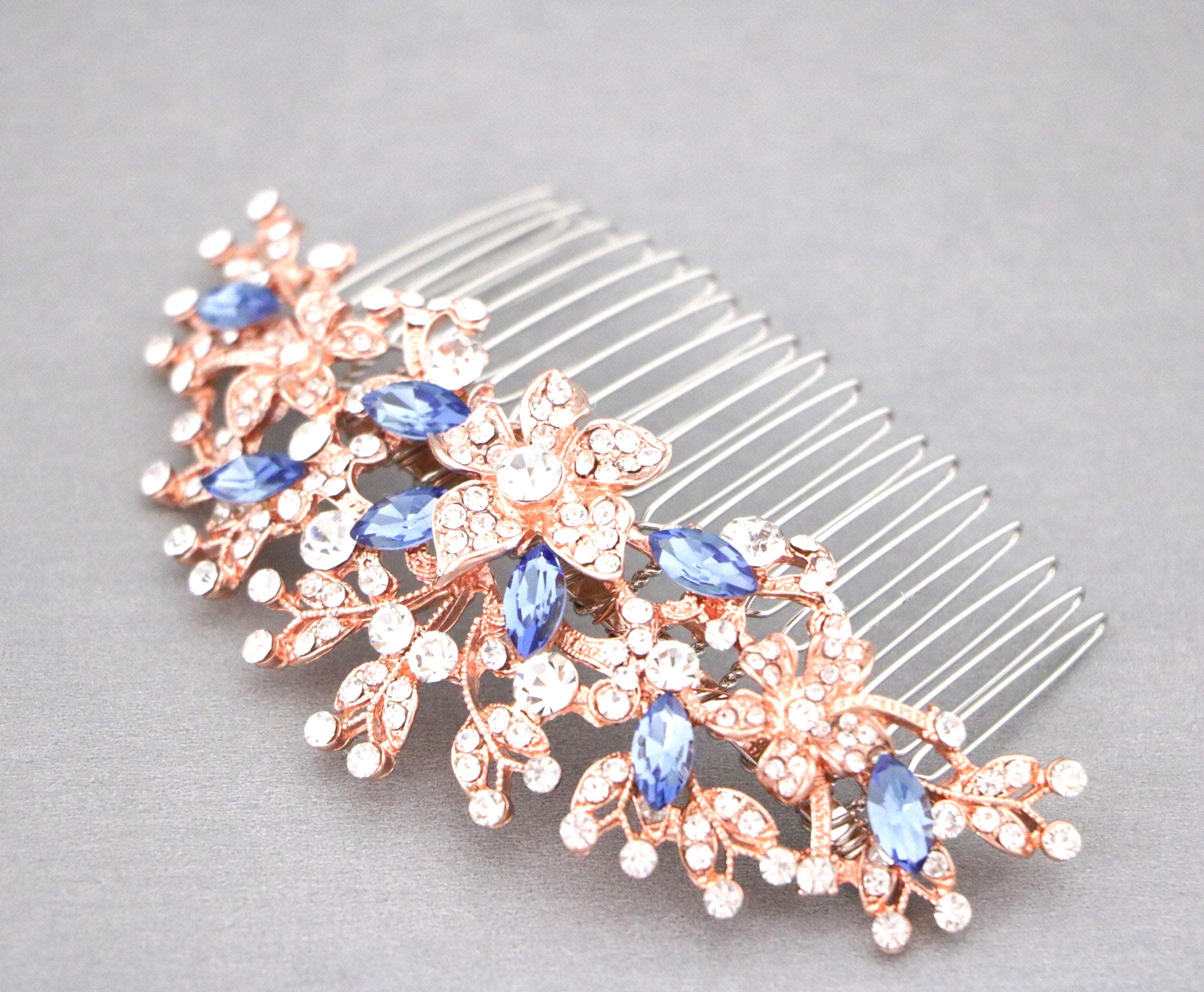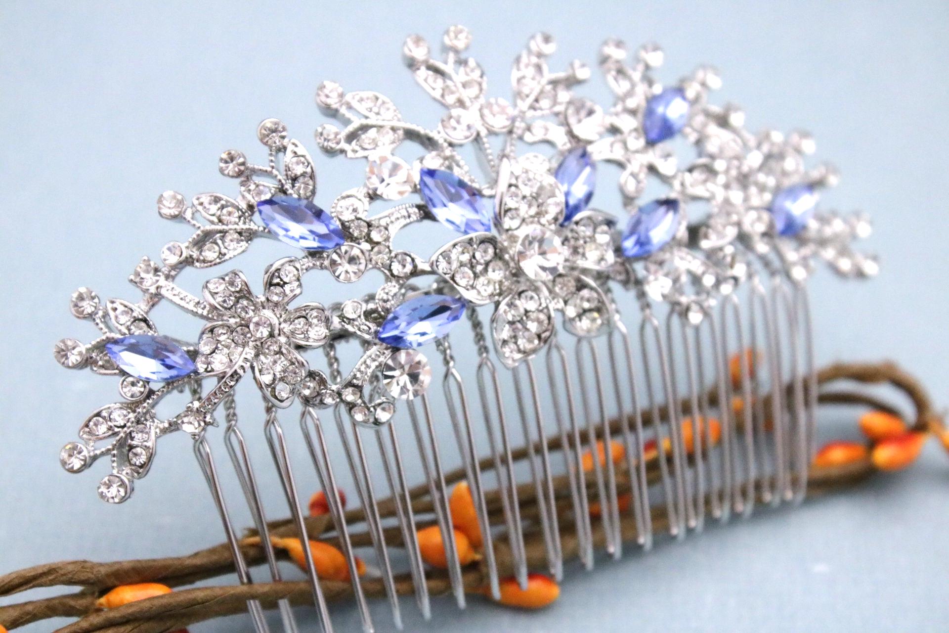 This beautiful Clear rhinestone and Sapphire crystal hair comb is a perfect compliment for the wedding party and can easily fit into any hair style. The Rhinestone part measured approximately 4 X 1.75 inches.