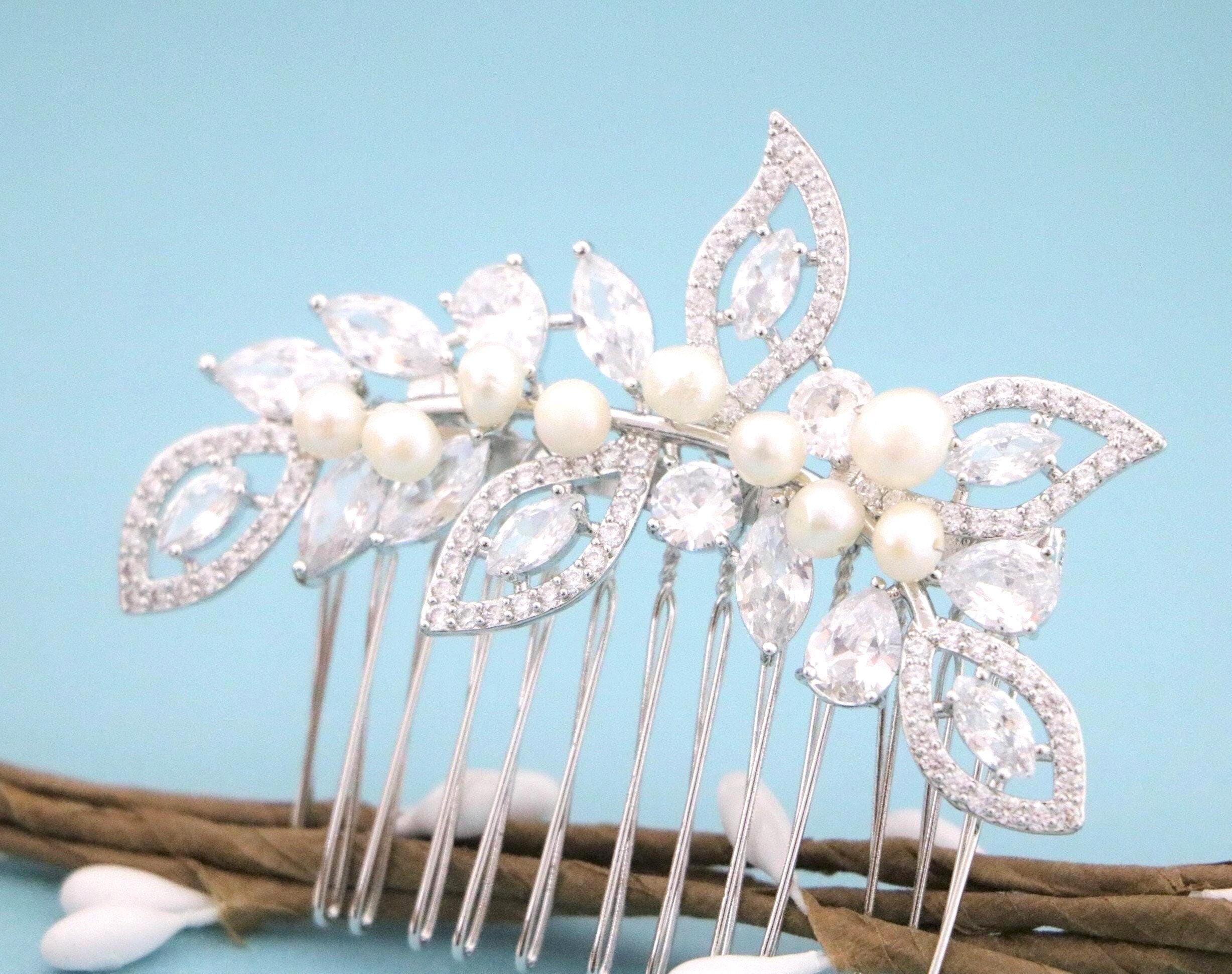 Bridal Hair Comb for a Bride, Cz Teardrop Marquise Vine Hair piece, Crystal Hair Jewelry, Wedding accessories, Pearl comb for a Bride