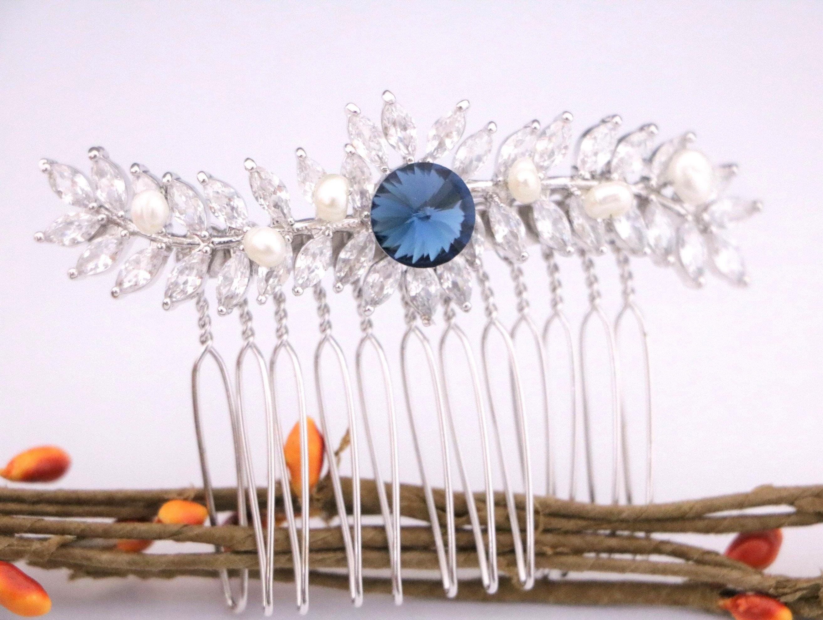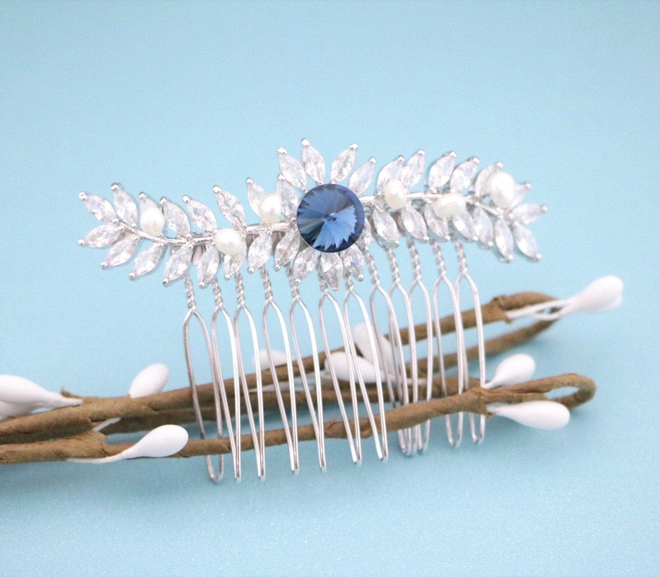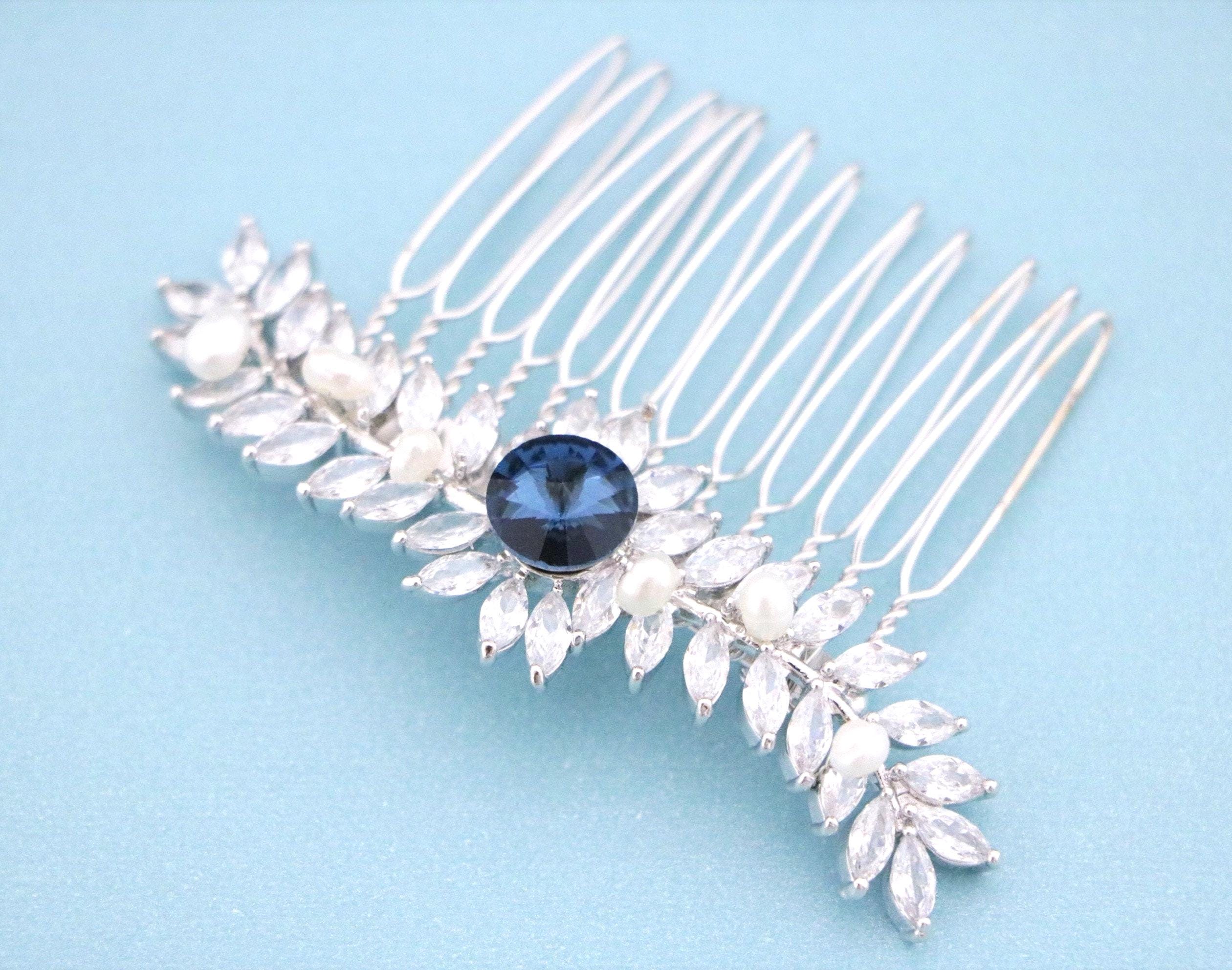 Blue Bridal Hair Comb Something Blue Hair Comb Sapphire Blue Crystal Hair Comb Rhinestone Hair Comb Blue Hair Accessory Wedding Headpiece