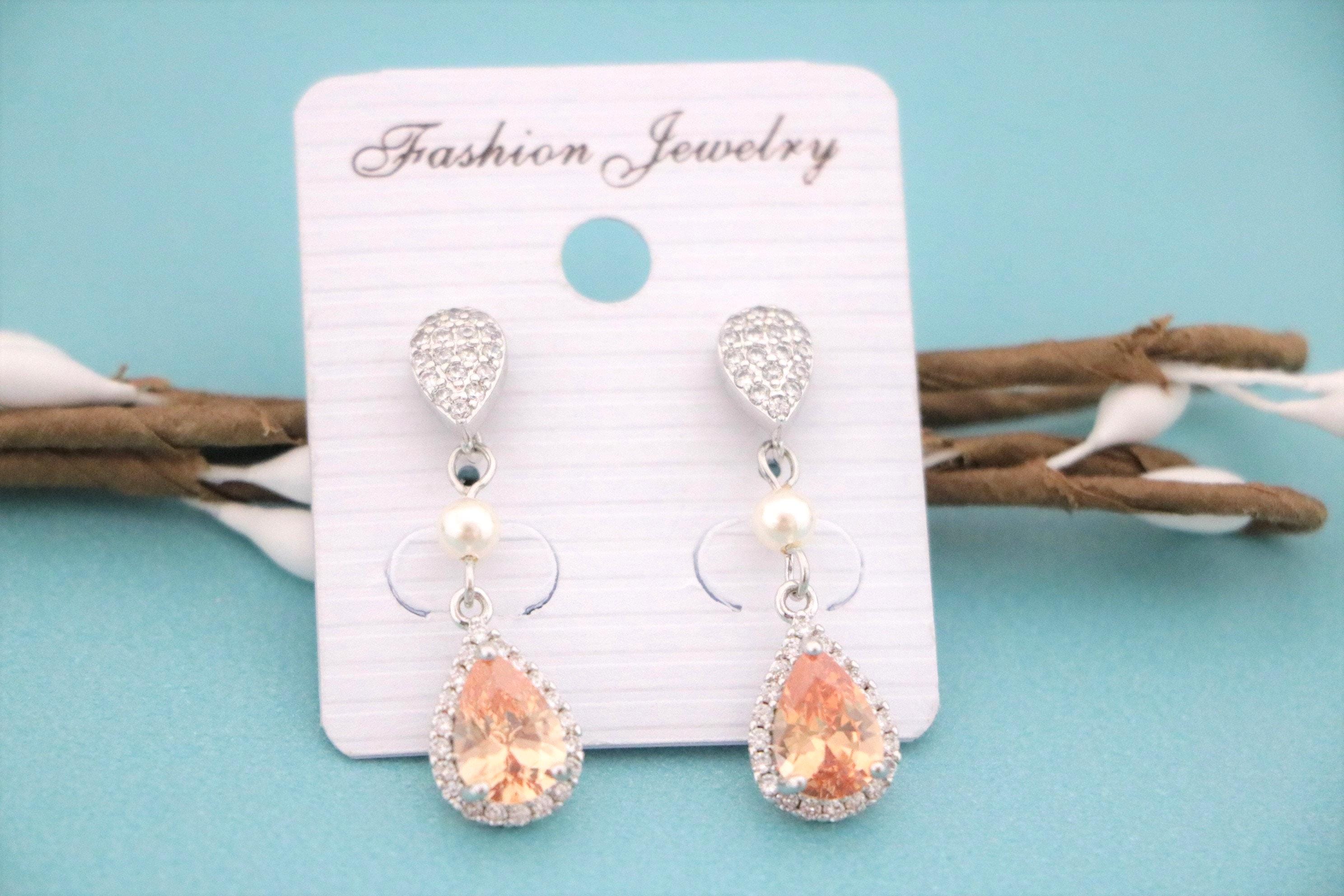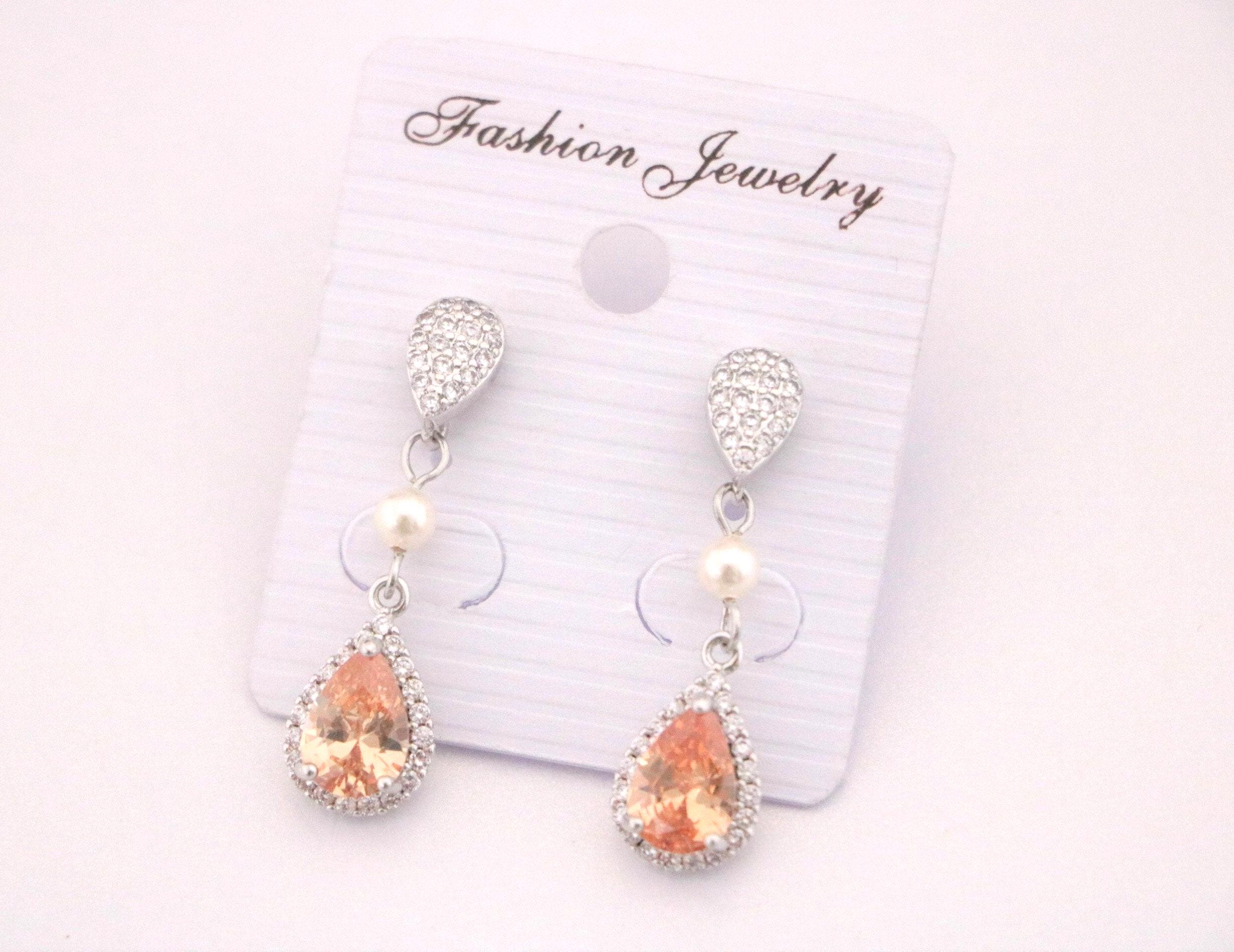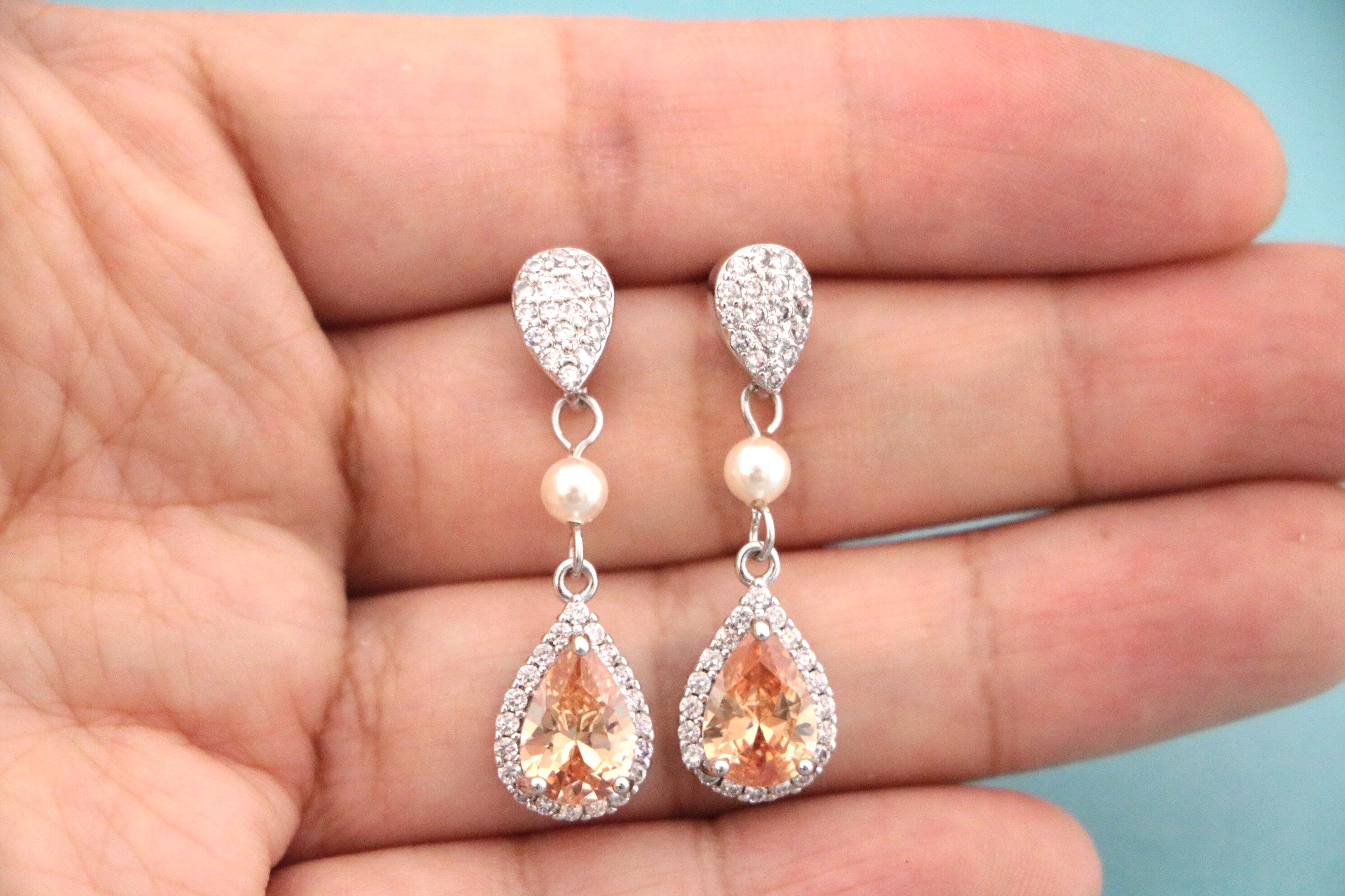 Champagne Crystal Earrings Peach Bridal Earrings Cubic Zirconia Drop Earrings Champagne Wedding Earrings Champagne Bridesmaid Jewelry Peach