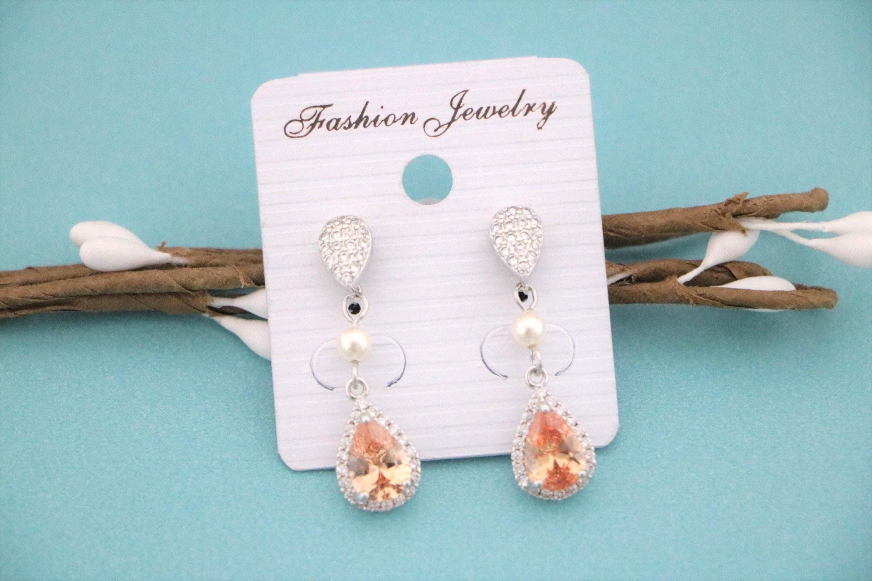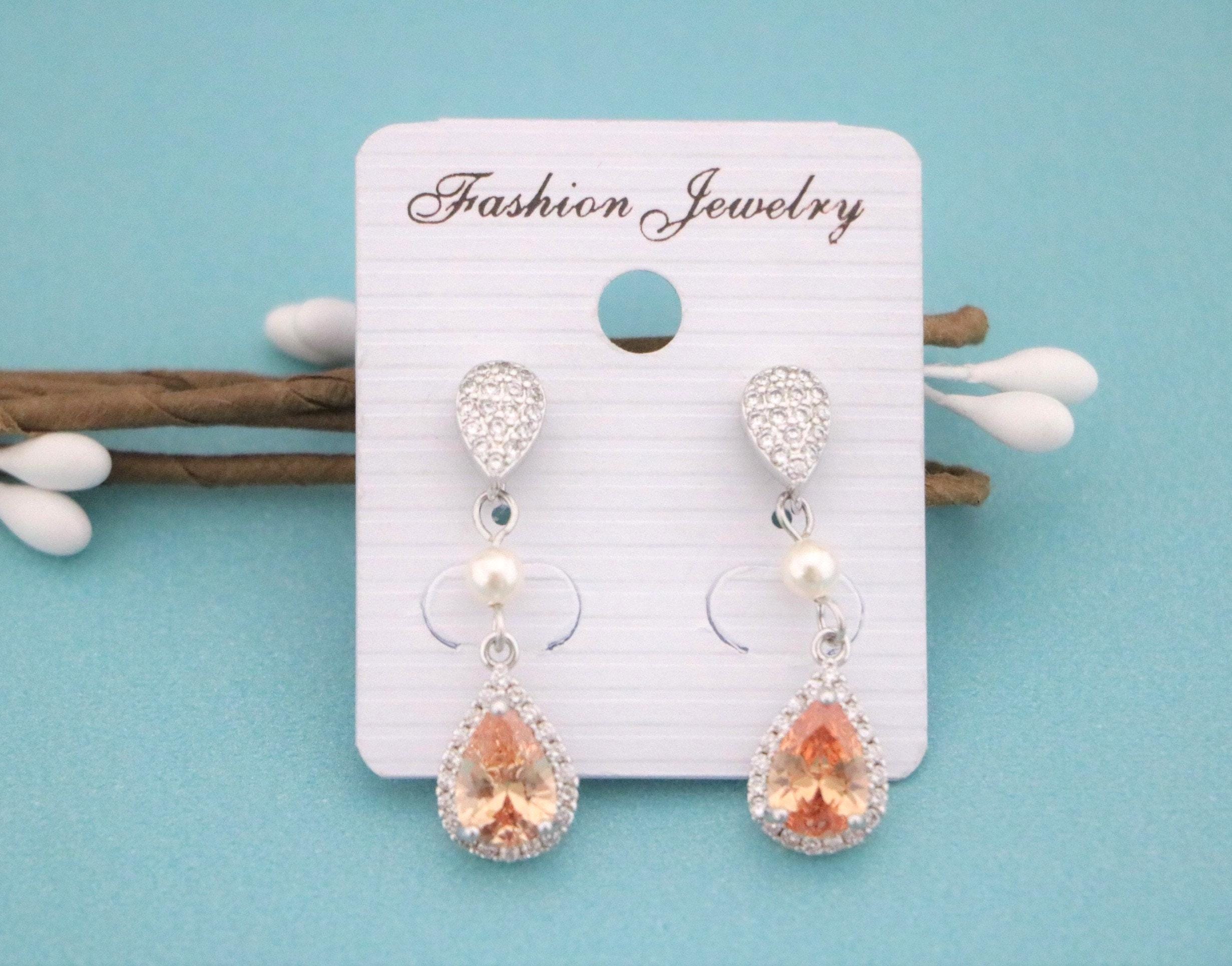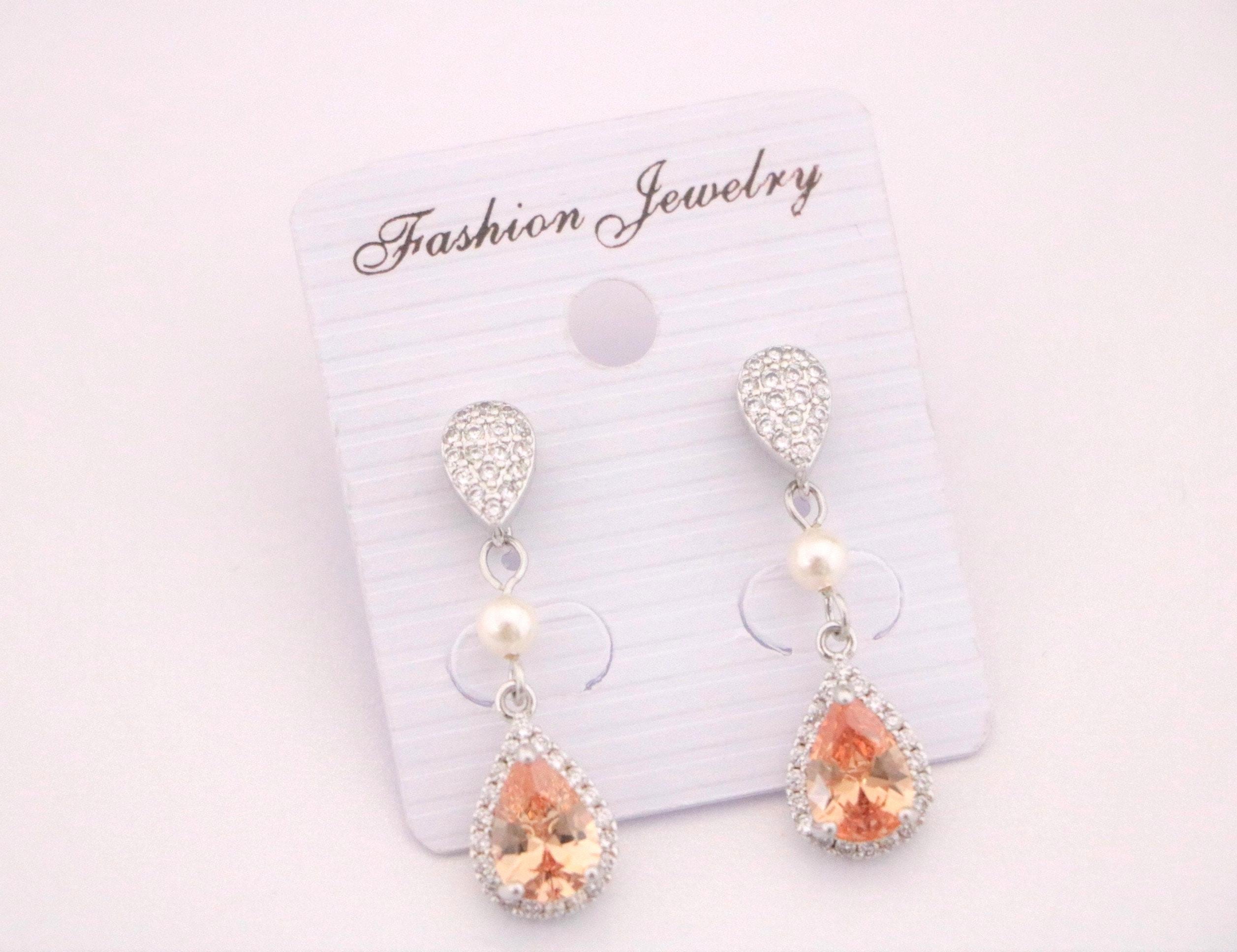 Champagne Crystal Earrings Peach Bridal Earrings Cubic Zirconia Drop Earrings Champagne Wedding Earrings Champagne Bridesmaid Jewelry Peach