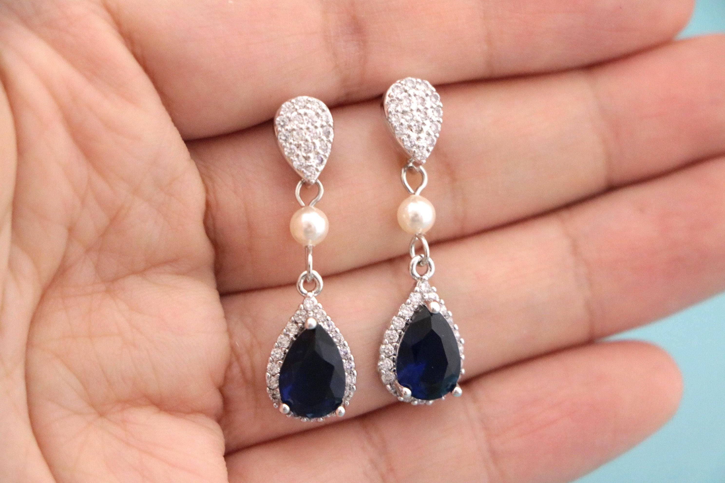 Navy Blue Sapphire Blue Bridesmaid Earrings, Dark Blue Earrings, Bridesmaid Gift, Navy Wedding, Bridesmaid Jewelry, Bridal Jewelry