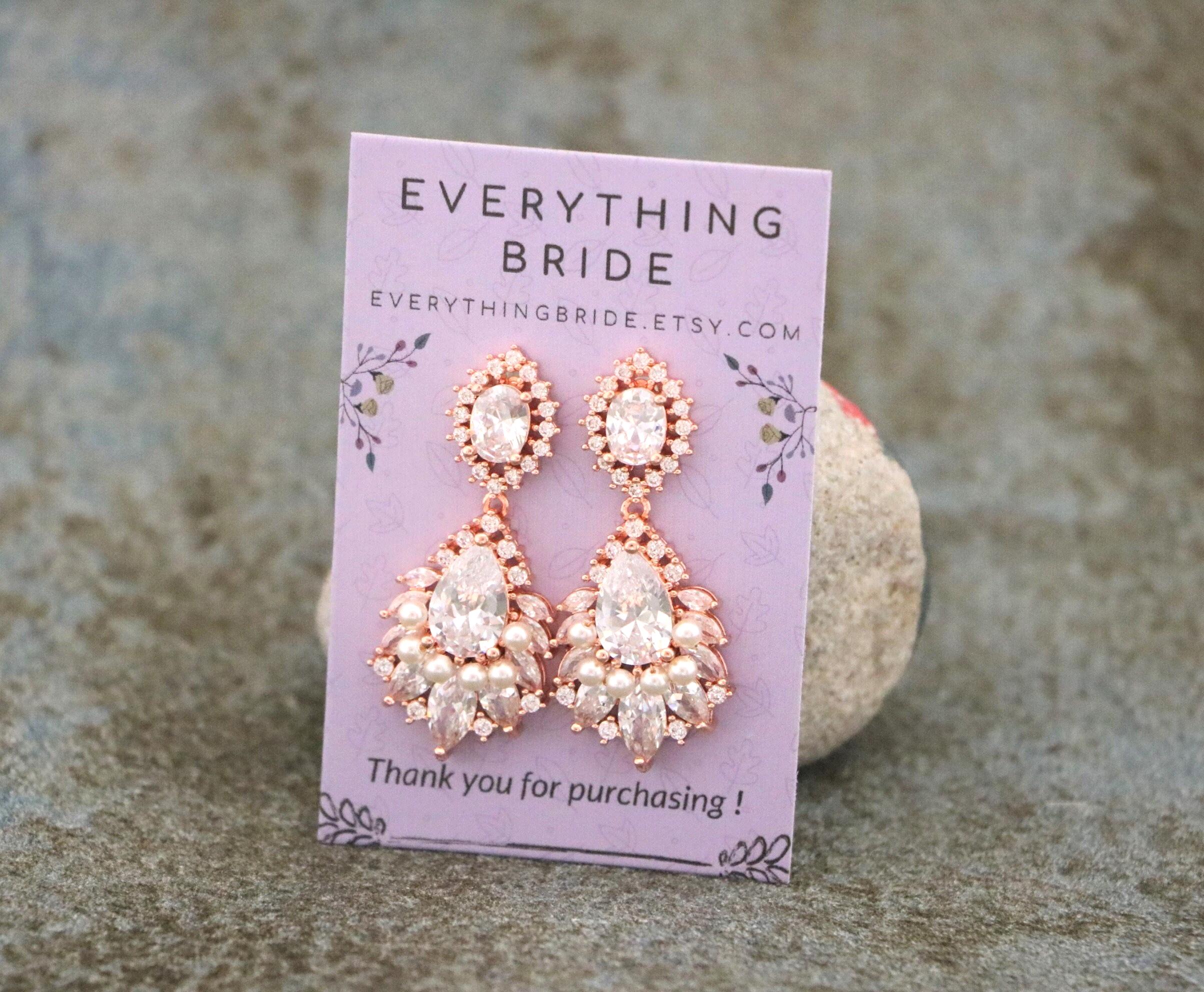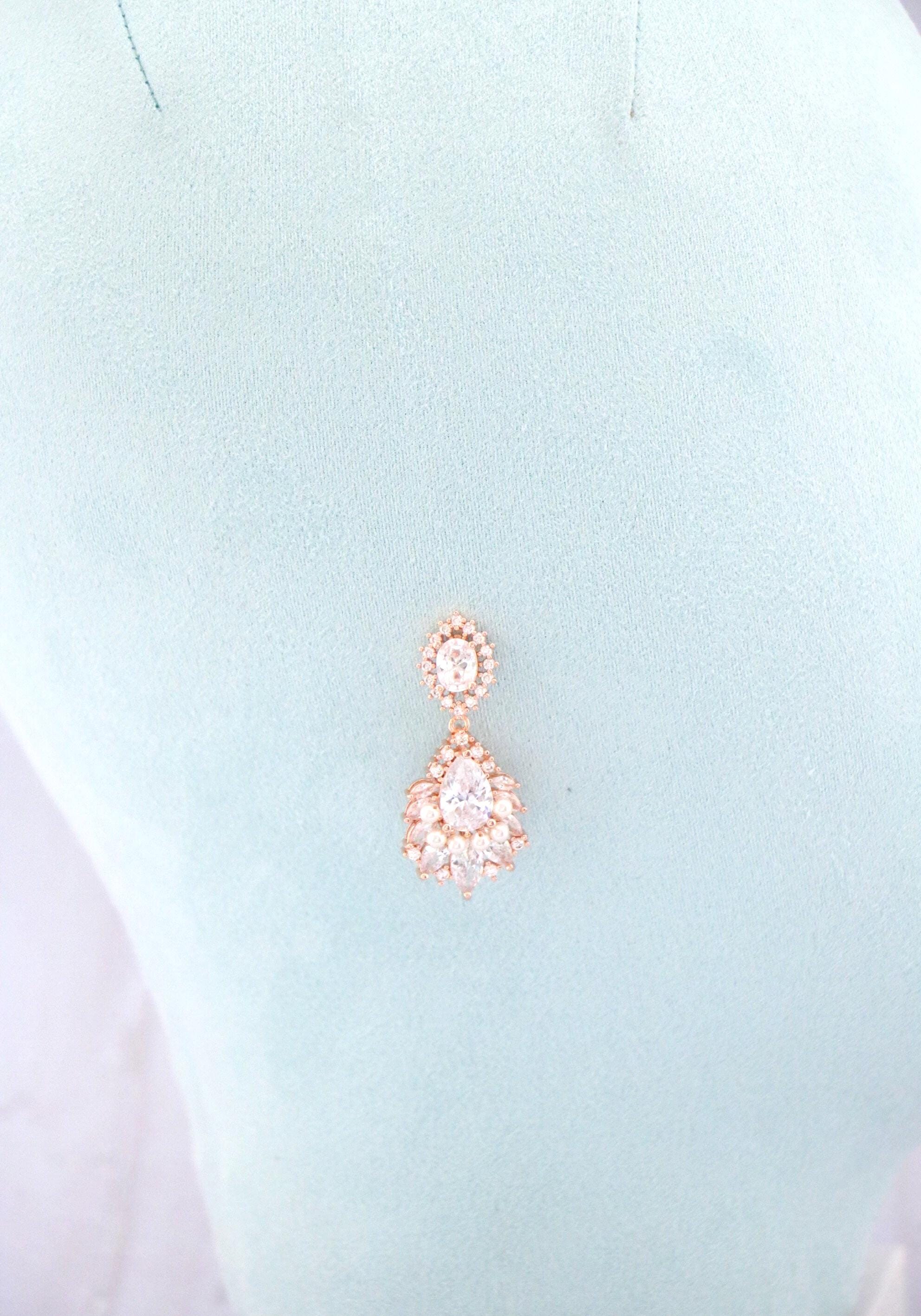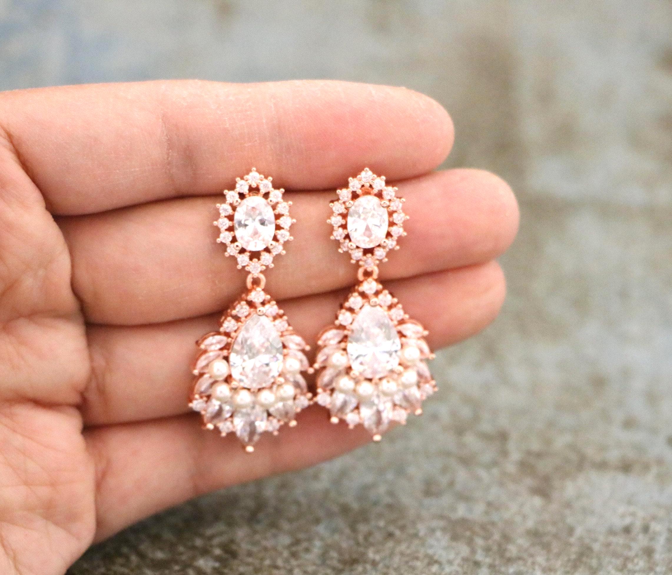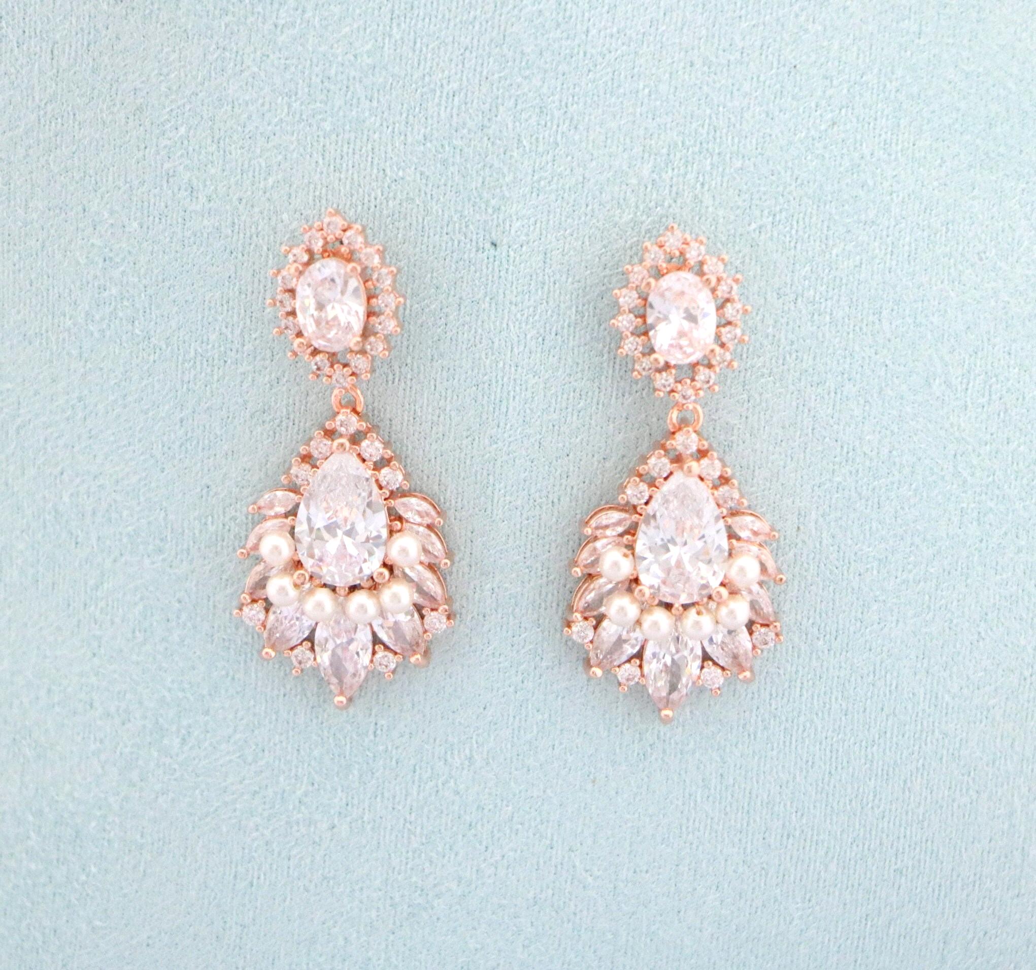 Rose Gold Bridal Earrings , Rose Gold Wedding Jewelry , Bridesmaid Earrings , Crystal Wedding Earrings ,CZ Bridal Earrings , Bridal Jewelry
