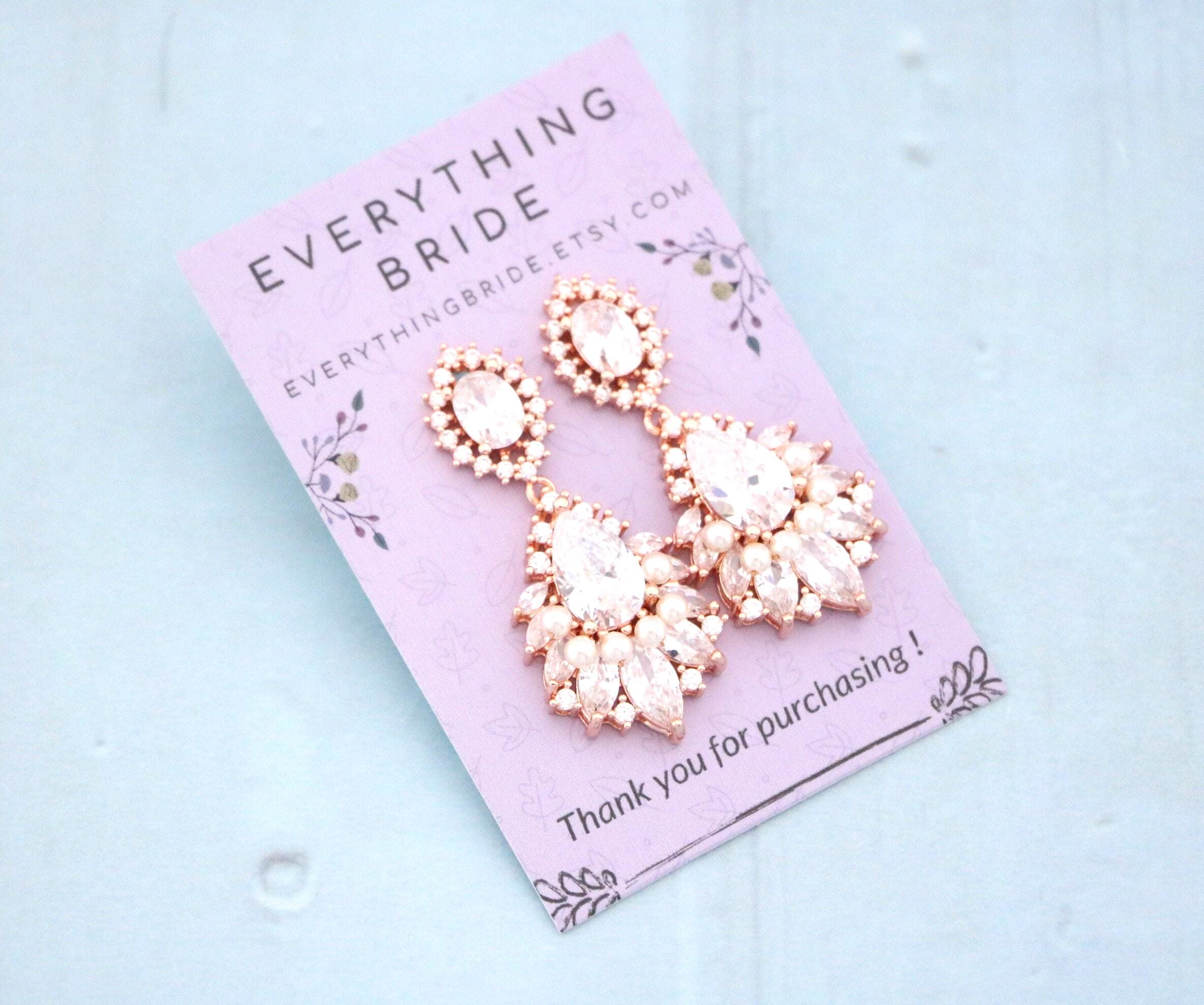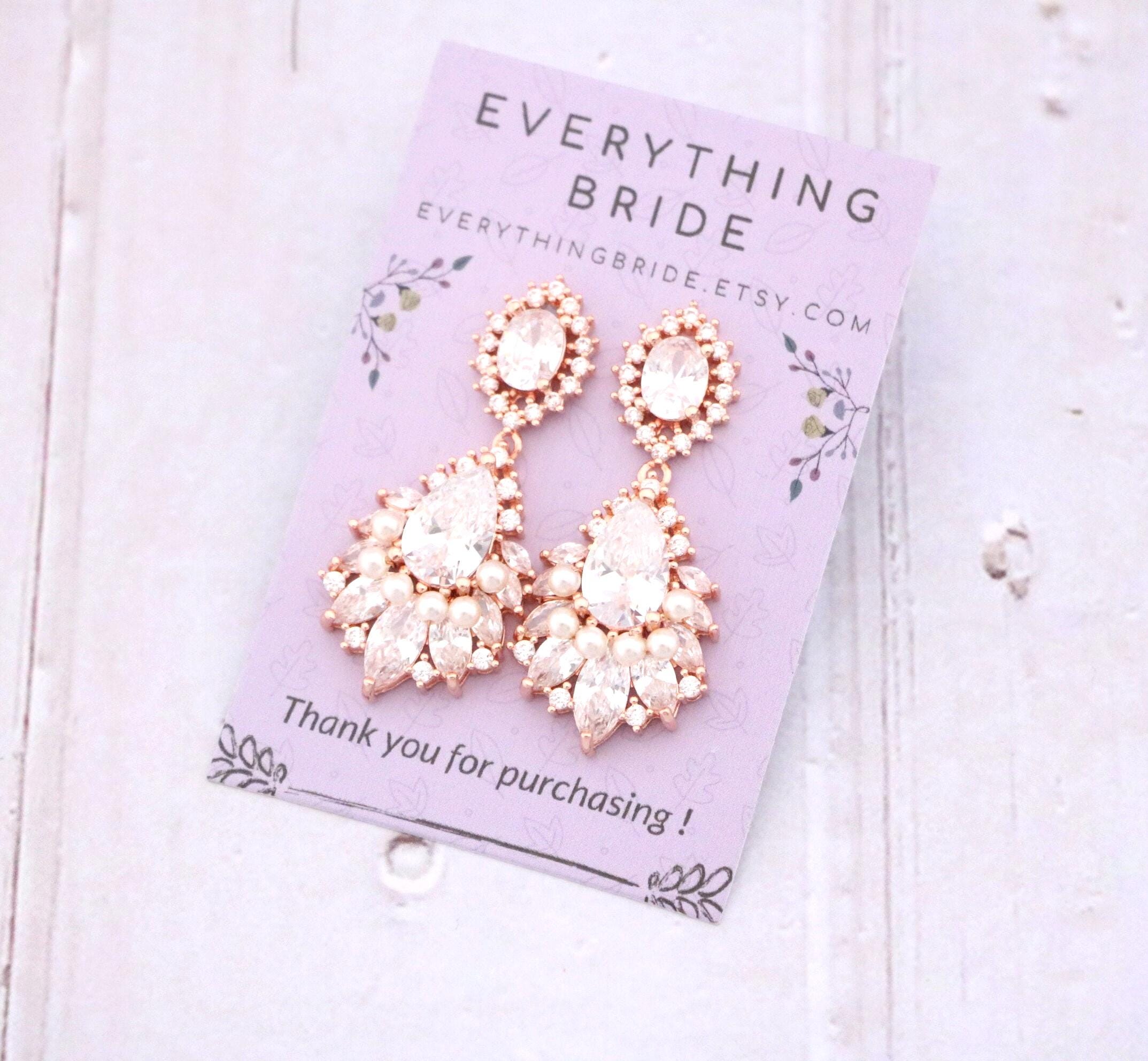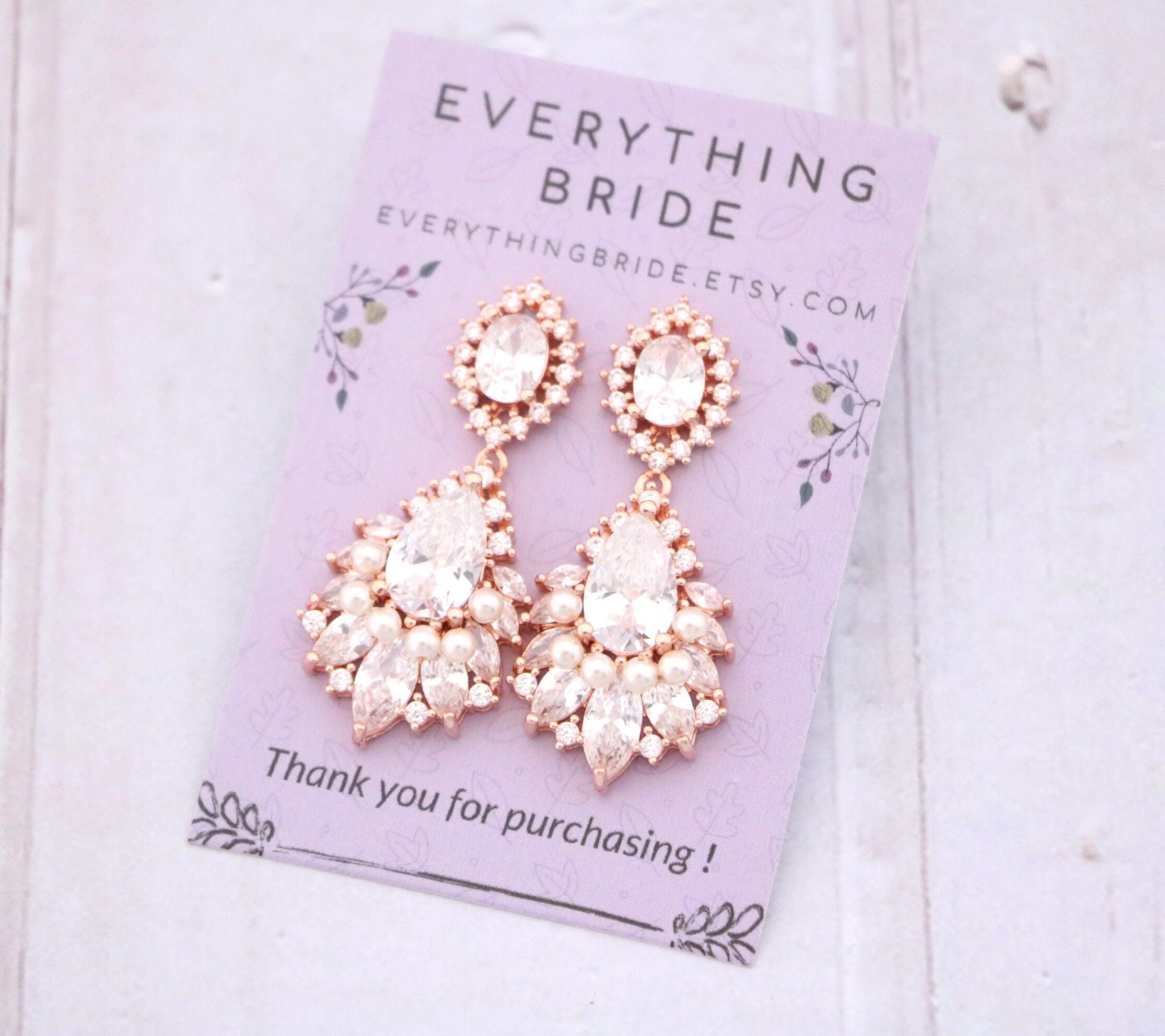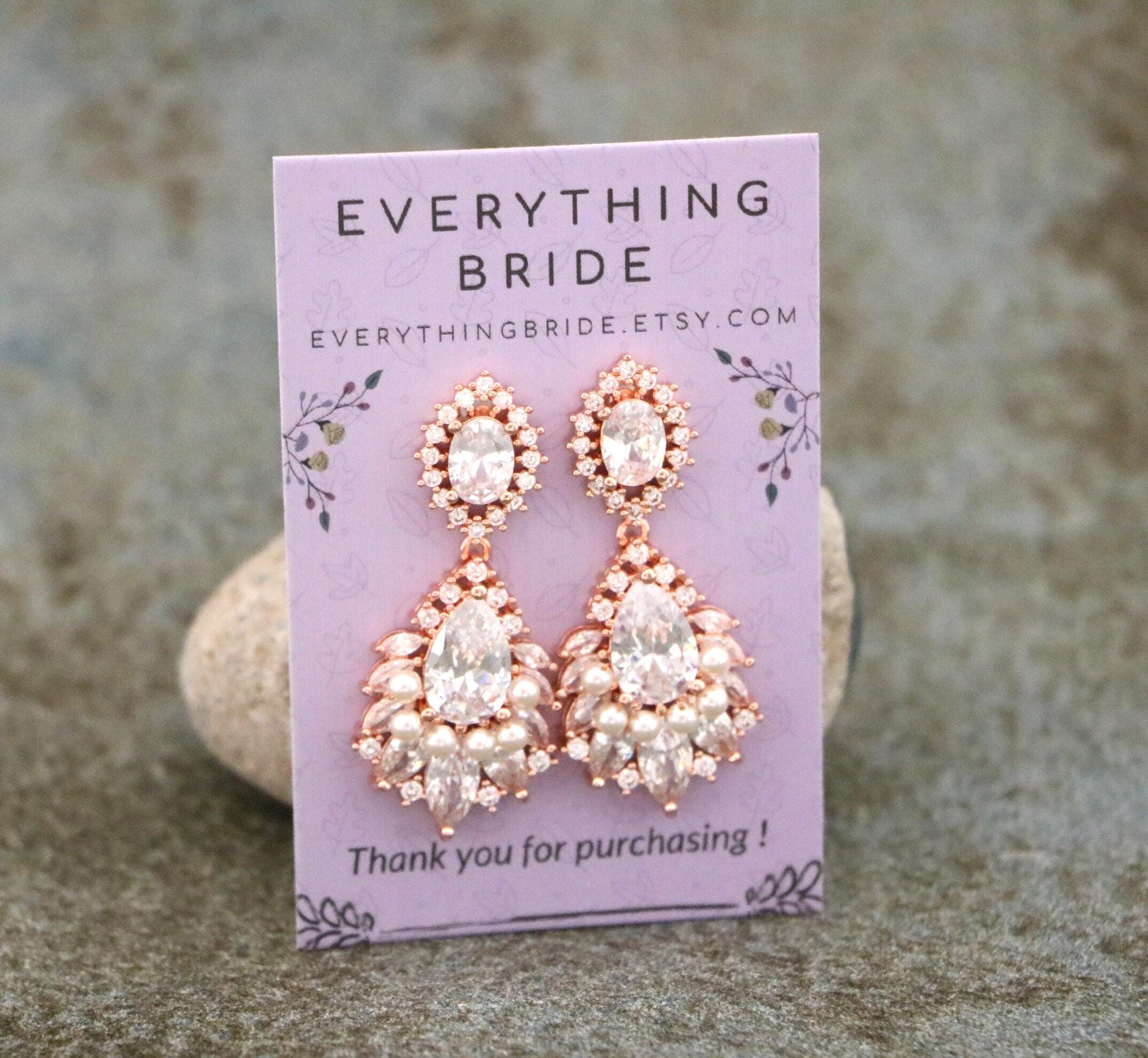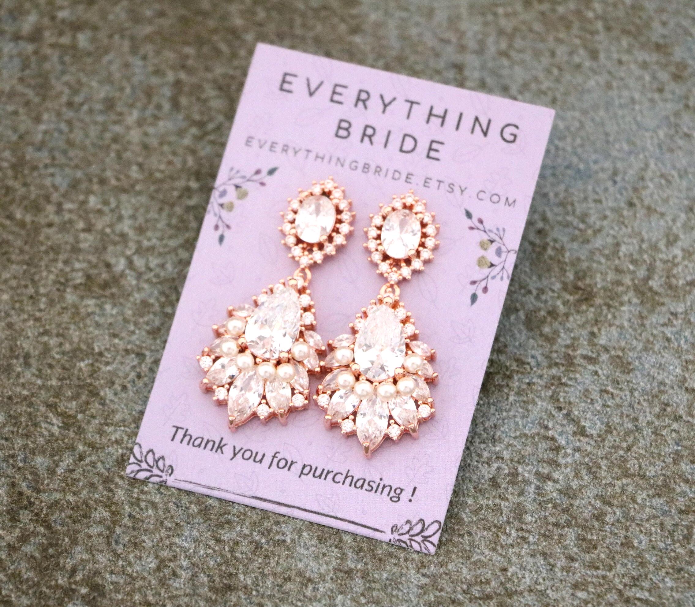 Rose Gold Bridal Earrings , Rose Gold Wedding Jewelry , Bridesmaid Earrings , Crystal Wedding Earrings ,CZ Bridal Earrings , Bridal Jewelry