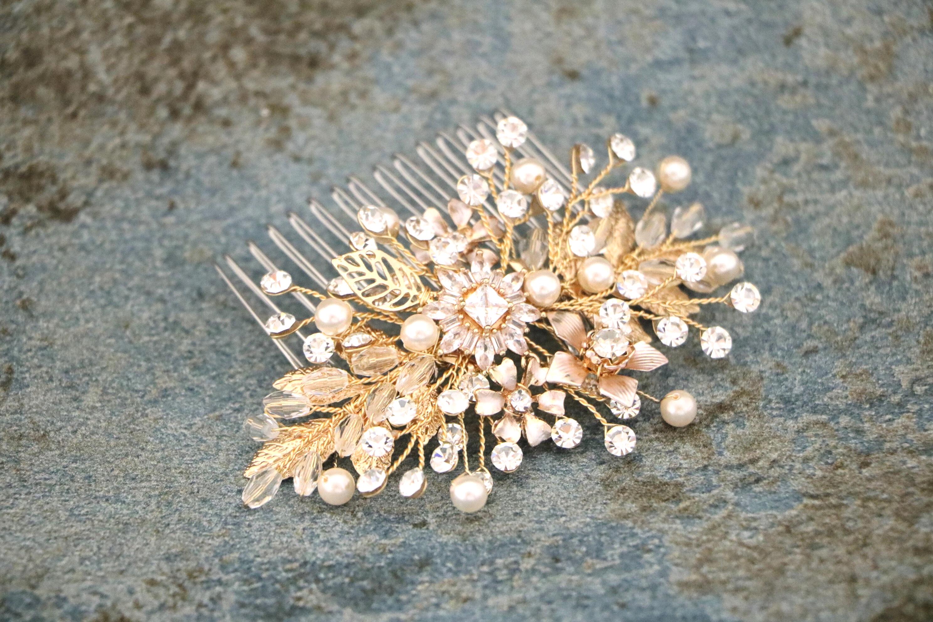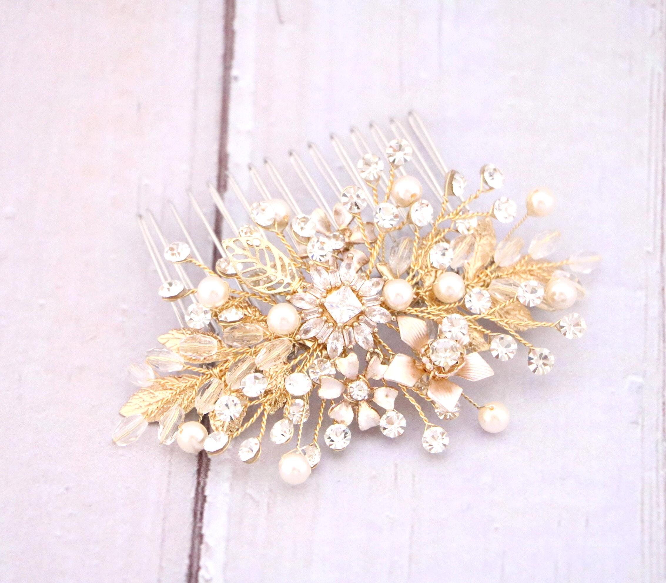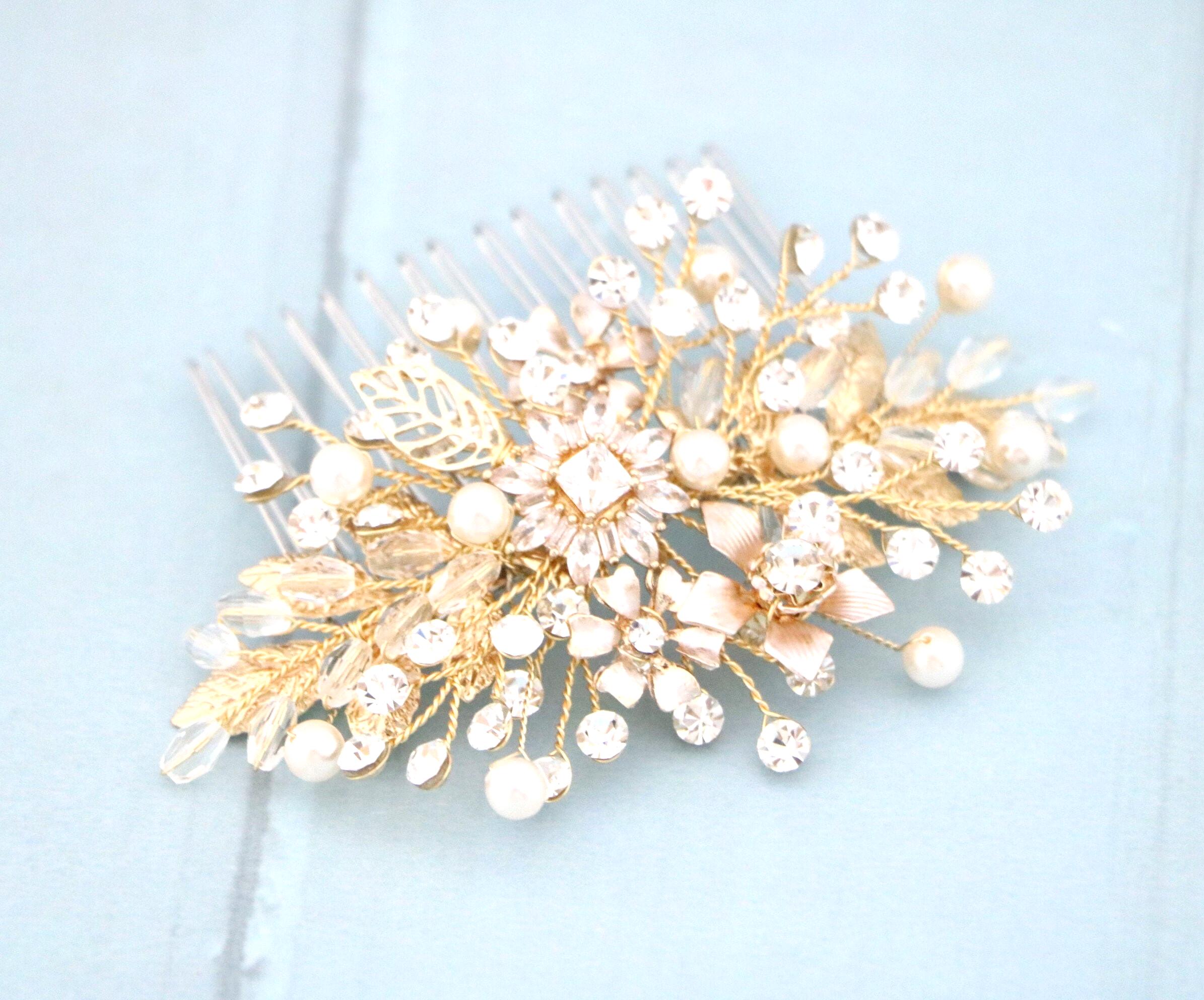 Bridal Hair Comb, Crystal Bridal Clip, Bridal Comb Crystal, Wedding Crystal Hair Comb, Hair Comb, Wedding Accessory, Gold Pearl Clip