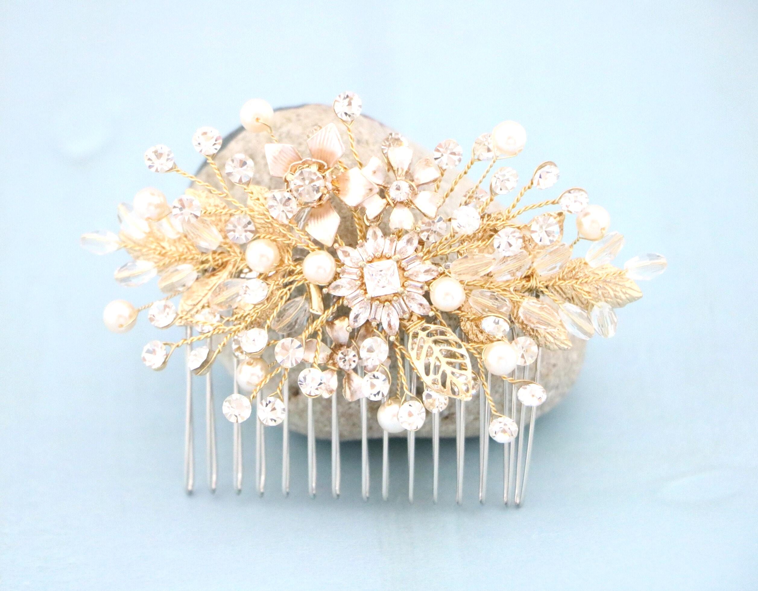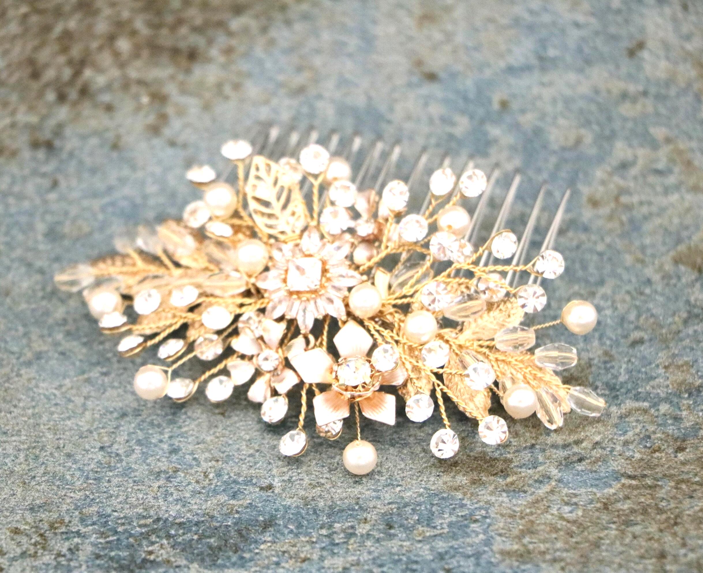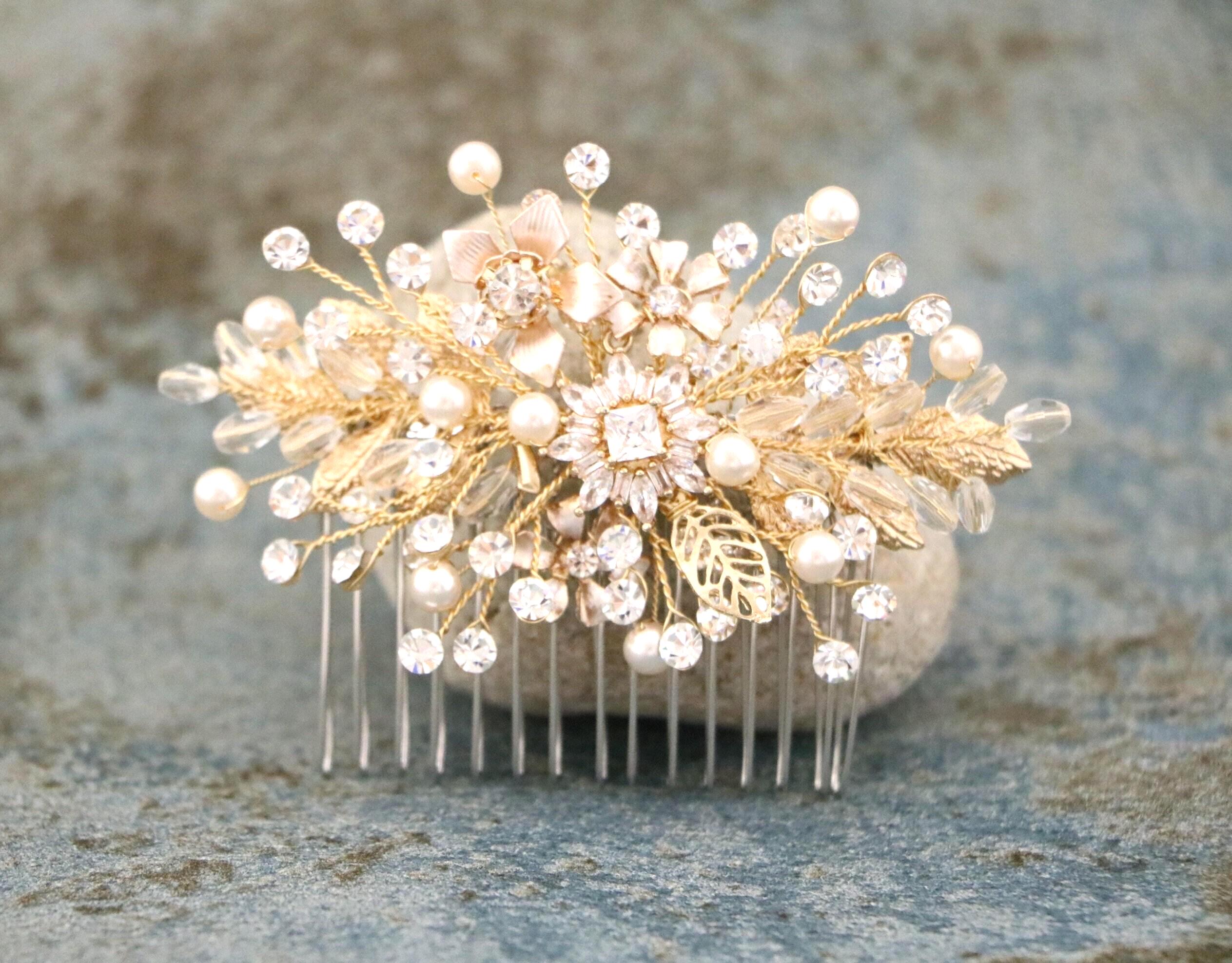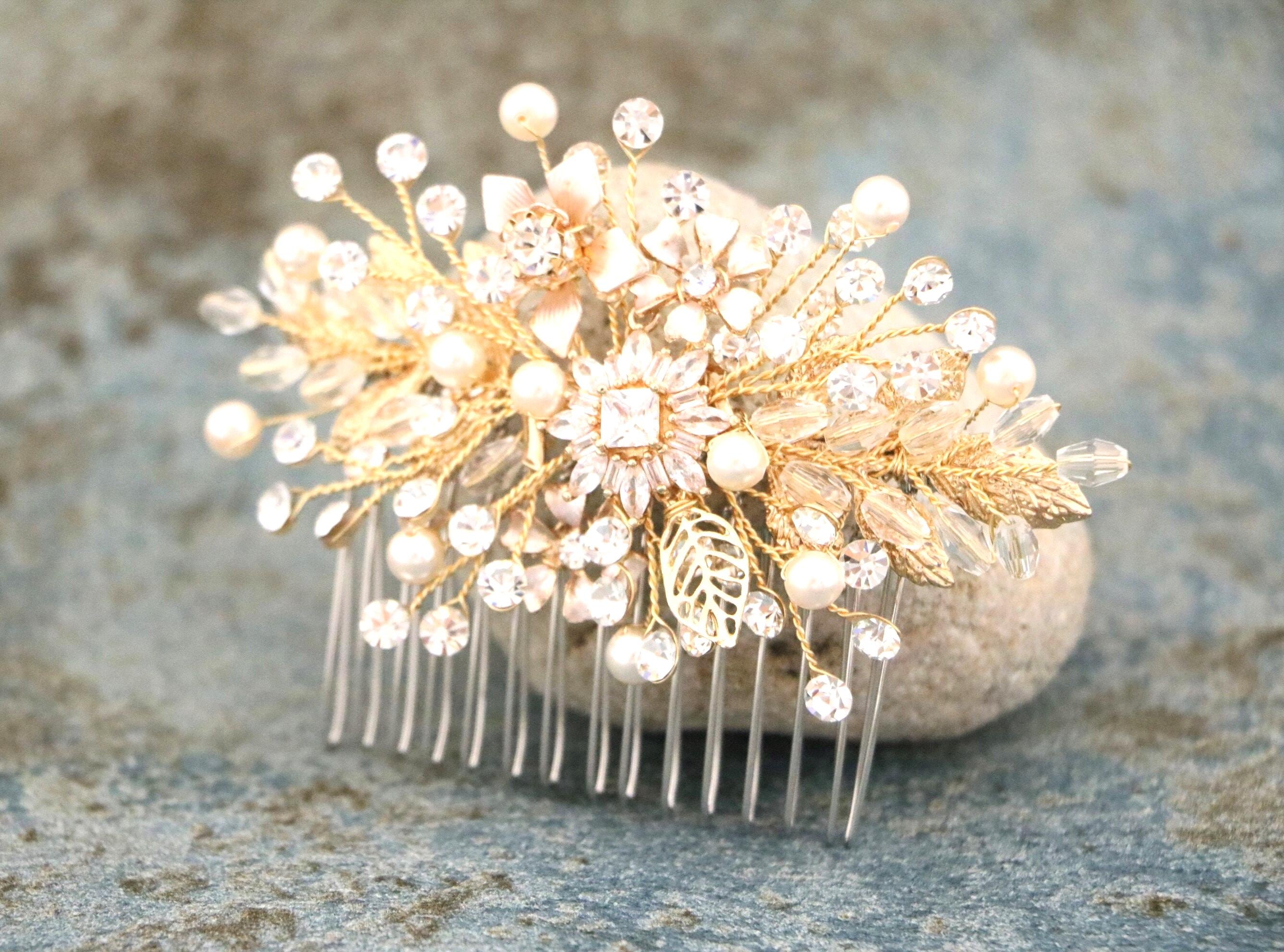 Bridal Hair Comb, Crystal Bridal Clip, Bridal Comb Crystal, Wedding Crystal Hair Comb, Hair Comb, Wedding Accessory, Gold Pearl Clip