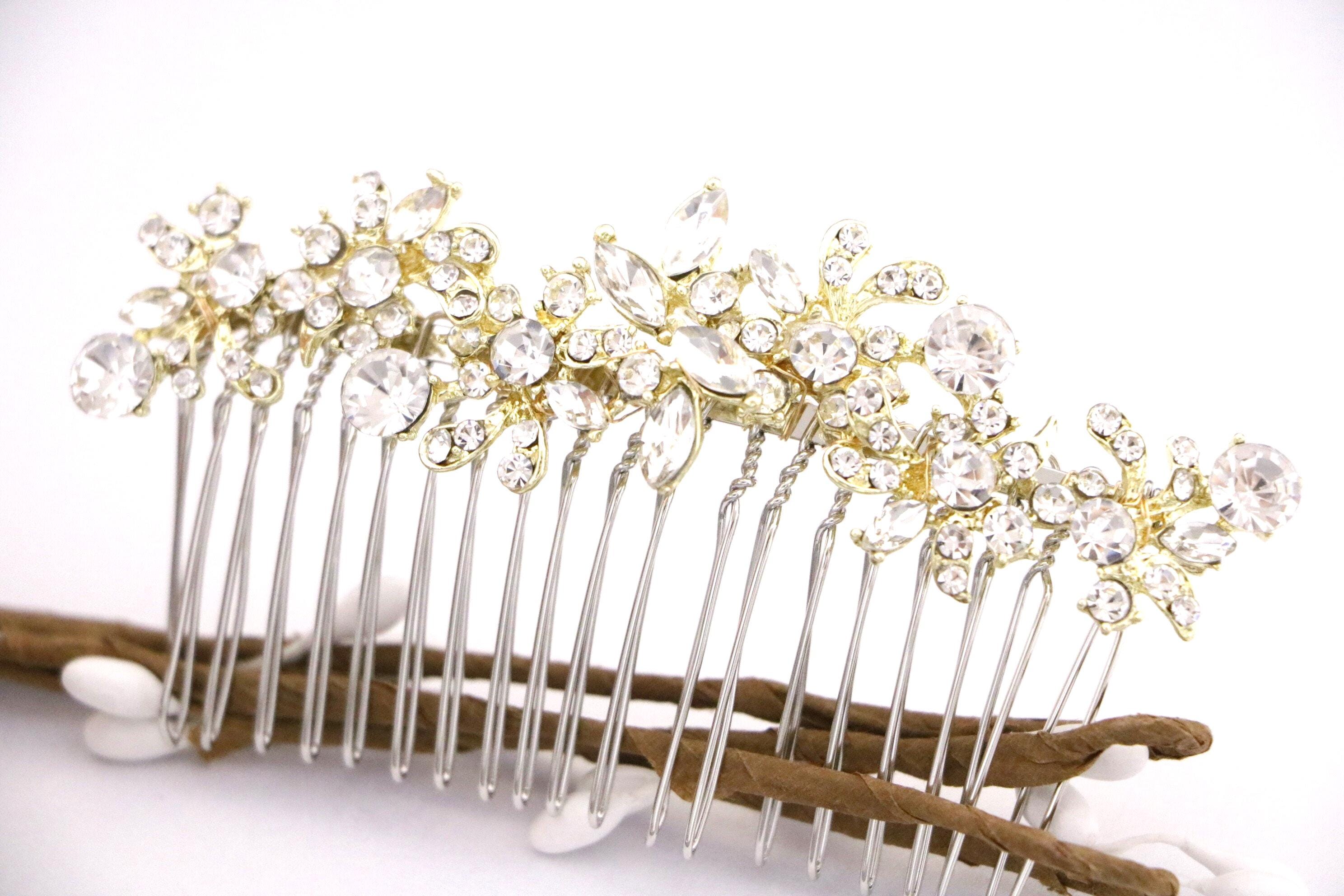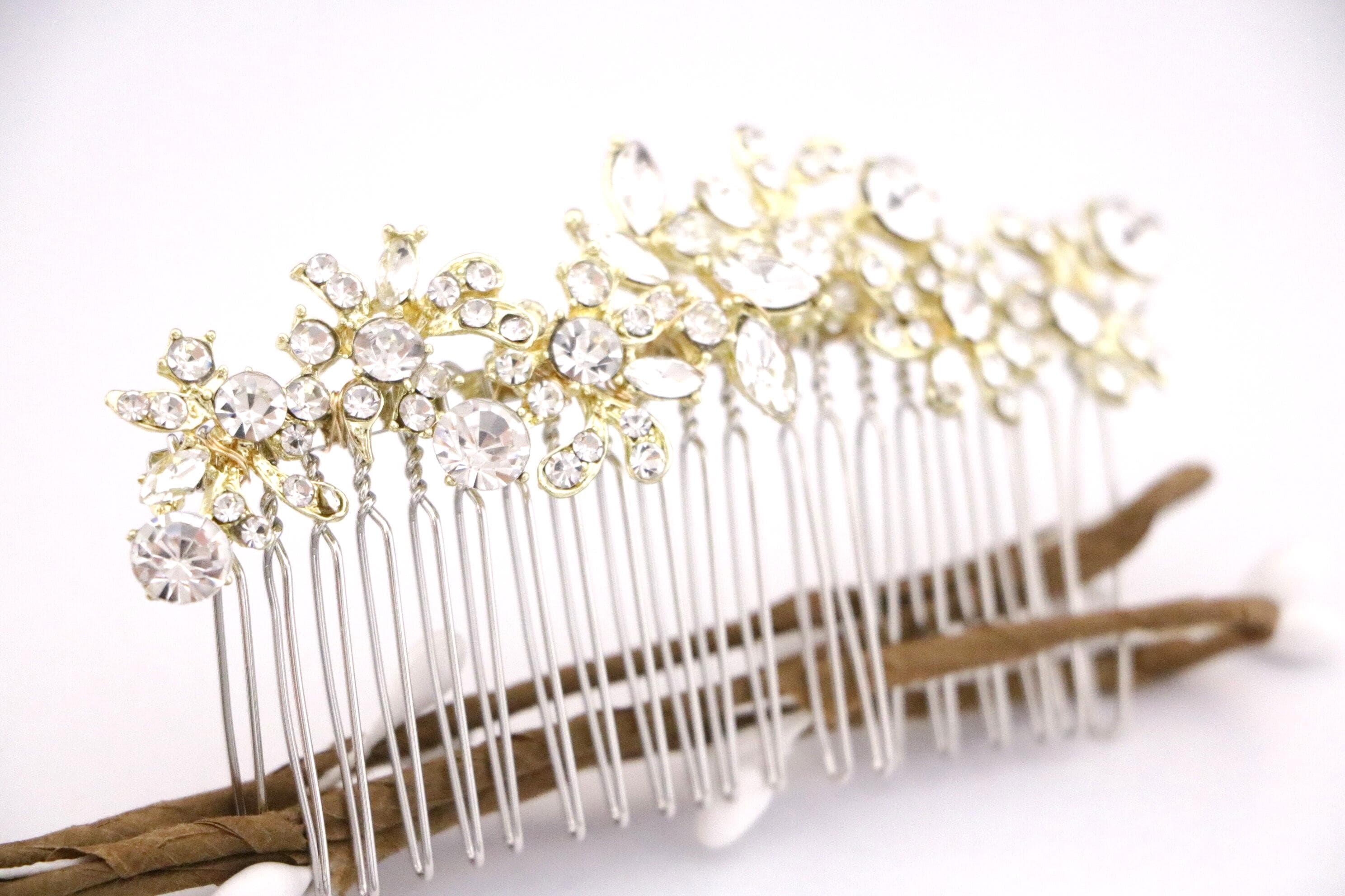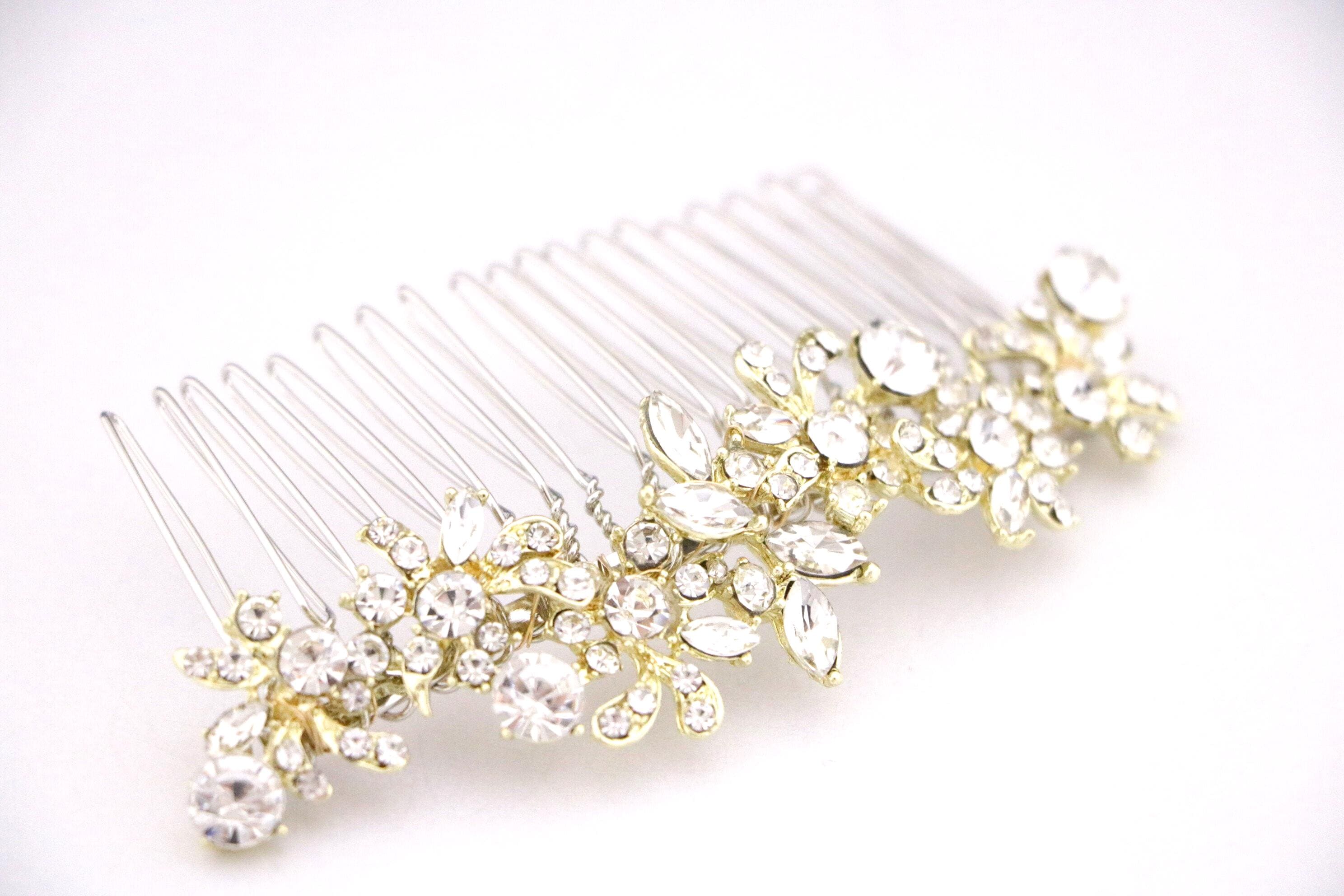 Gold Wedding Hair Piece, Gold Crystal Bridal Hair Comb, Bridal back Headpiece, Vintage style headpiece Gold hair comb gold bridal hair piece