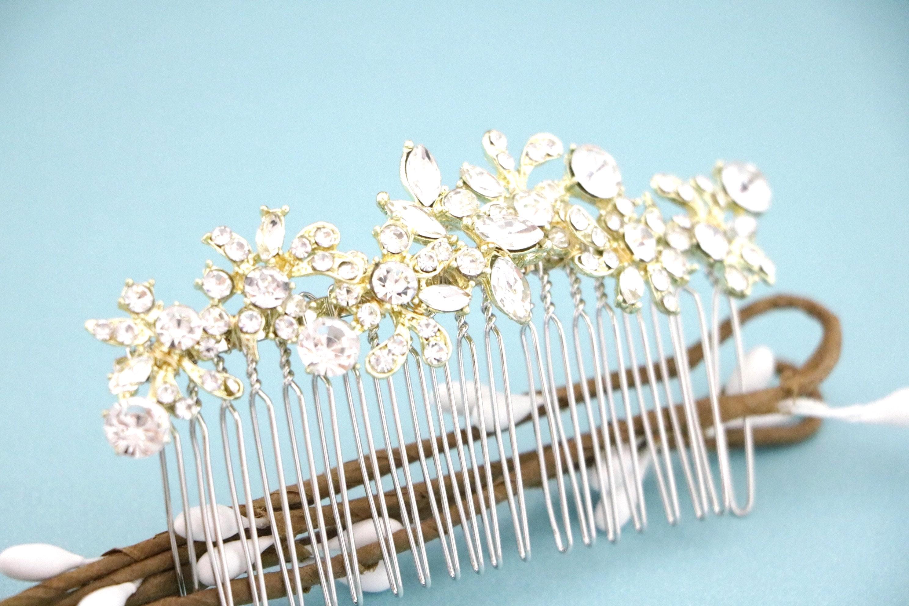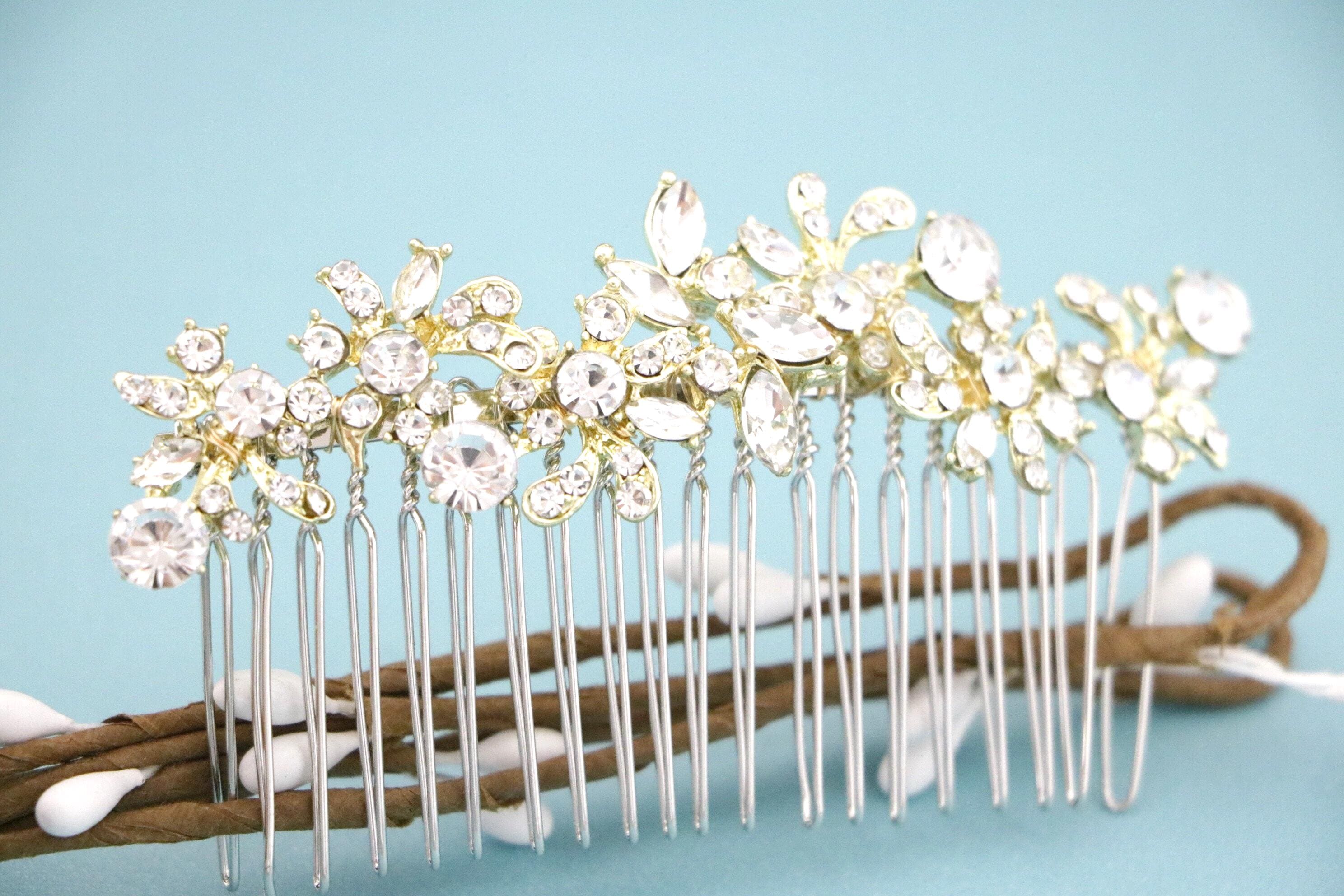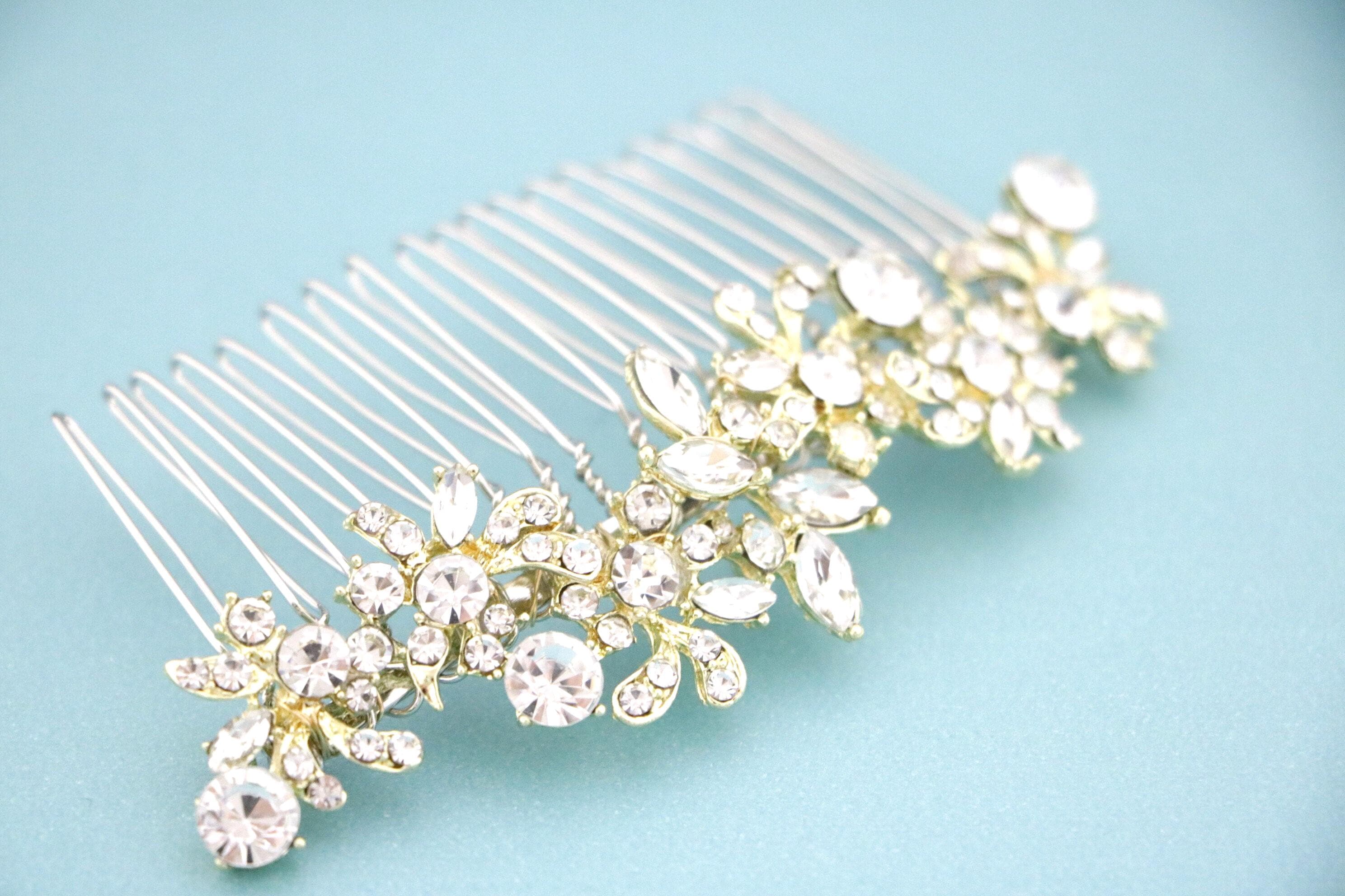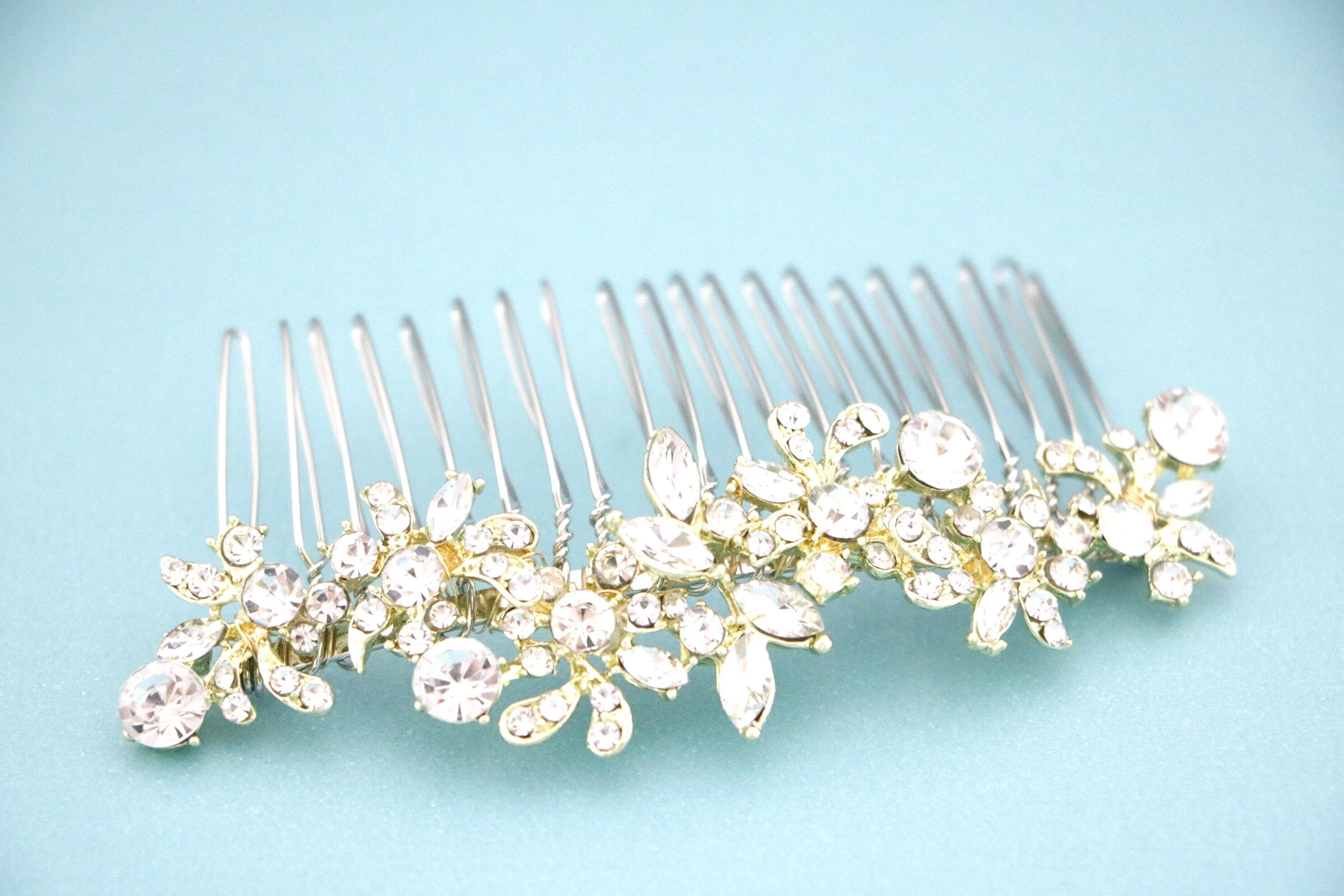 Gold Wedding Hair Piece, Gold Crystal Bridal Hair Comb, Bridal back Headpiece, Vintage style headpiece Gold hair comb gold bridal hair piece