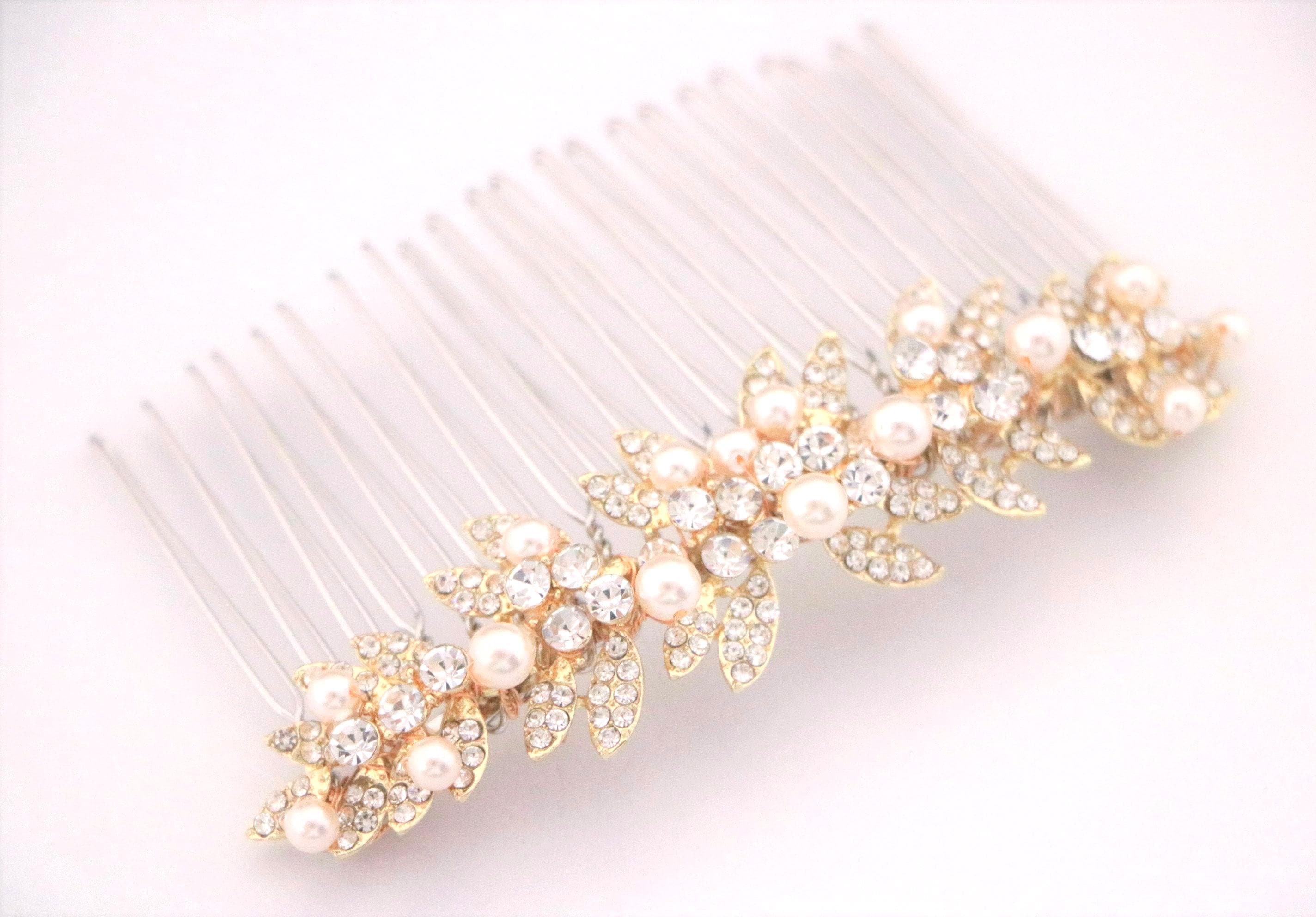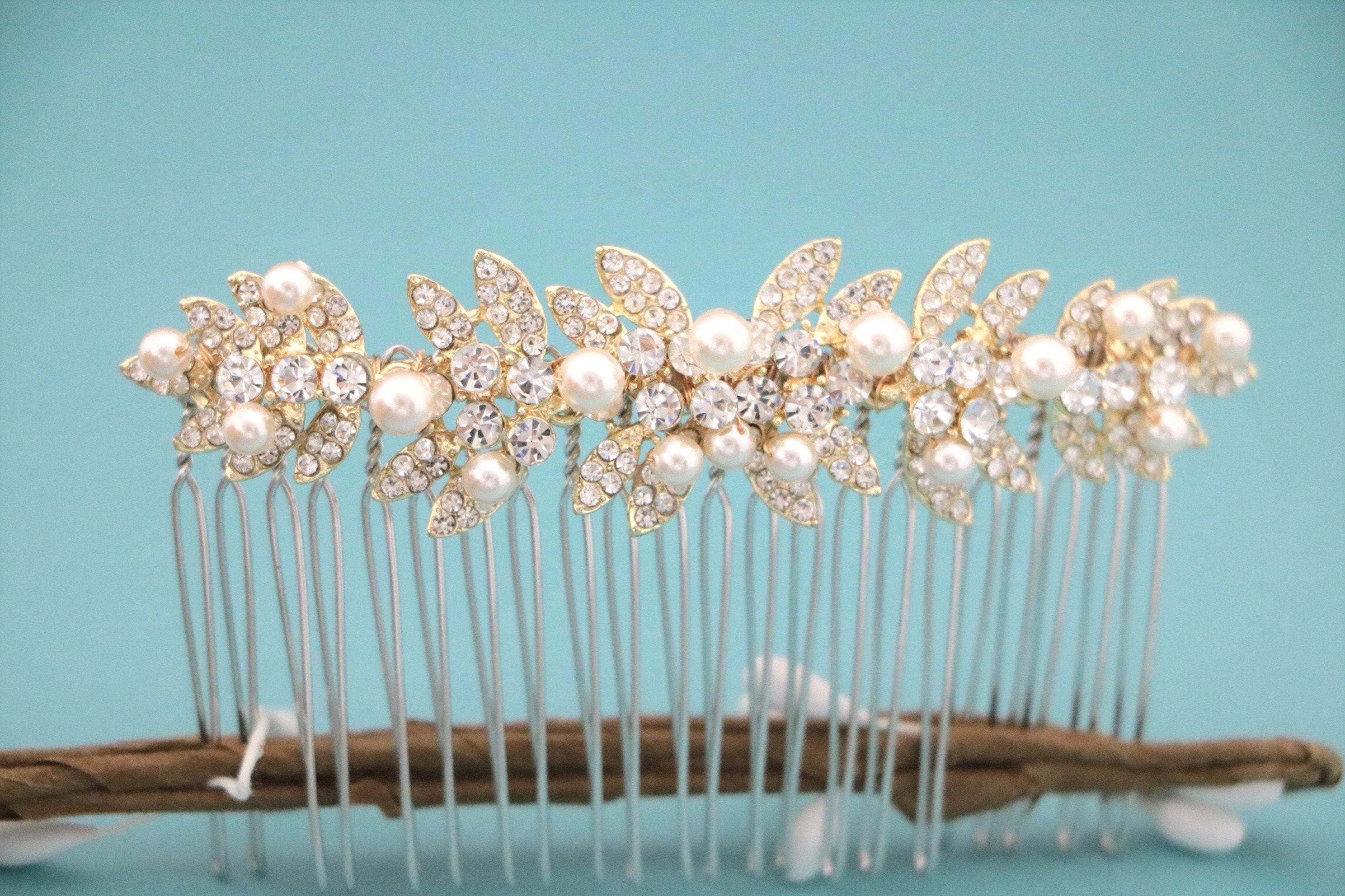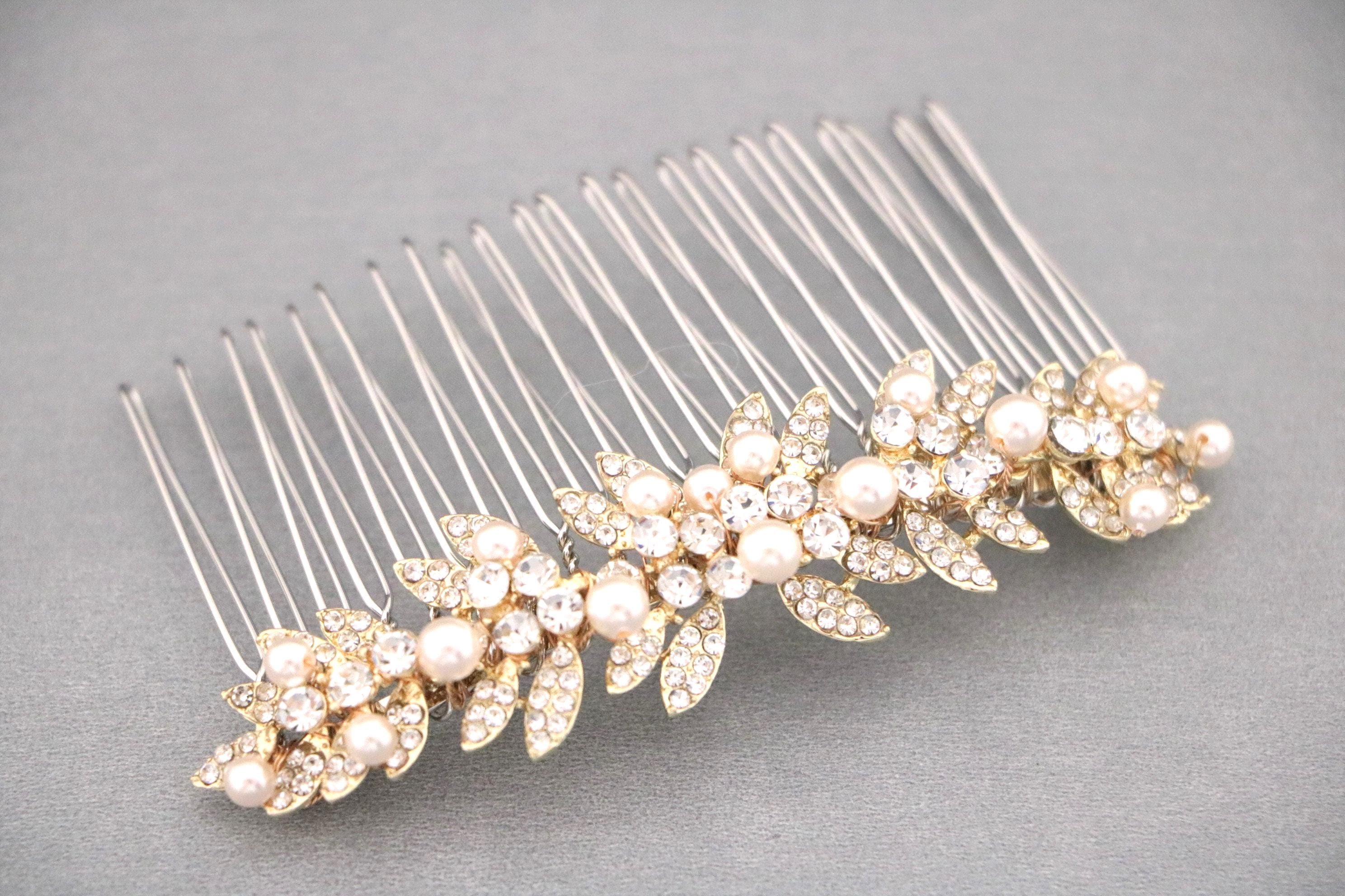 This beautiful Clear rhinestone Swarovski pearl hair comb is a perfect compliment for the wedding party and can easily fit into any hair style.