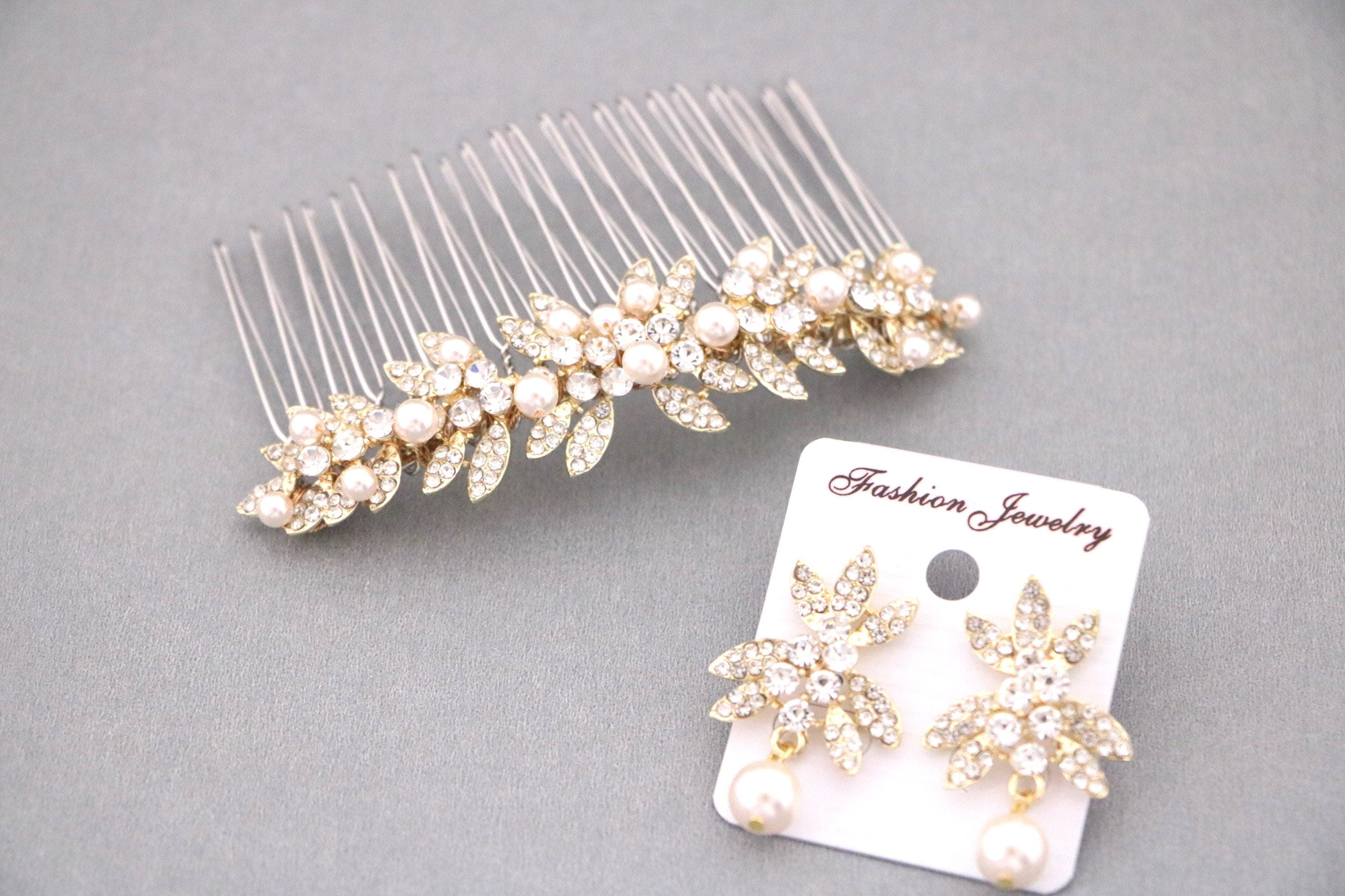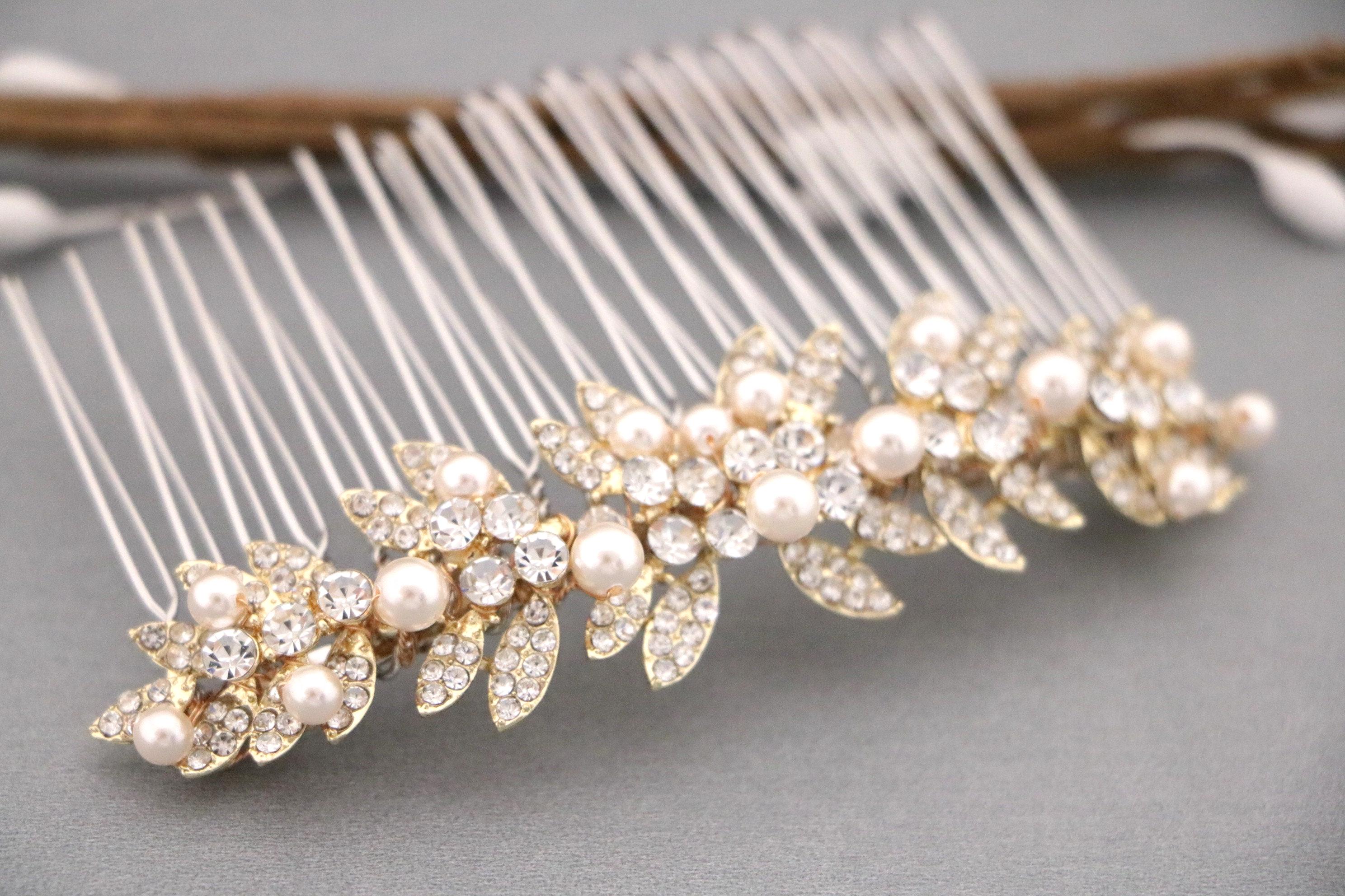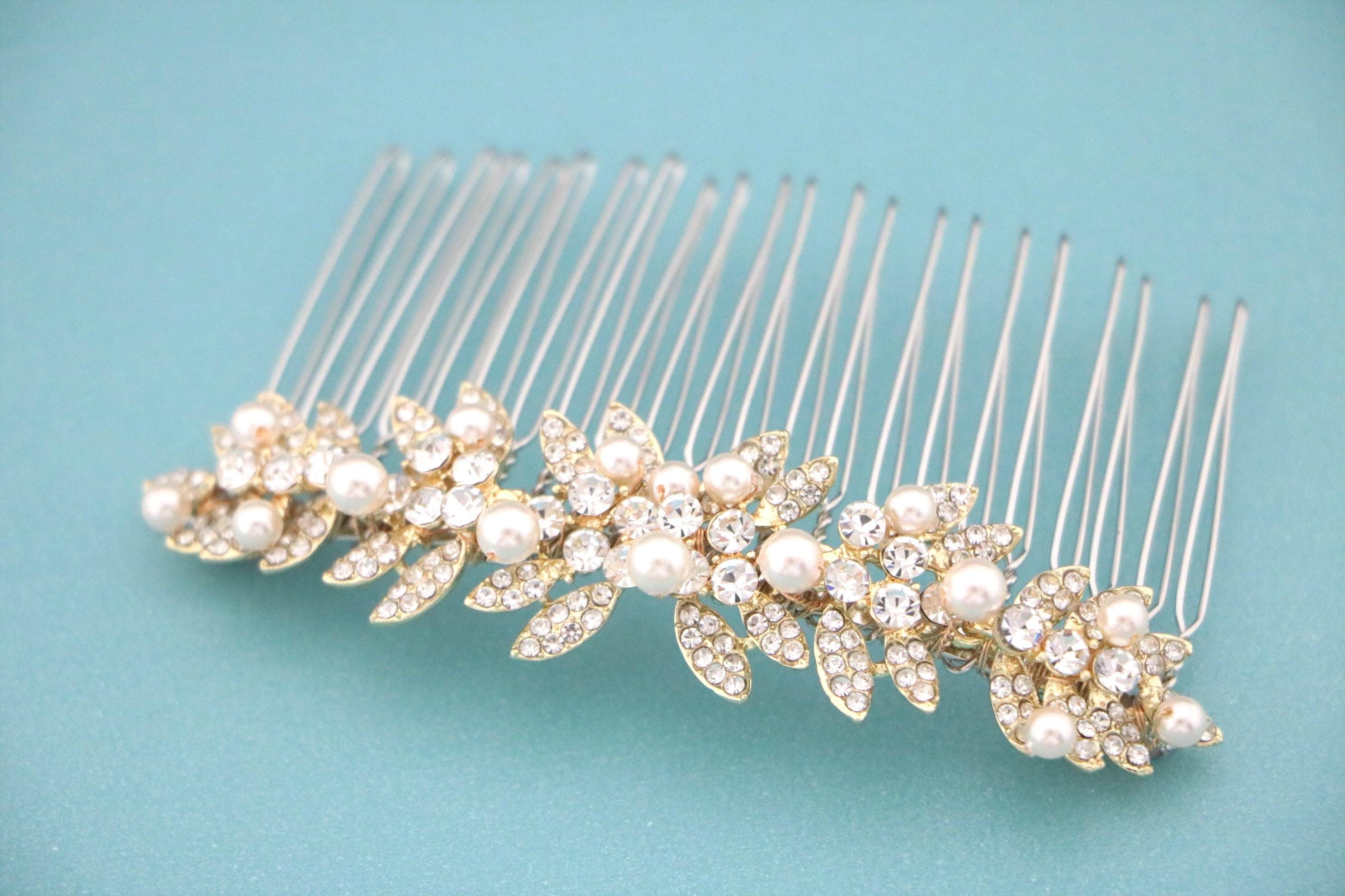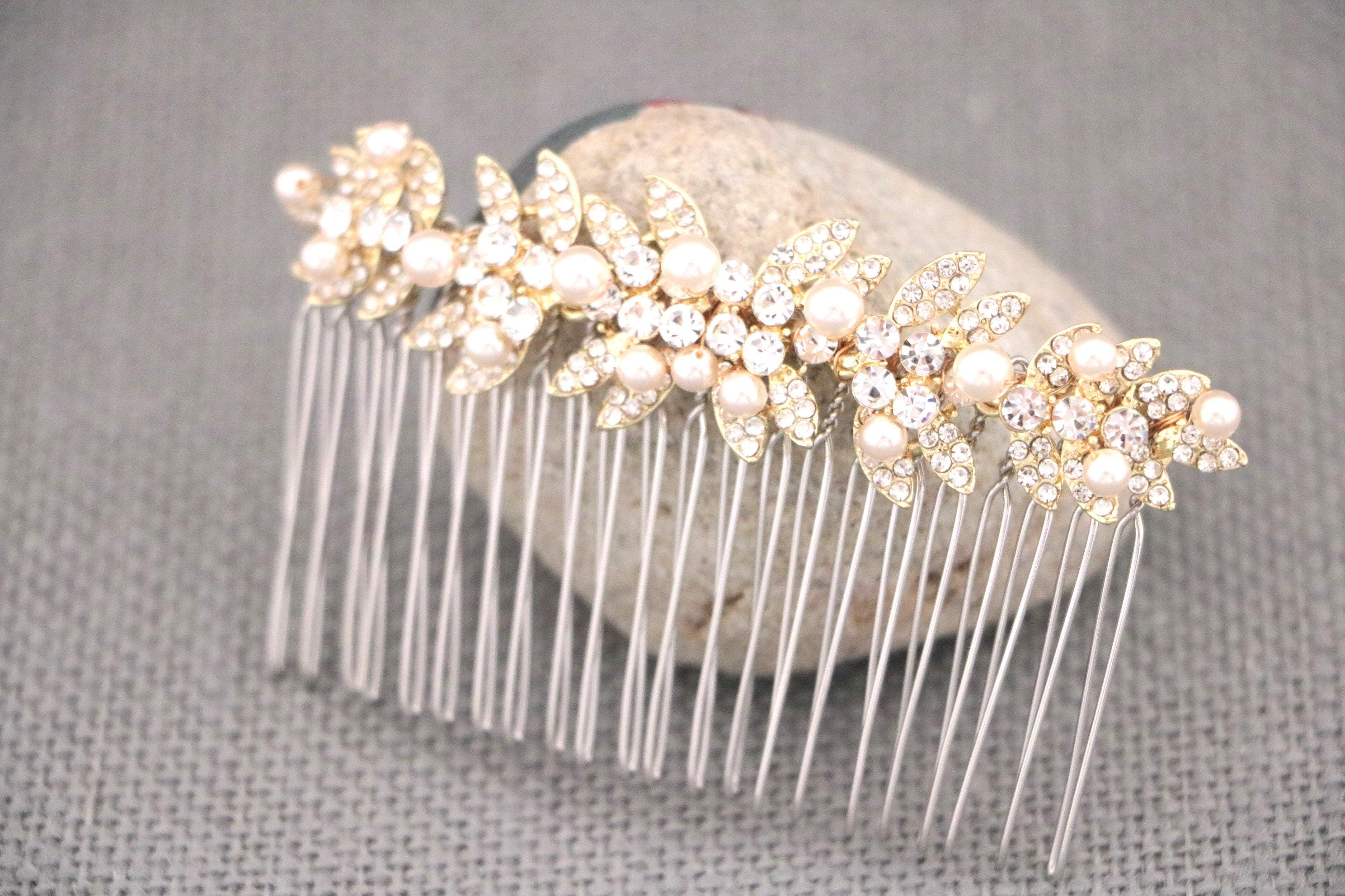 This beautiful Clear rhinestone Swarovski pearl hair comb is a perfect compliment for the wedding party and can easily fit into any hair style.