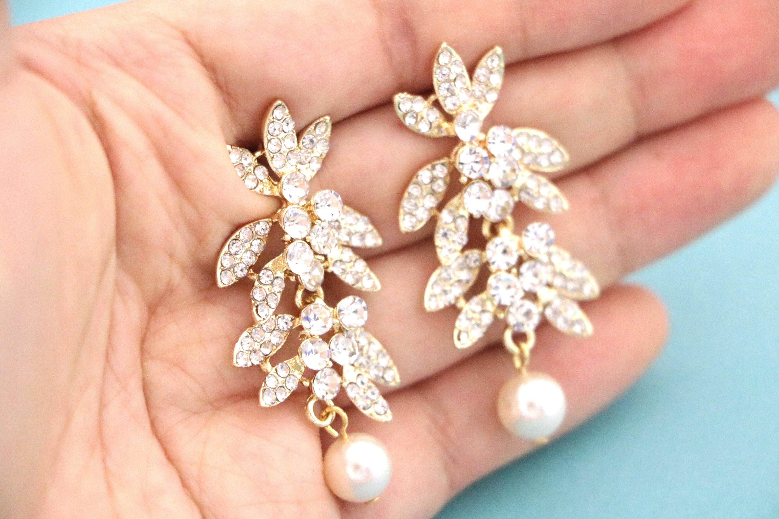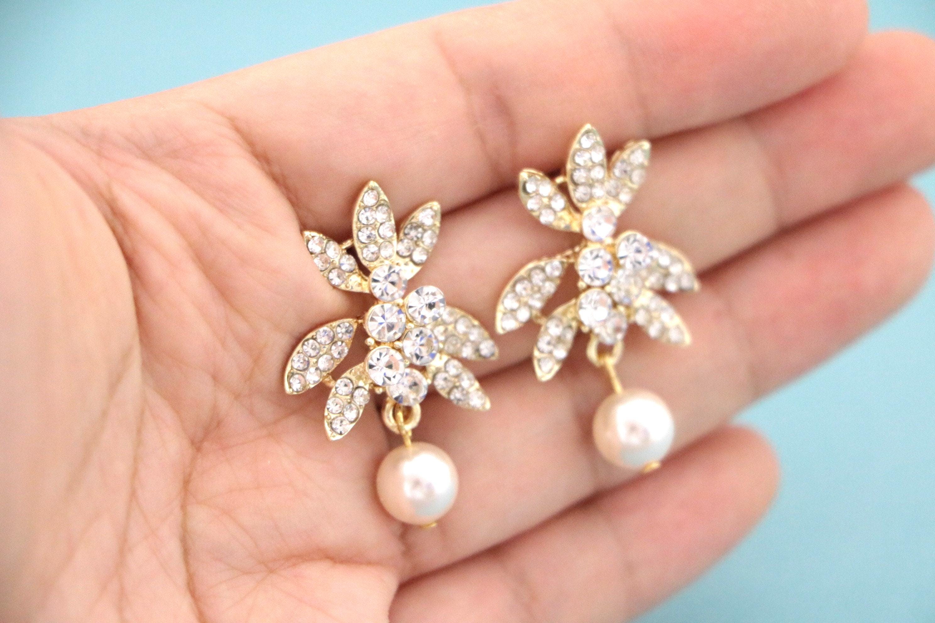 This vintage inspired stunning Pearl and Rhinestone earring is beautiful addition to your wedding day.
