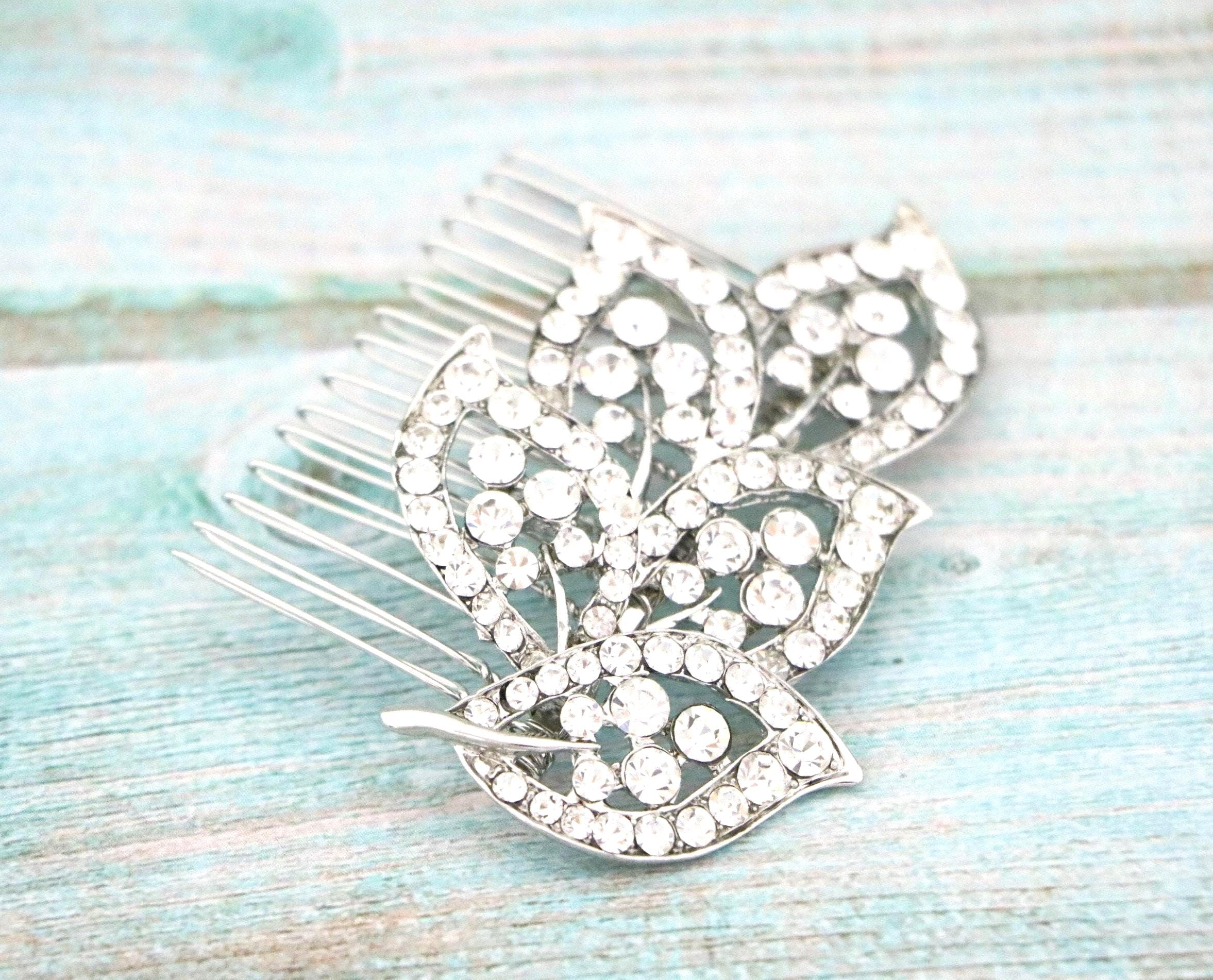 This beautiful Clear rhinestone hair comb is a perfect compliment for the wedding party and can easily fit into any hair style. The brooch is measured approx. 3 X 1.5 inches.