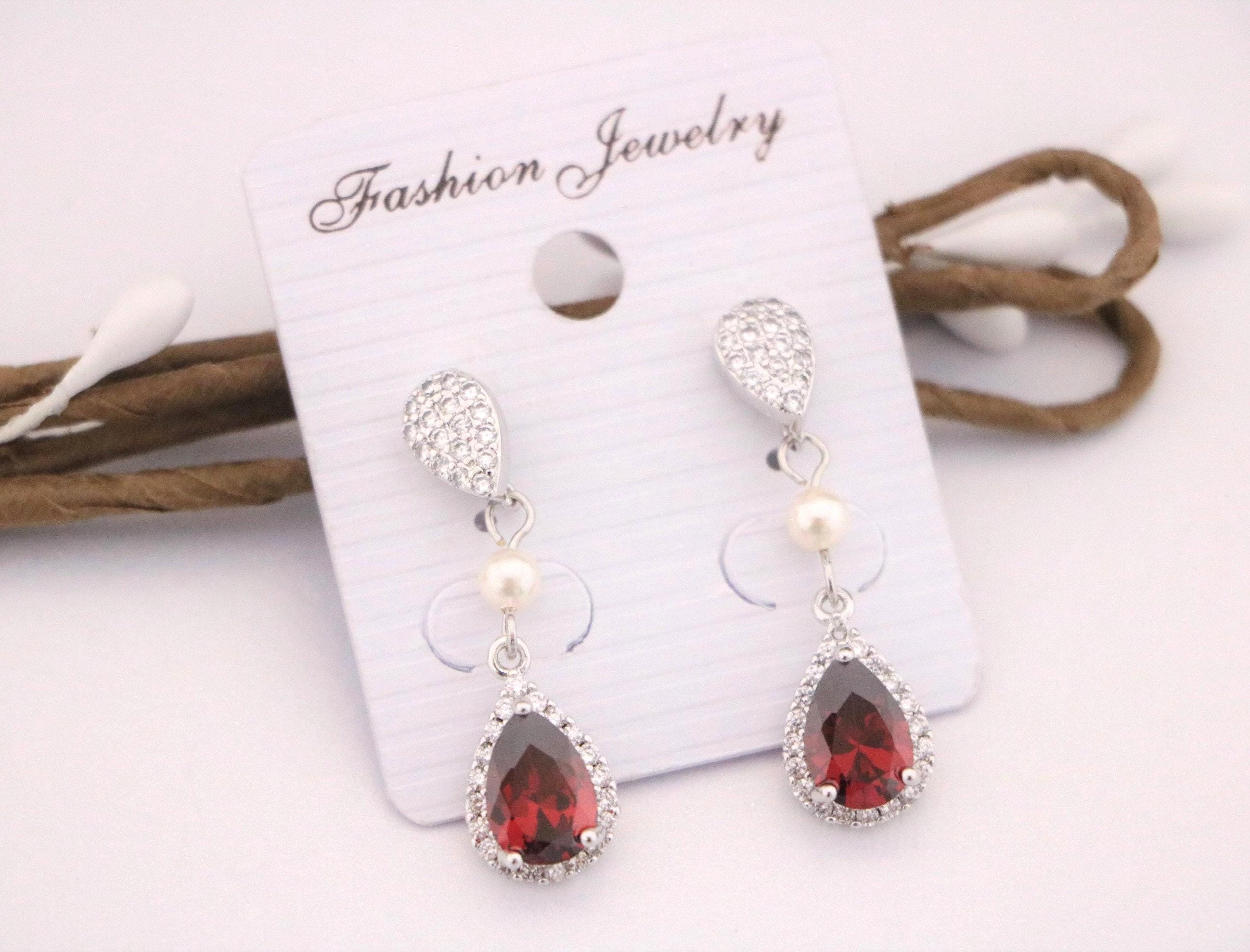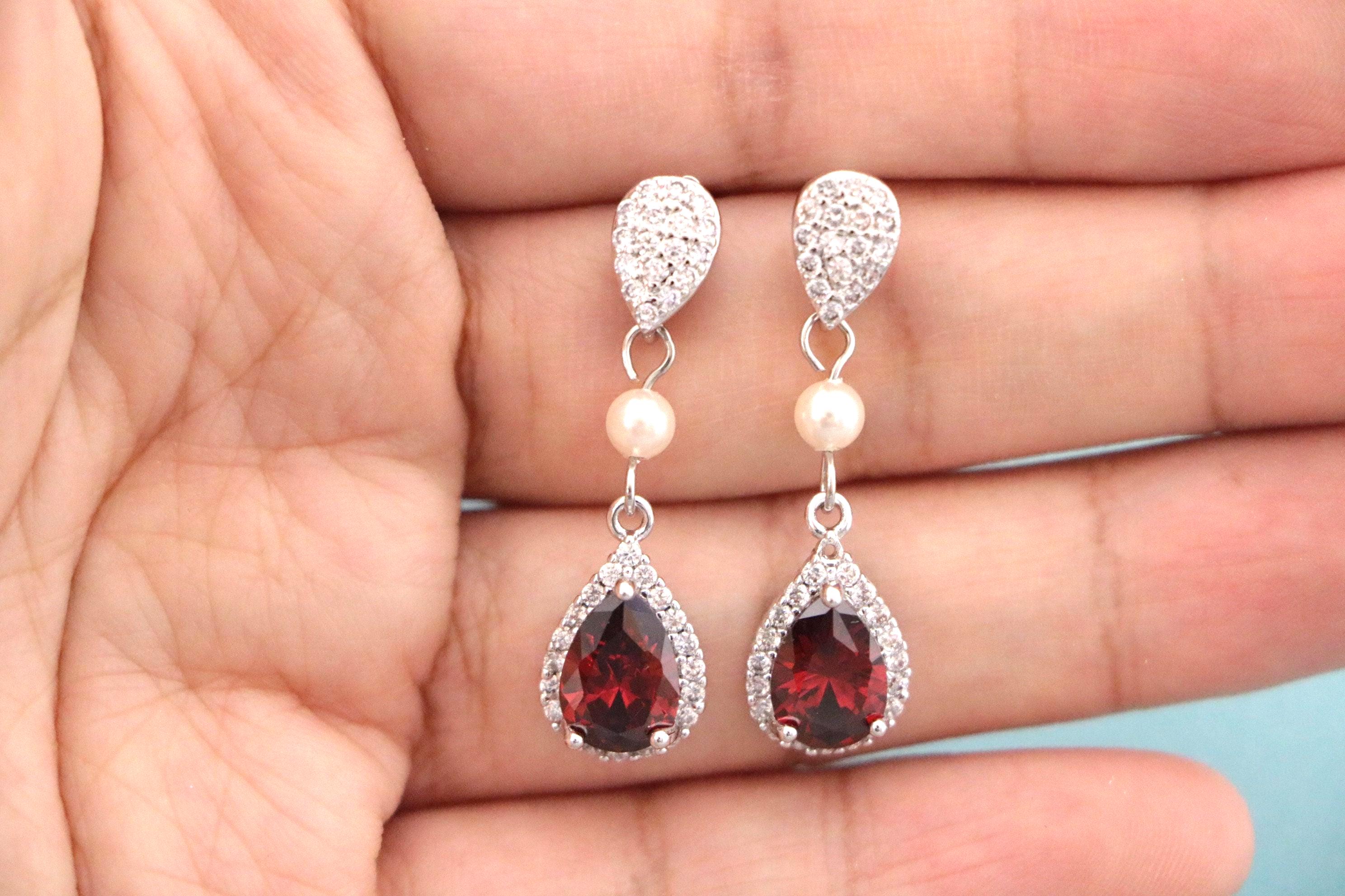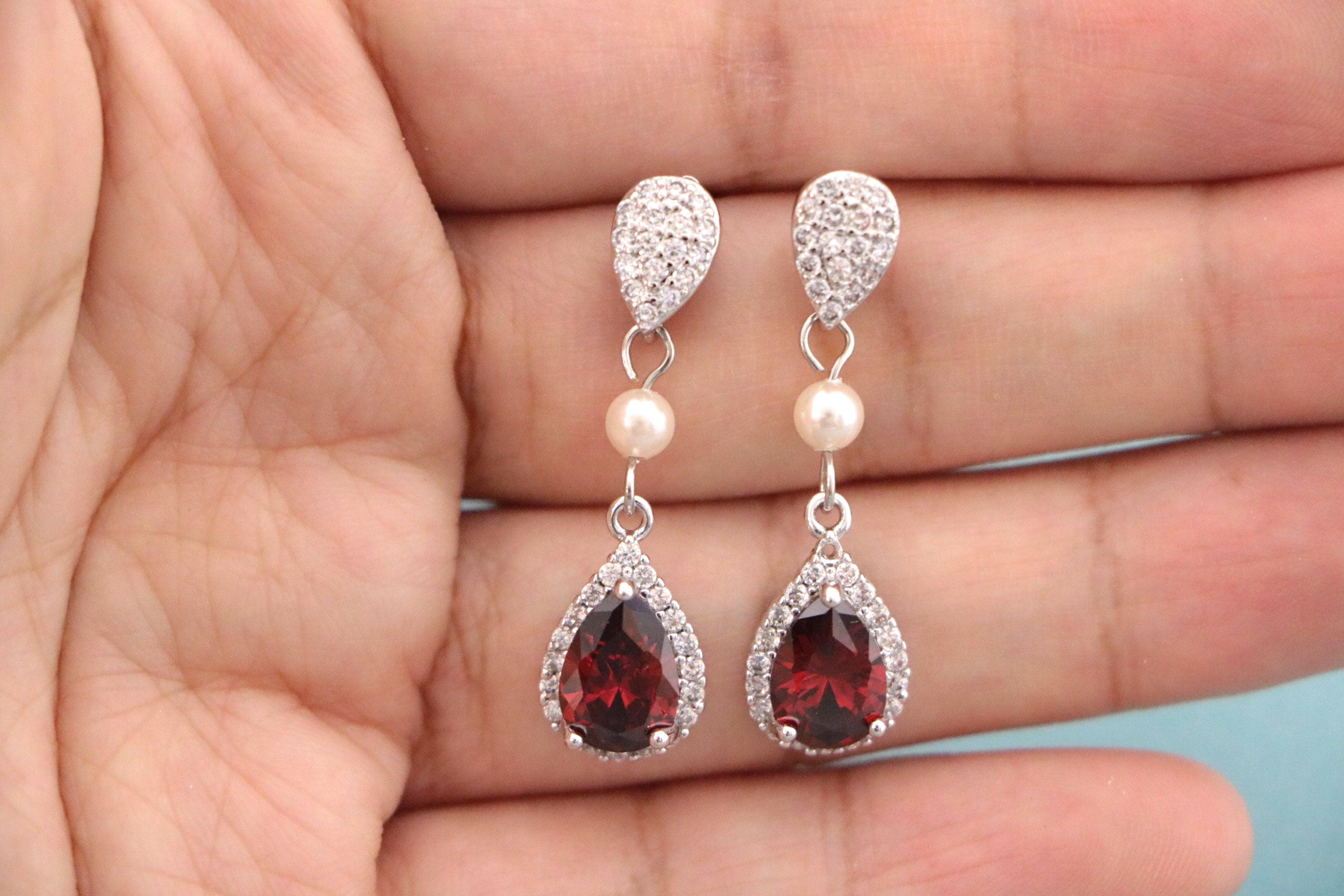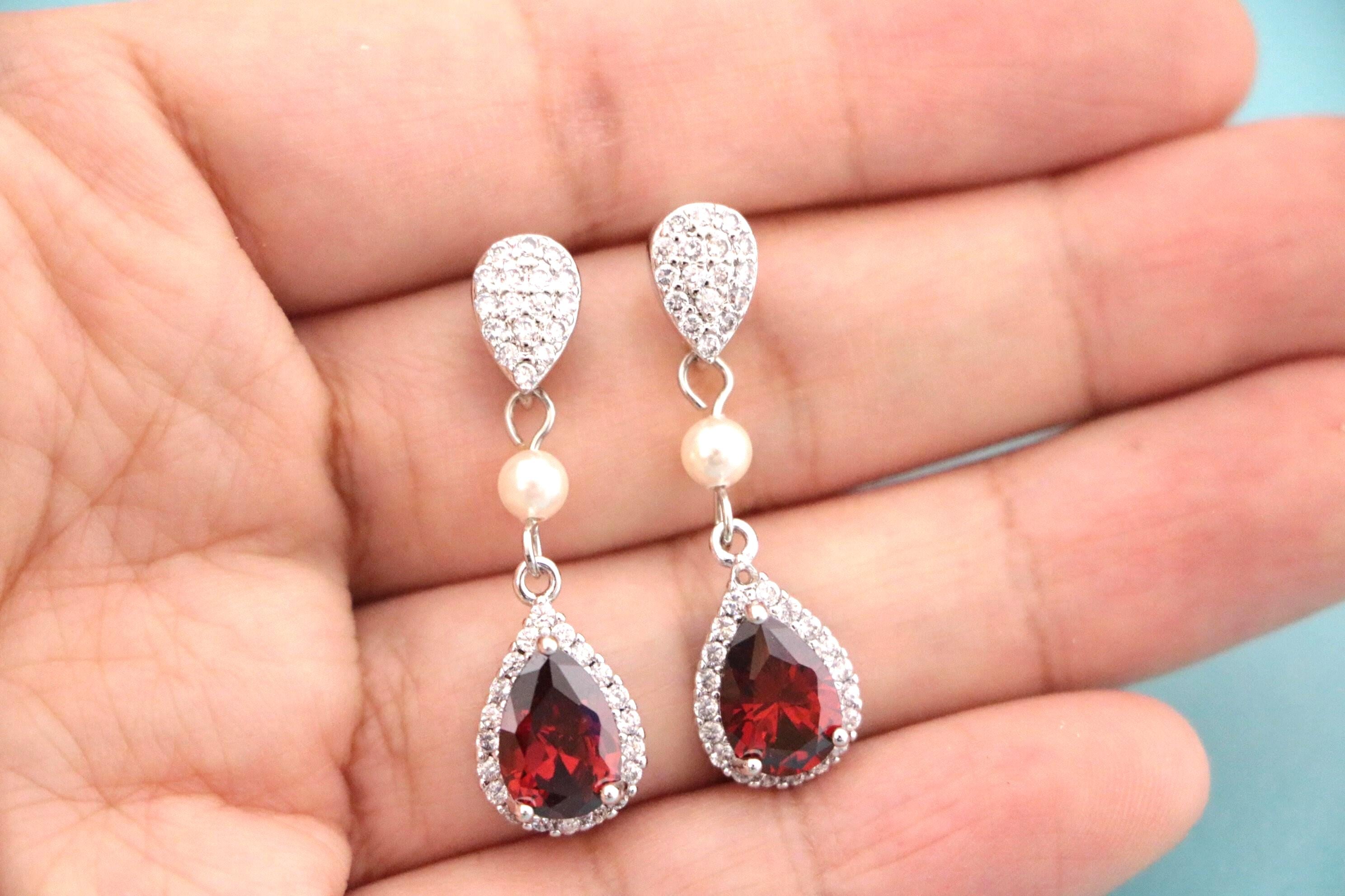 Blue, Red,Denim, Champagne or Pink Cubic Zirconia CZ Dangle Bridal Earrings, Wedding