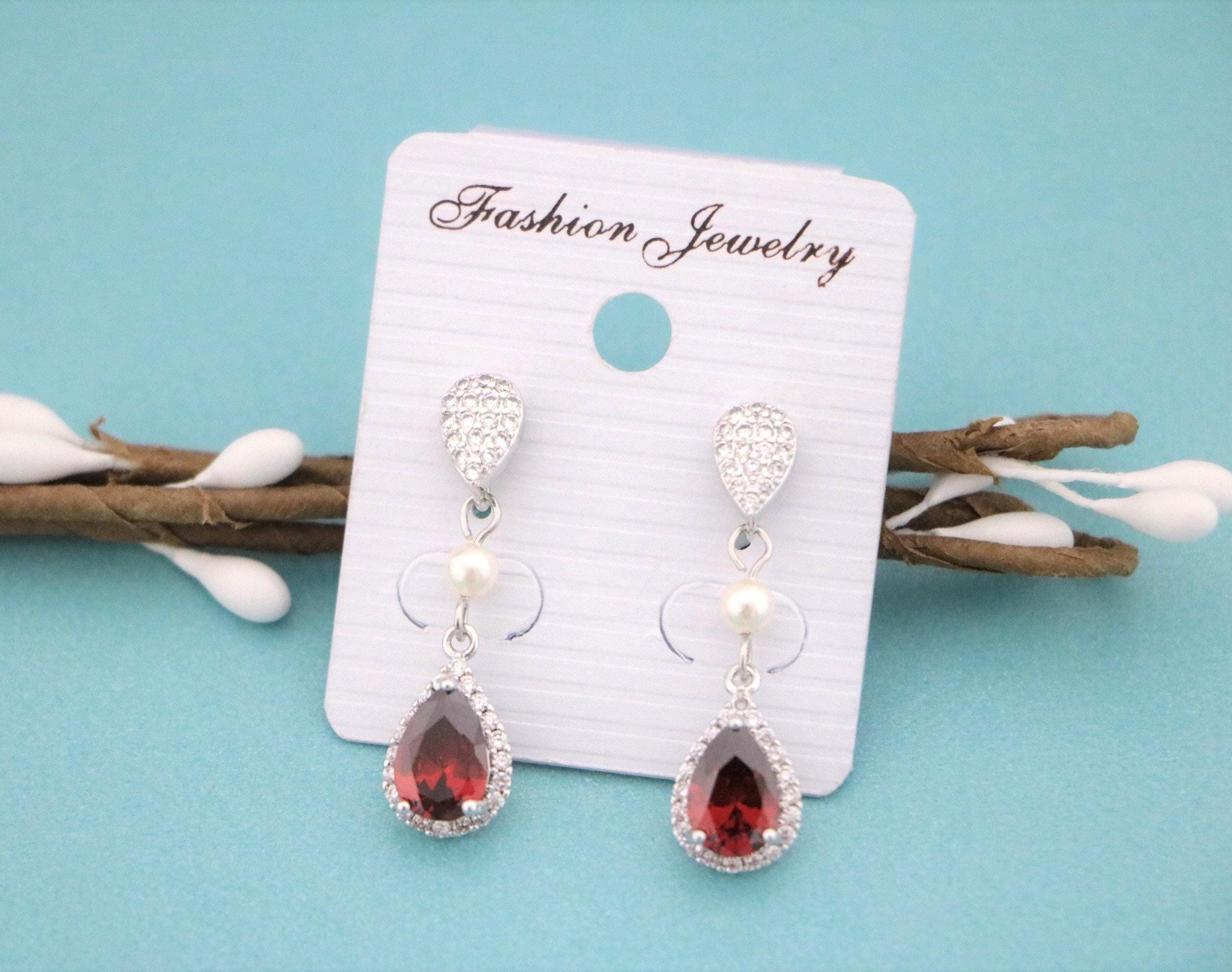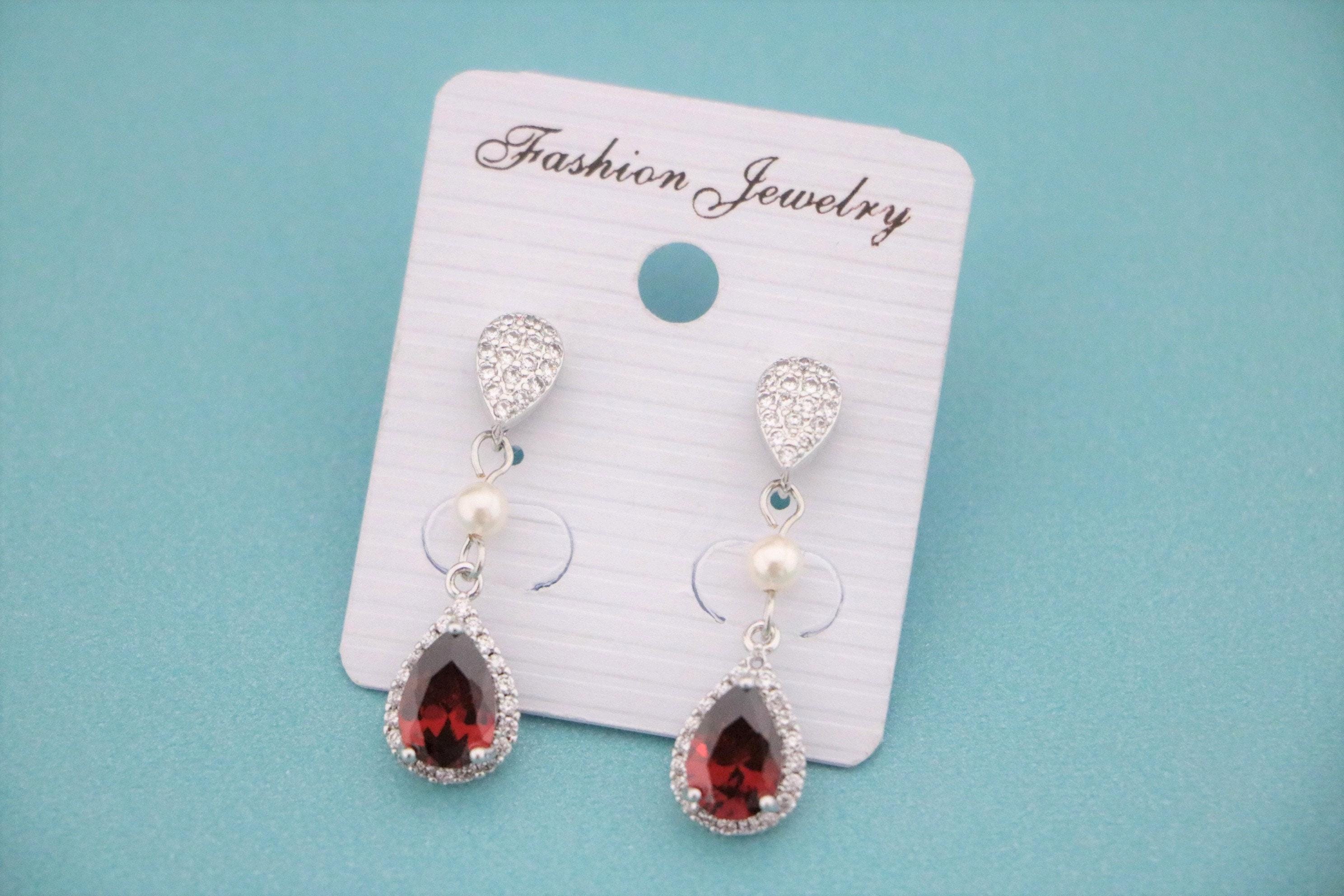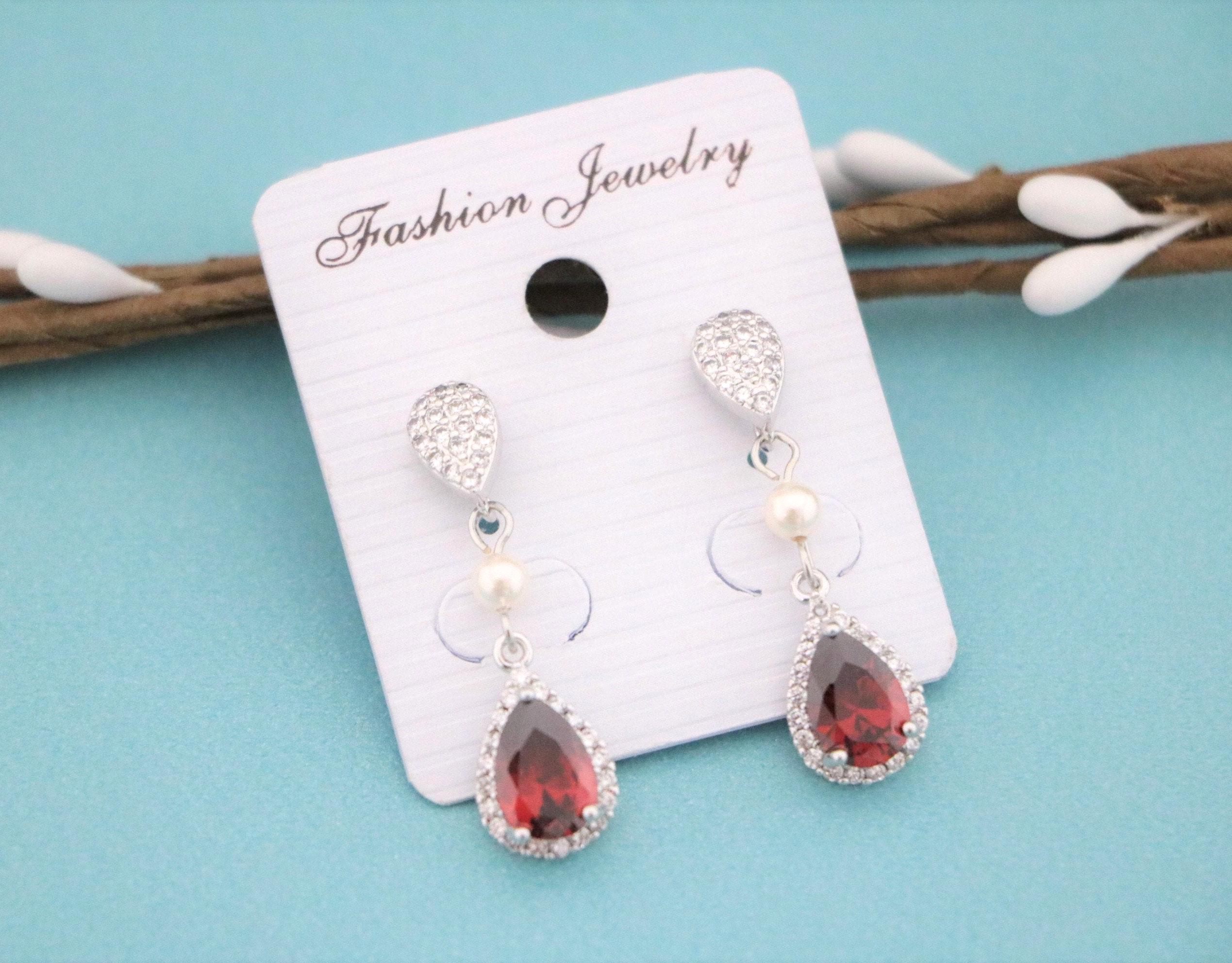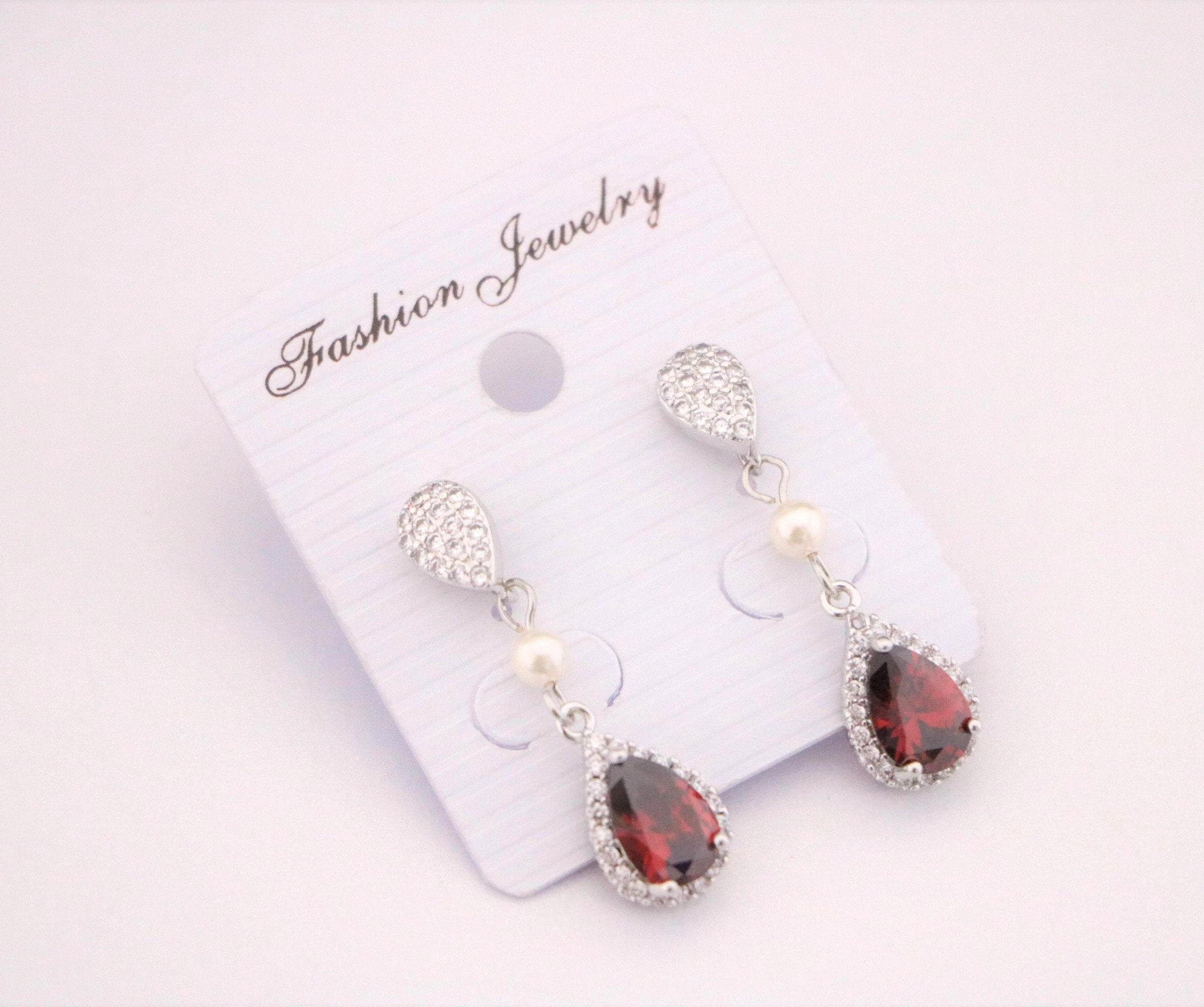 Blue, Red,Denim, Champagne or Pink Cubic Zirconia CZ Dangle Bridal Earrings, Wedding