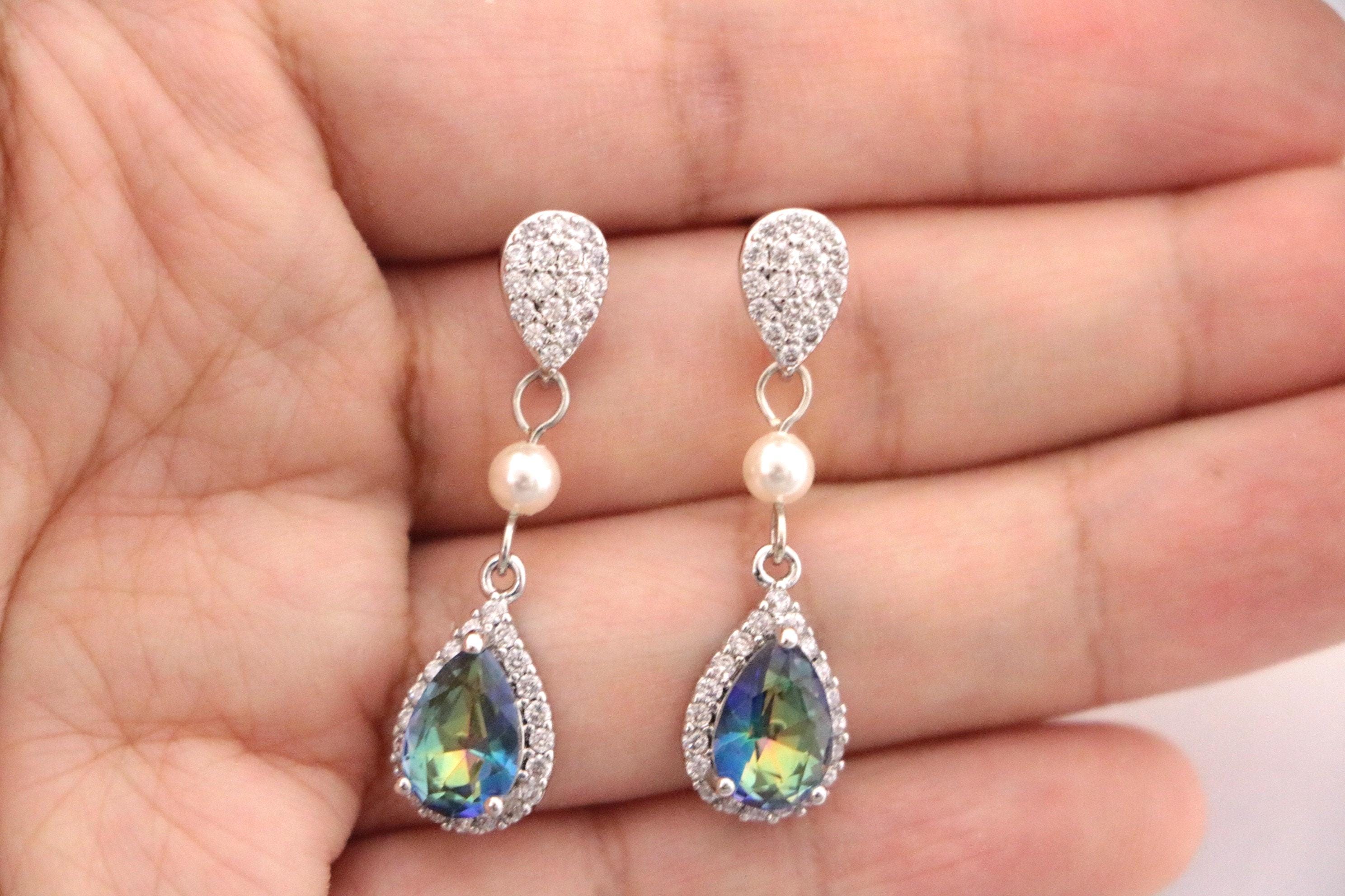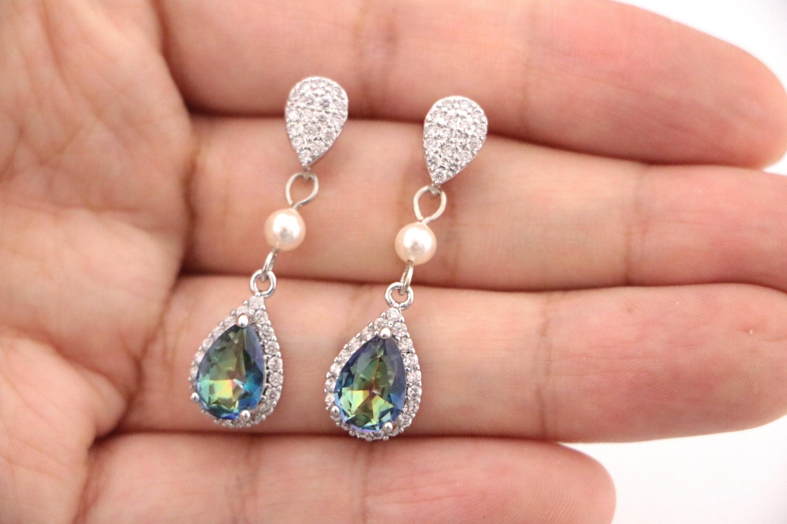 Swarovski White Pearl Earrings, Bridal CZ Earrings, Bridesmaid Earrings, Maid of Honor Gift, Mother of the Bride, Mother of the Groom Gift