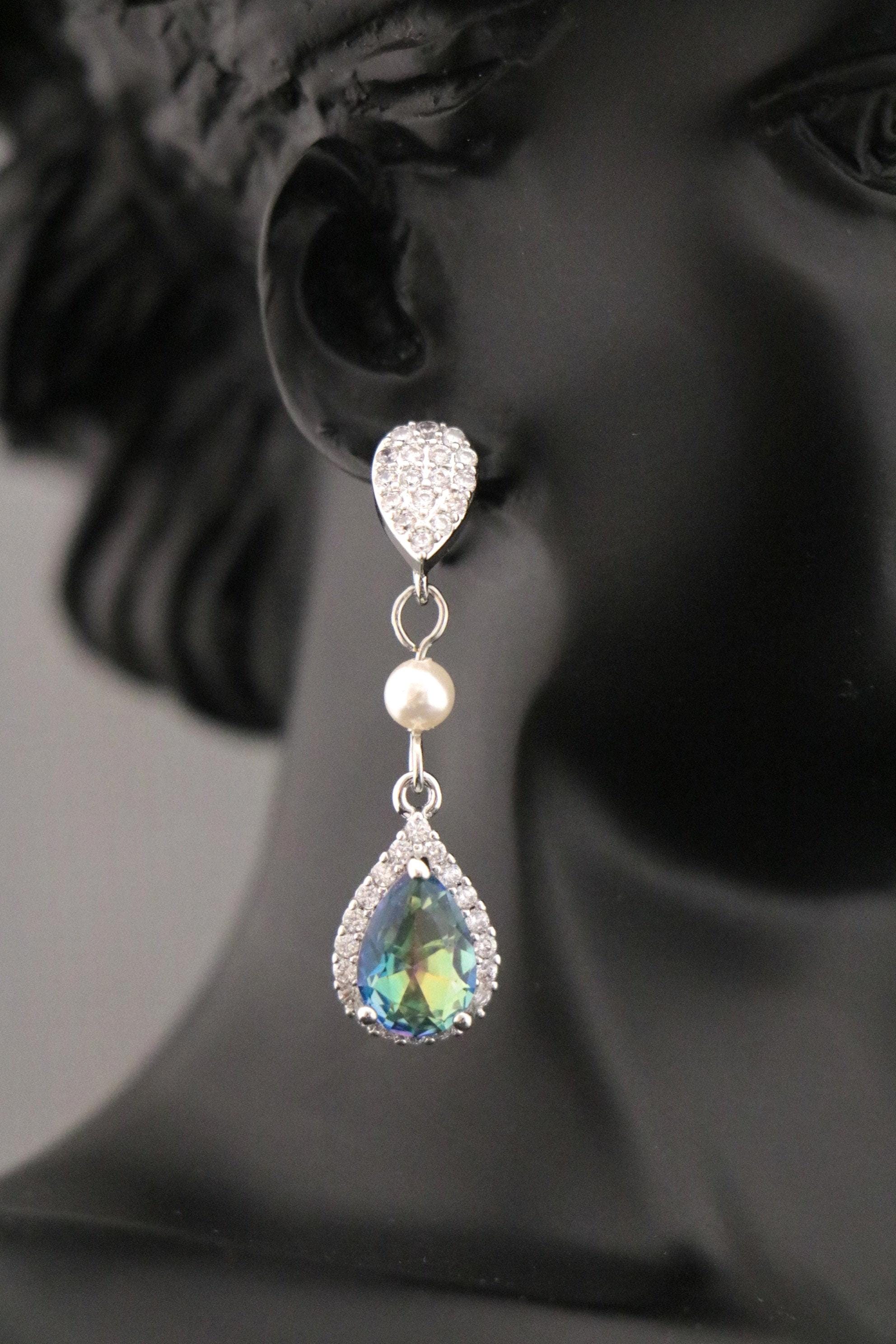 This vintage inspired stunning Pearl and Cubic Zirconia earring is beautiful addition to your wedding day.