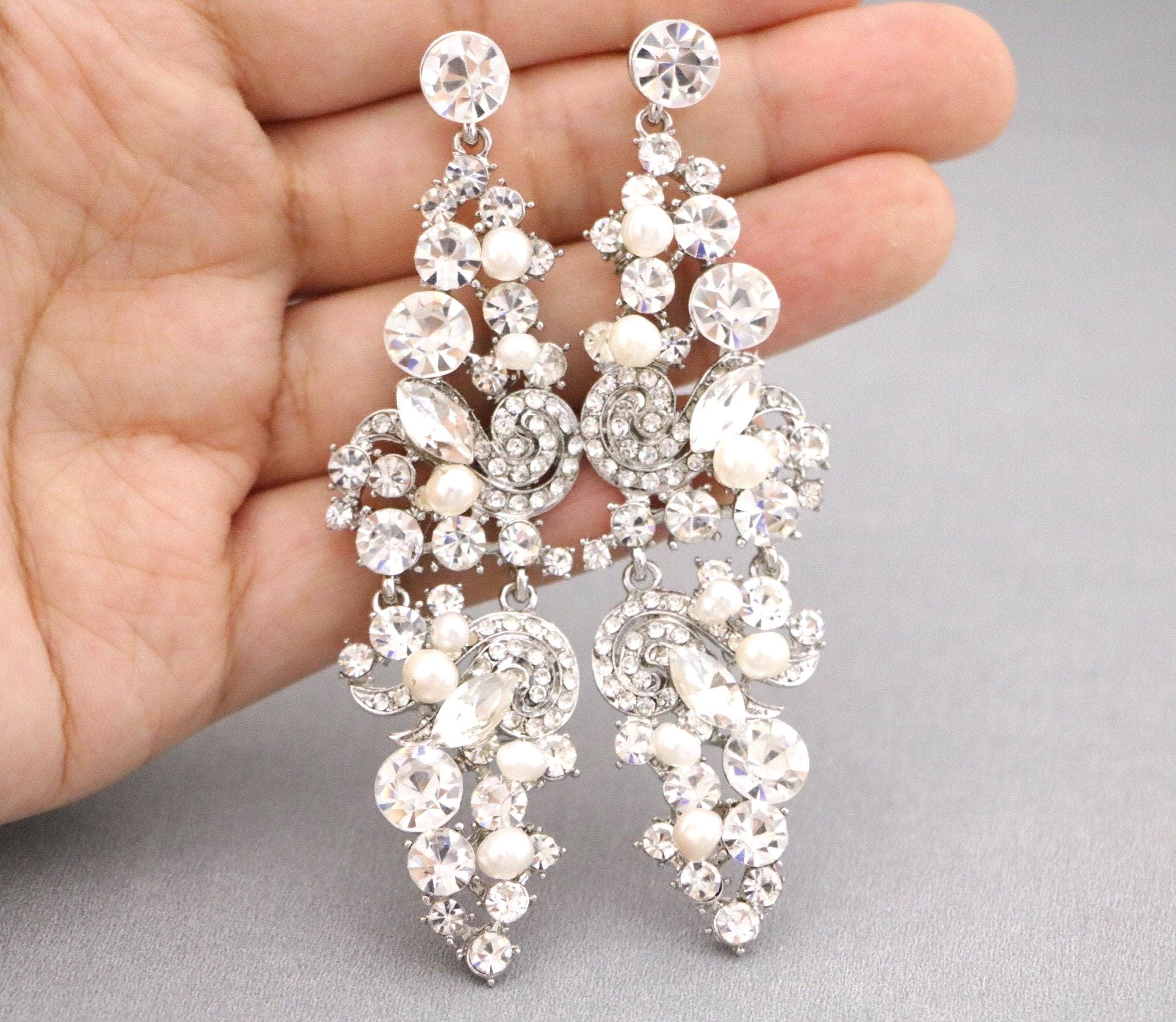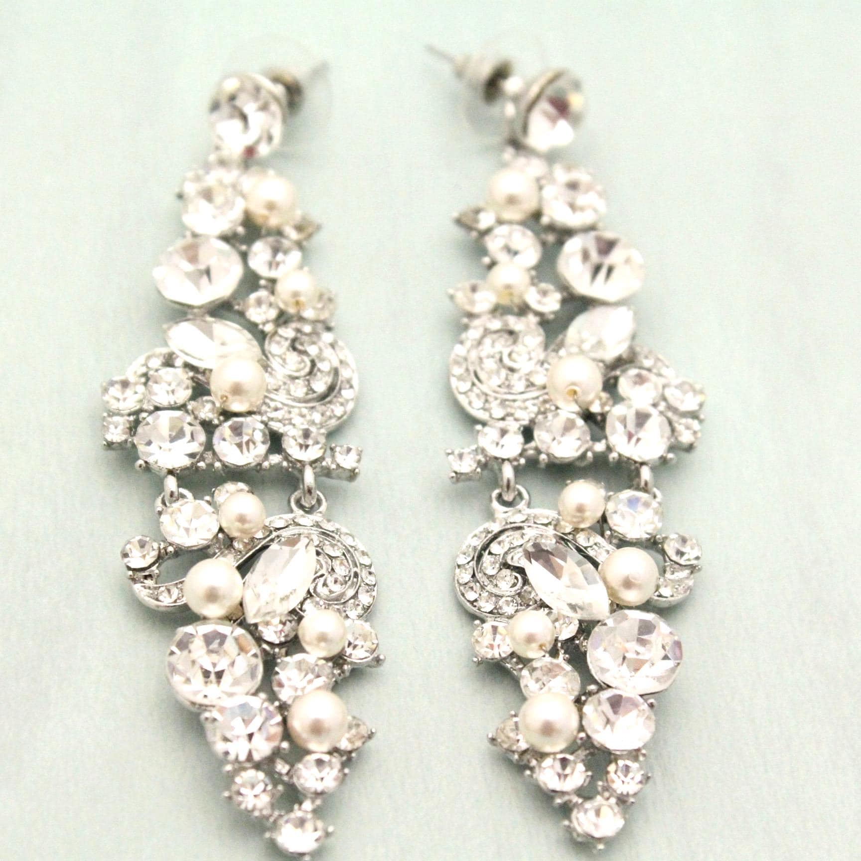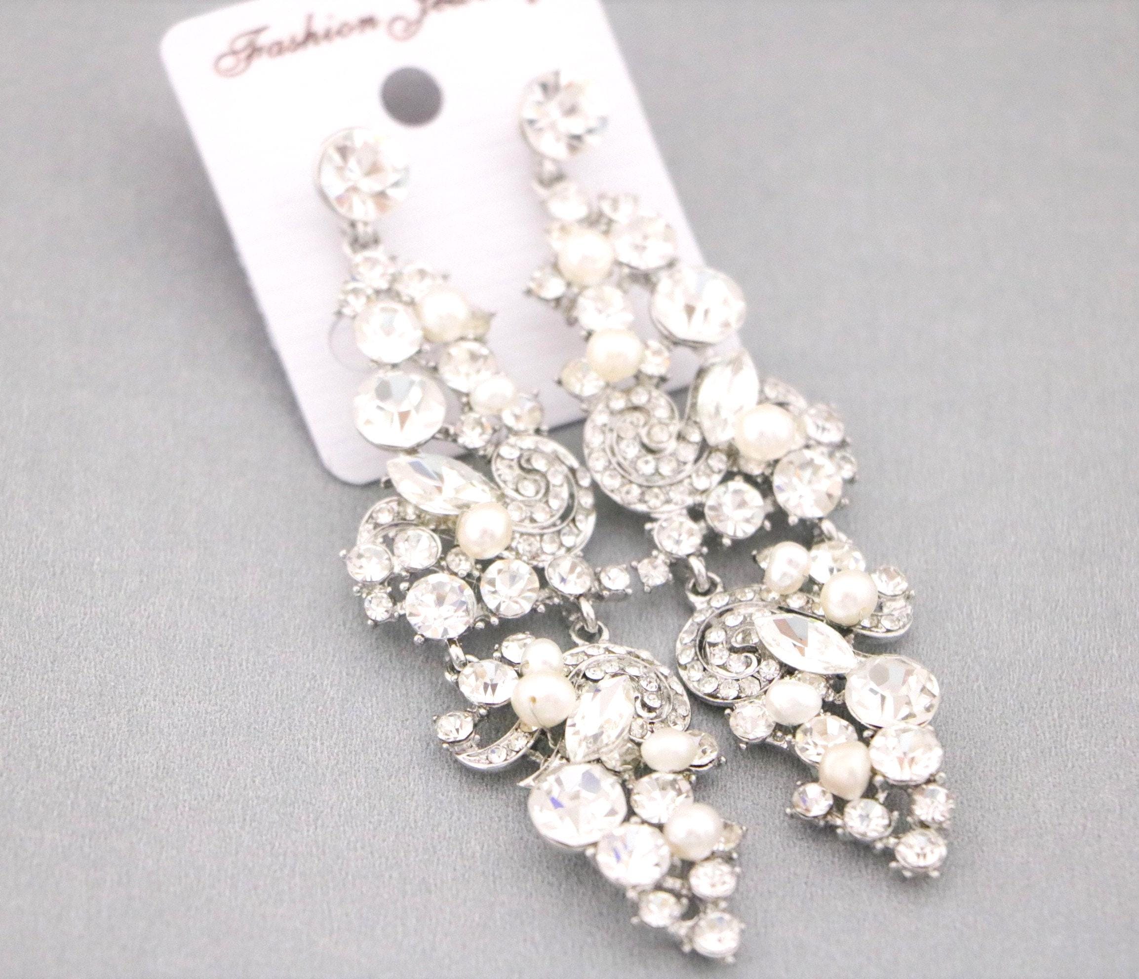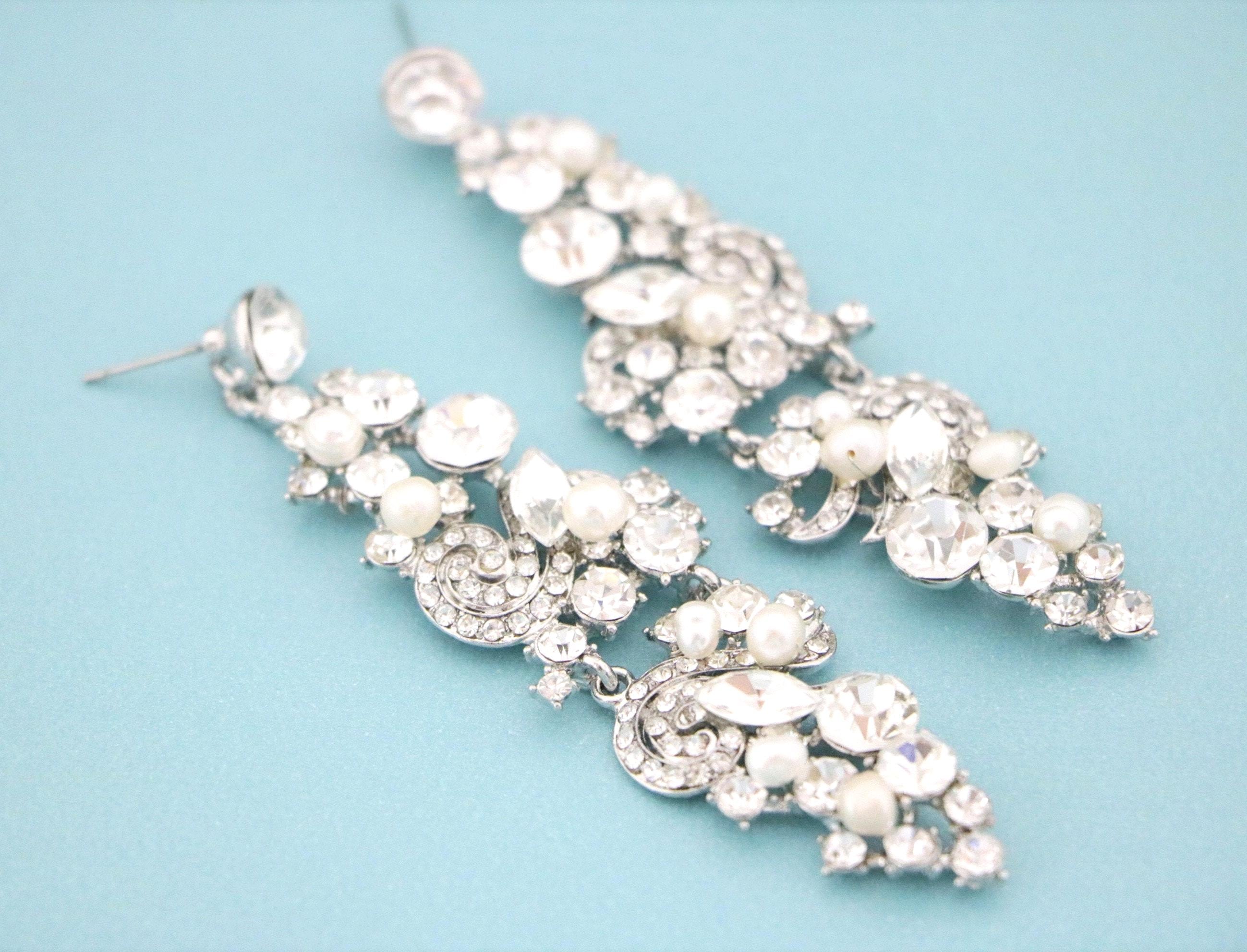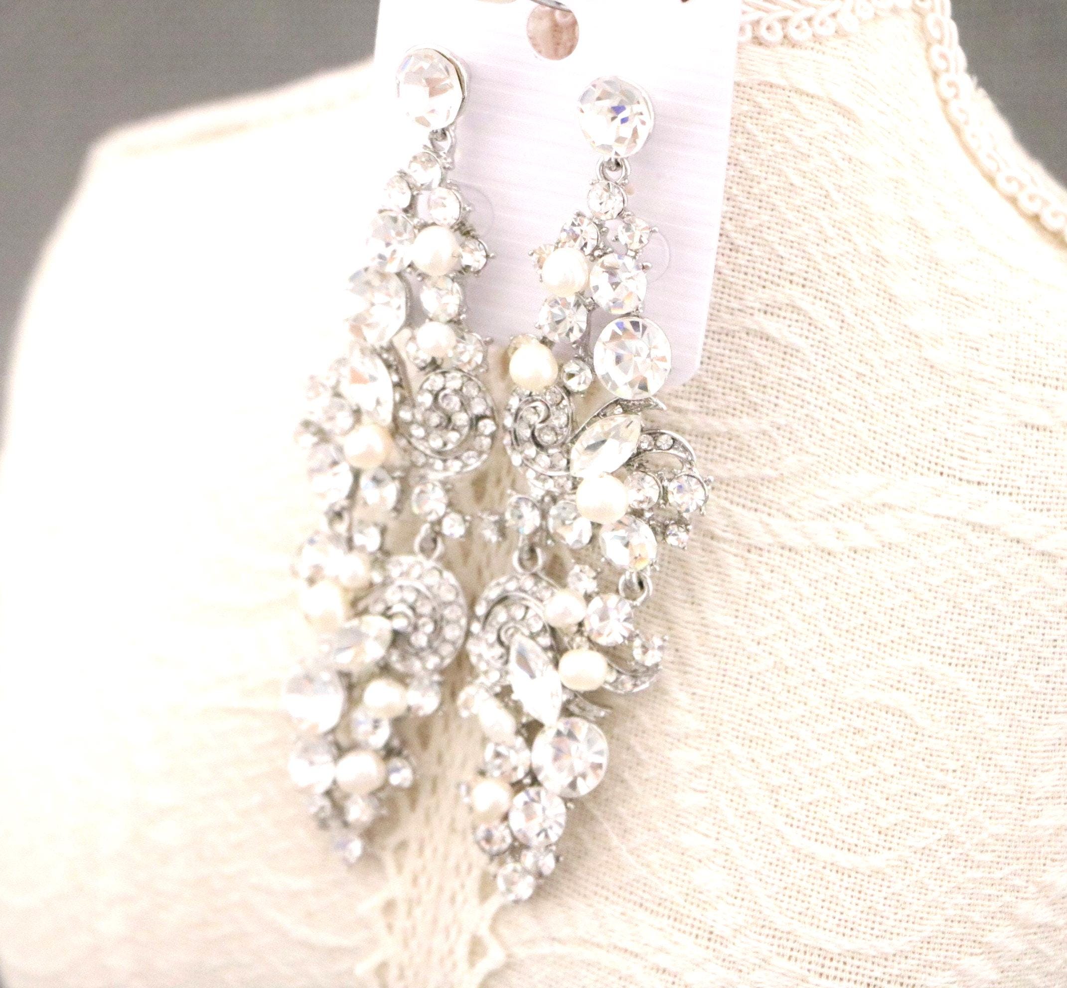 Chandelier Vintage Pearls Crystal Bridal Earrings Long Victorian Style Earrings Wedding Jewelry drop wedding Earrings