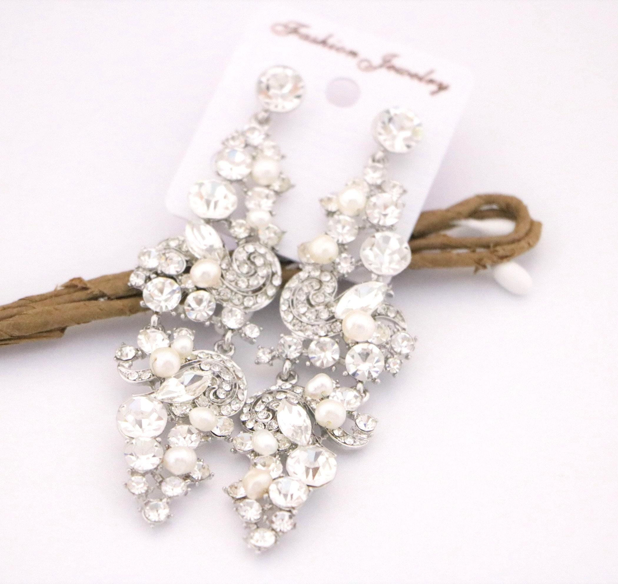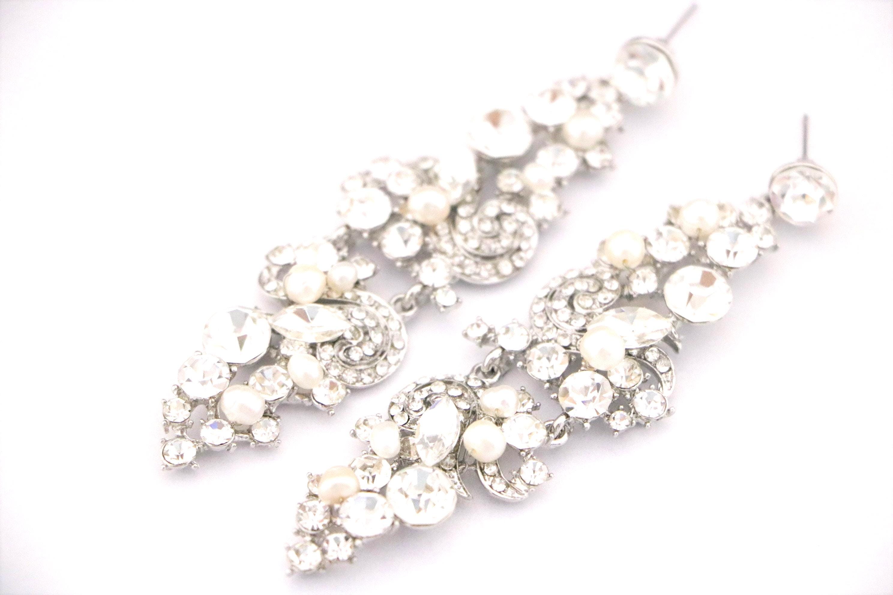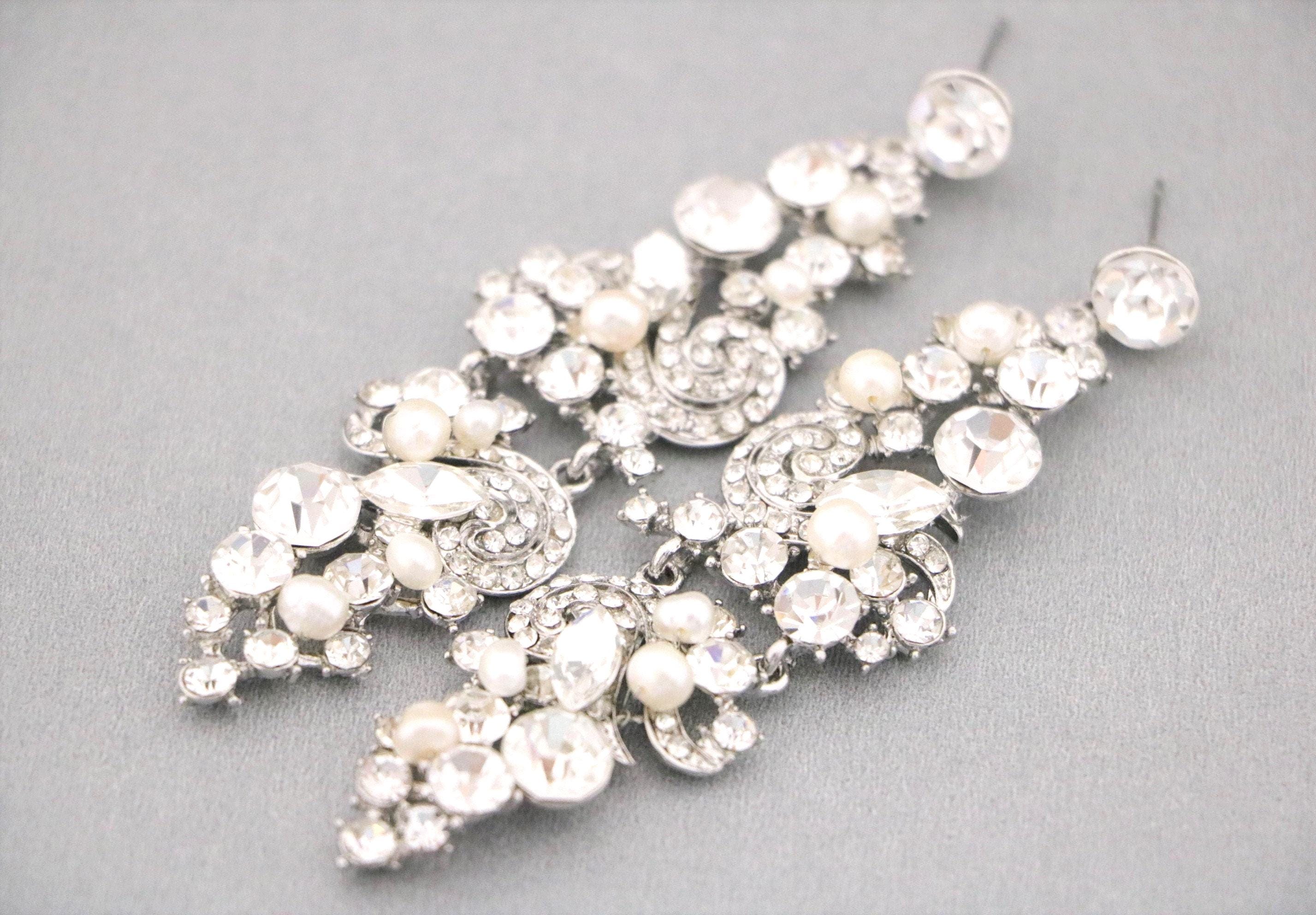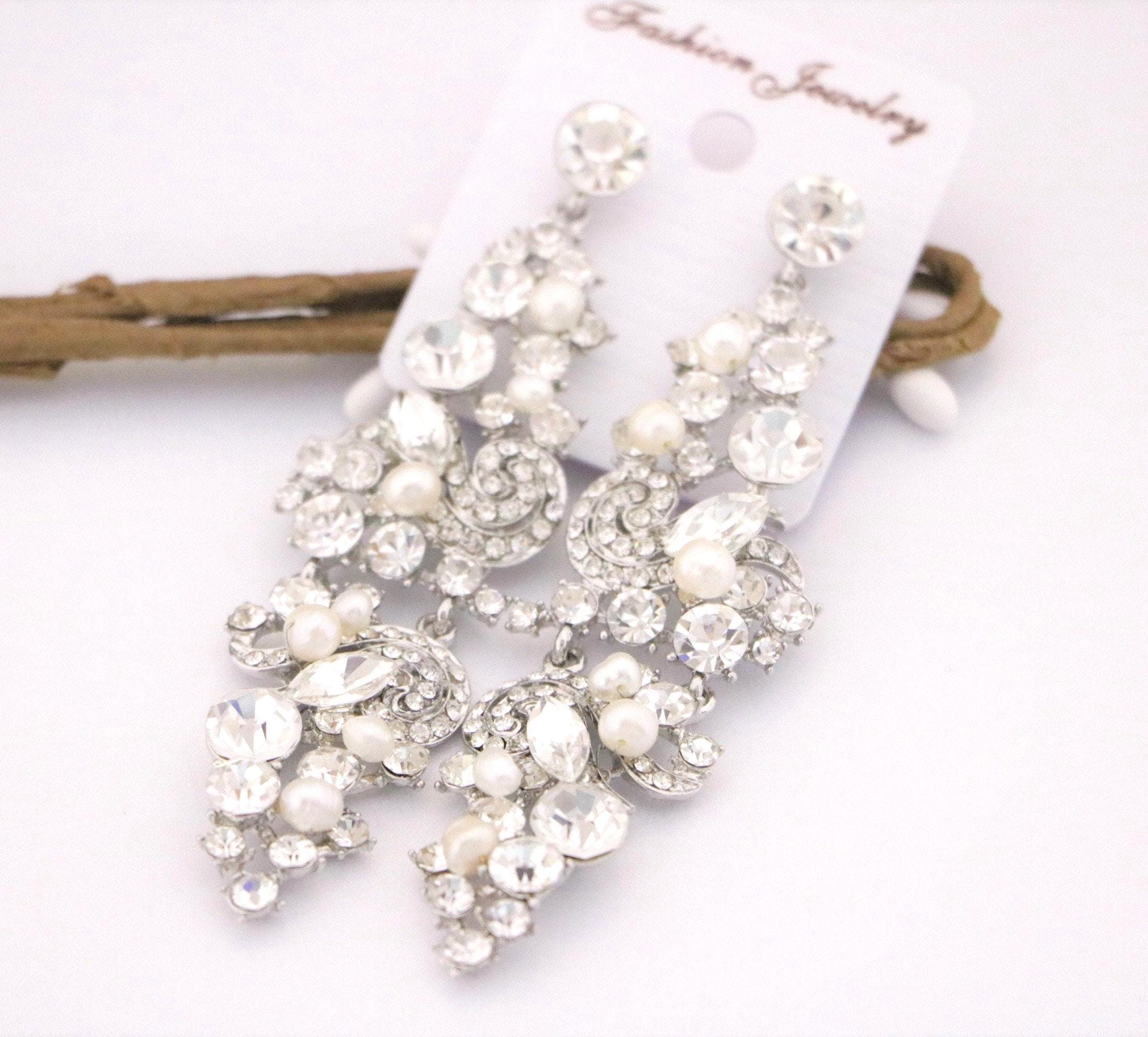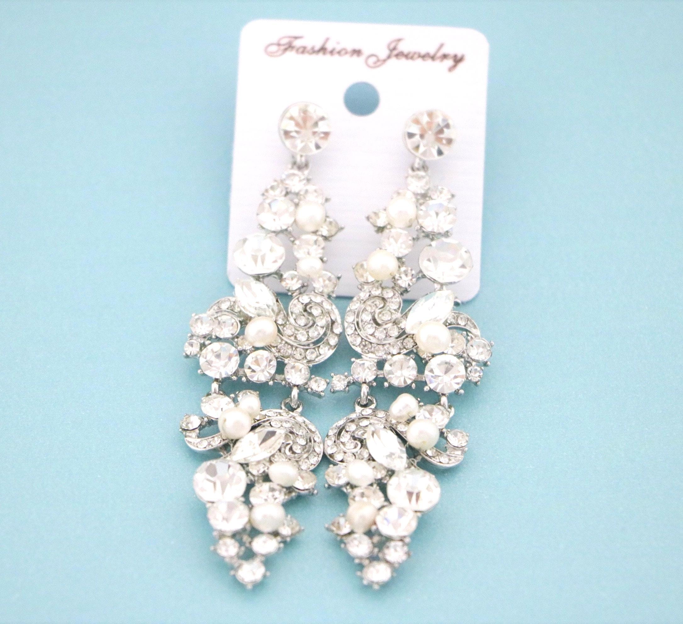 Chandelier Vintage Pearls Crystal Bridal Earrings Long Victorian Style Earrings Wedding Jewelry drop wedding Earrings