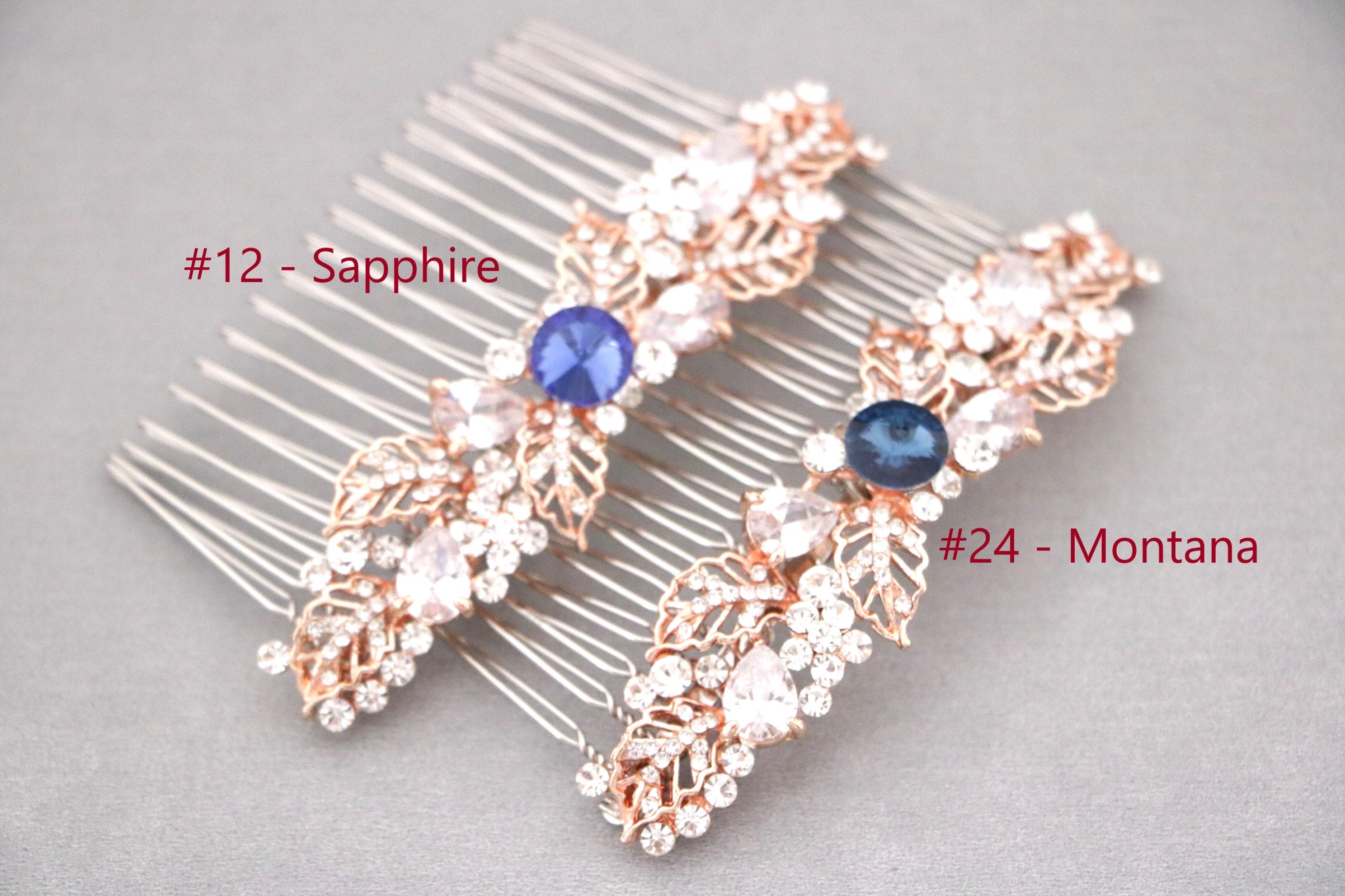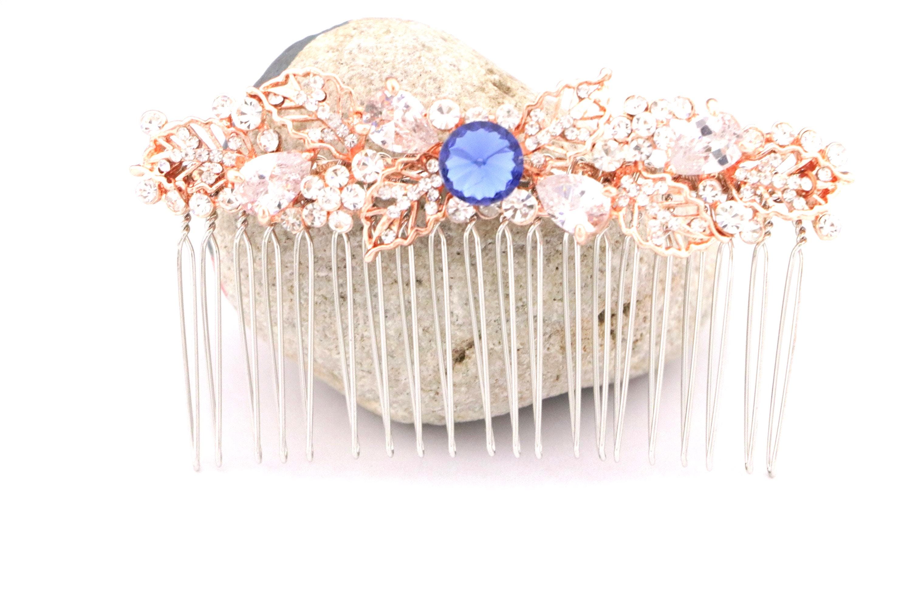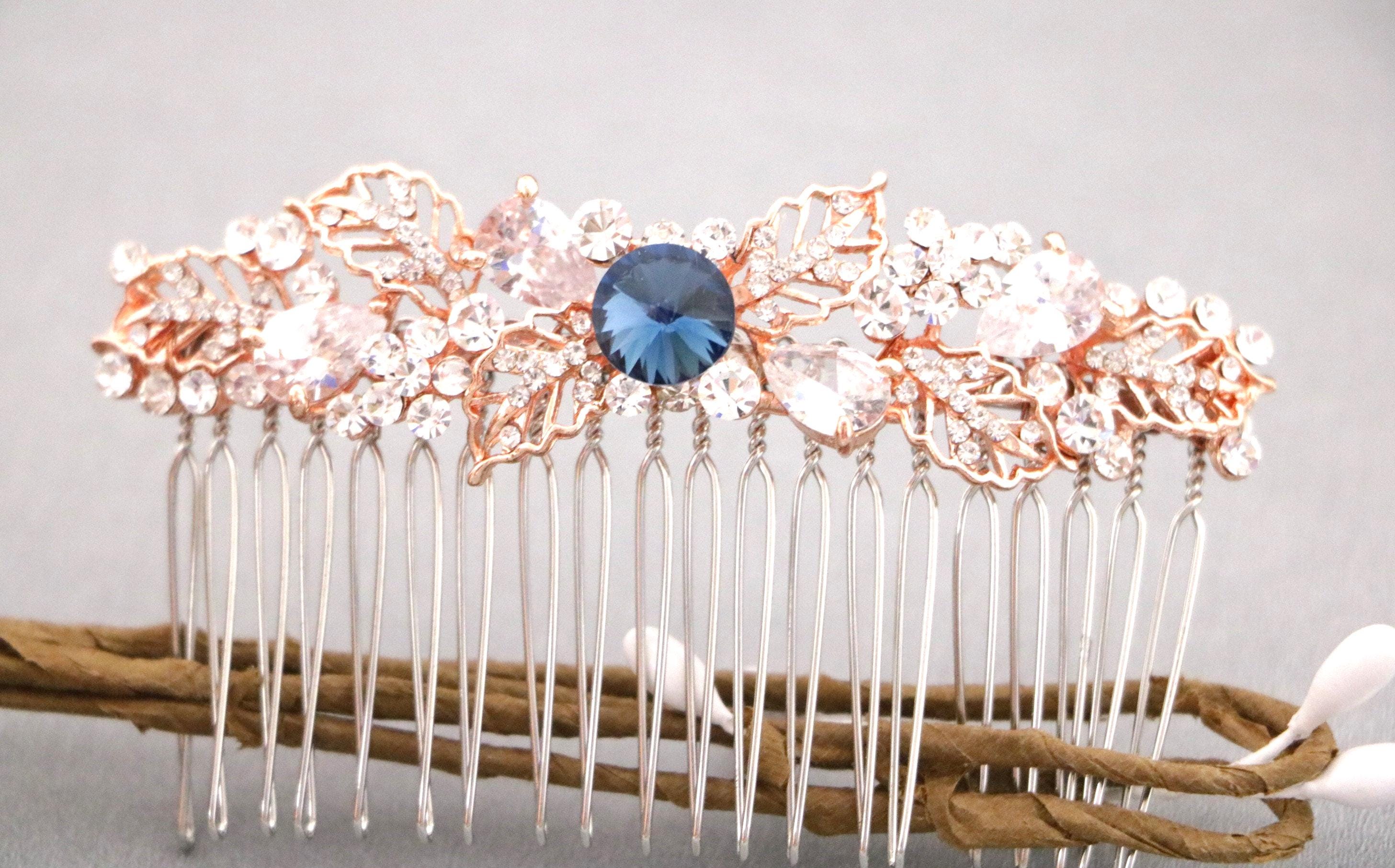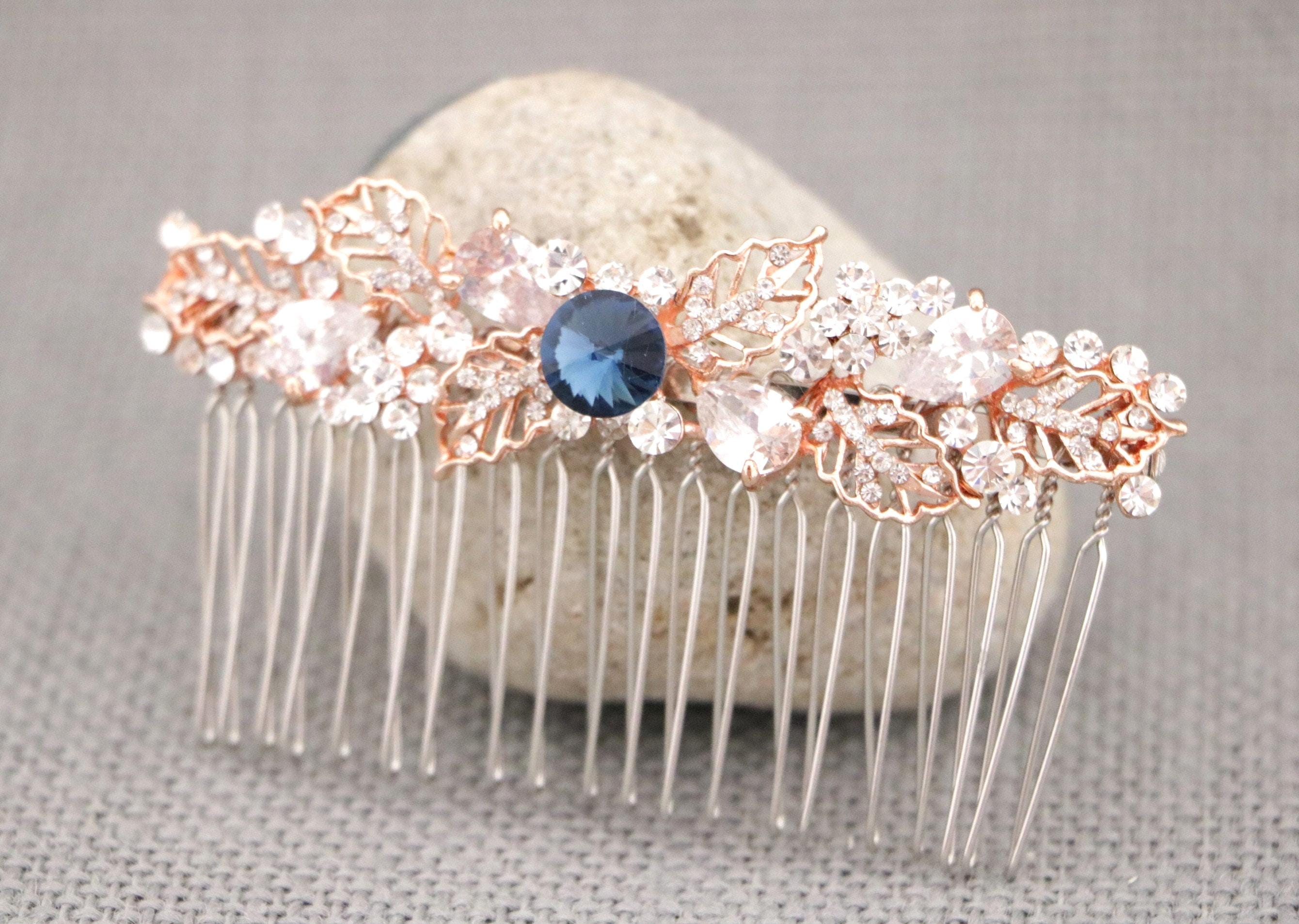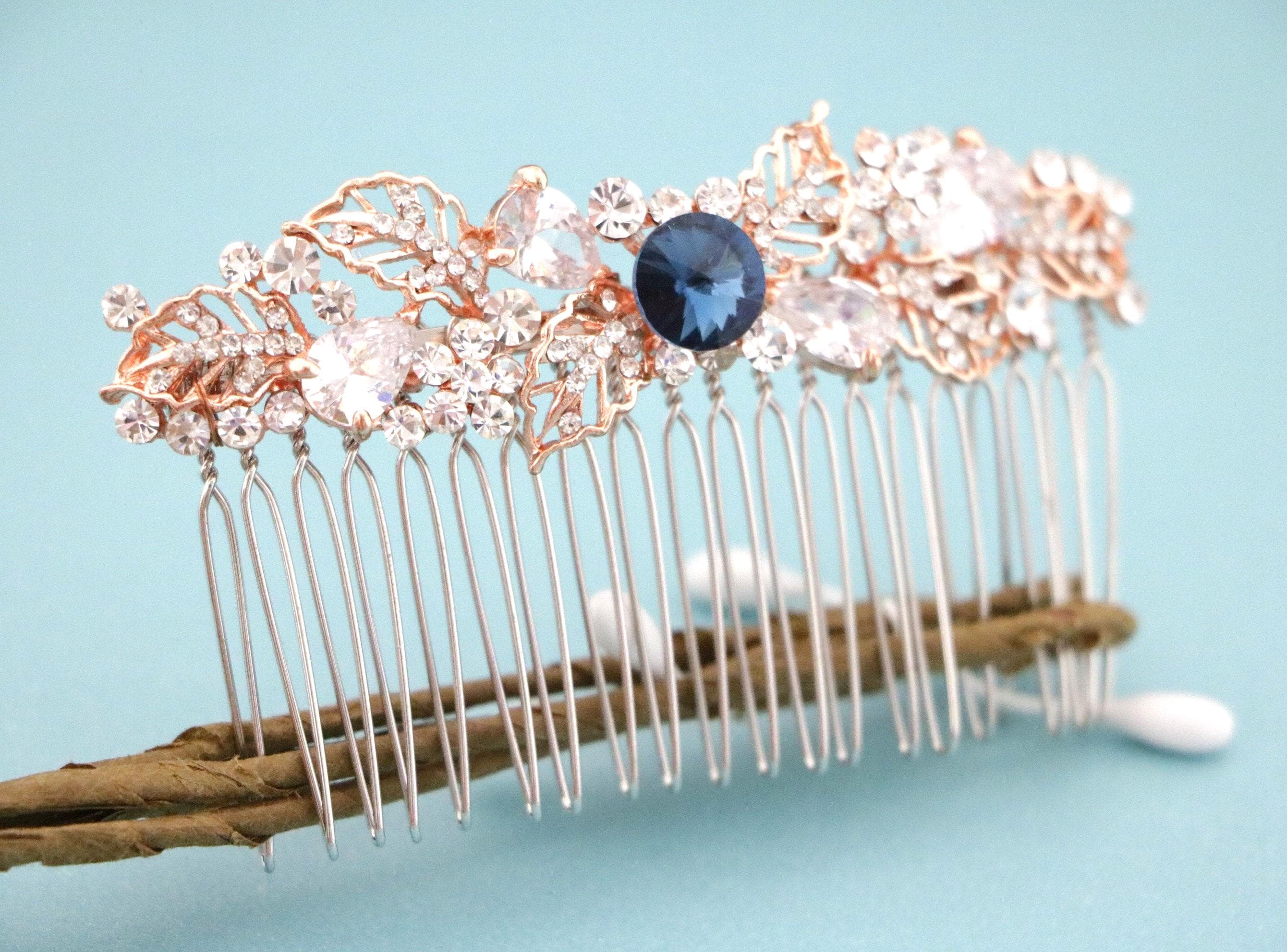 Bridal Hair Comb,Wedding Hair Accessory,Navy blue Hair Comb,Wedding headpiece,Crystal hair comb,rose gold head piece,Vintage style Headpiece