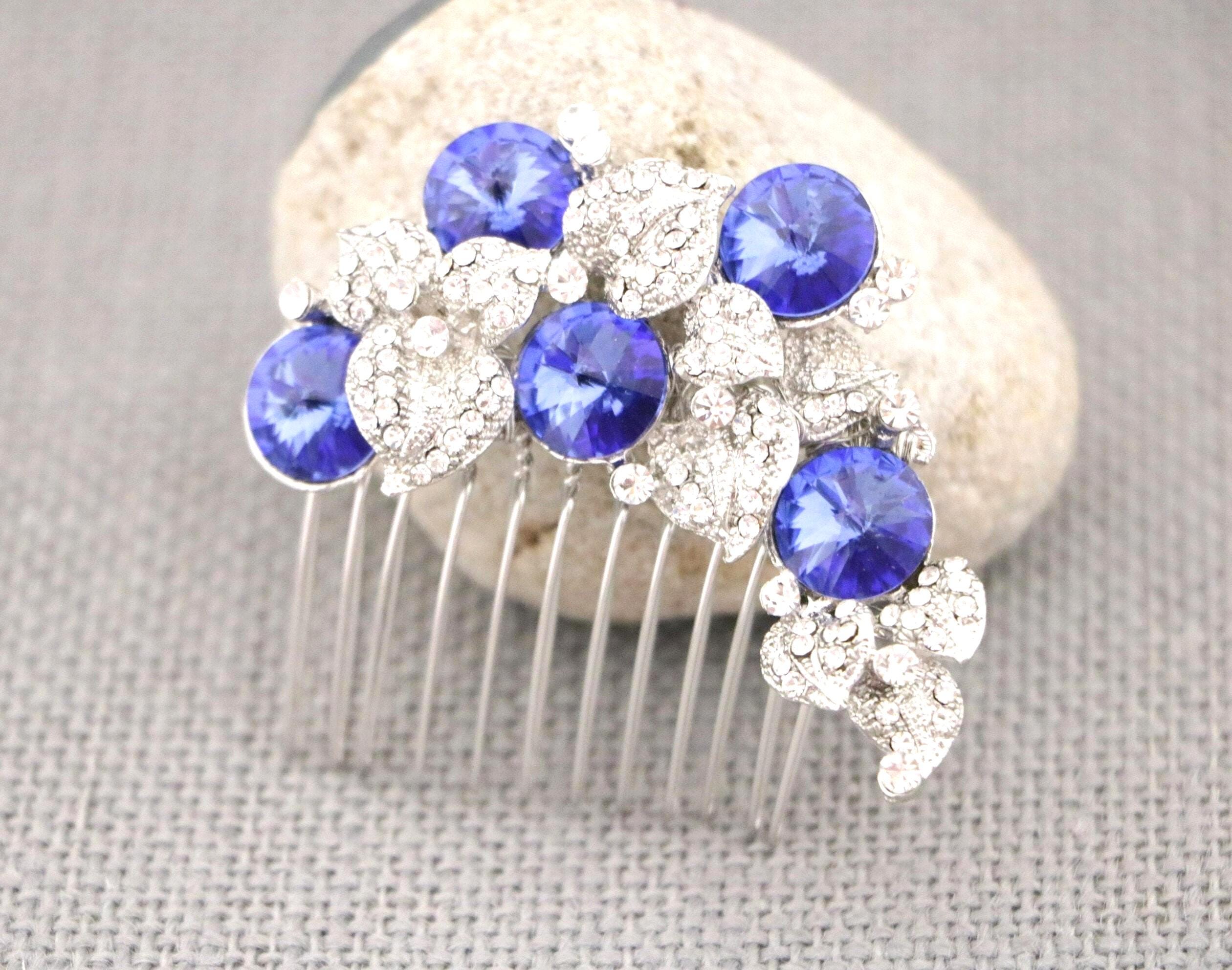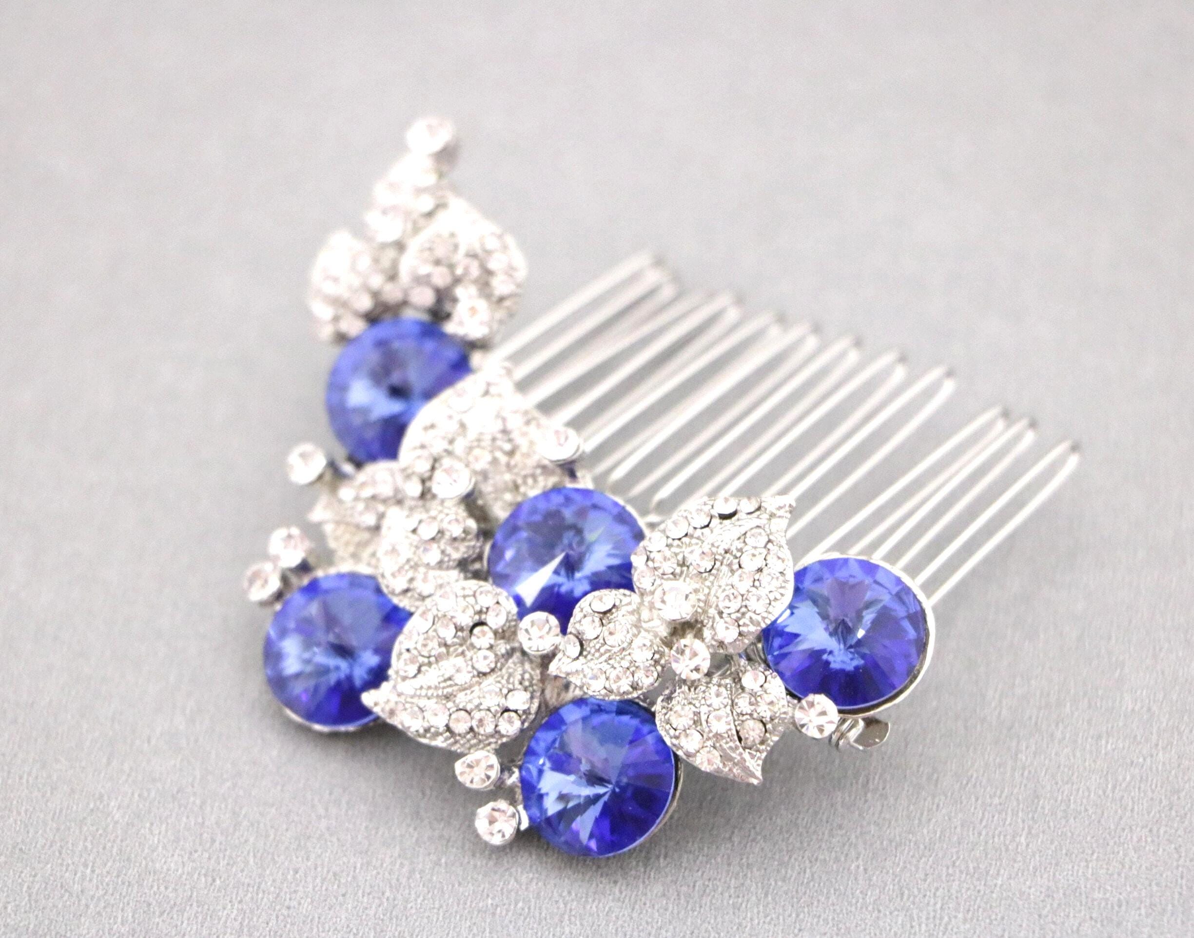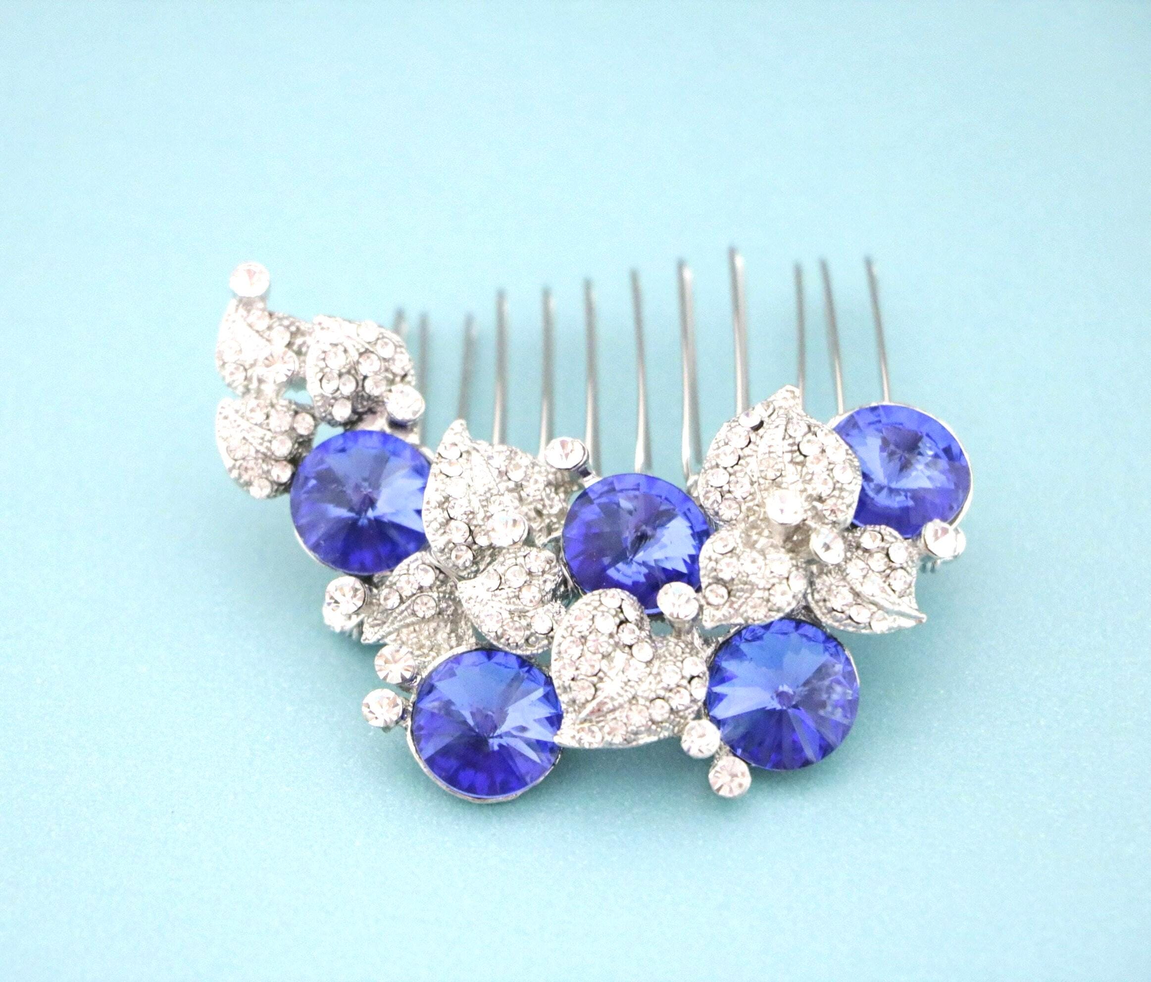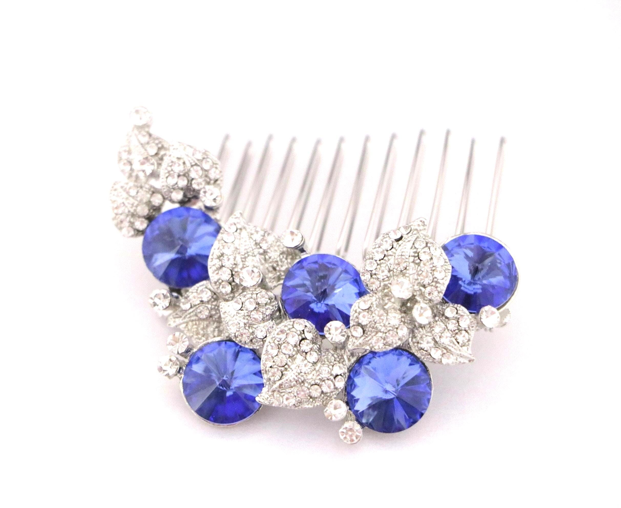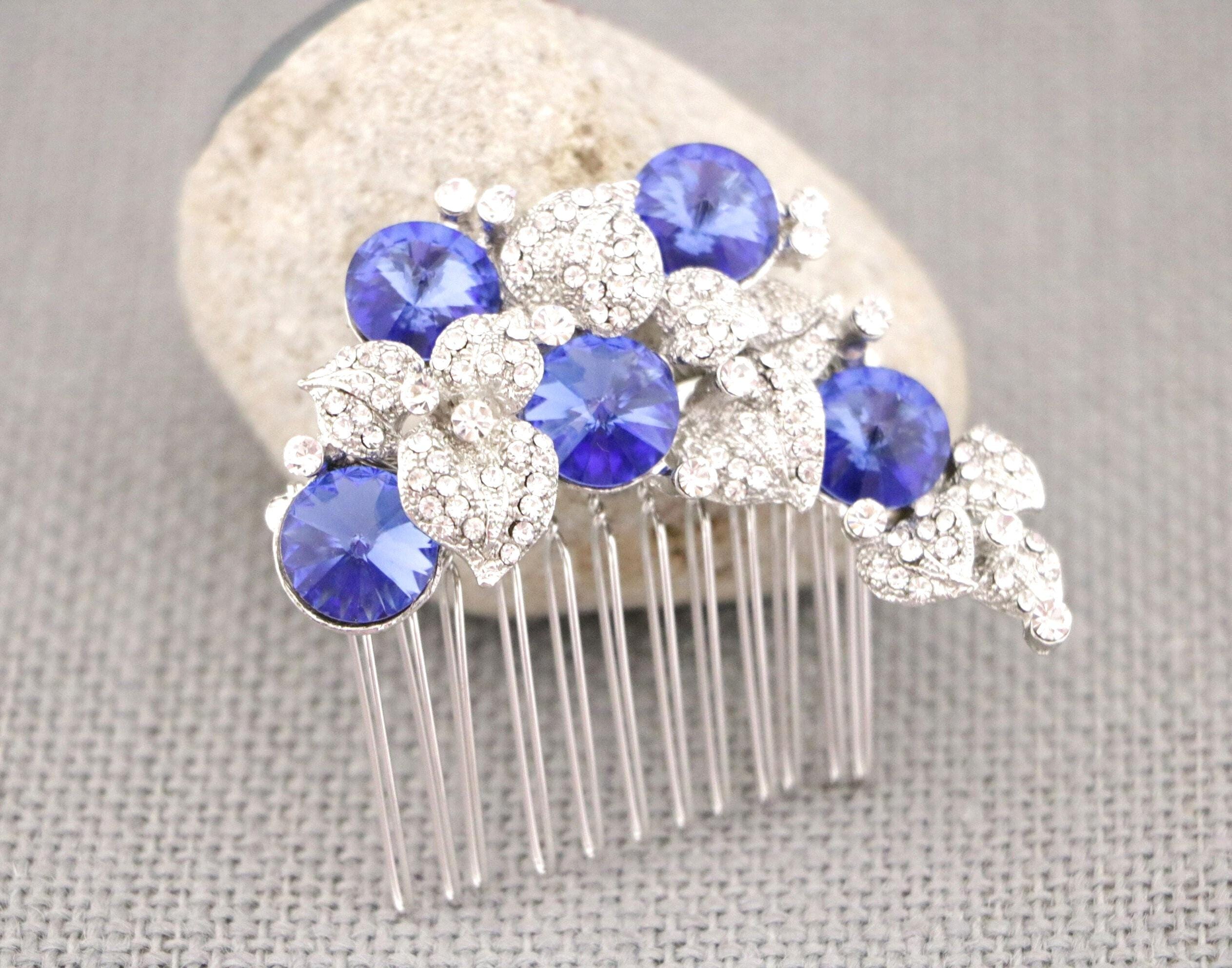 Hair Comb Wedding, sapphire crystal pearl rhinestone hair comb, bridal hair comb rhinestone, hair comb wedding headpieces, Blue Blue Comb