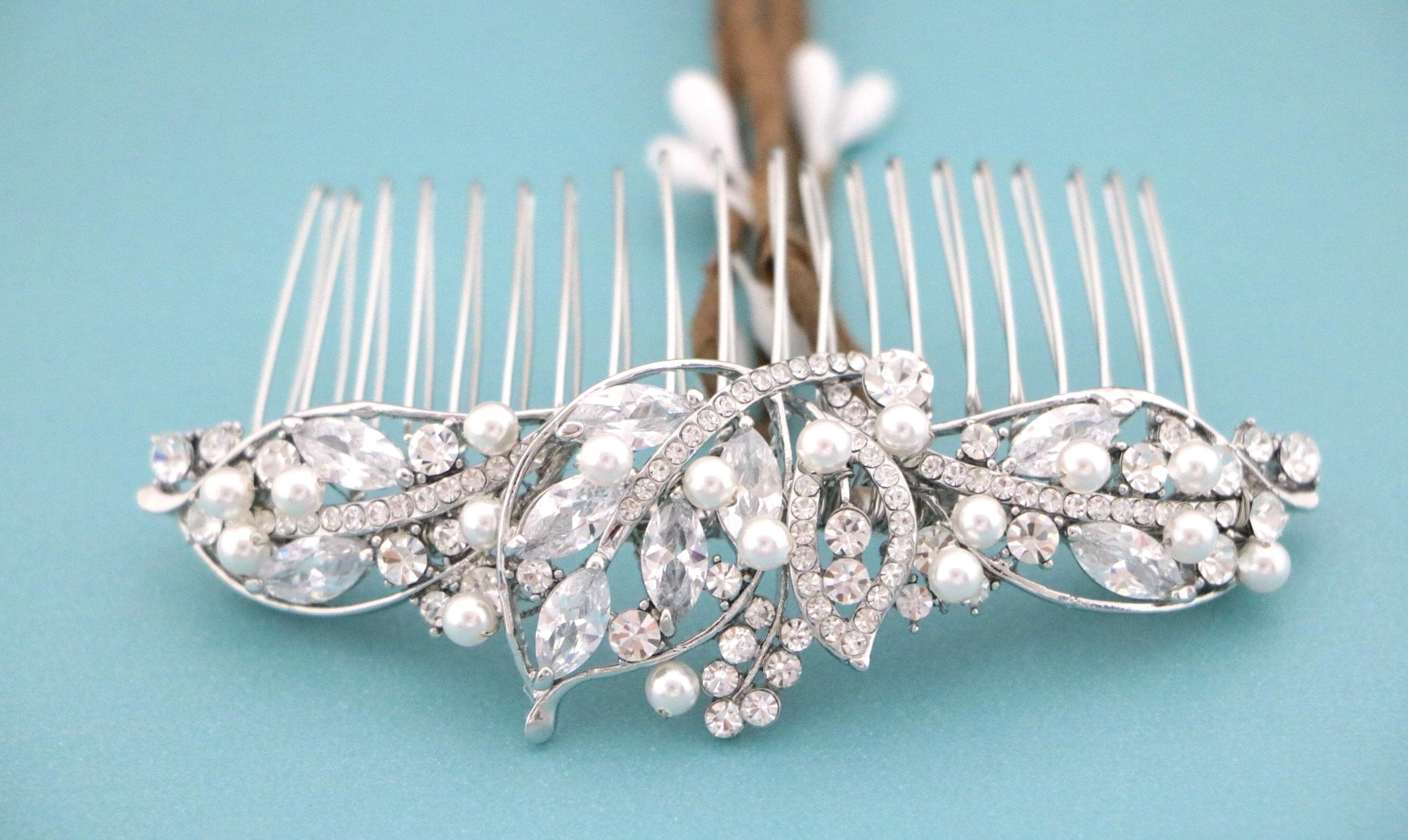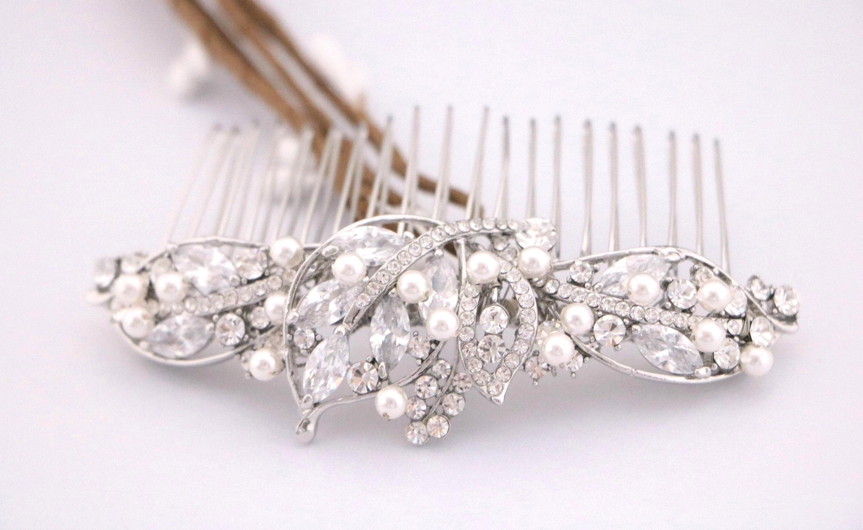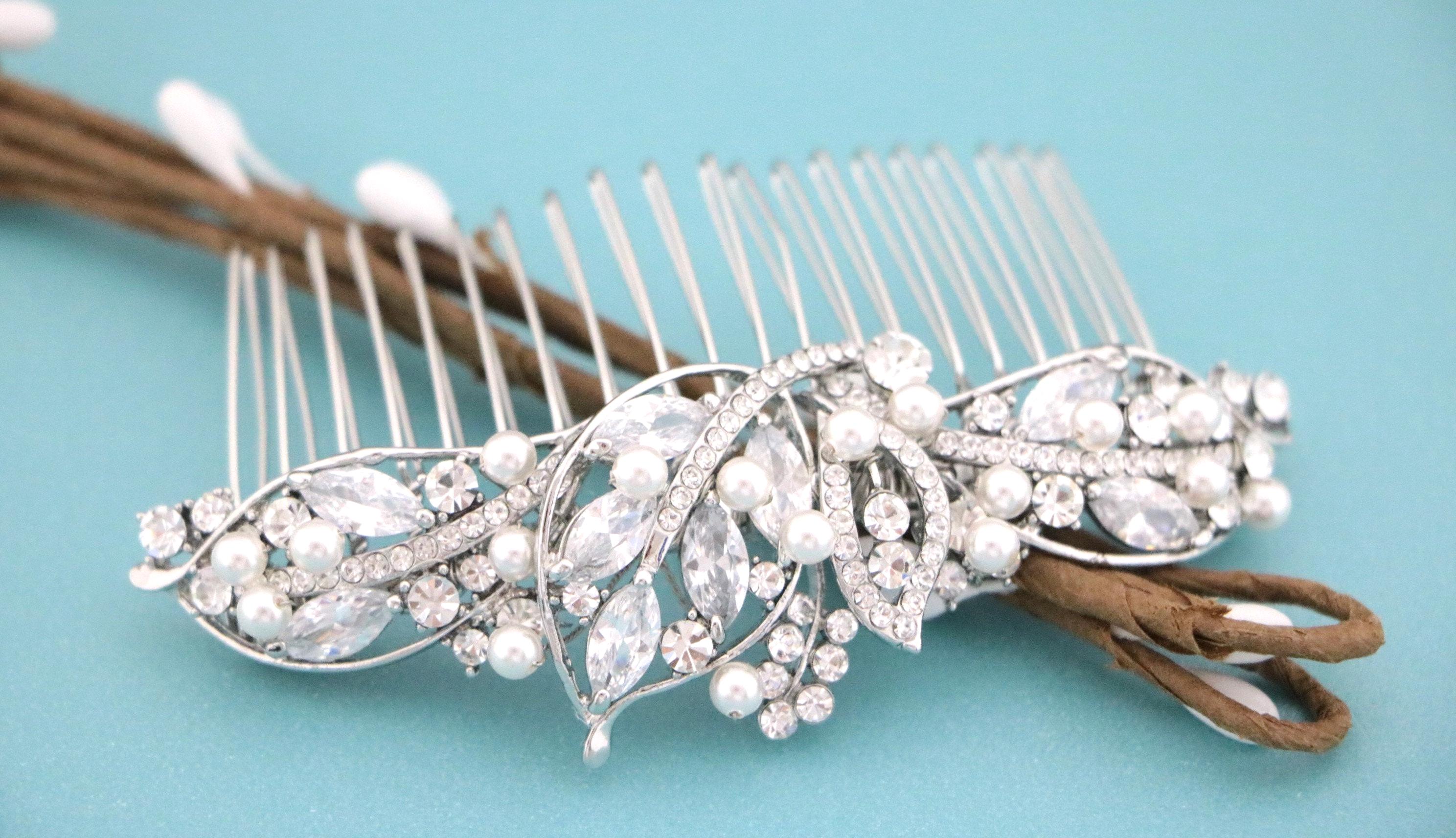 Bridal Hair Comb- Rhinestone and Pearl Bridal Hair Comb- Bridal Headpiece- Rhinestone Bridal Comb