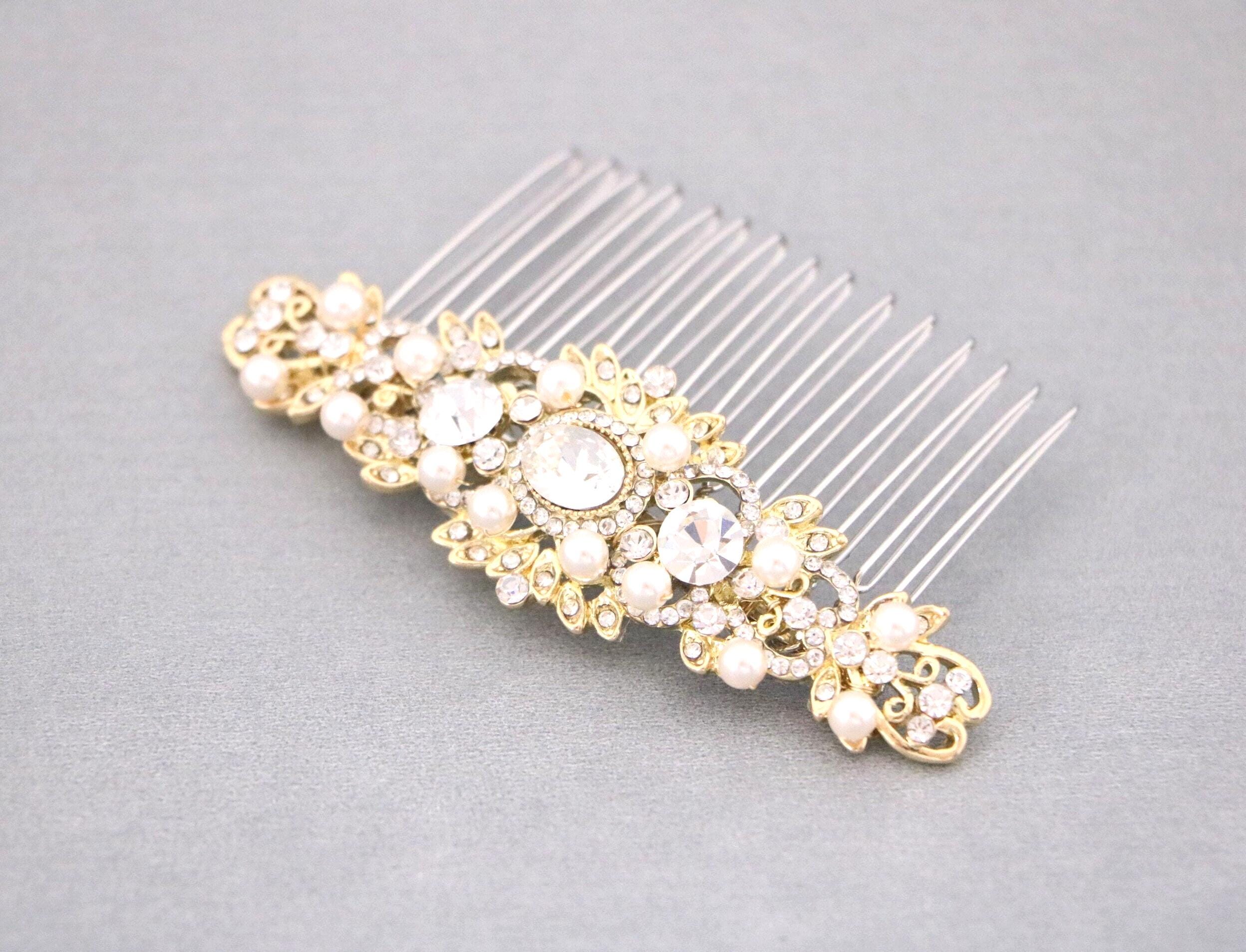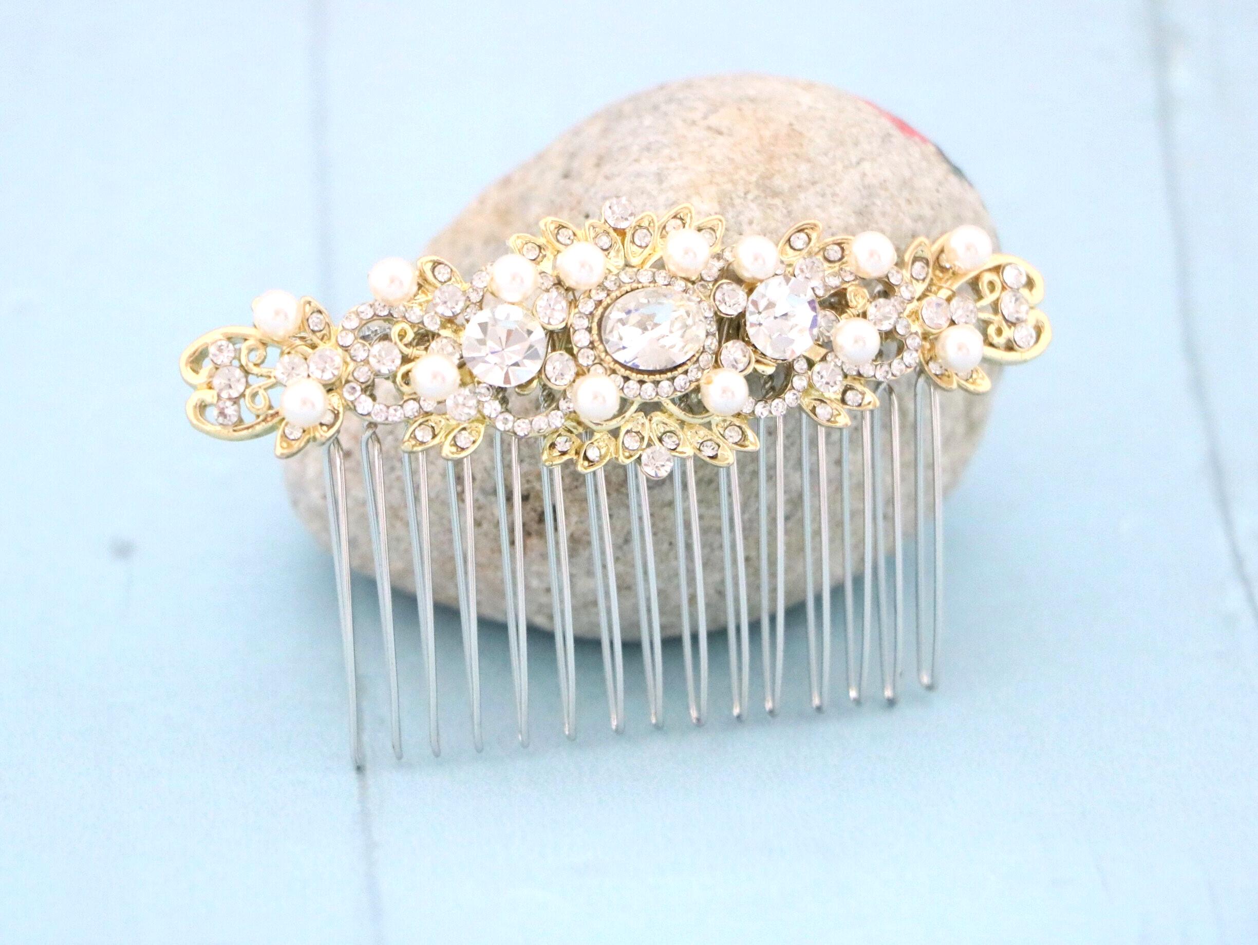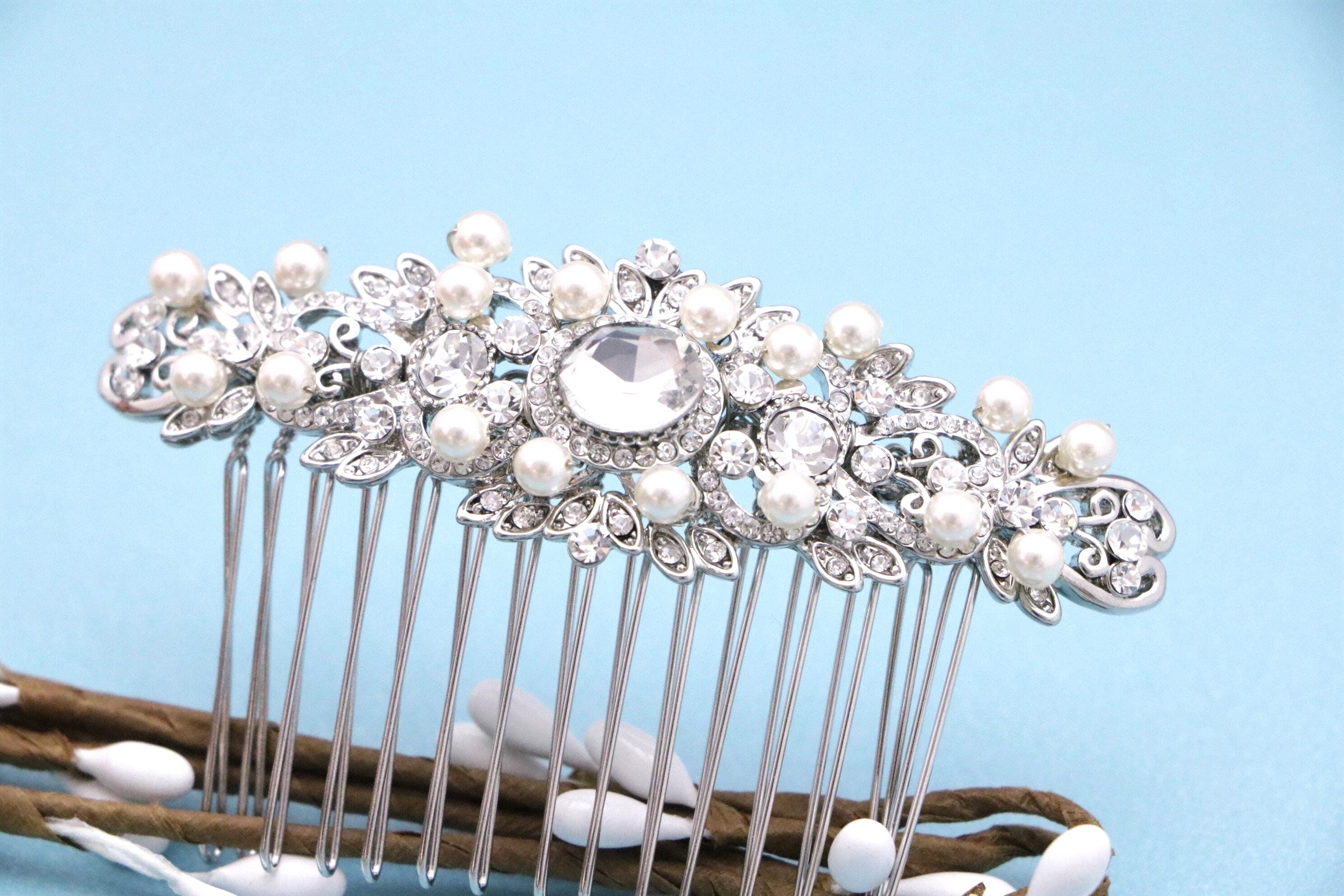This sparkle rhinestone hair comb features a very beautiful vintage style rhinestone piece and Swarovski ivory pearls. Rhinestone piece and pearls are set it on a metal barrette or on a metal hair comb. The rhinestone part measures approximately 3.25 X 1.25 inches.