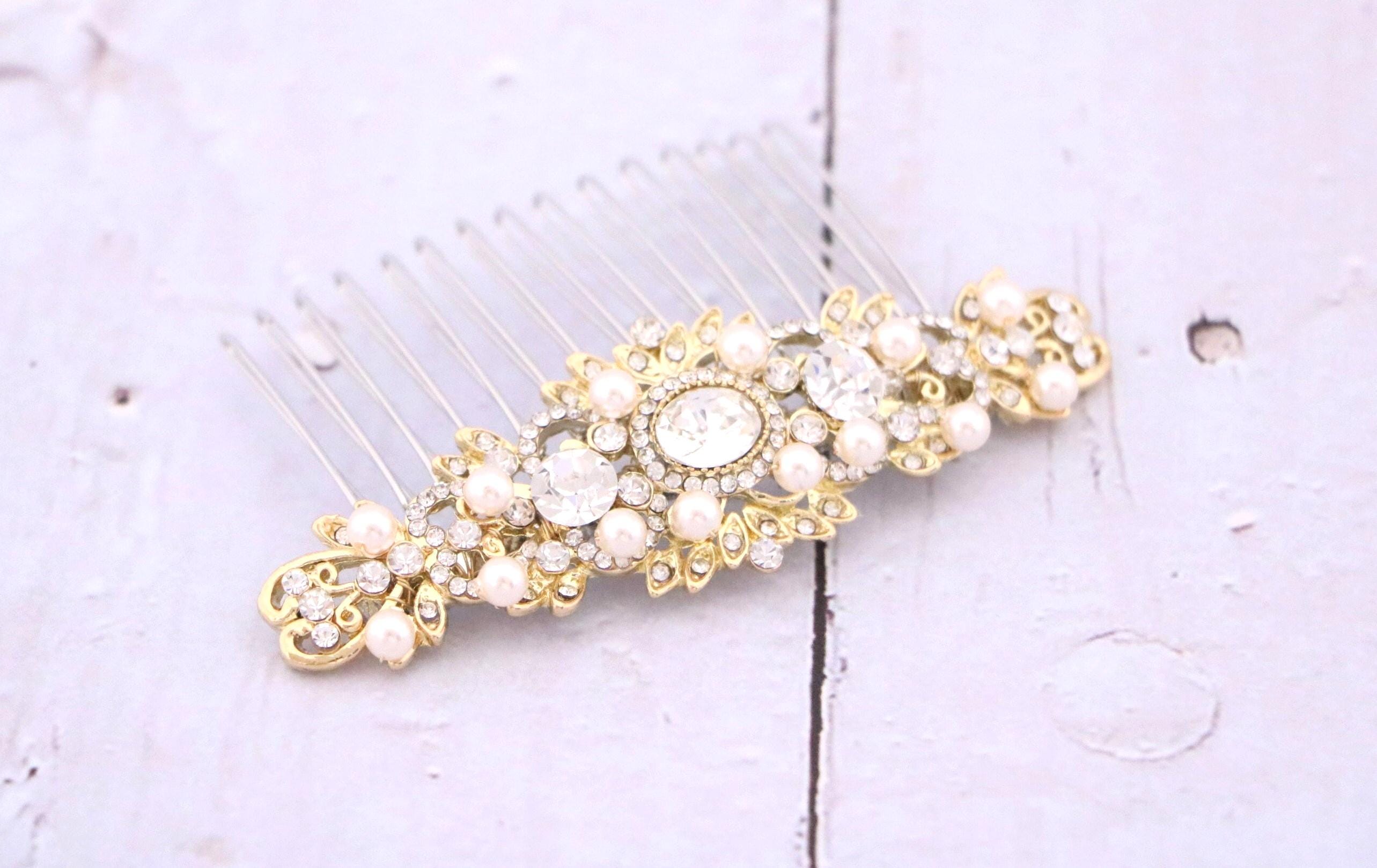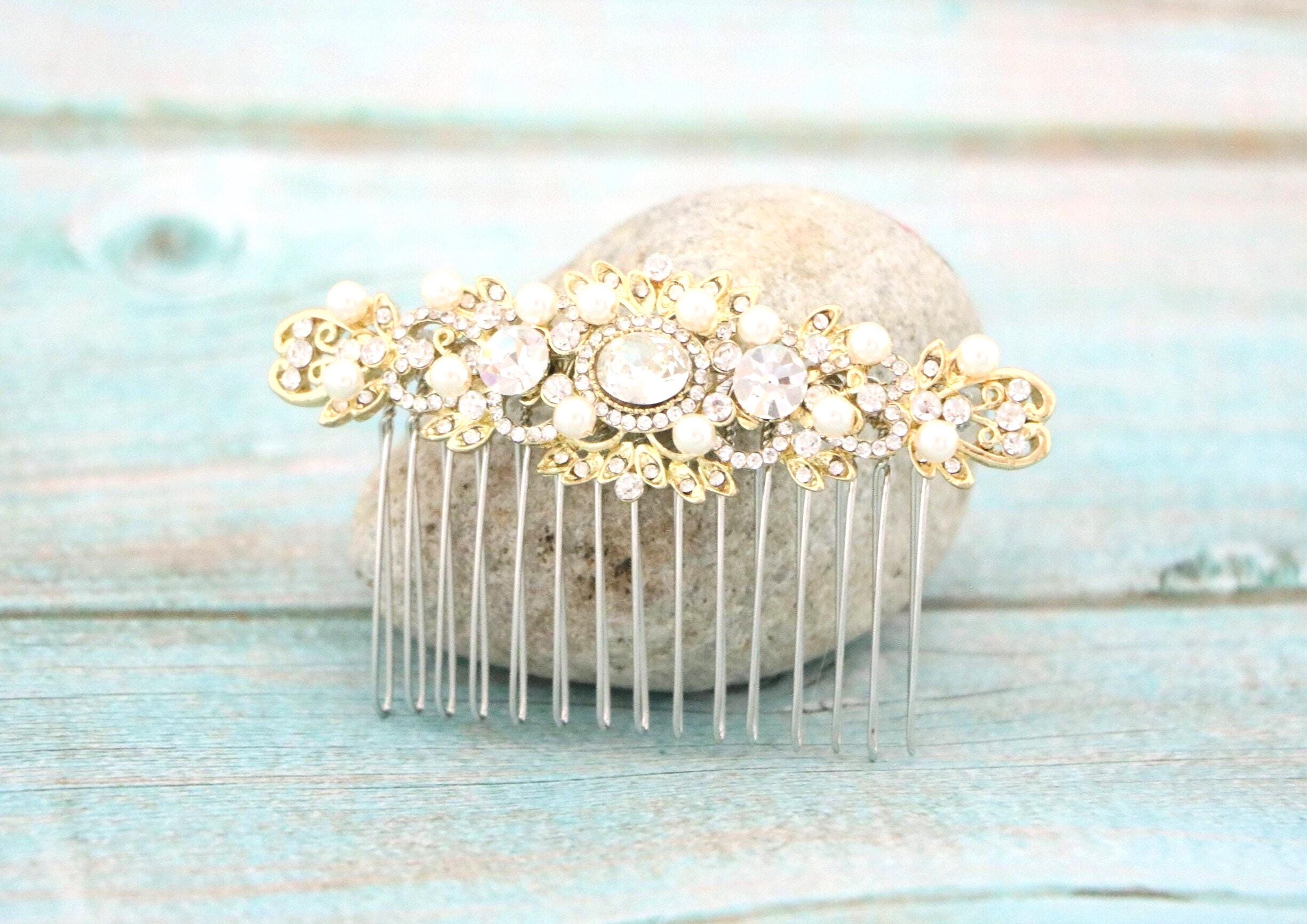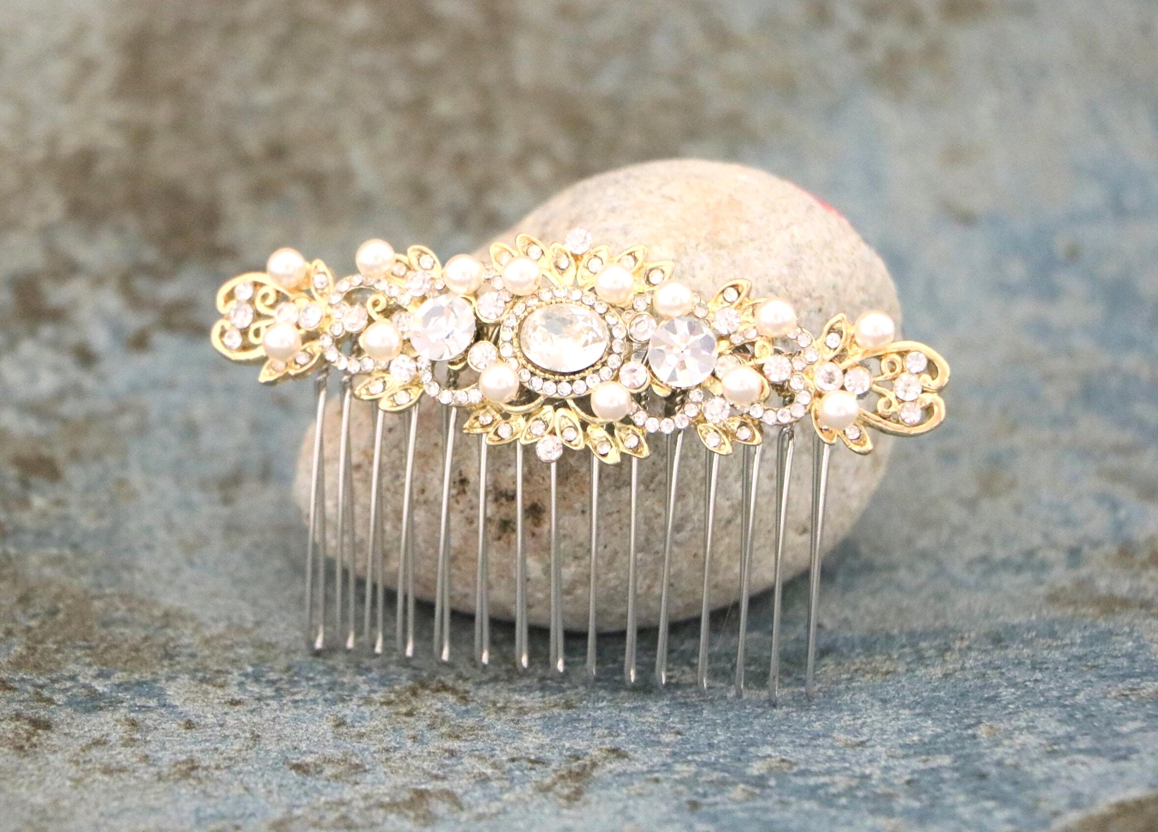 This sparkle rhinestone hair comb features a very beautiful vintage style rhinestone piece and Swarovski ivory pearls. Rhinestone piece and pearls are set it on a metal barrette or on a metal hair comb. The rhinestone part measures approximately 3.25 X 1.25 inches.