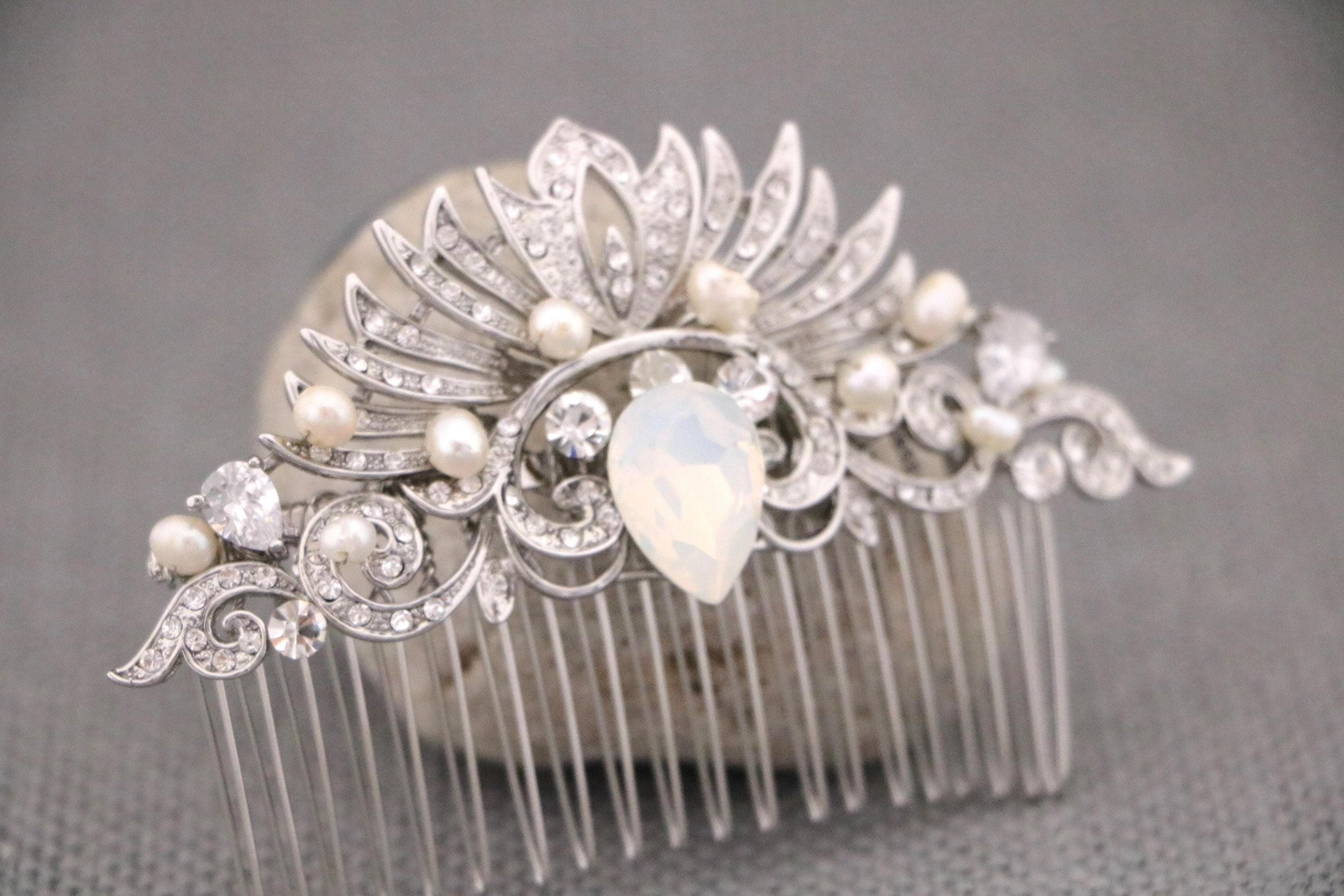 Opal & Crystal Bridal Comb, Opal Wedding Comb, Opal and Crystal Bridal Hair Comb, Wedding Hair Comb, Bridal Comb, Wedding Comb