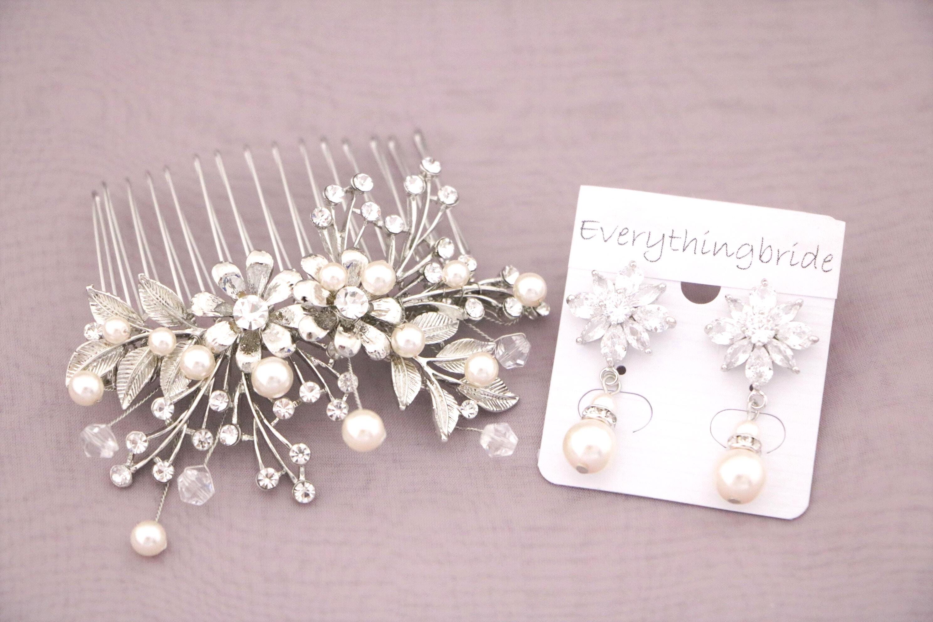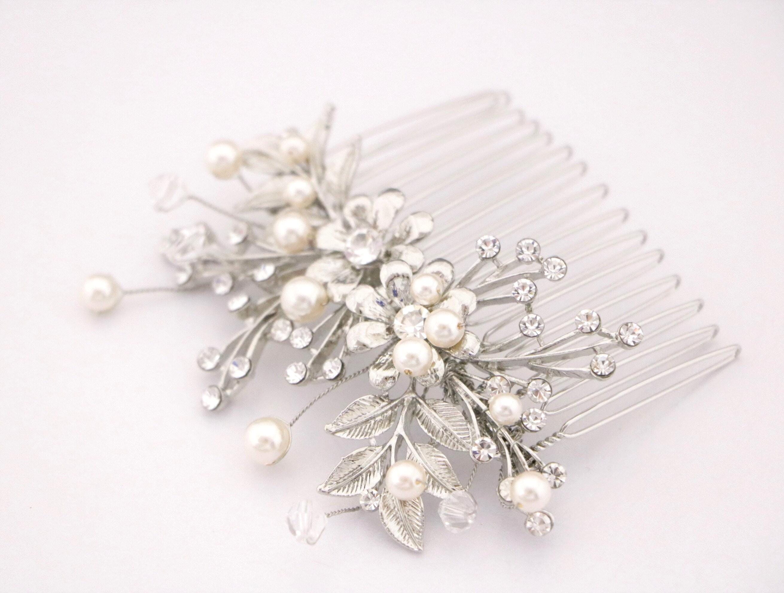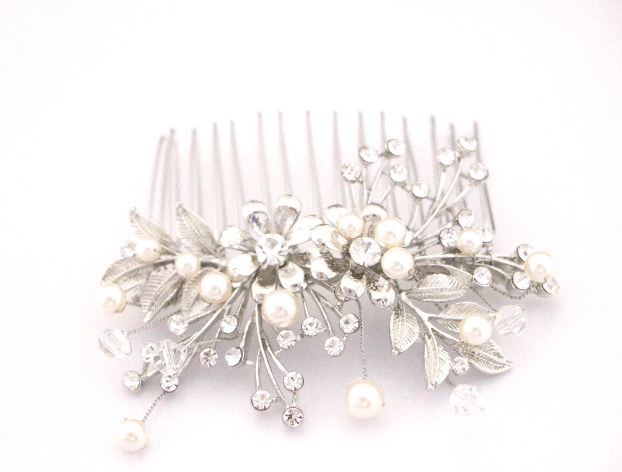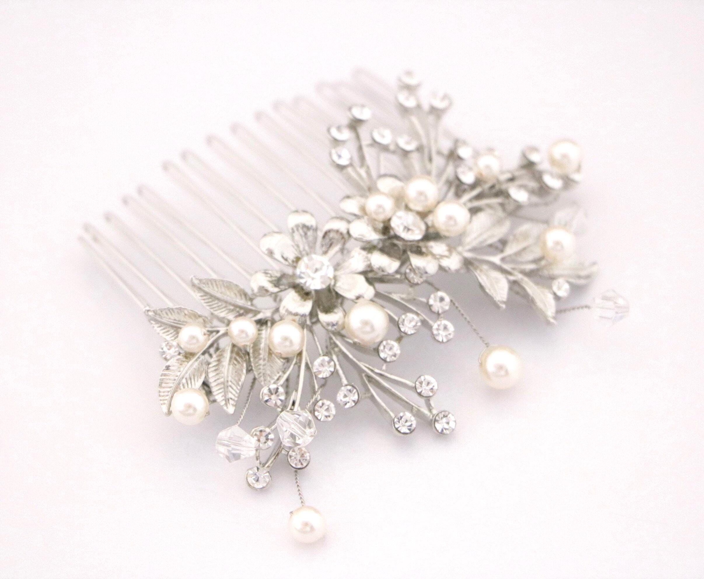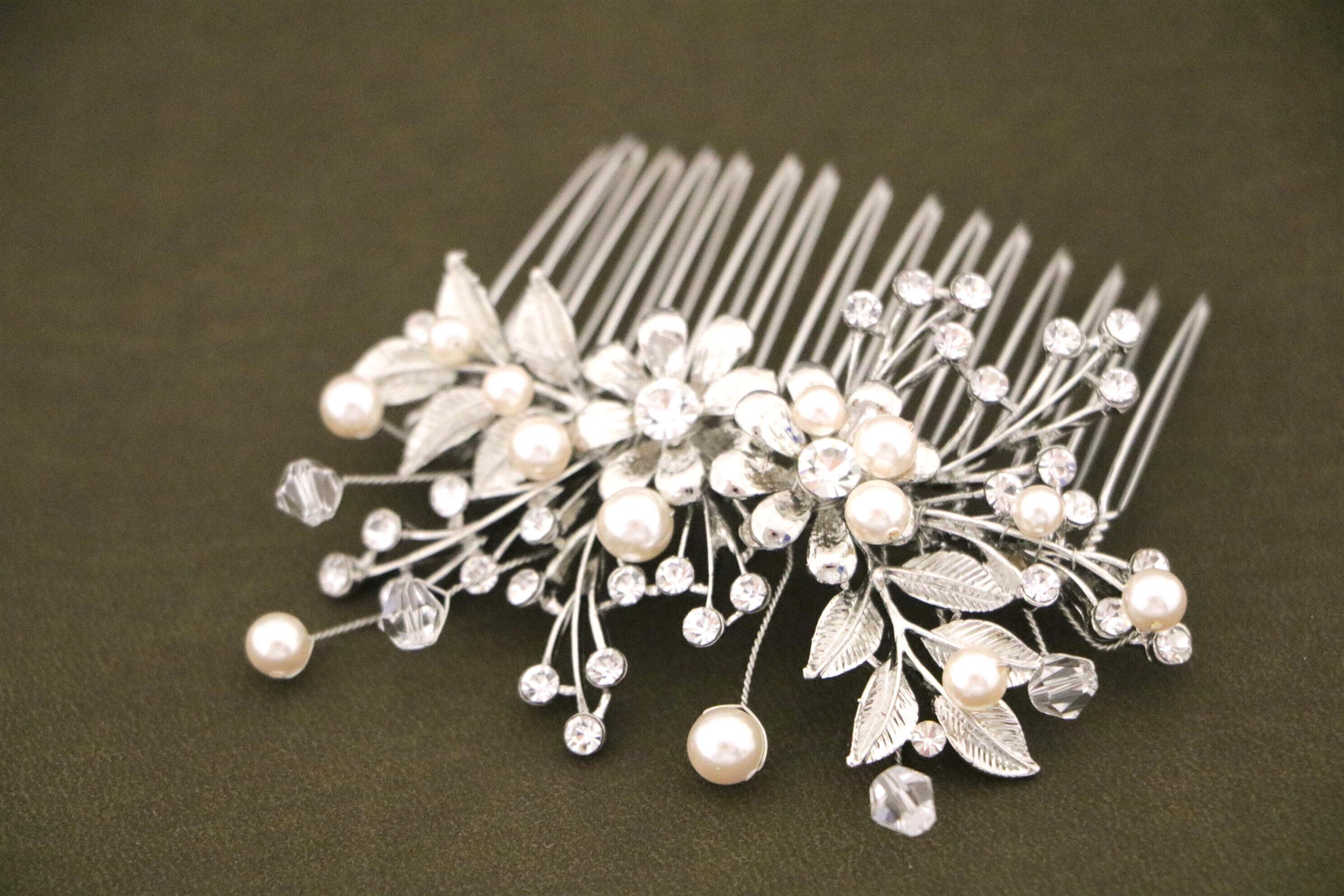 Wedding Hair Accessory Boho Bridal Hair Comb crystal pearl with leaves and flowers Wedding hair comb Boho hair piece Wedding hair jewelry Bridal veil comb