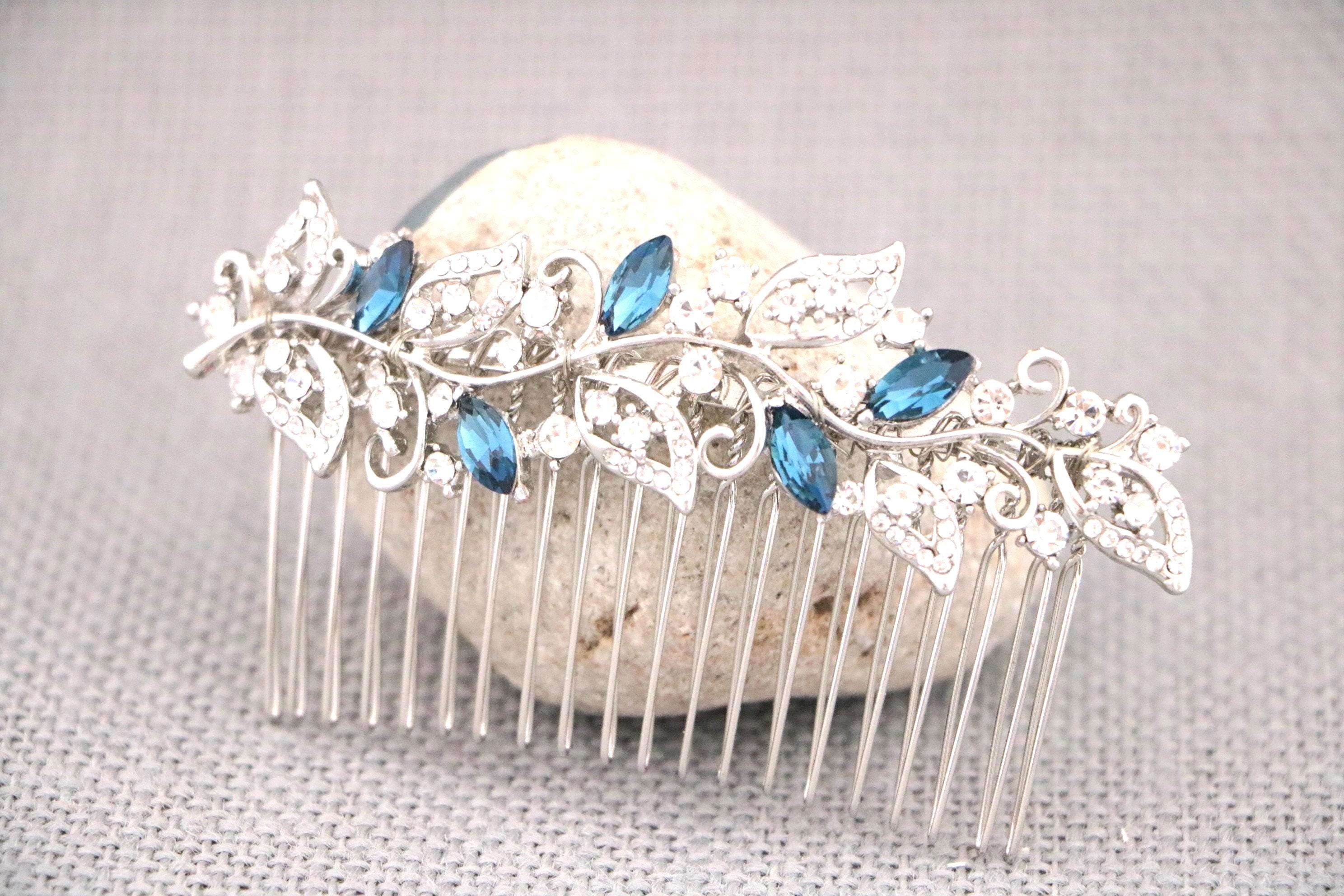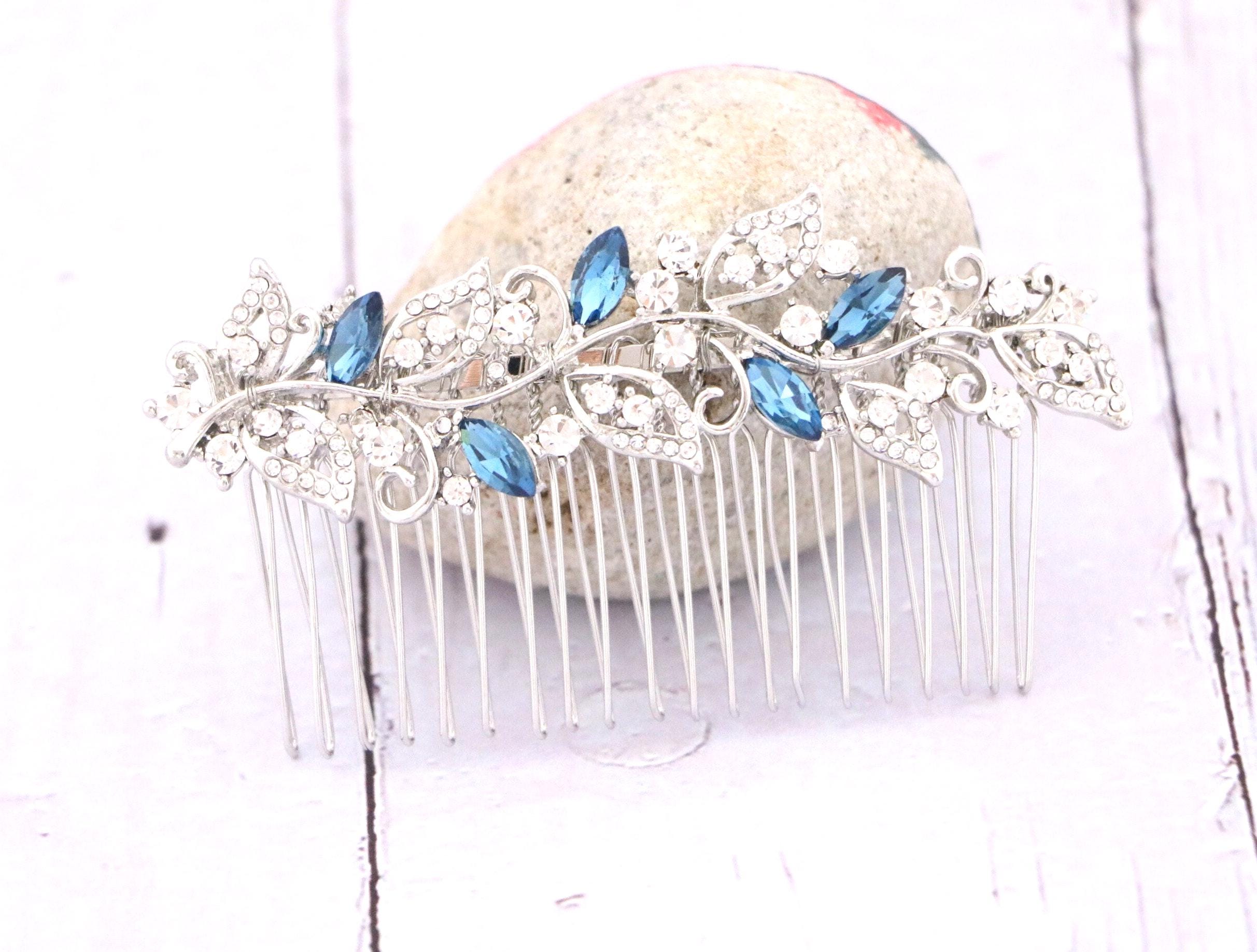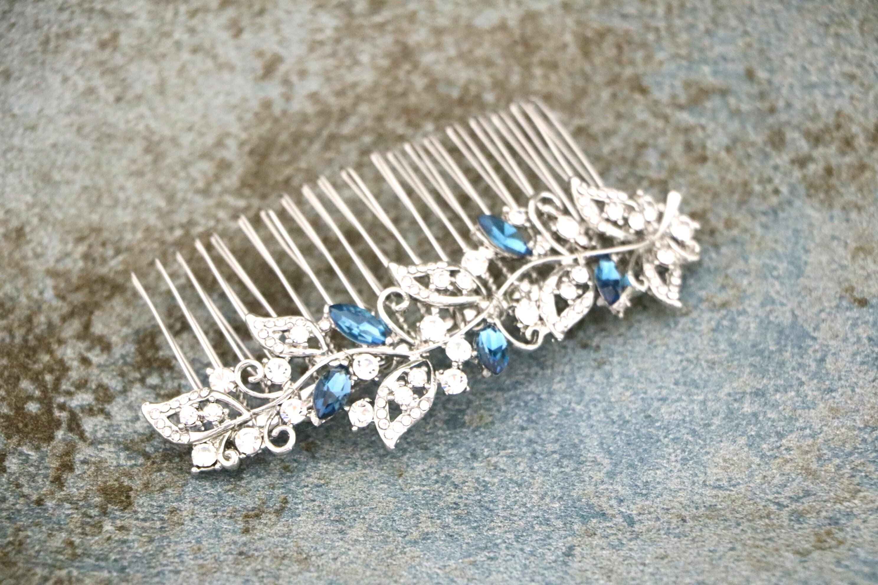 Bridal Hair Comb for a Bride, Something blue, Blue Sapphire Hair Comb, Hair Jewelry, Wedding accessories, Crystal hair piece