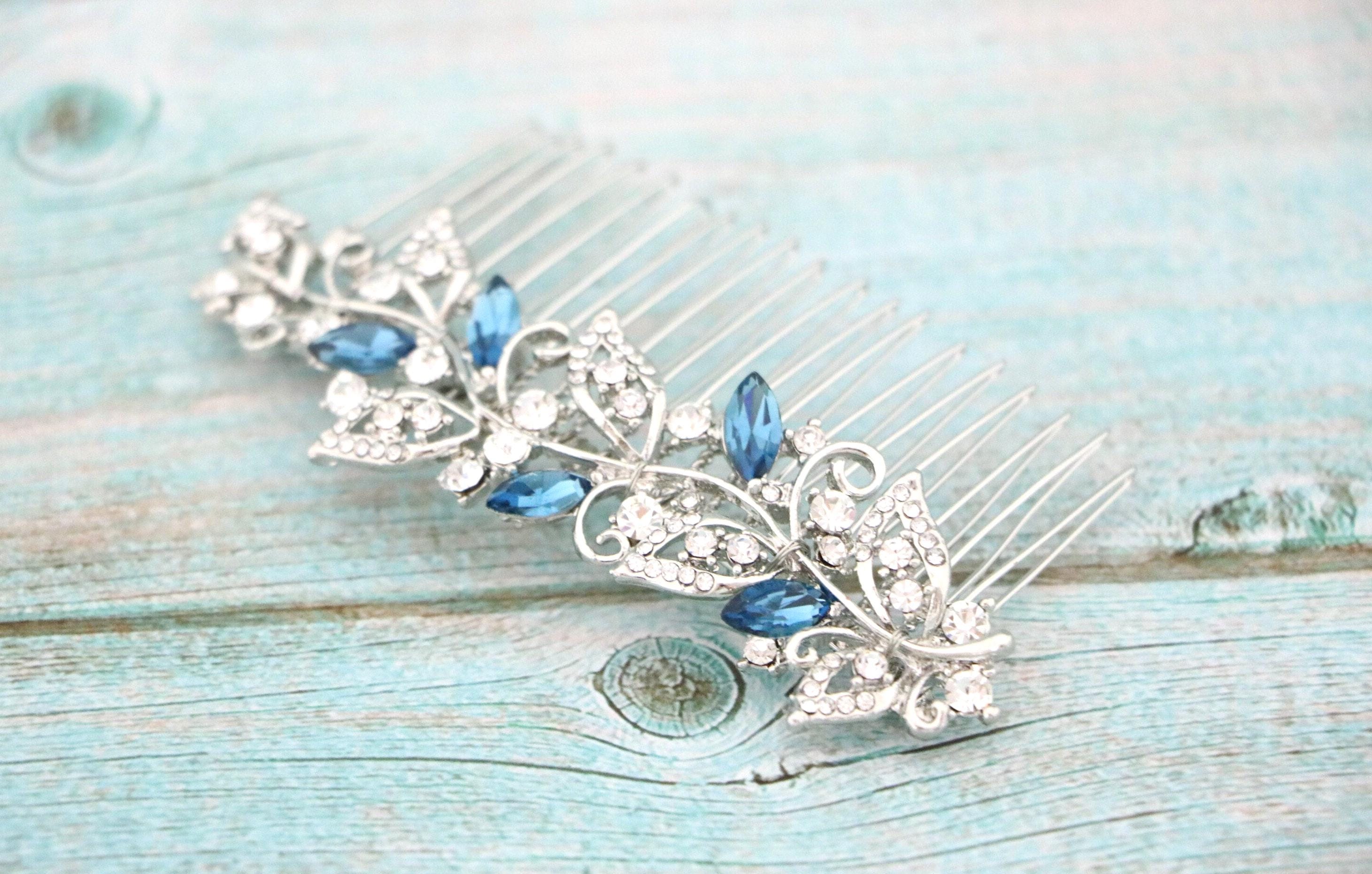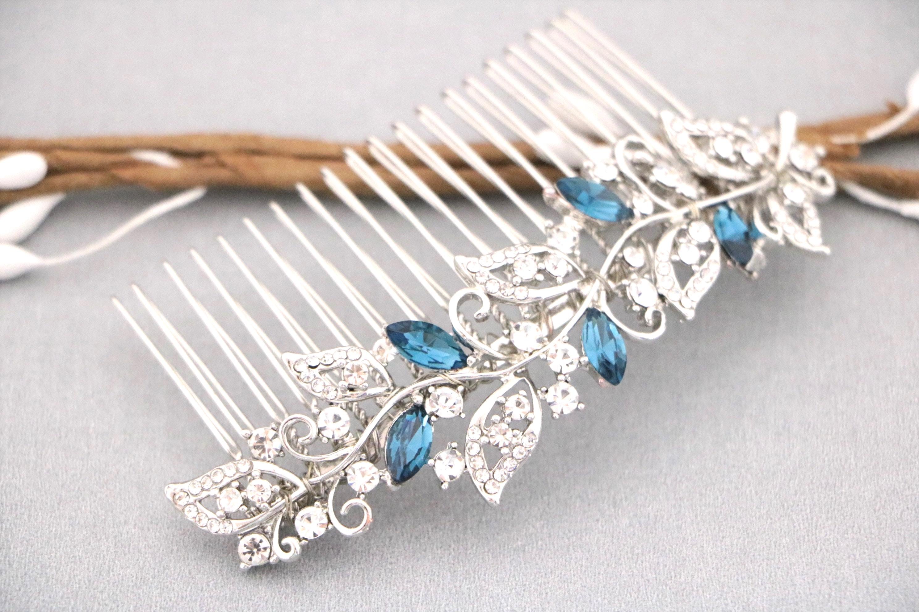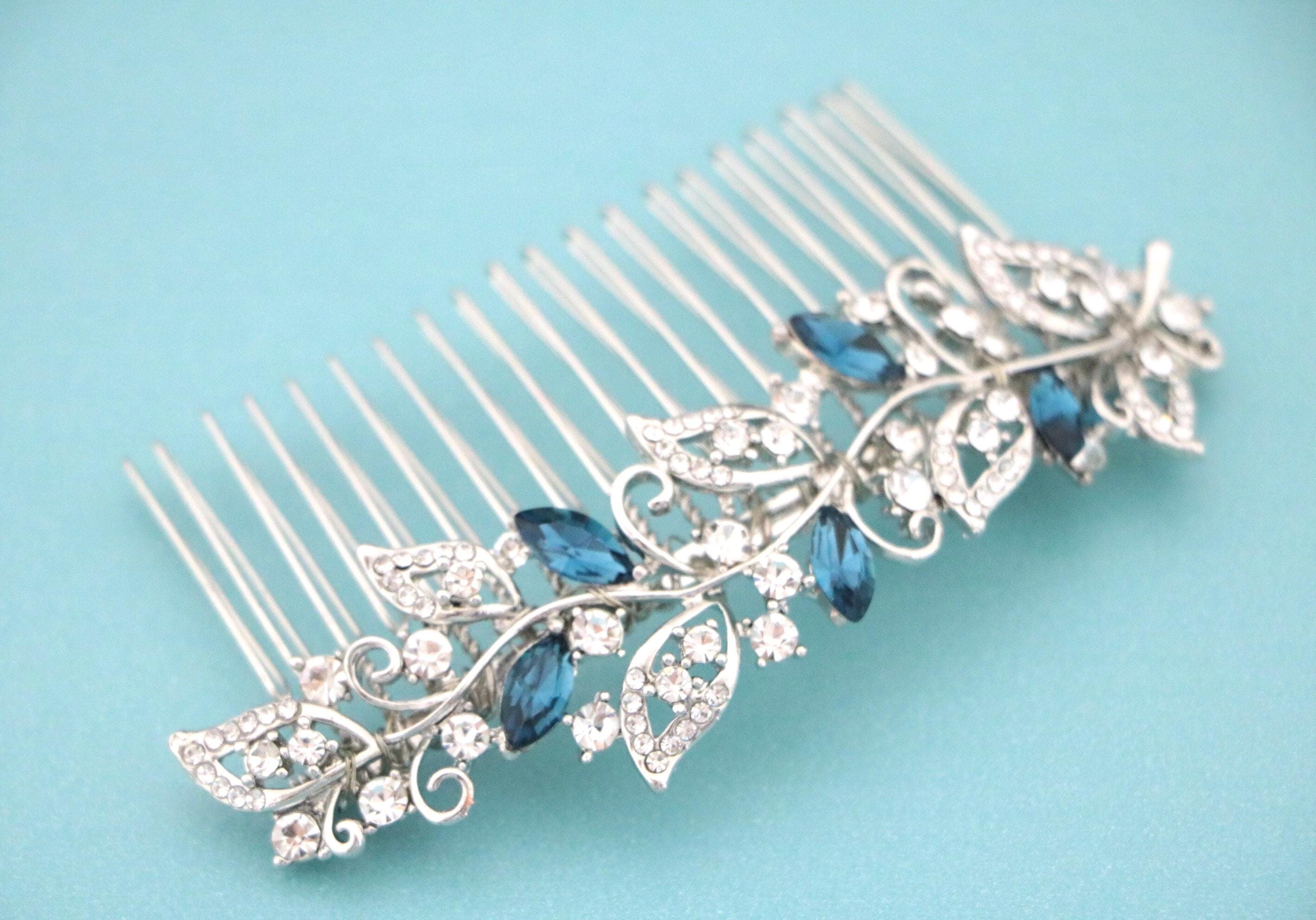 Bridal Hair Comb for a Bride, Something blue, Blue Sapphire Hair Comb, Hair Jewelry, Wedding accessories, Crystal hair piece