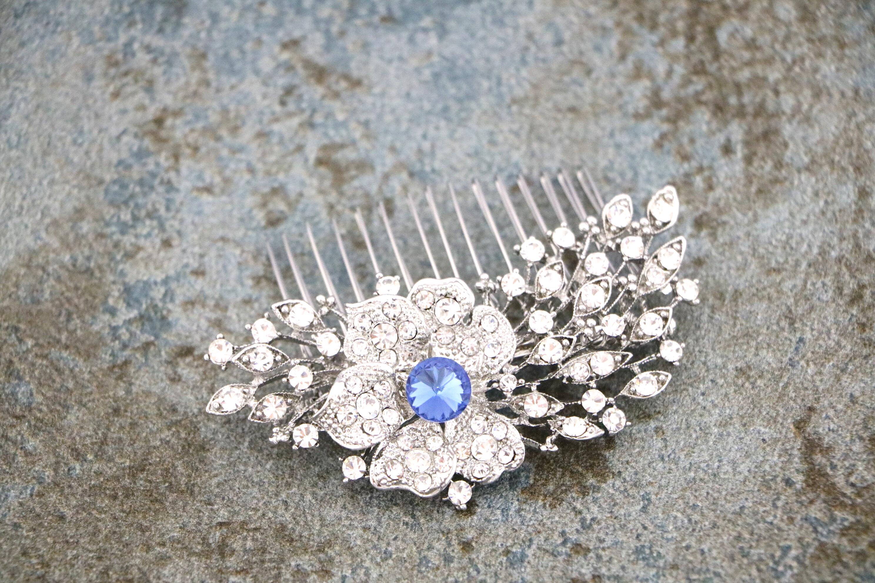Something Blue Bridal Hair Piece, Royal Blue Wedding Comb, Sapphire Blue Bridal Comb, Blue Rhinestone Hair Clip, Blue Bridesmaid Comb Gift