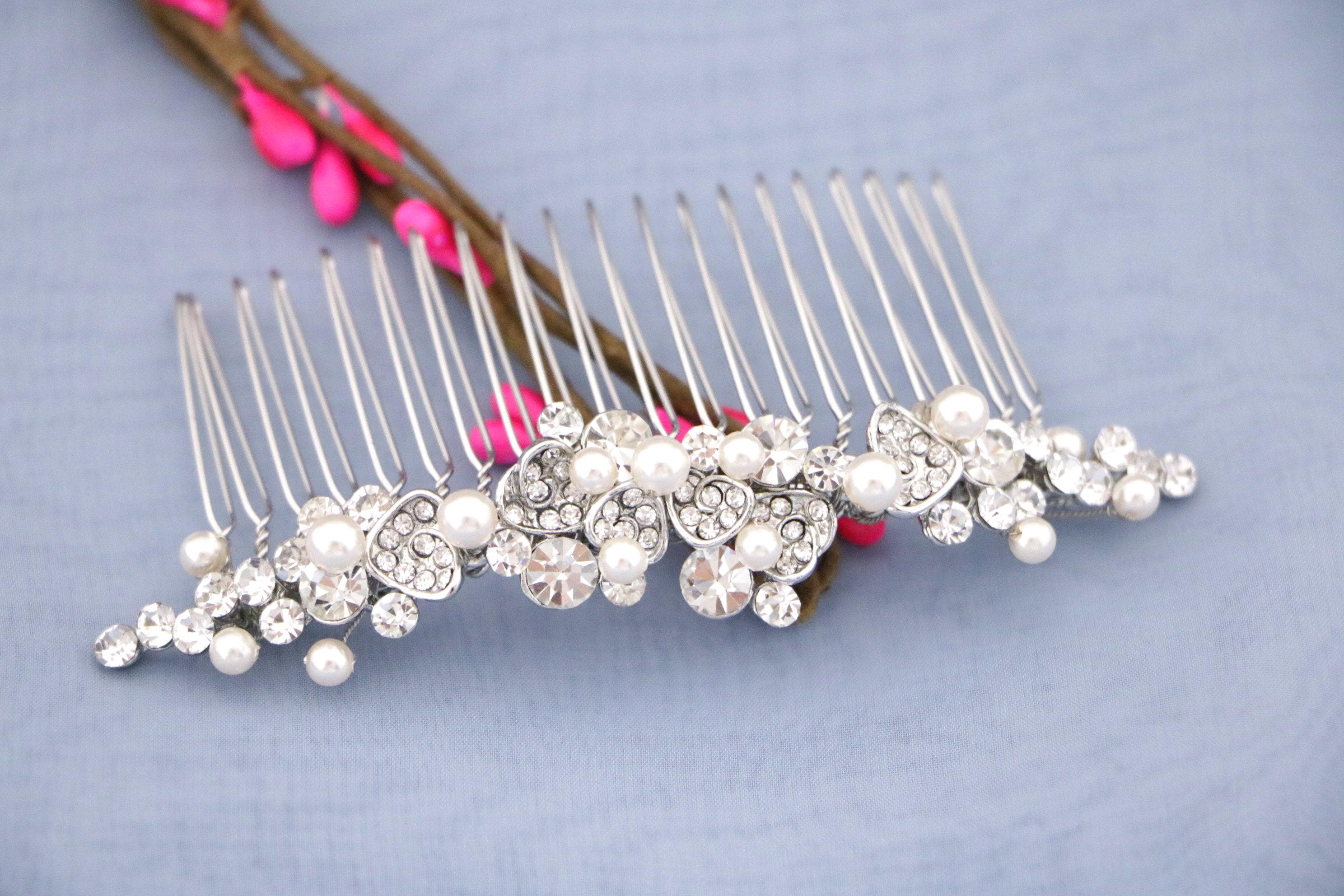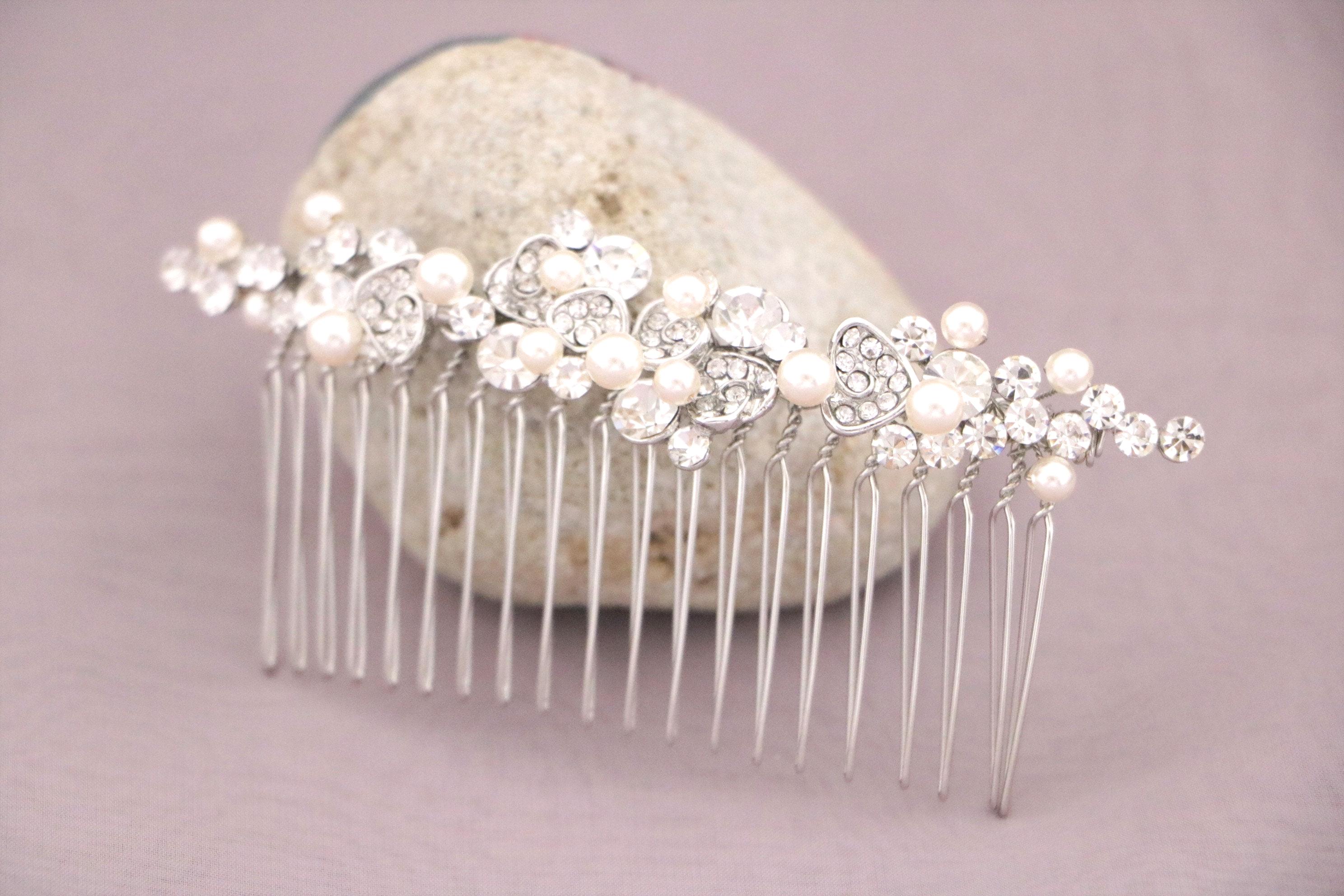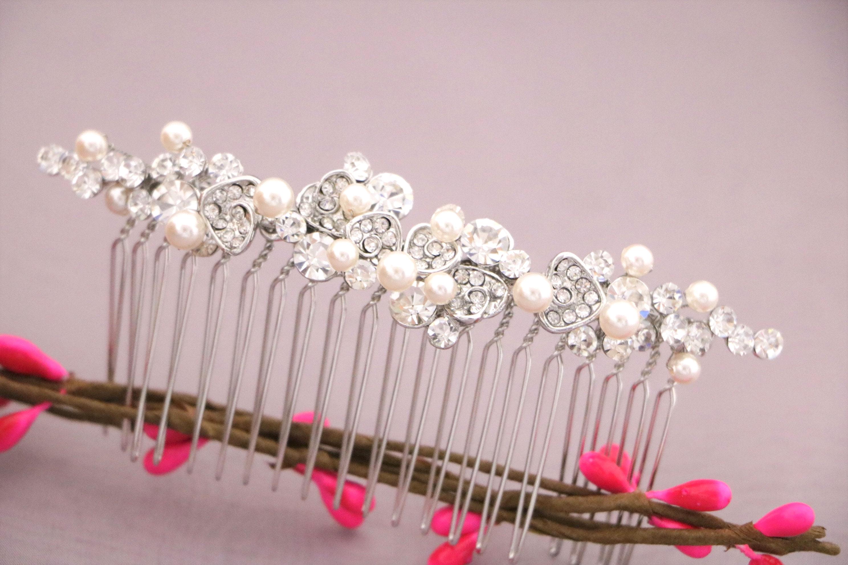 Crystal Bridal Comb, Floral Rhinestone Wedding Comb, Bridal Hair Accessory, Crystal Wedding Headpiece, Floral Hair Comb, Wedding
